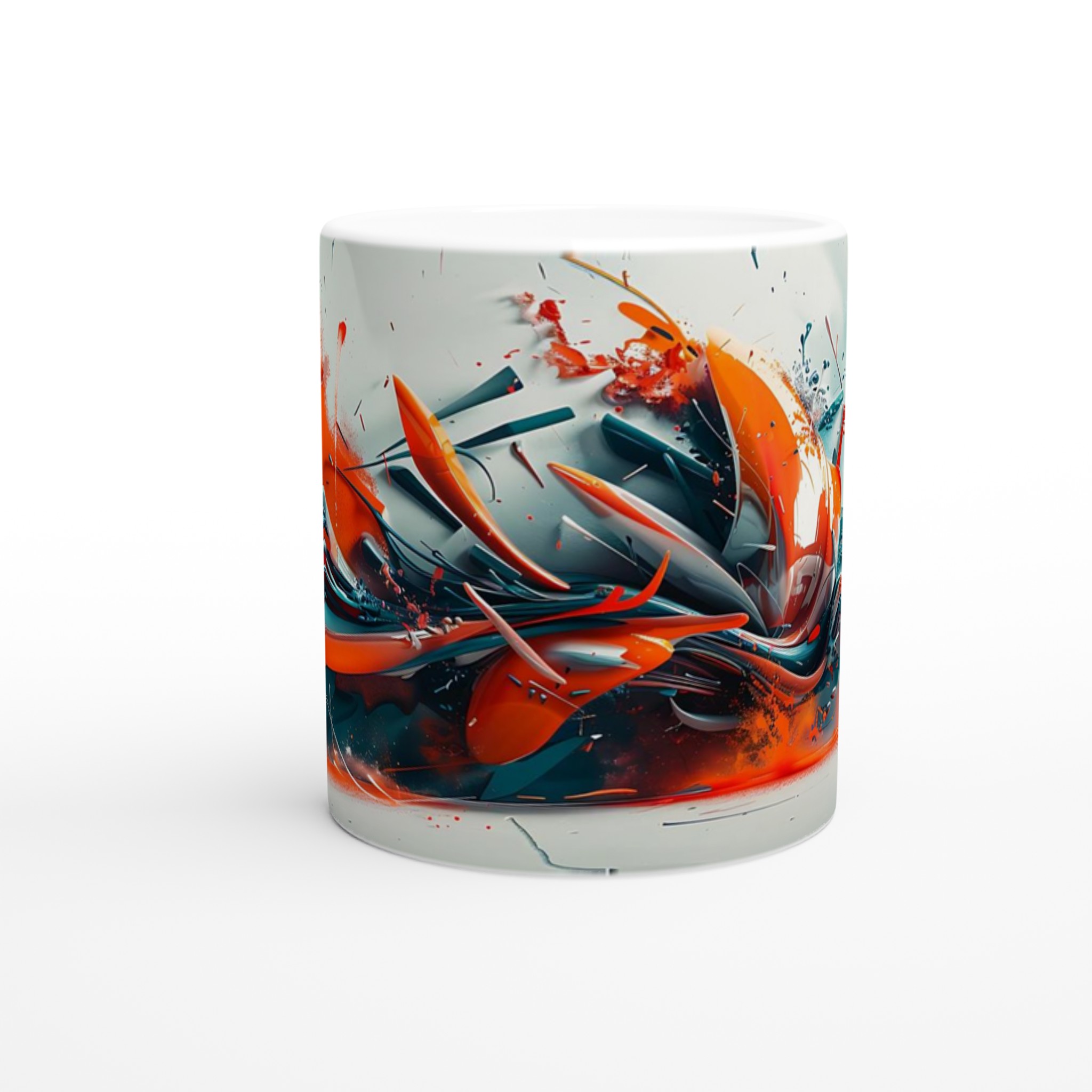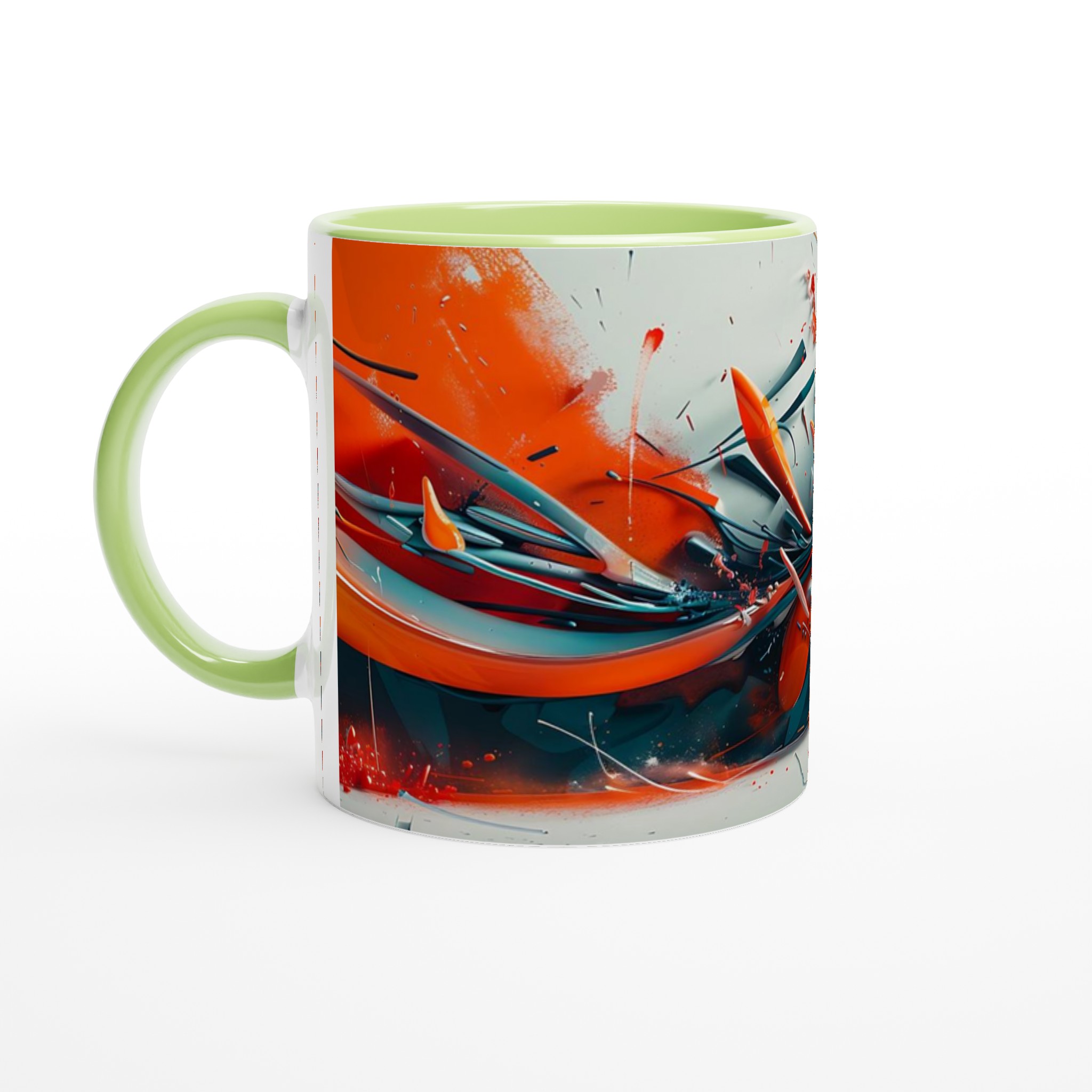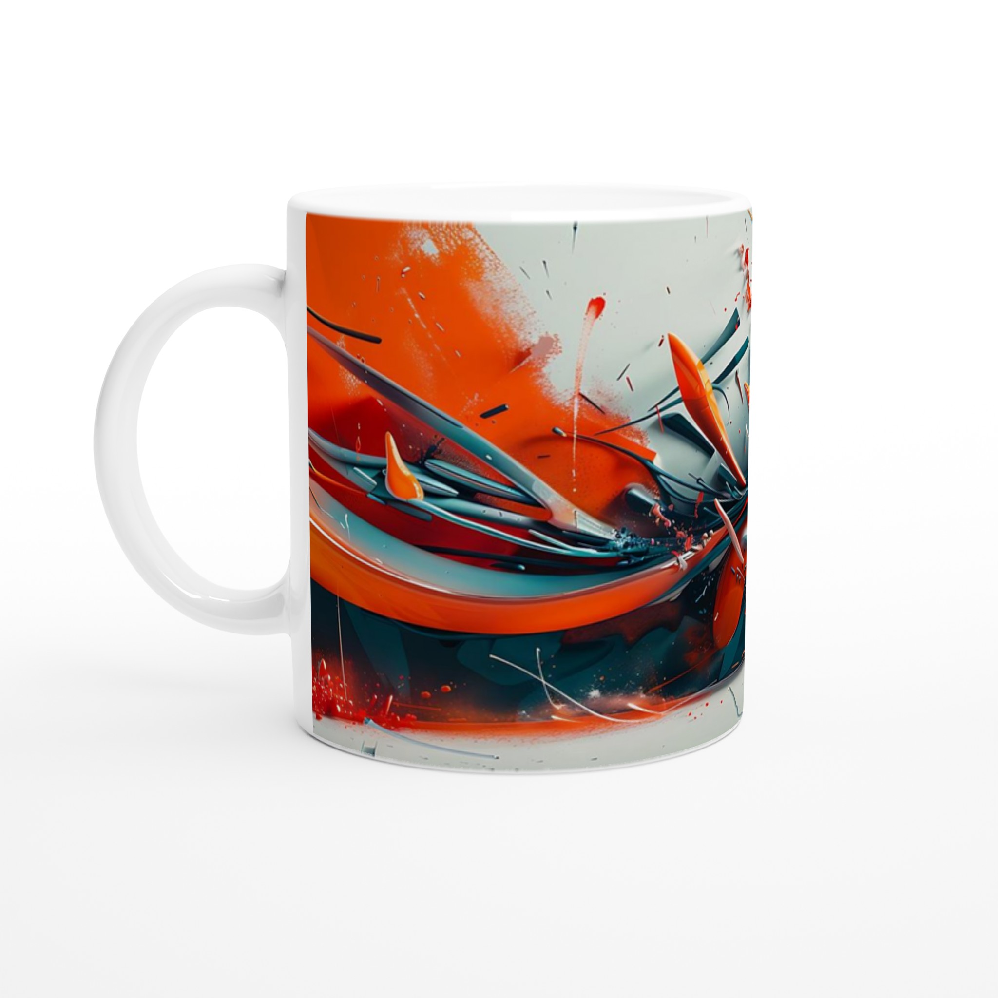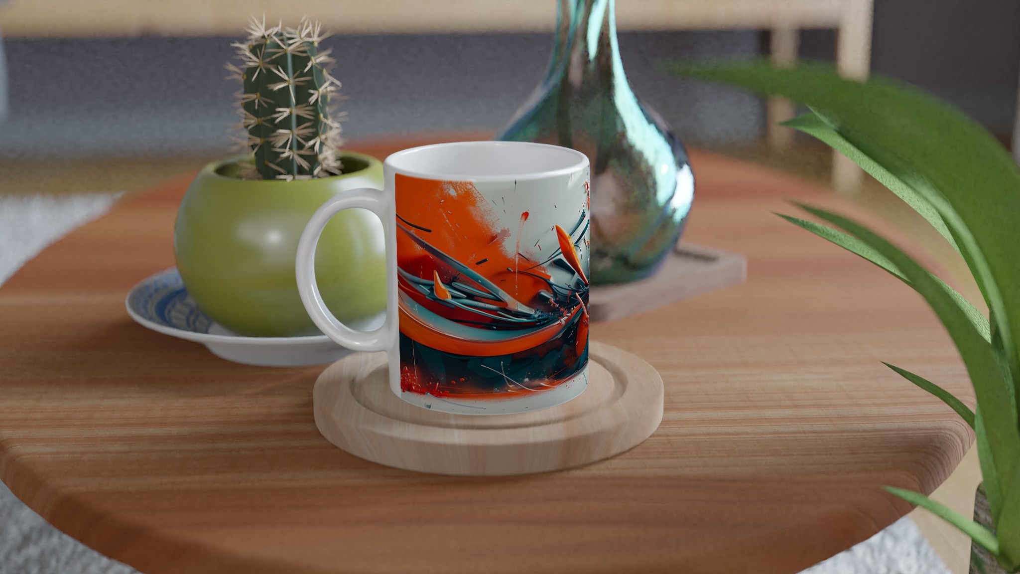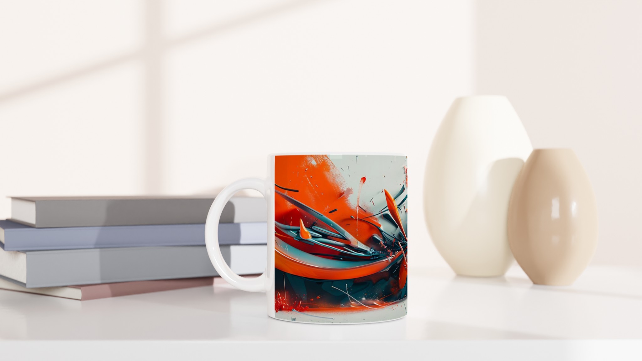 Abstract Flow Ceramic Mug – Vibrant Orange & Teal Art in Your Choice of Seven Hues