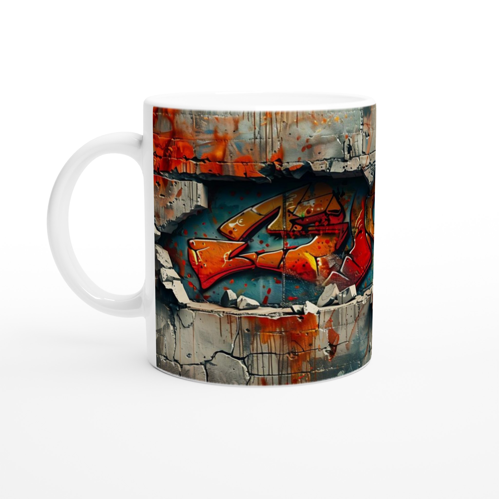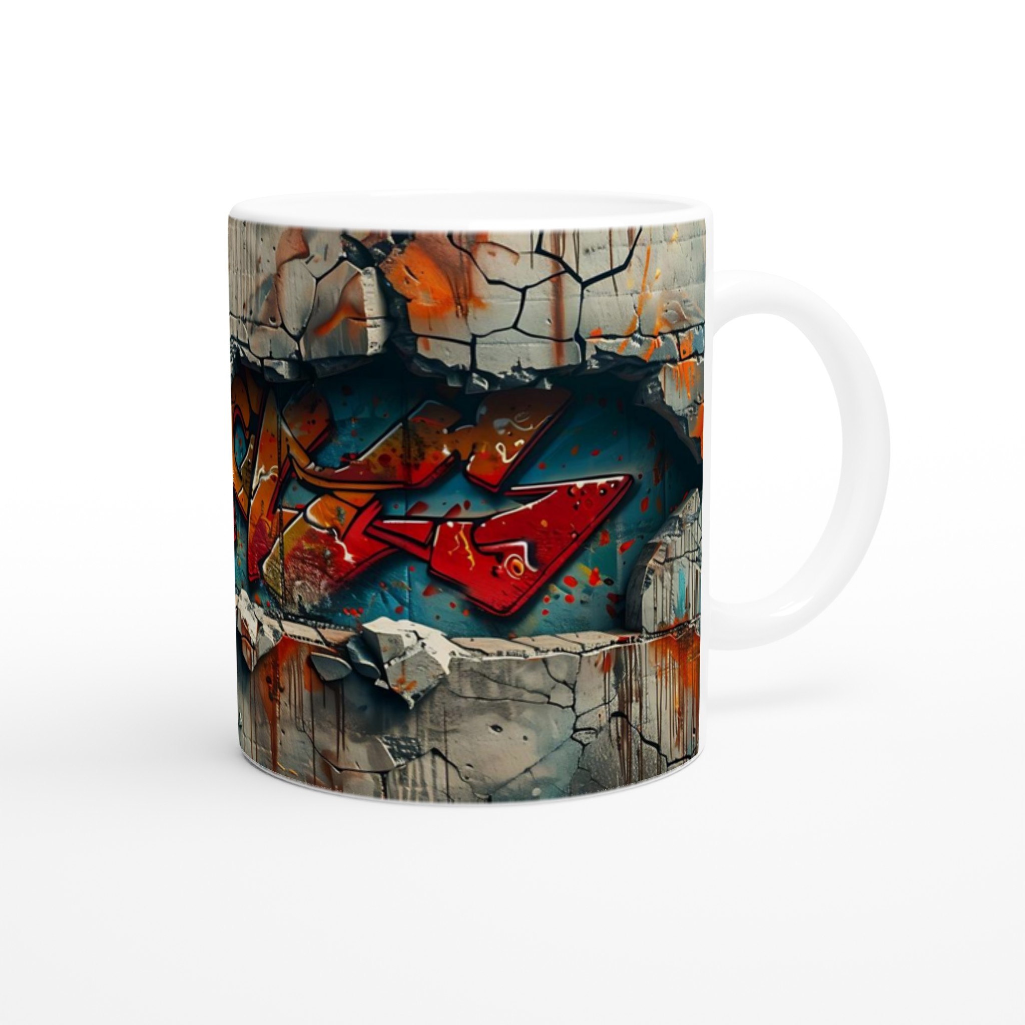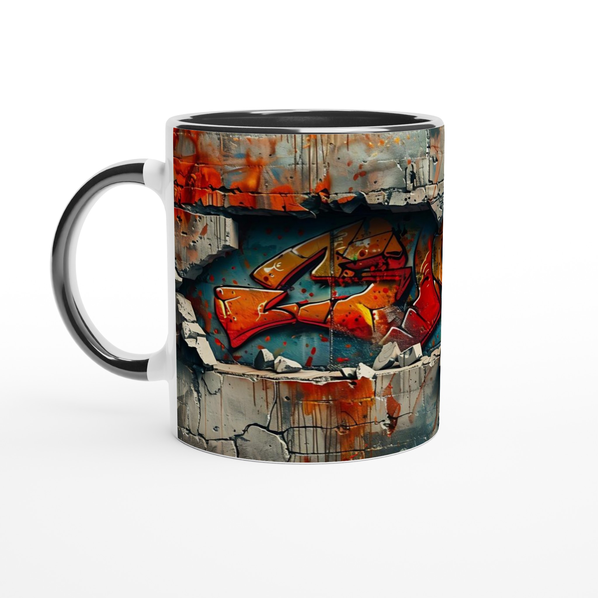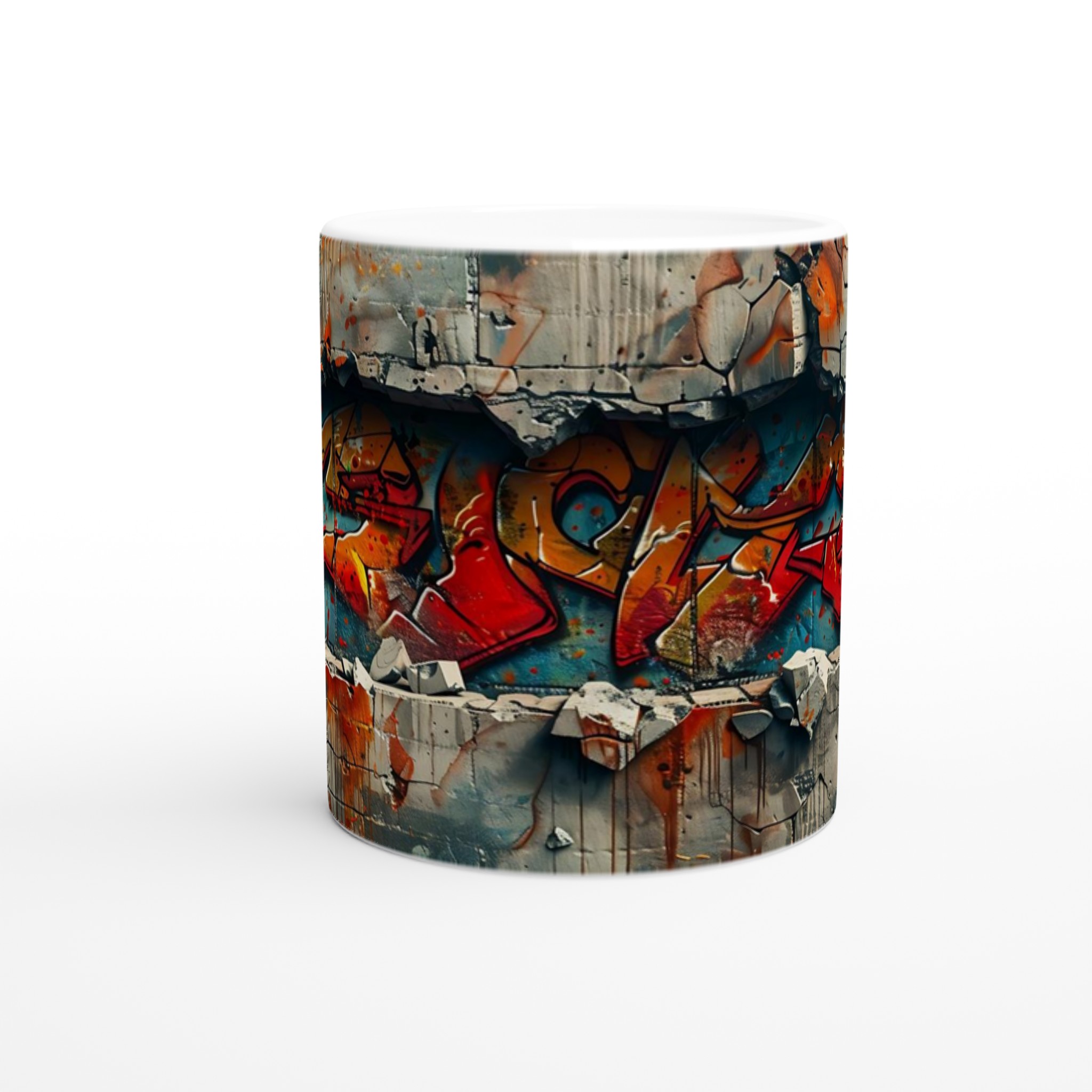 Urban Graffiti Art – White Ceramic Mug 11oz, in your choice of seven vibrant hues