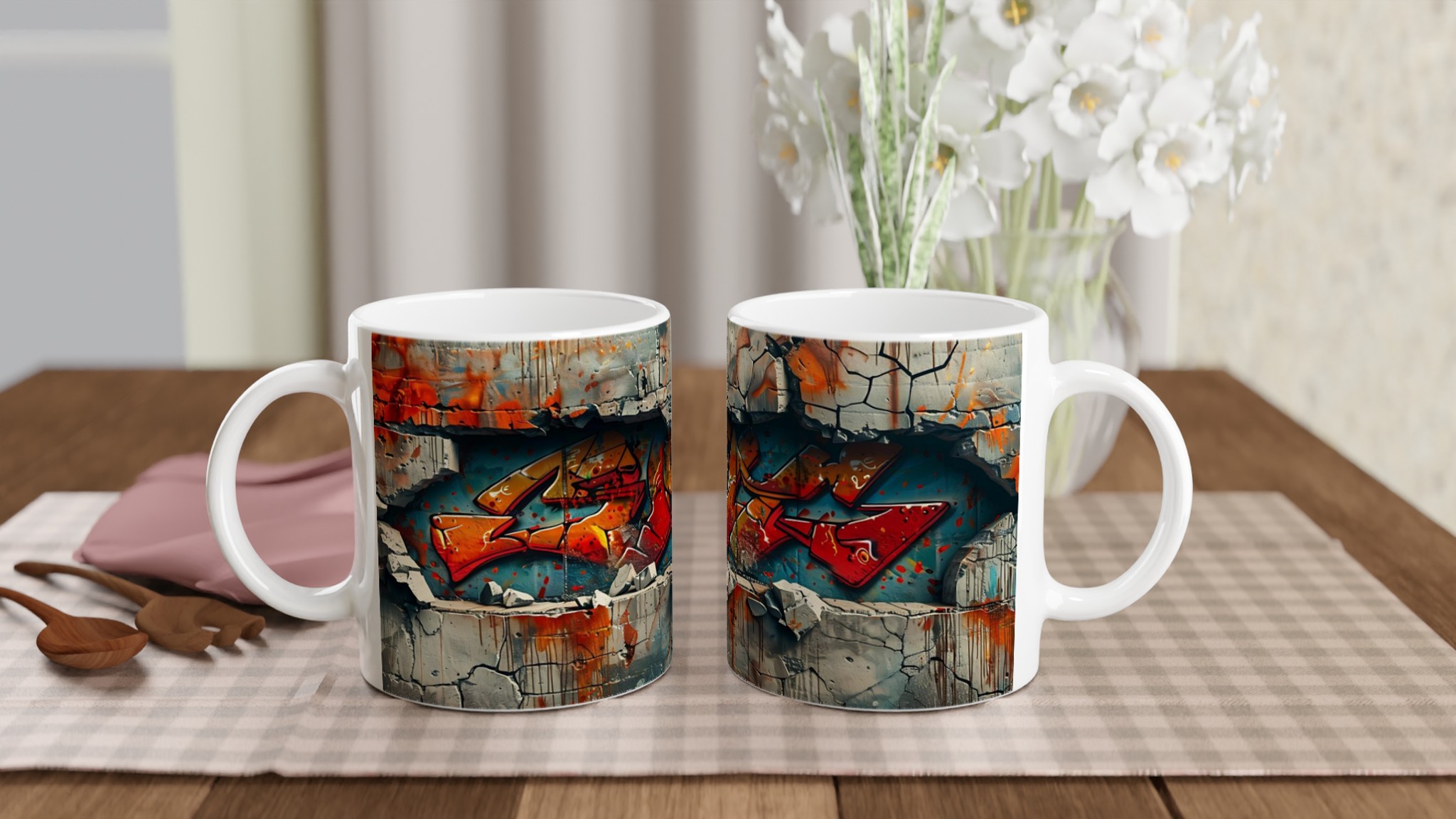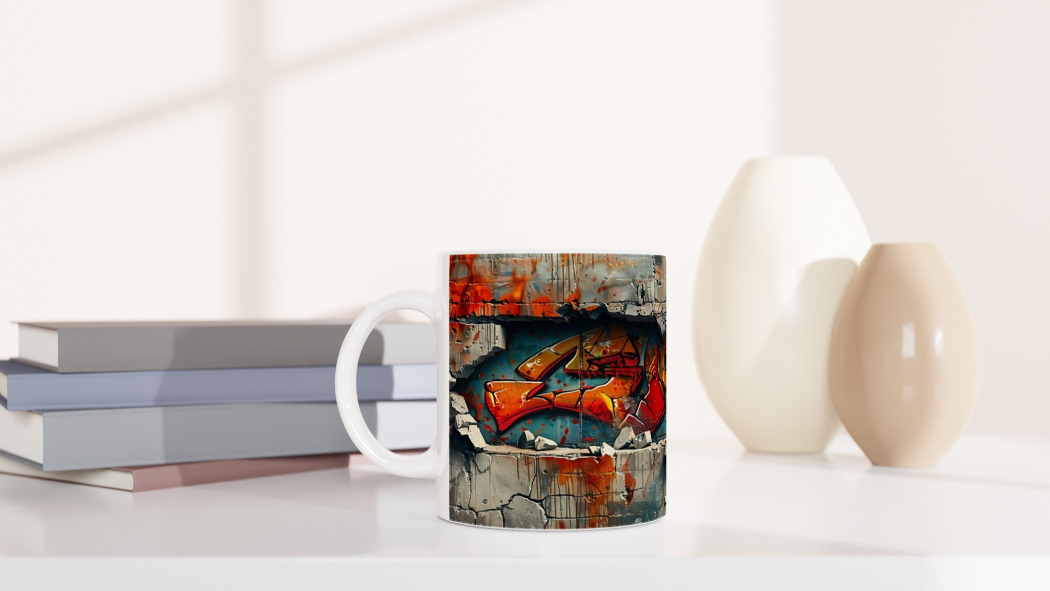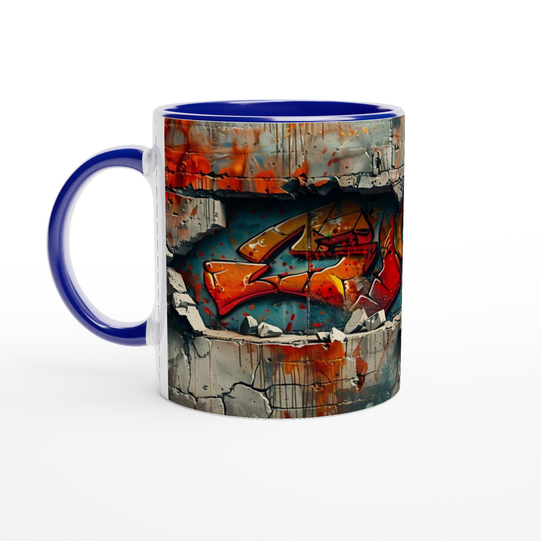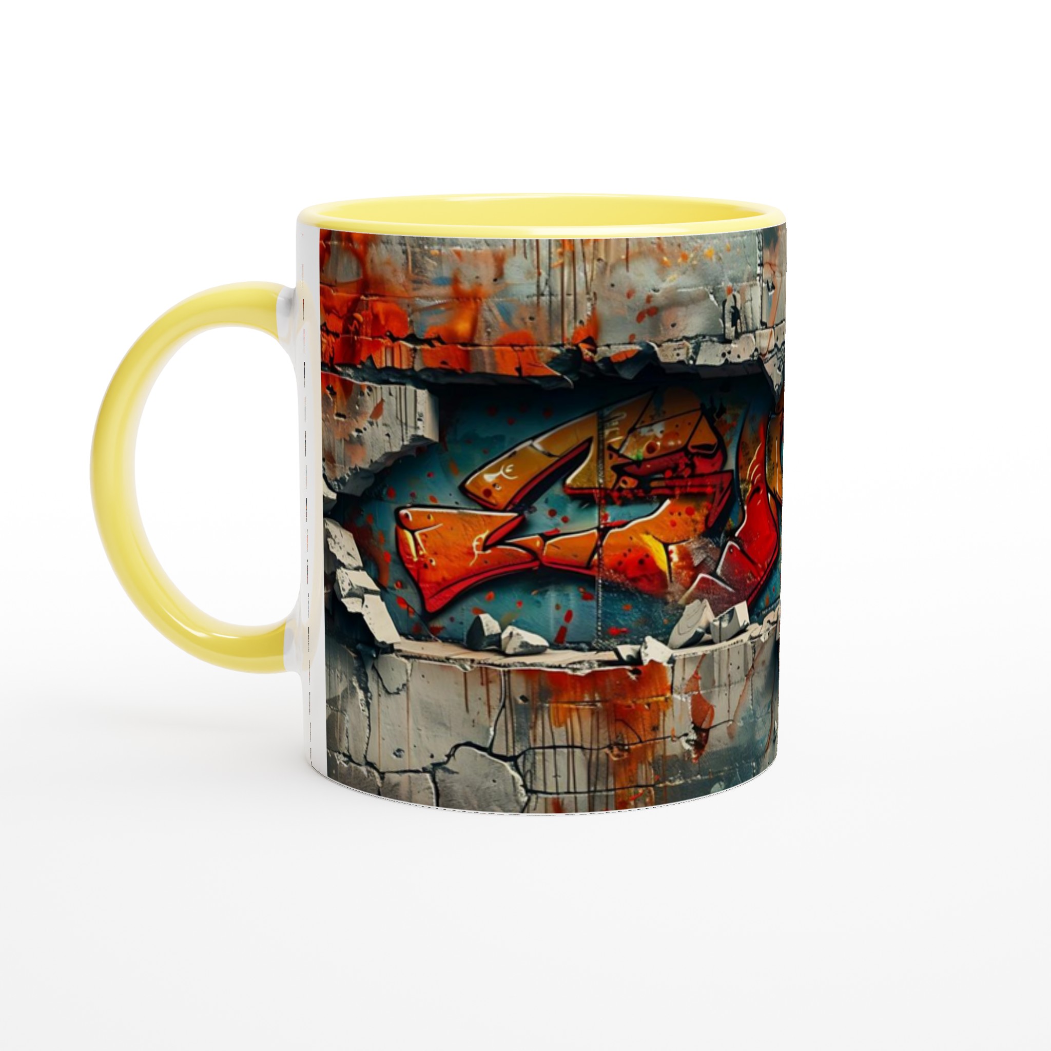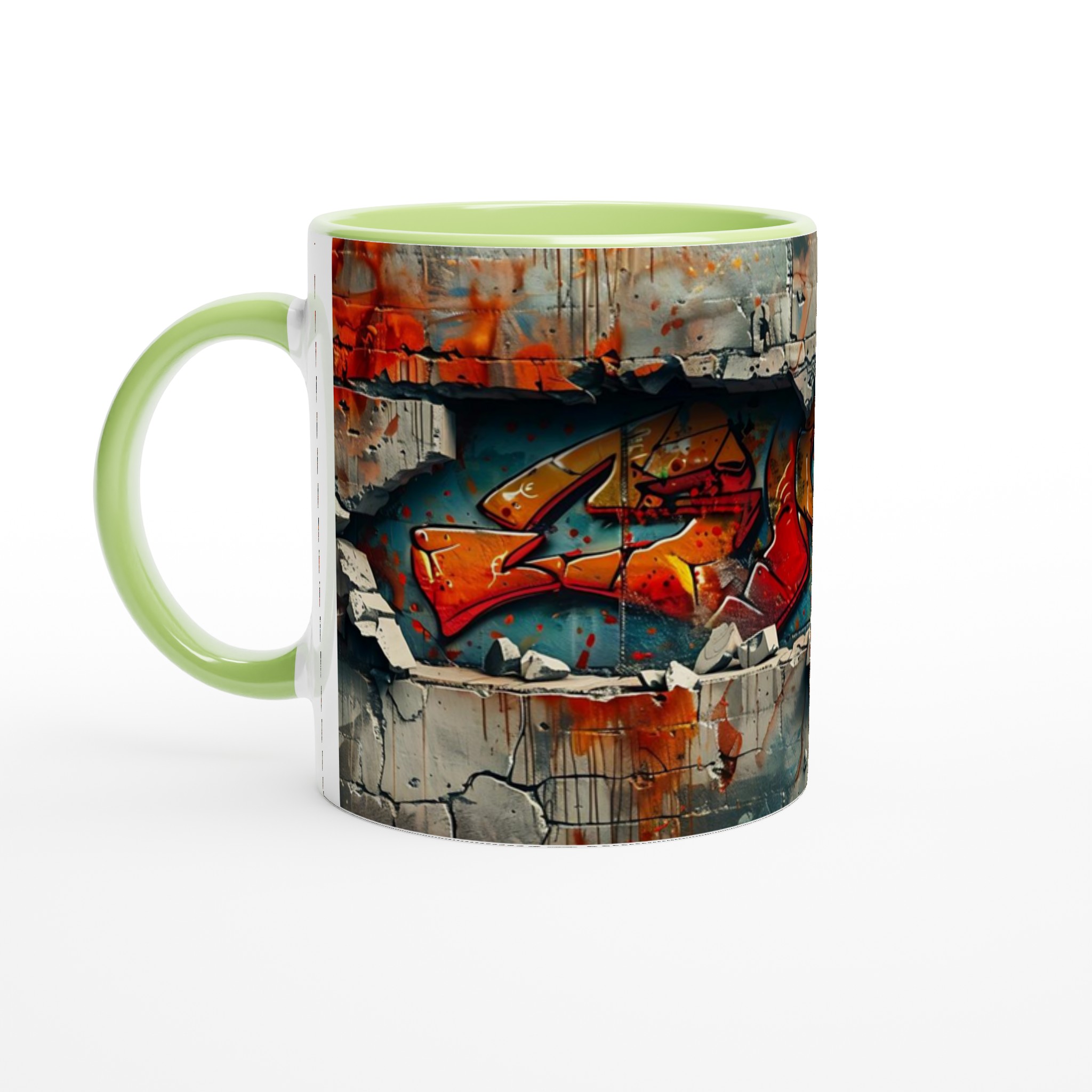 Urban Graffiti Art – White Ceramic Mug 11oz, in your choice of seven vibrant hues