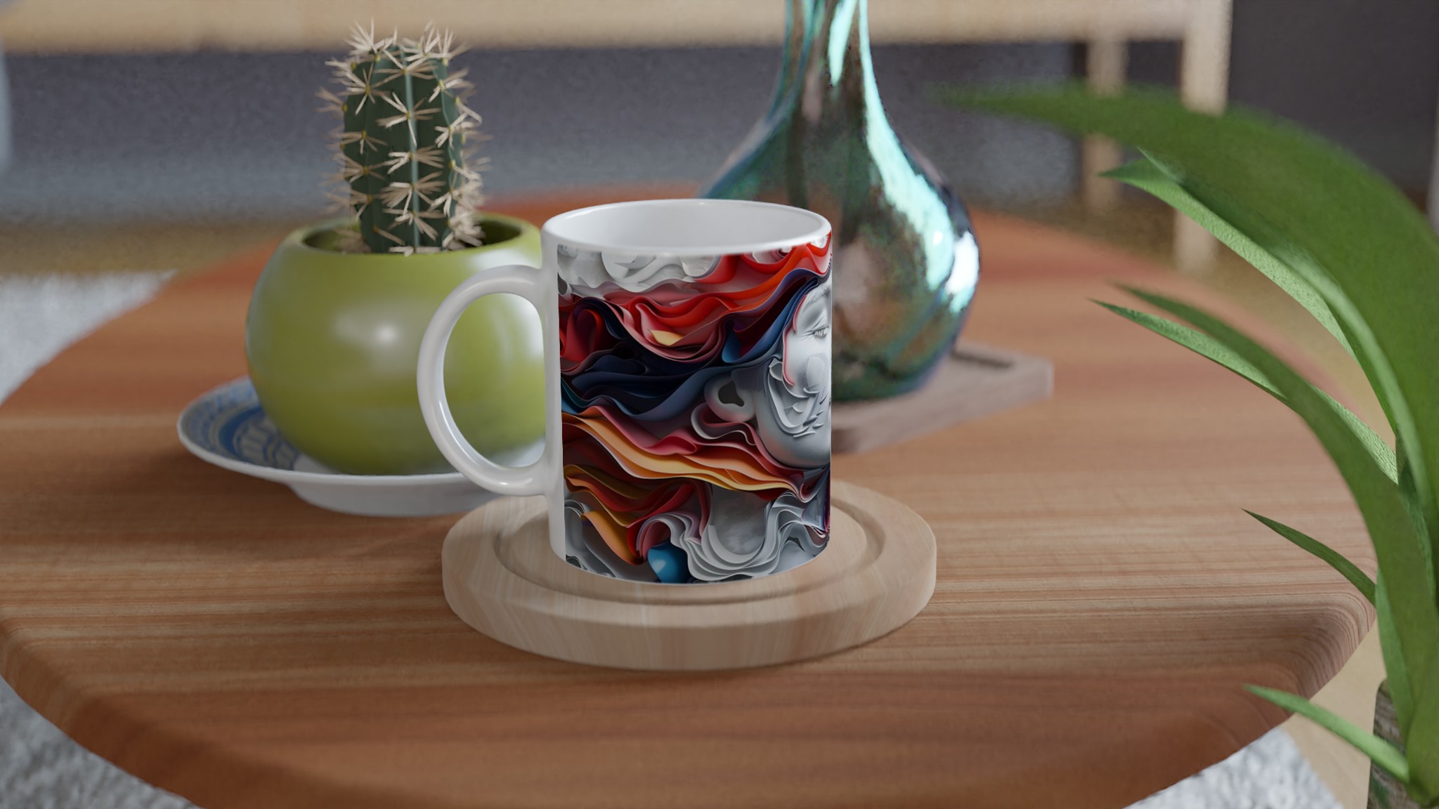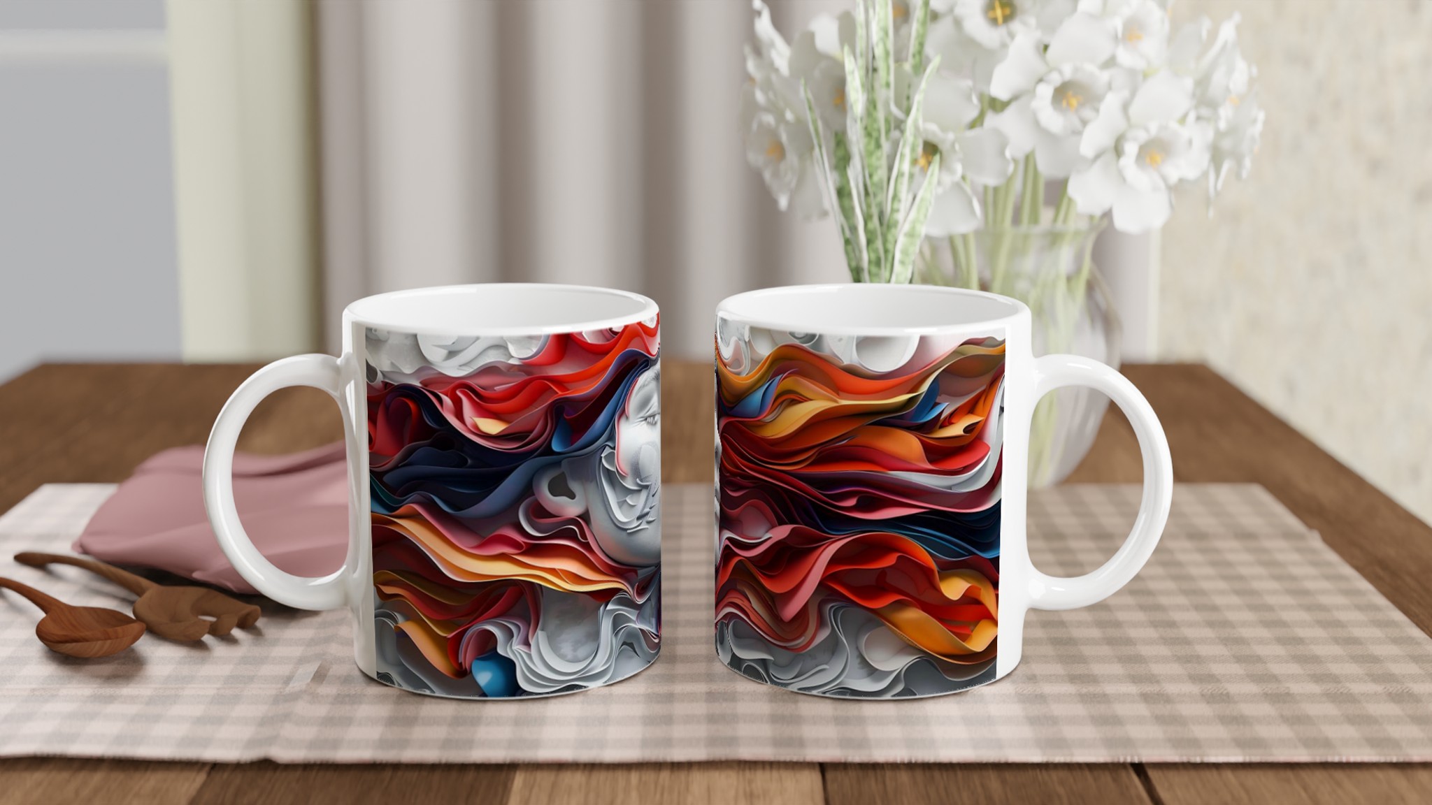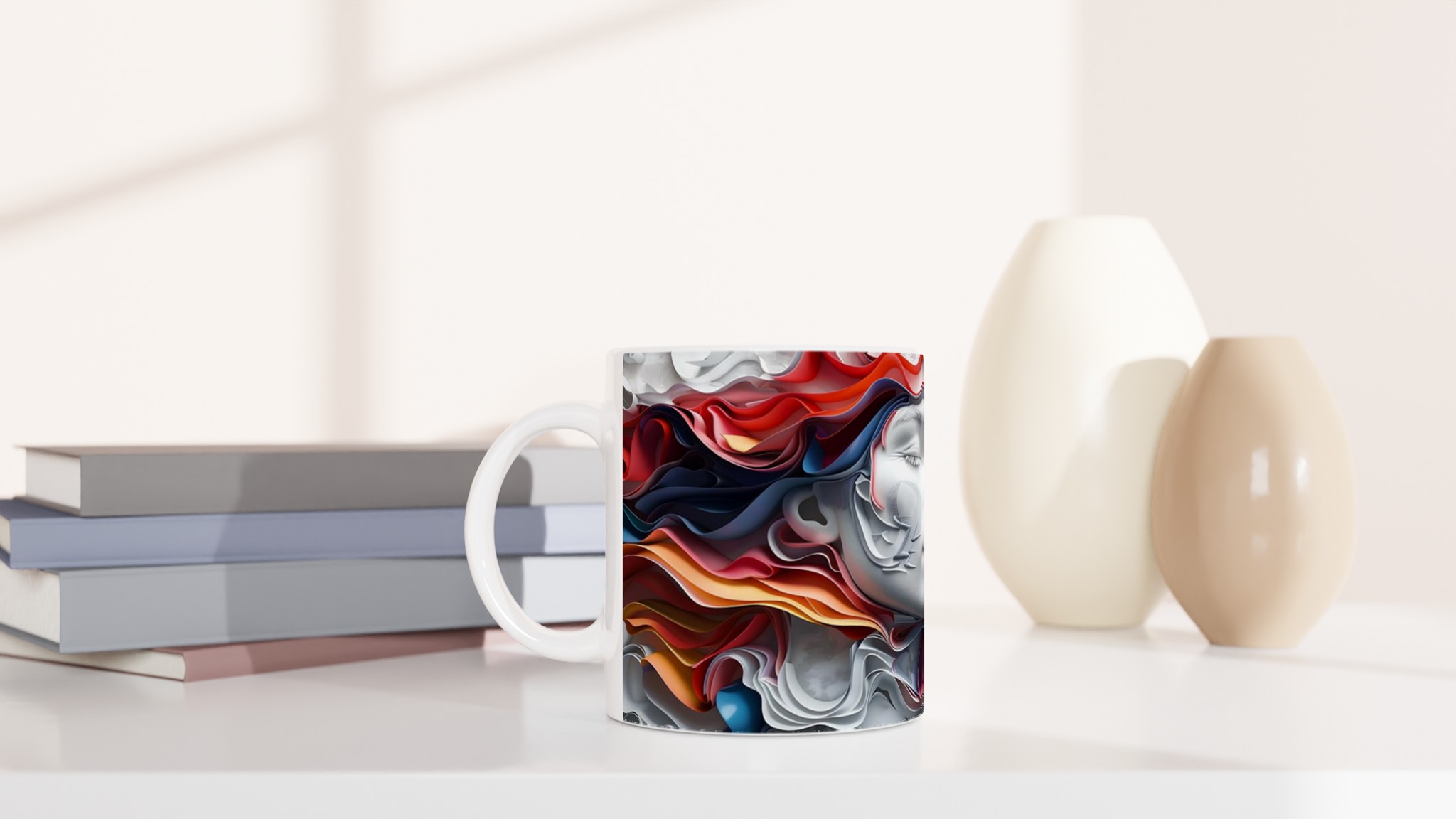 Abstract Dreamscape – White Ceramic Mug 11oz, in your choice of seven vibrant colors