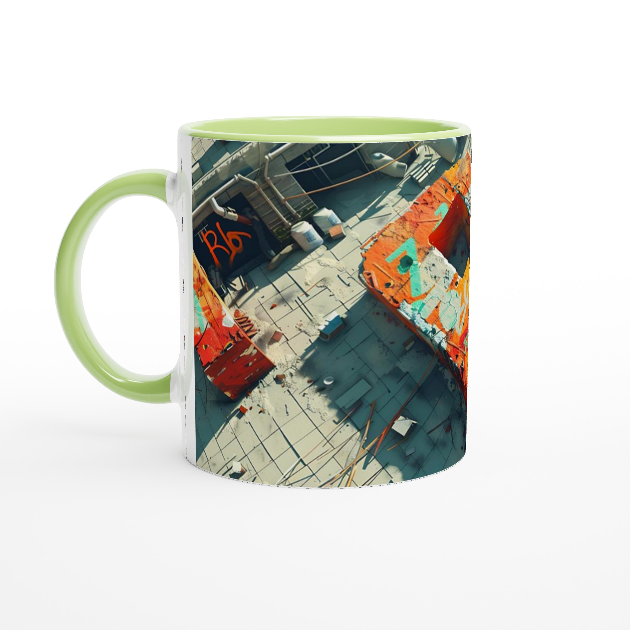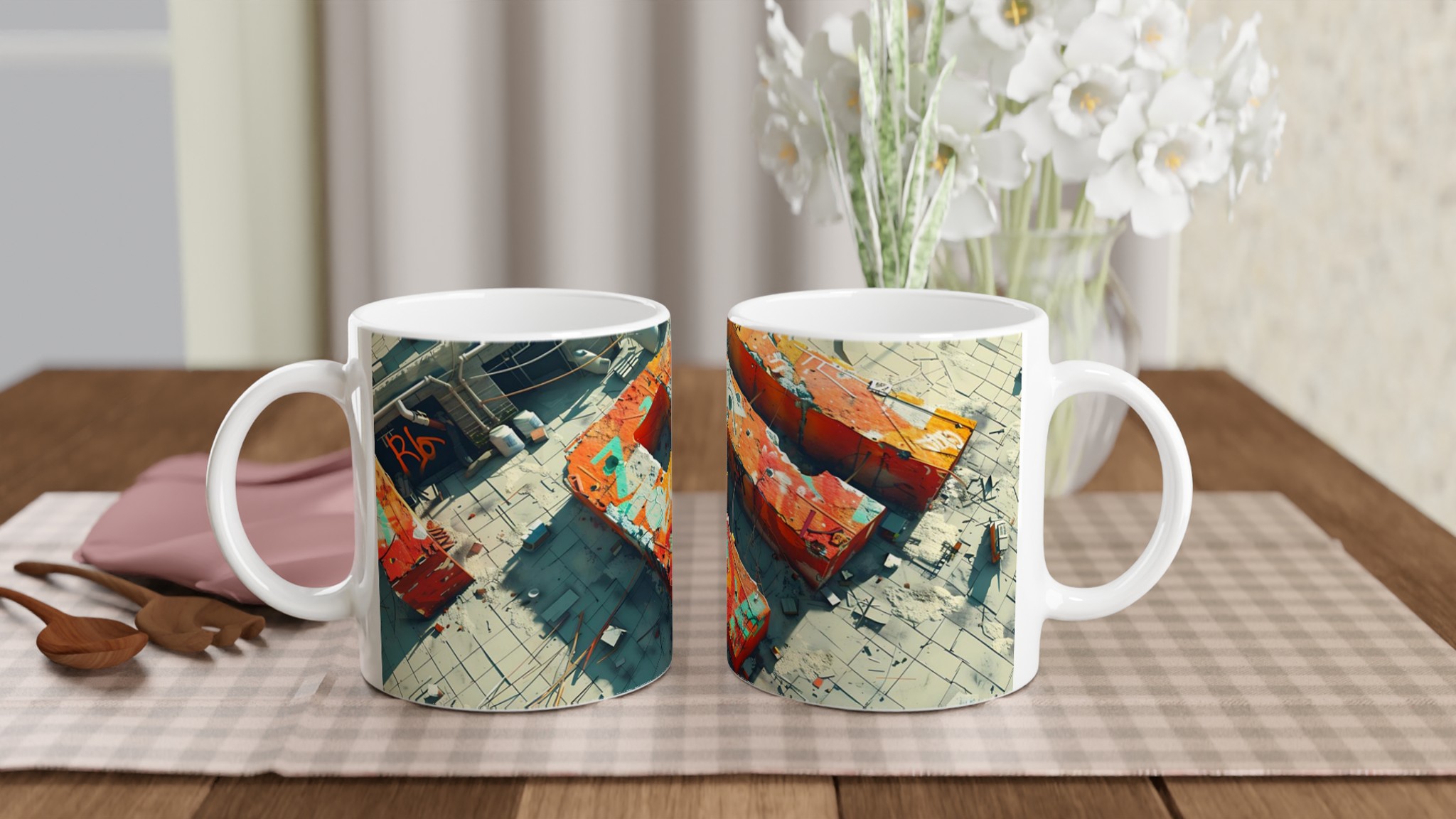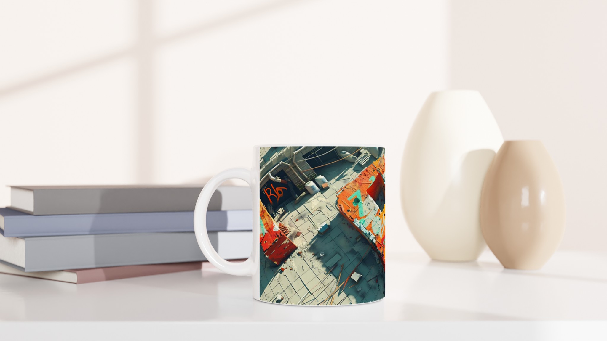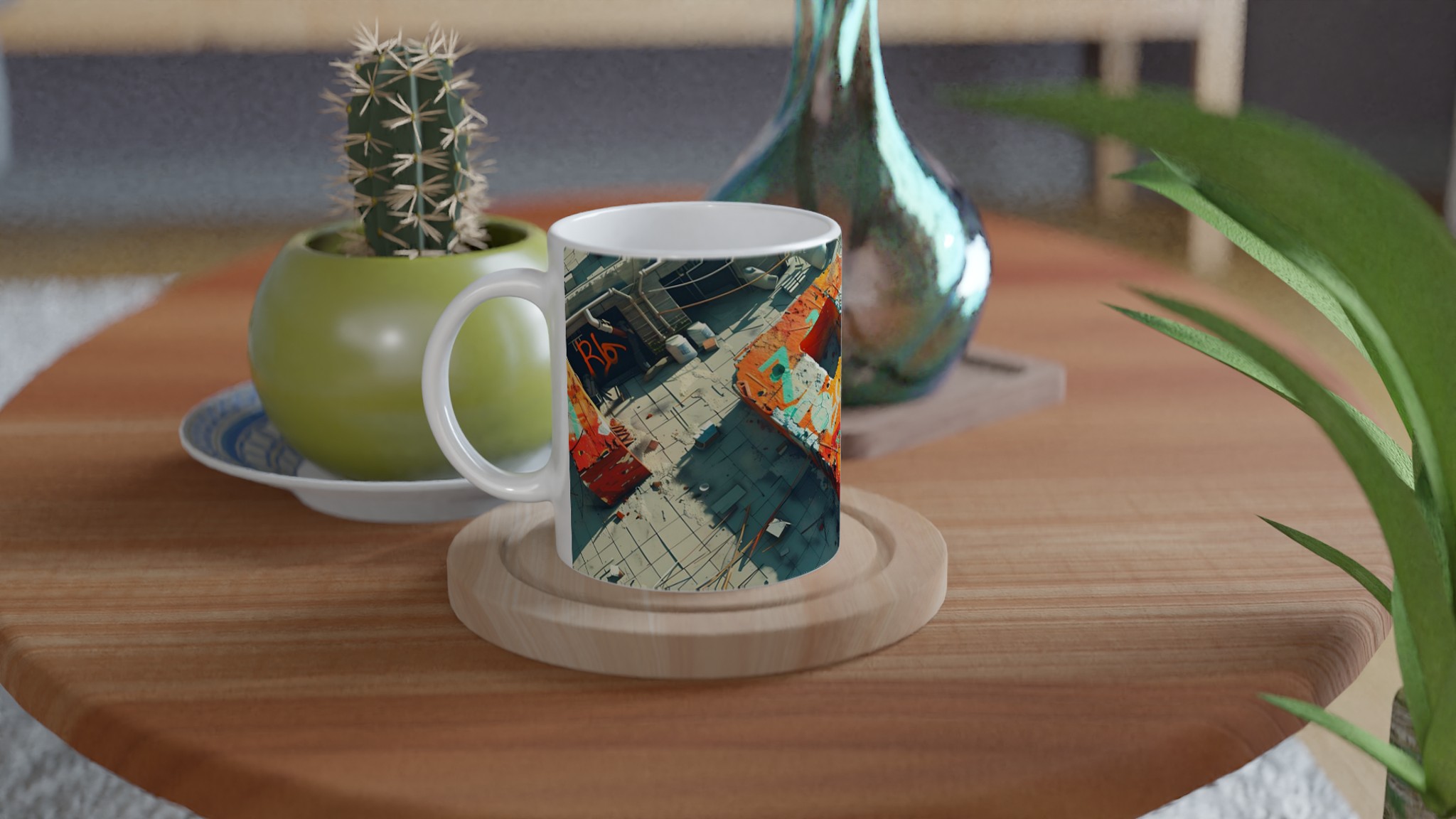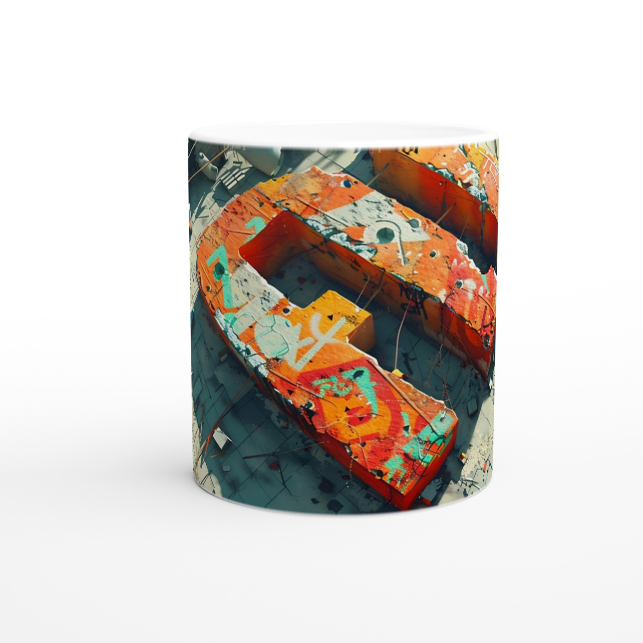 Urban Grit & Graffiti – White Ceramic Mug 11oz, in your choice of seven vibrant shades