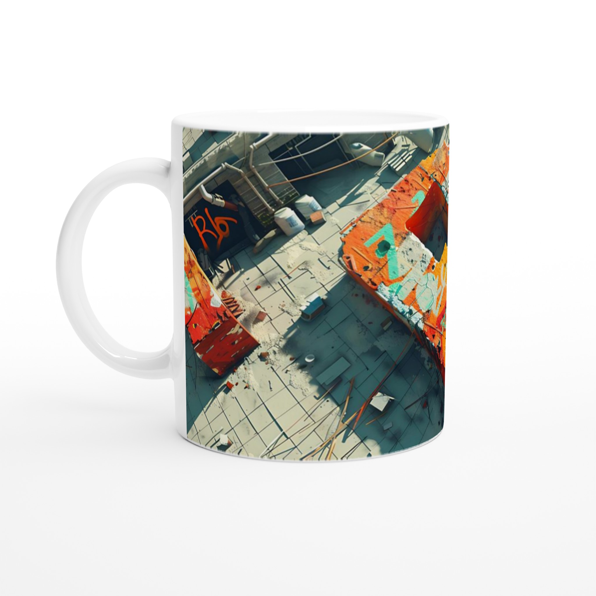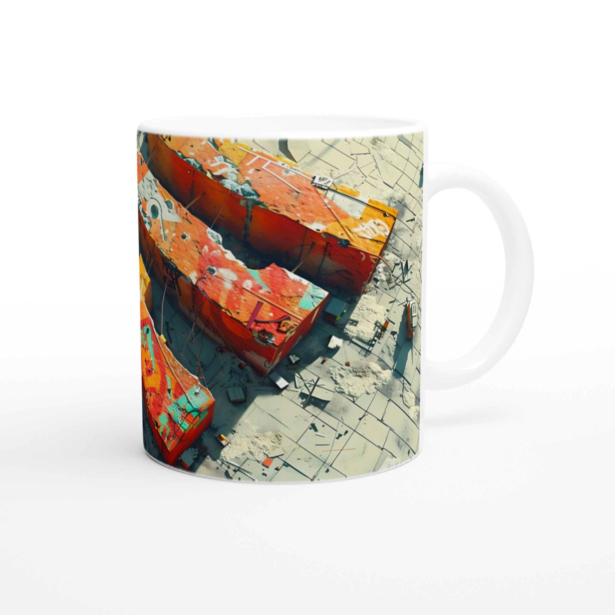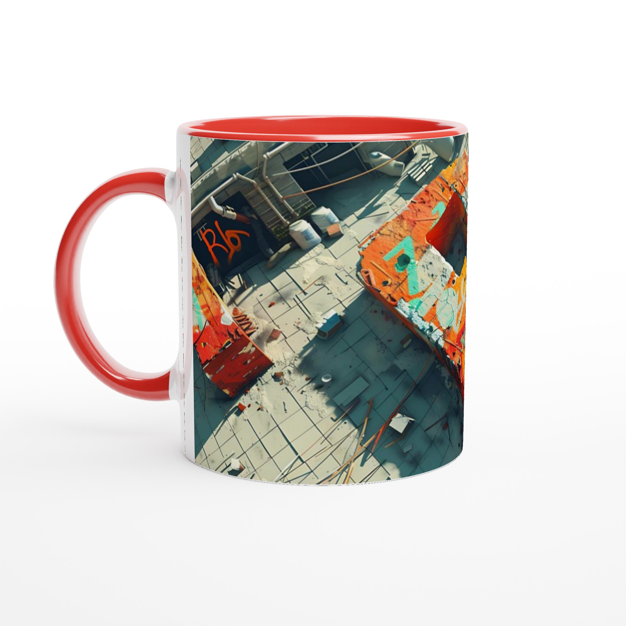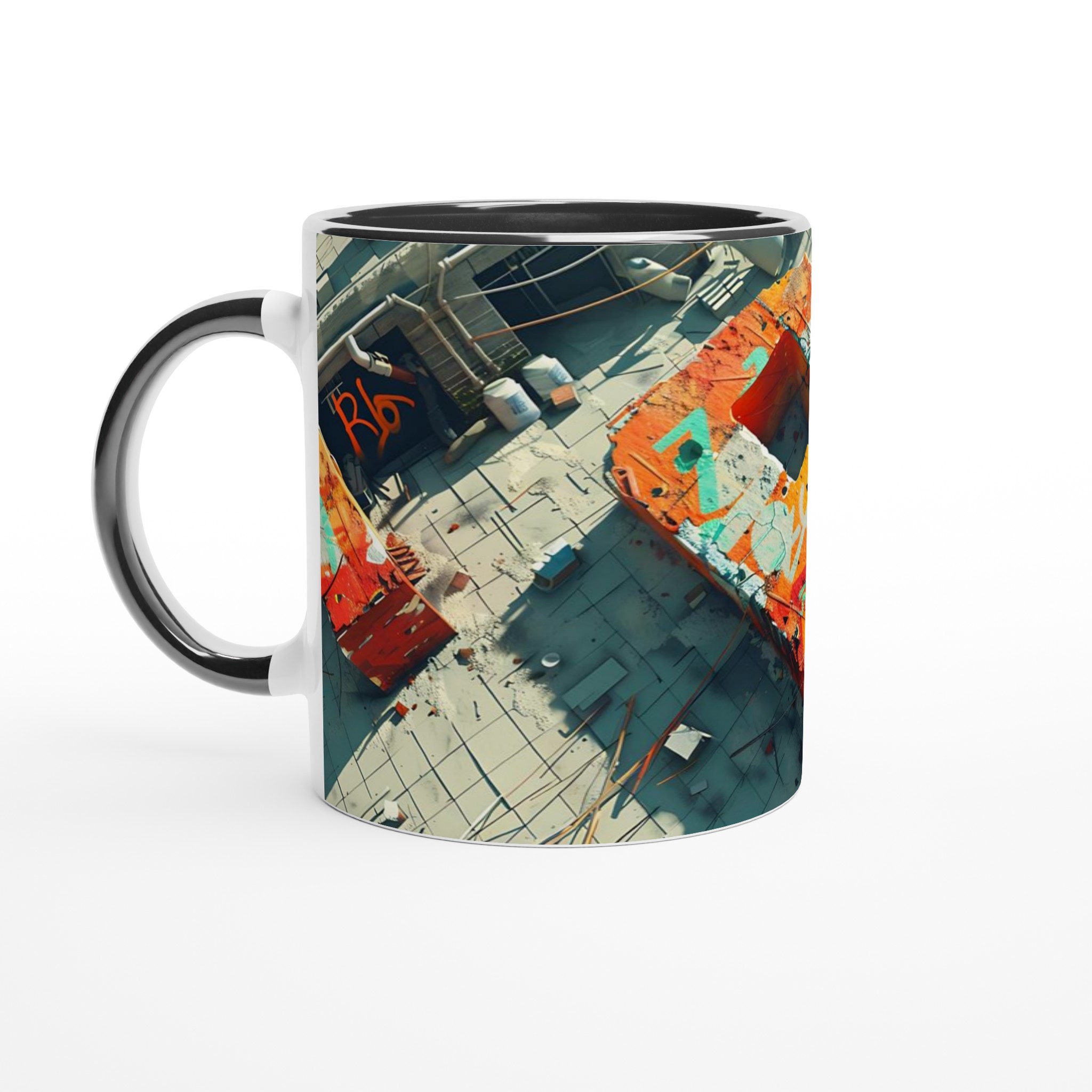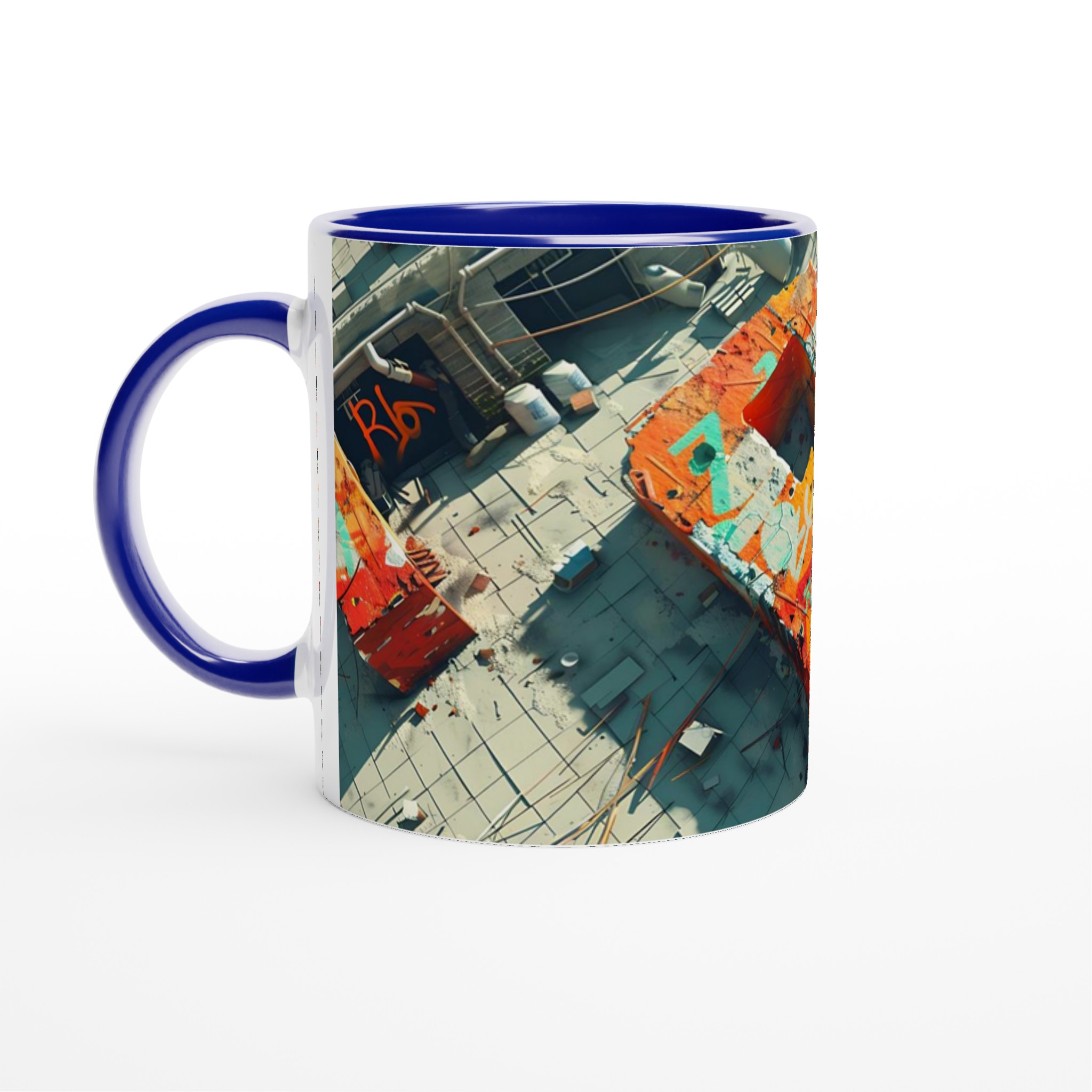 Urban Grit & Graffiti – White Ceramic Mug 11oz, in your choice of seven vibrant shades