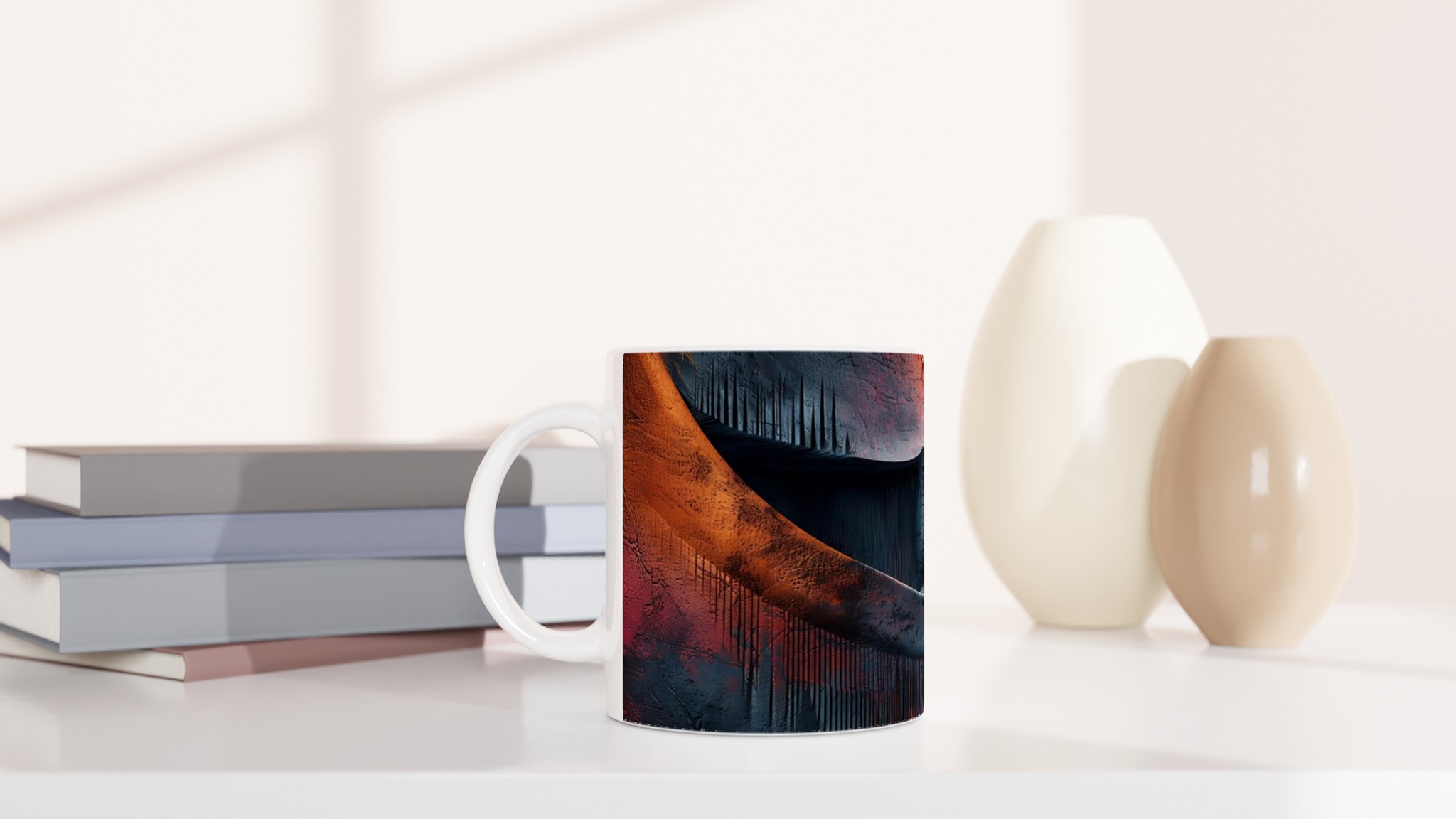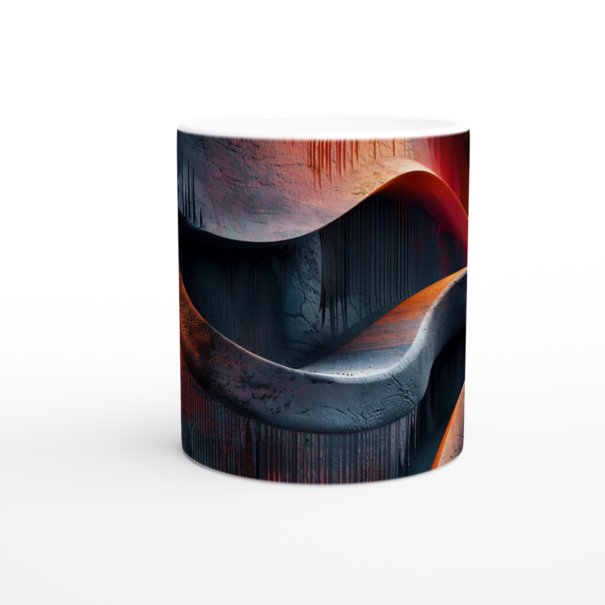 Abstract Waves Art – Everyday Favorite Ceramic Mug 11oz, in your choice of seven vibrant hues