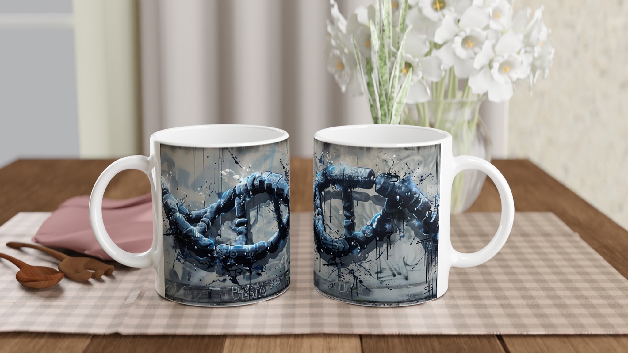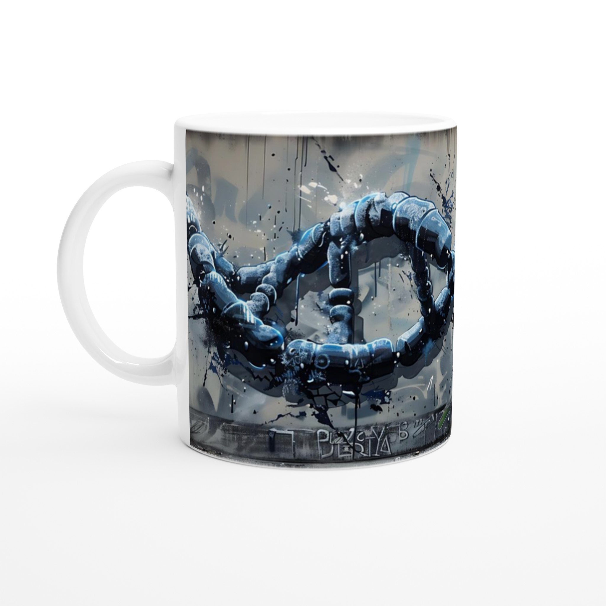 Abstract DNA Strand Art – Ceramic Mug 11oz, in a choice of seven vibrant colors