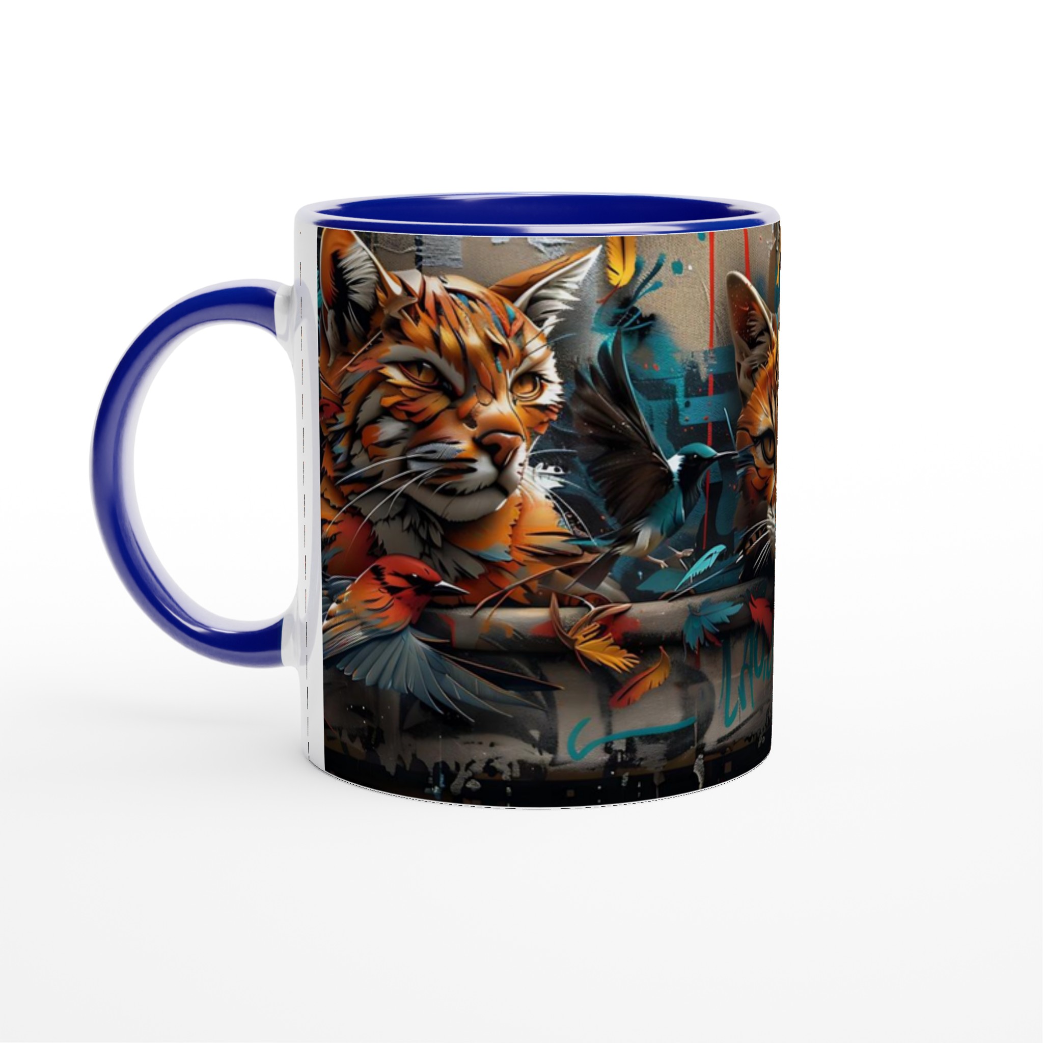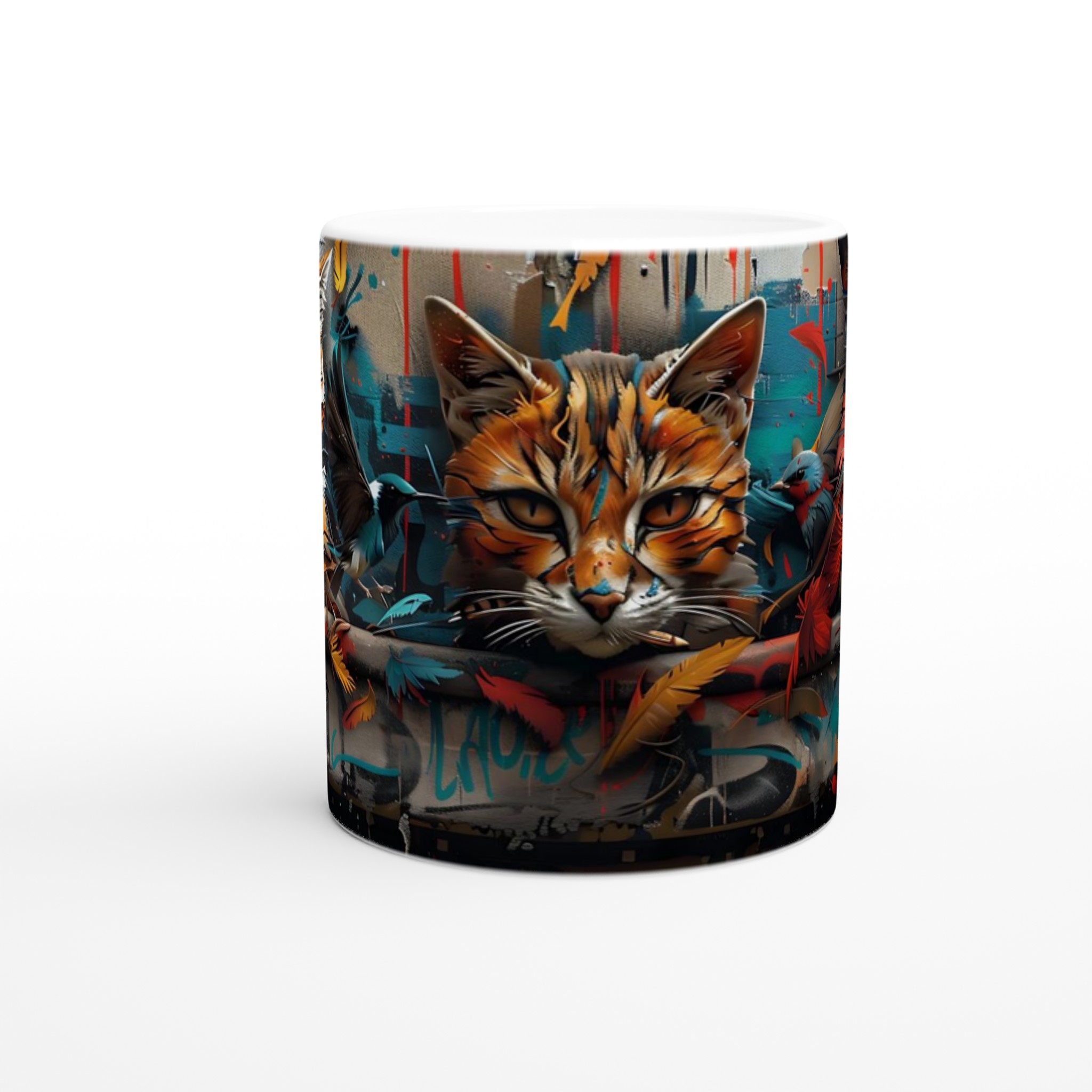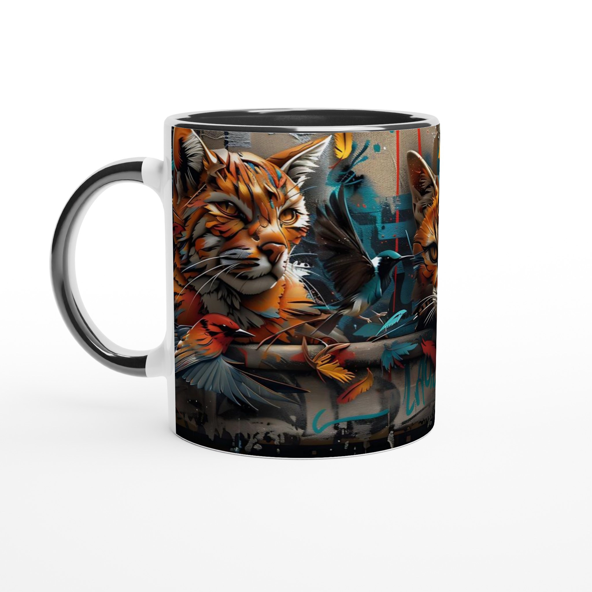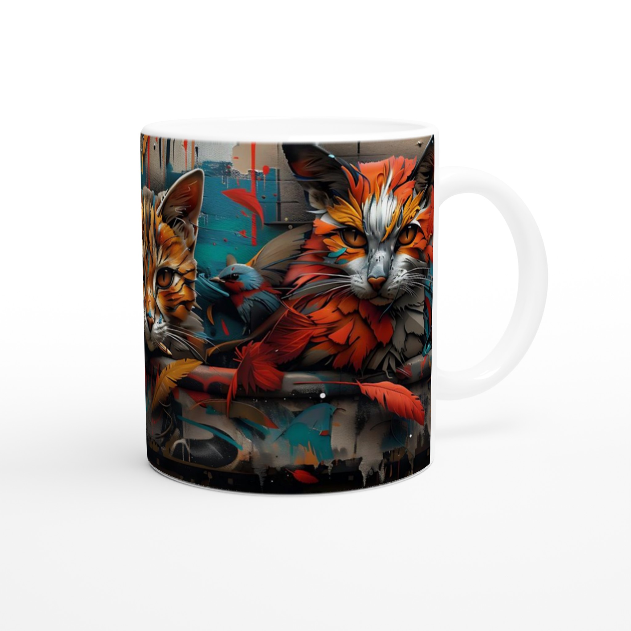 Street Art Feline Fusion – Vibrant Ceramic Mug 11oz, in your choice of seven striking hues