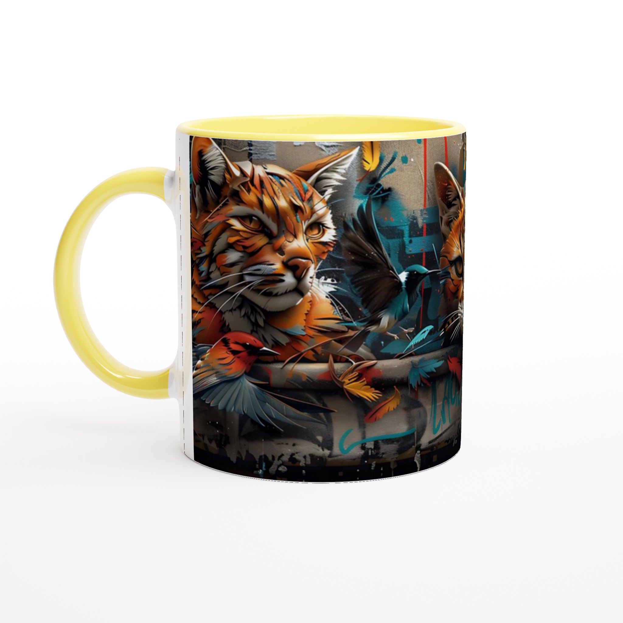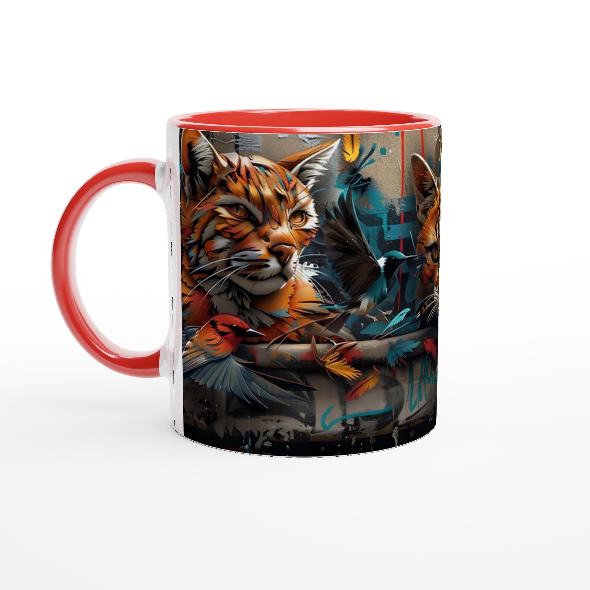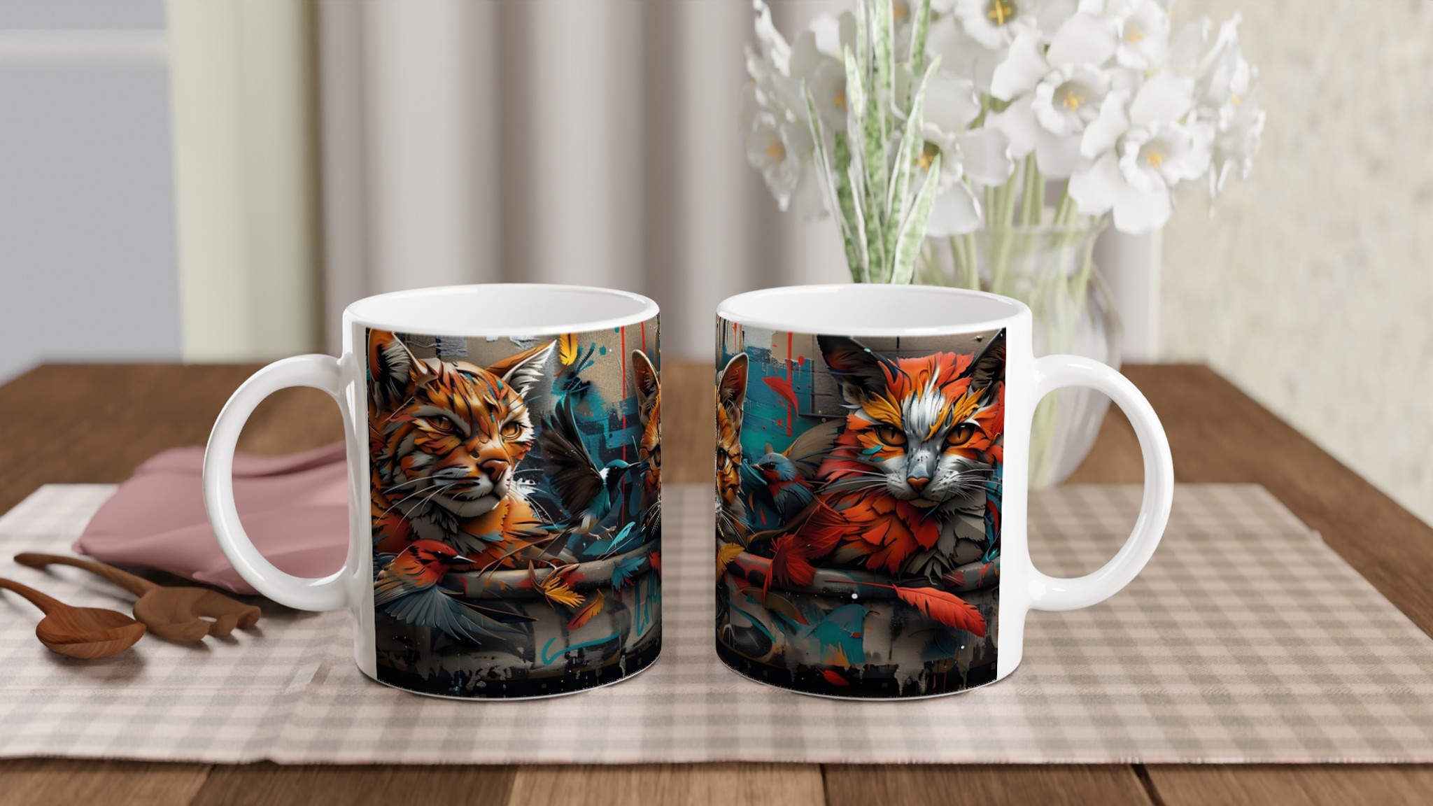 Street Art Feline Fusion – Vibrant Ceramic Mug 11oz, in your choice of seven striking hues