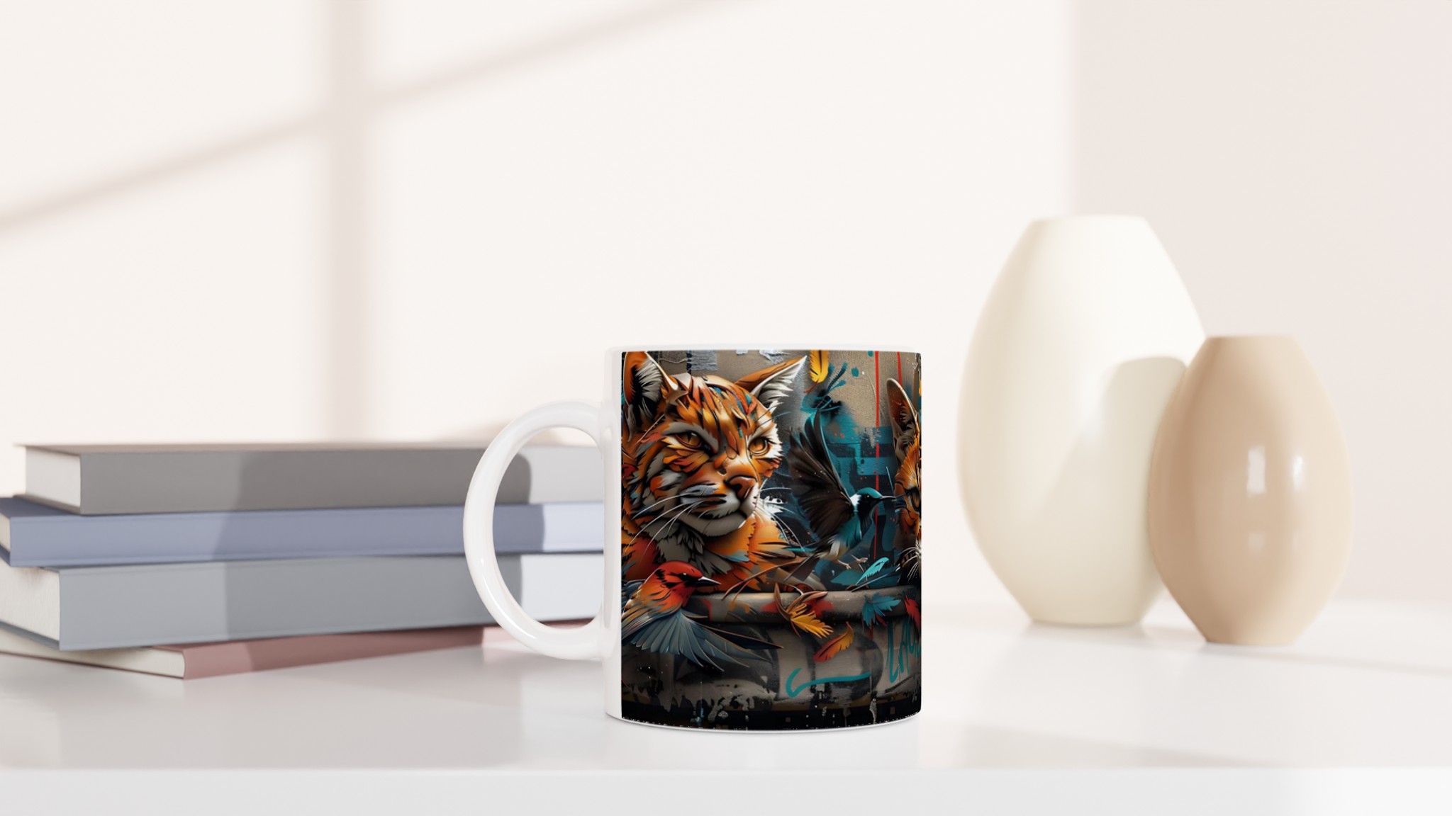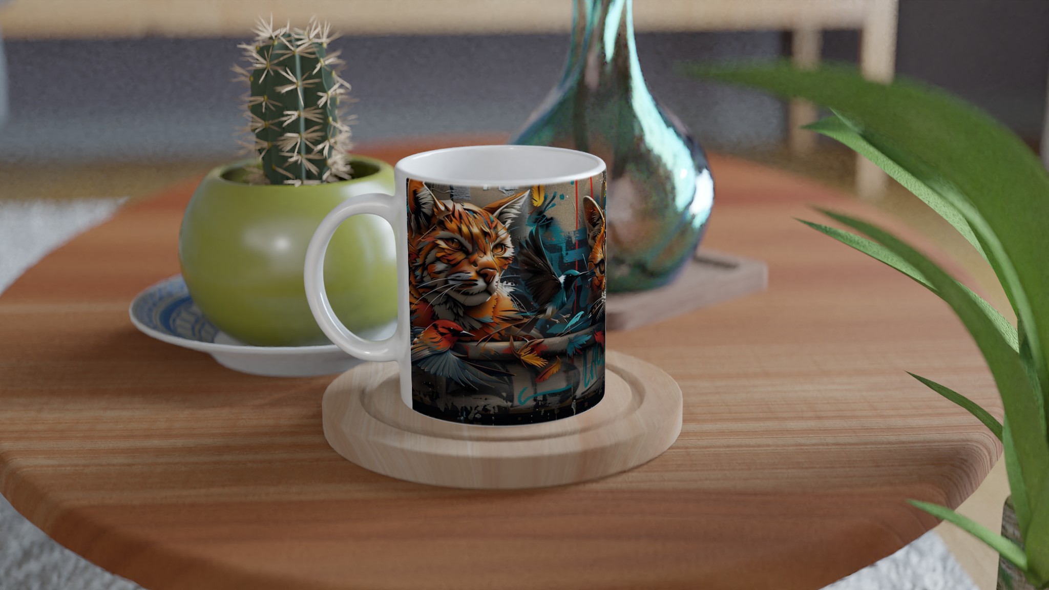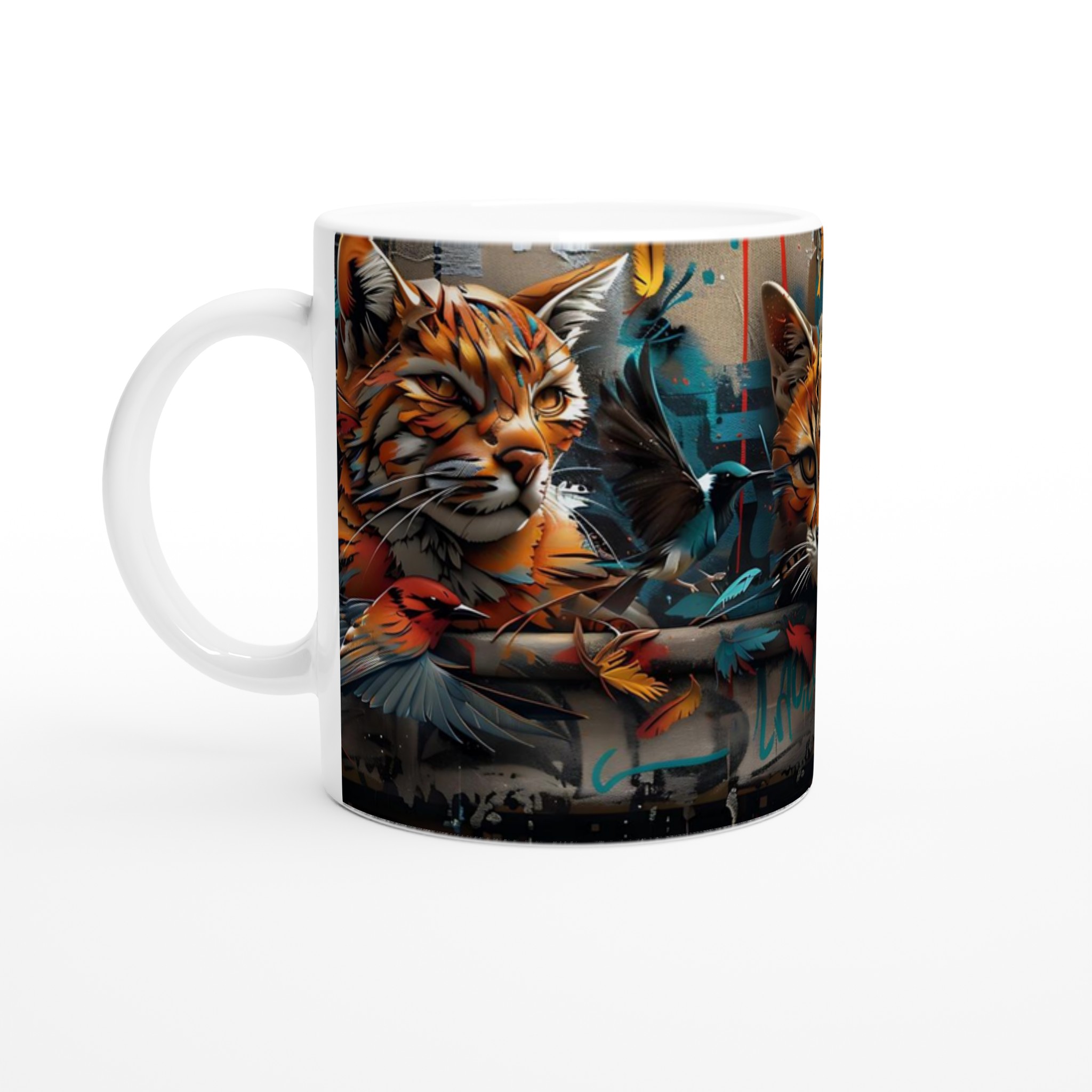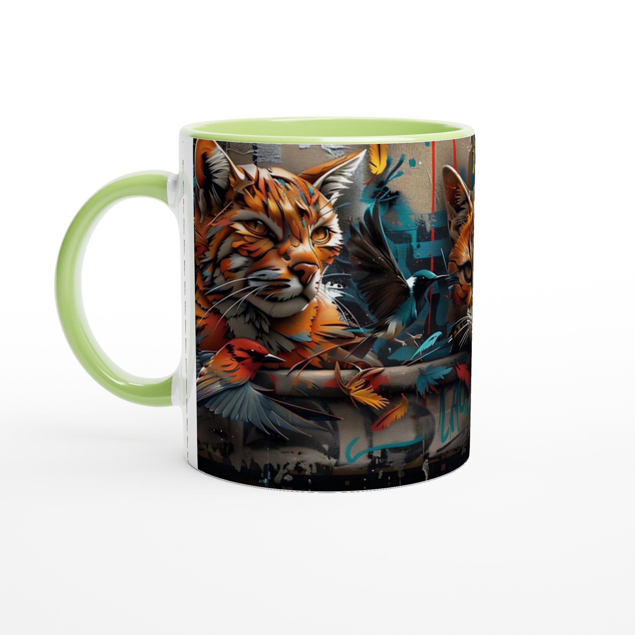 Street Art Feline Fusion – Vibrant Ceramic Mug 11oz, in your choice of seven striking hues