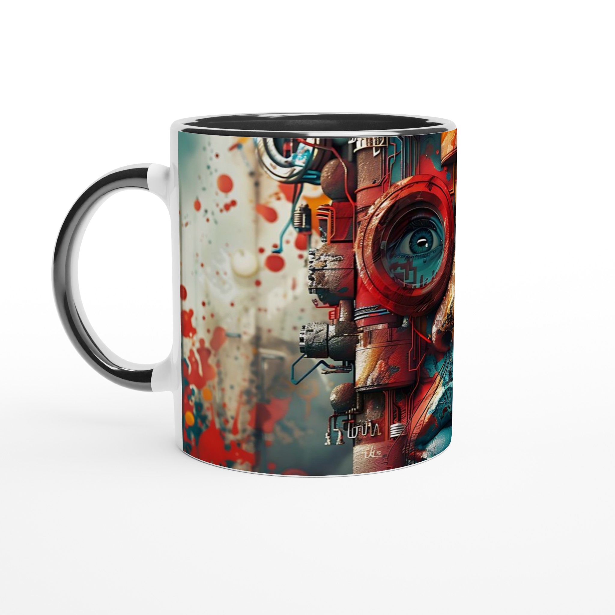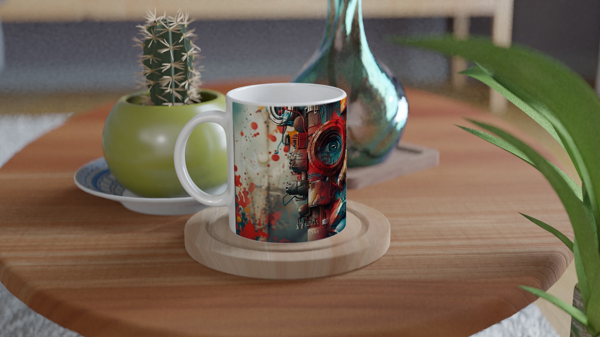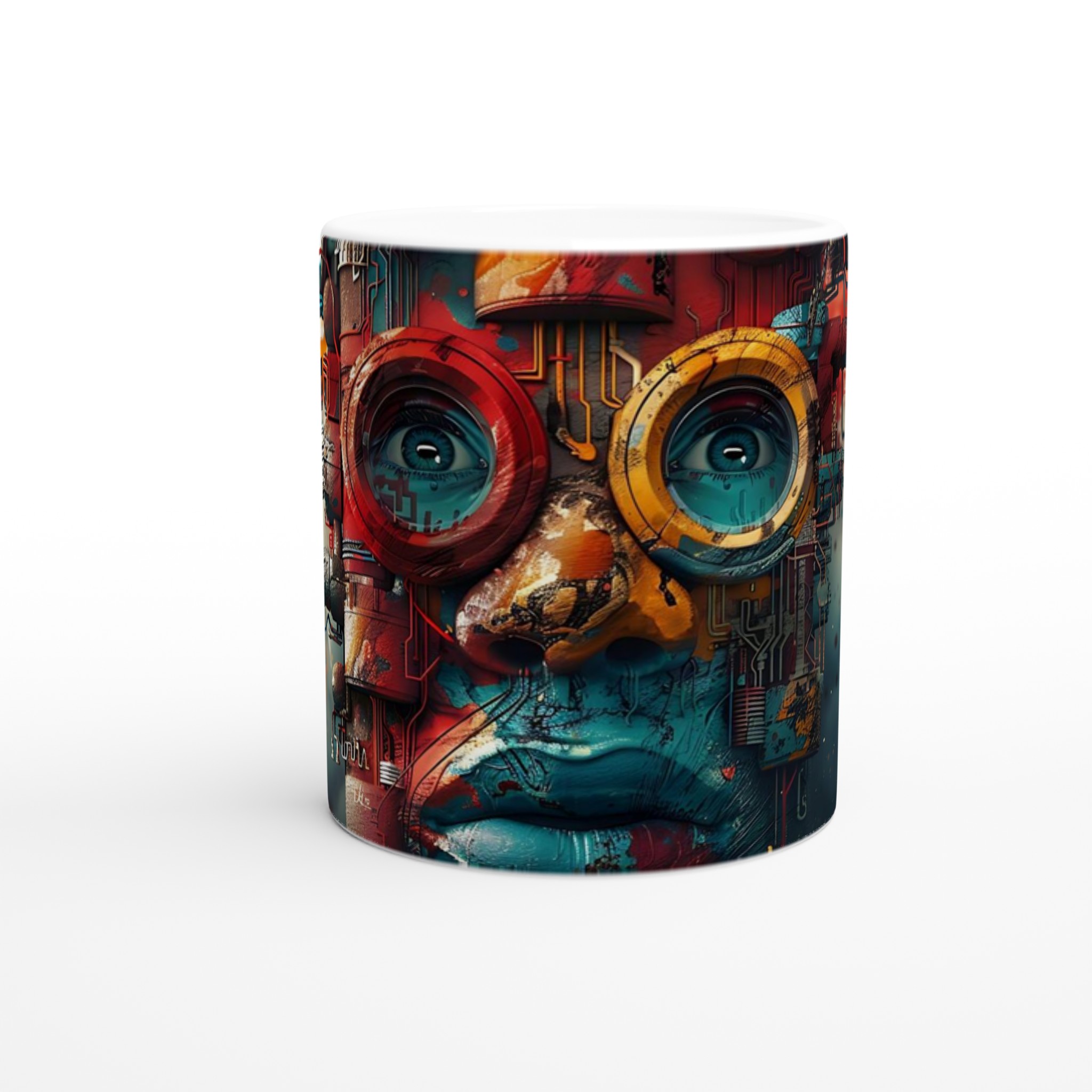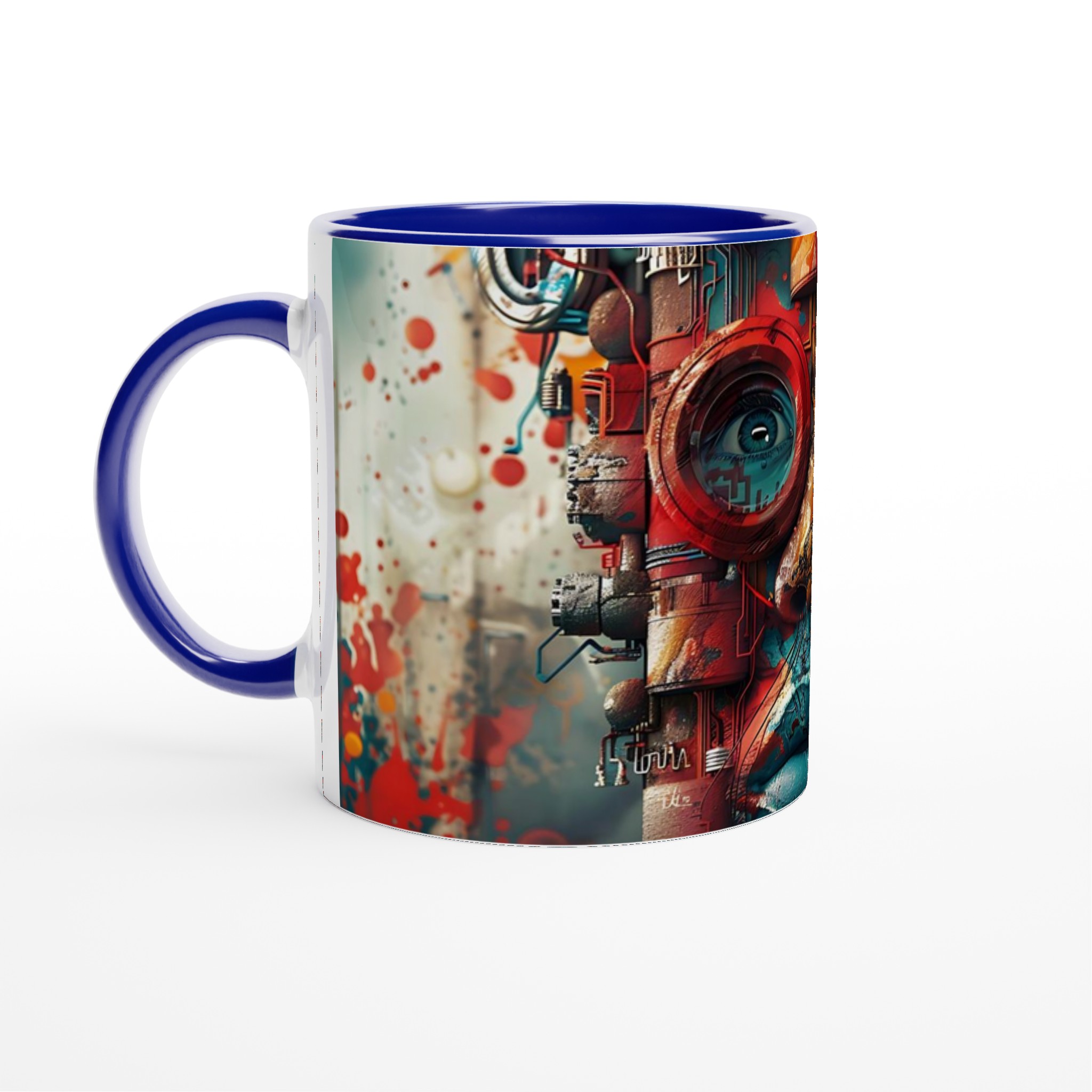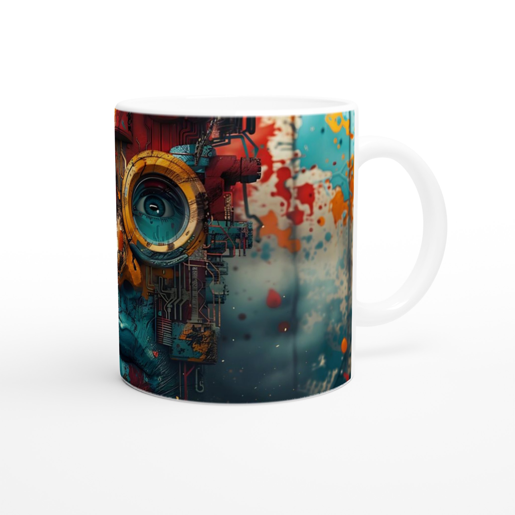Abstract Cybernetic Gaze – Artistic Ceramic Mug 11oz, in your choice of seven vibrant shades