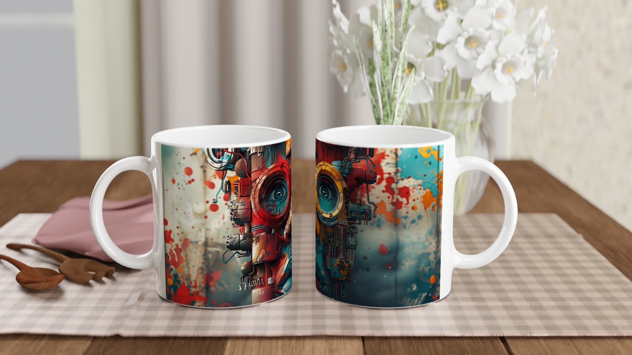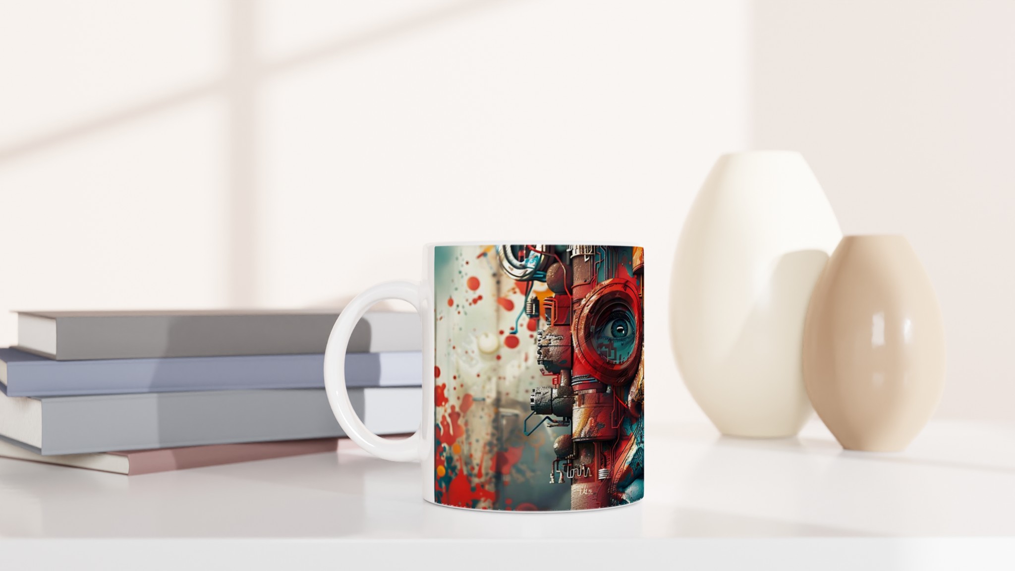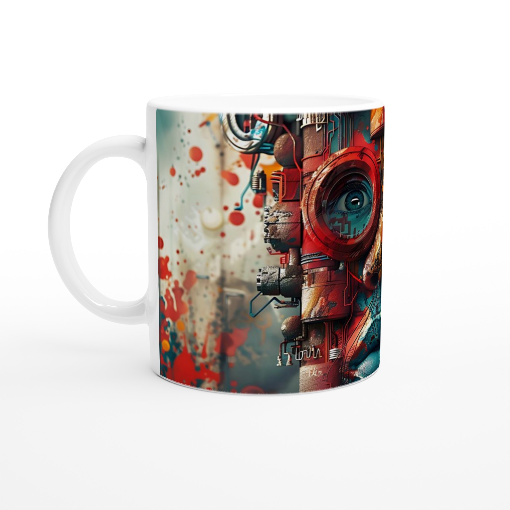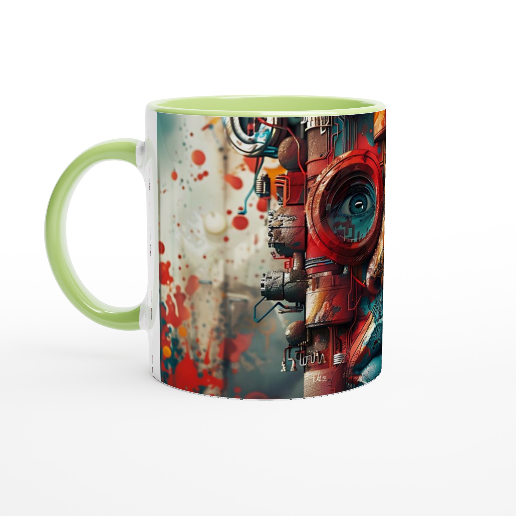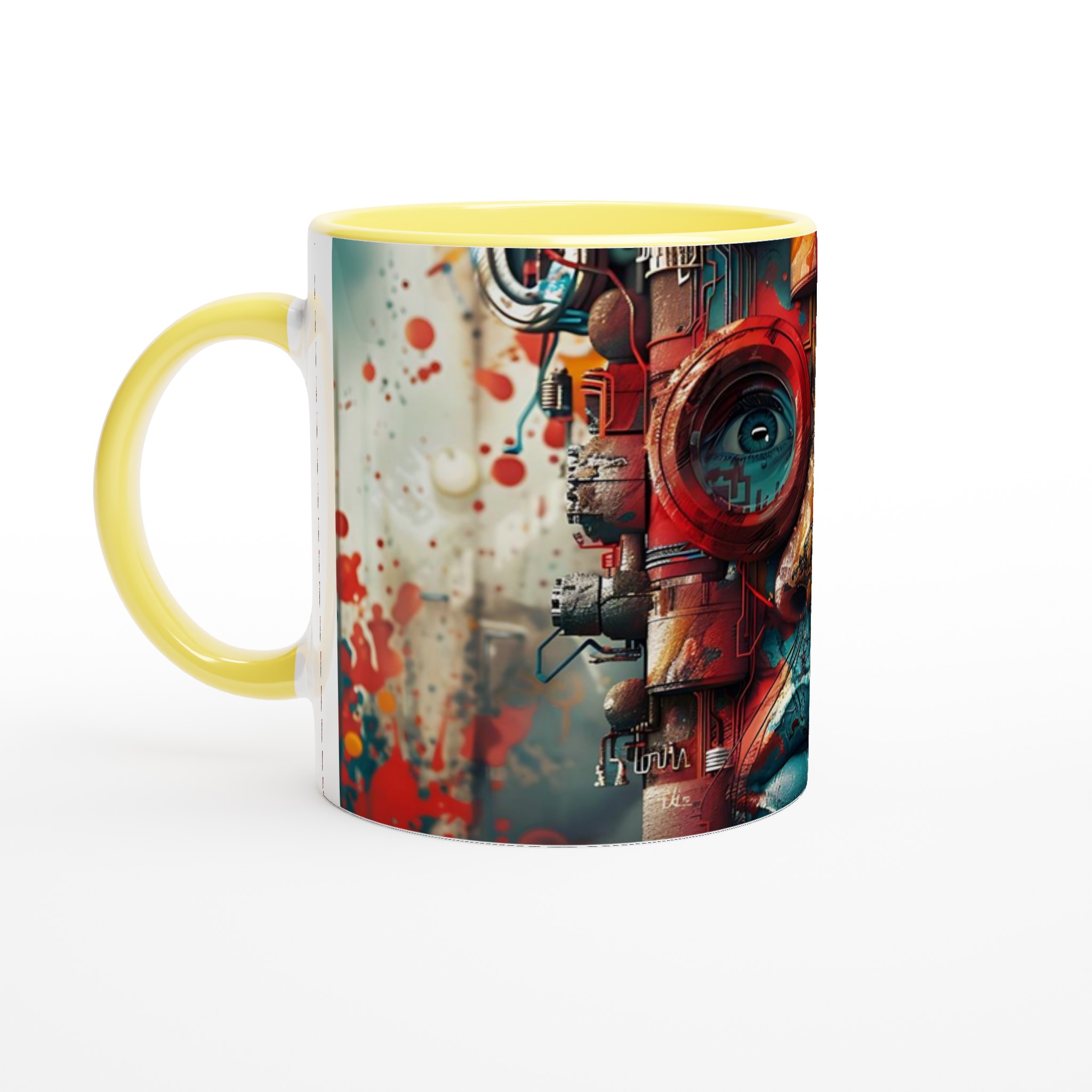 Abstract Cybernetic Gaze – Artistic Ceramic Mug 11oz, in your choice of seven vibrant shades