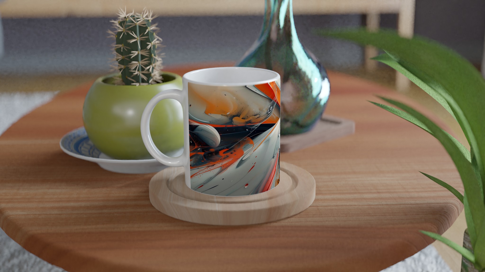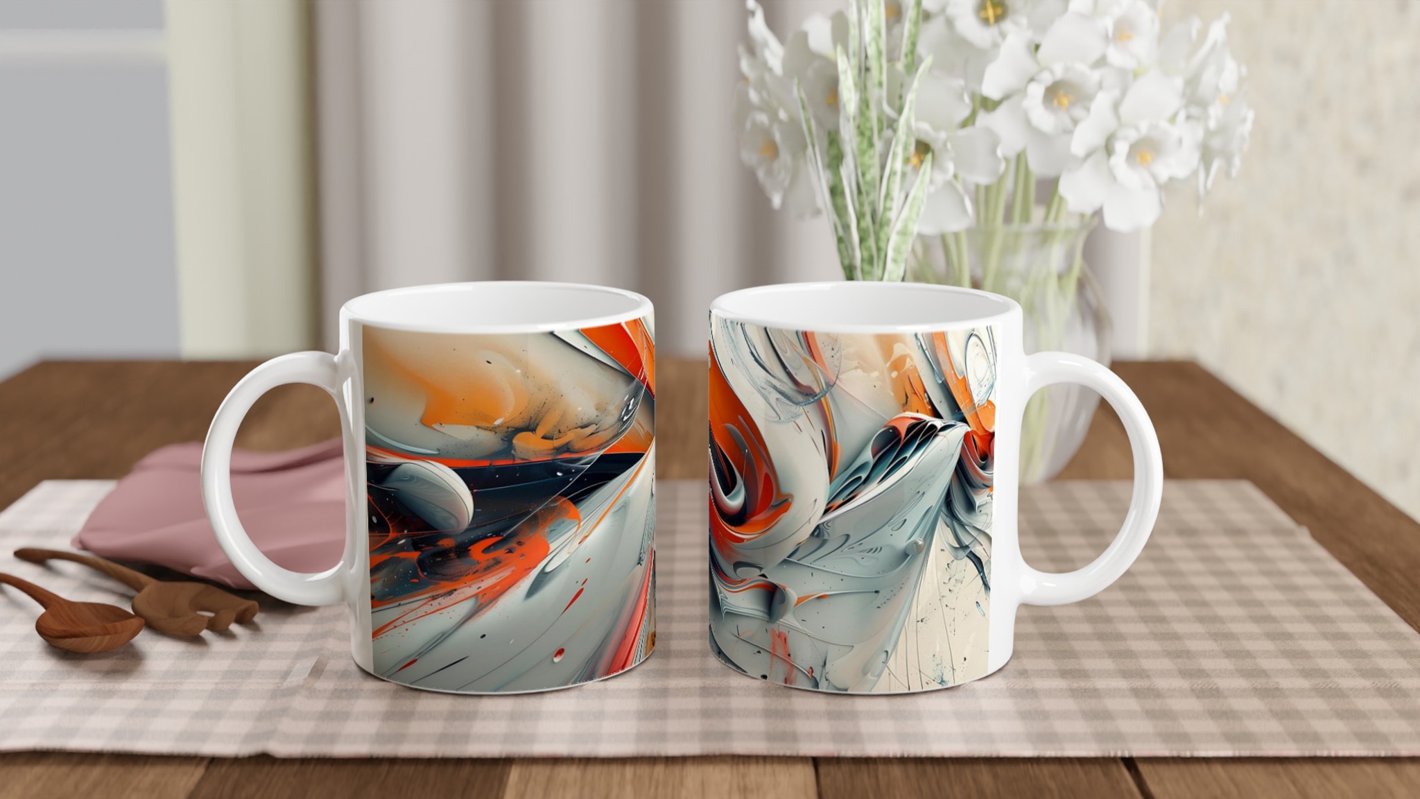 Vibrant Abstract Swirls – White Ceramic Mug 11oz in your choice of seven captivating colors