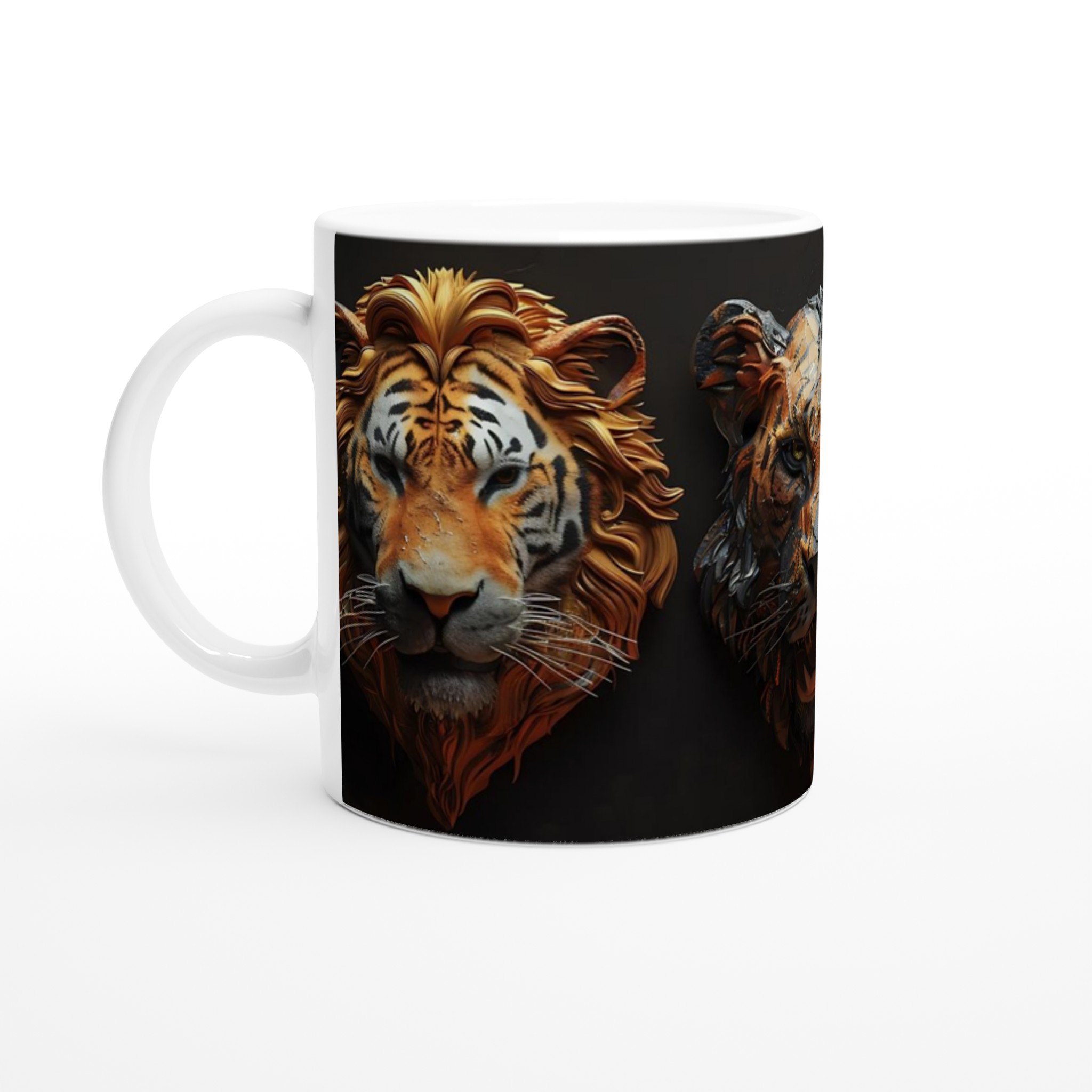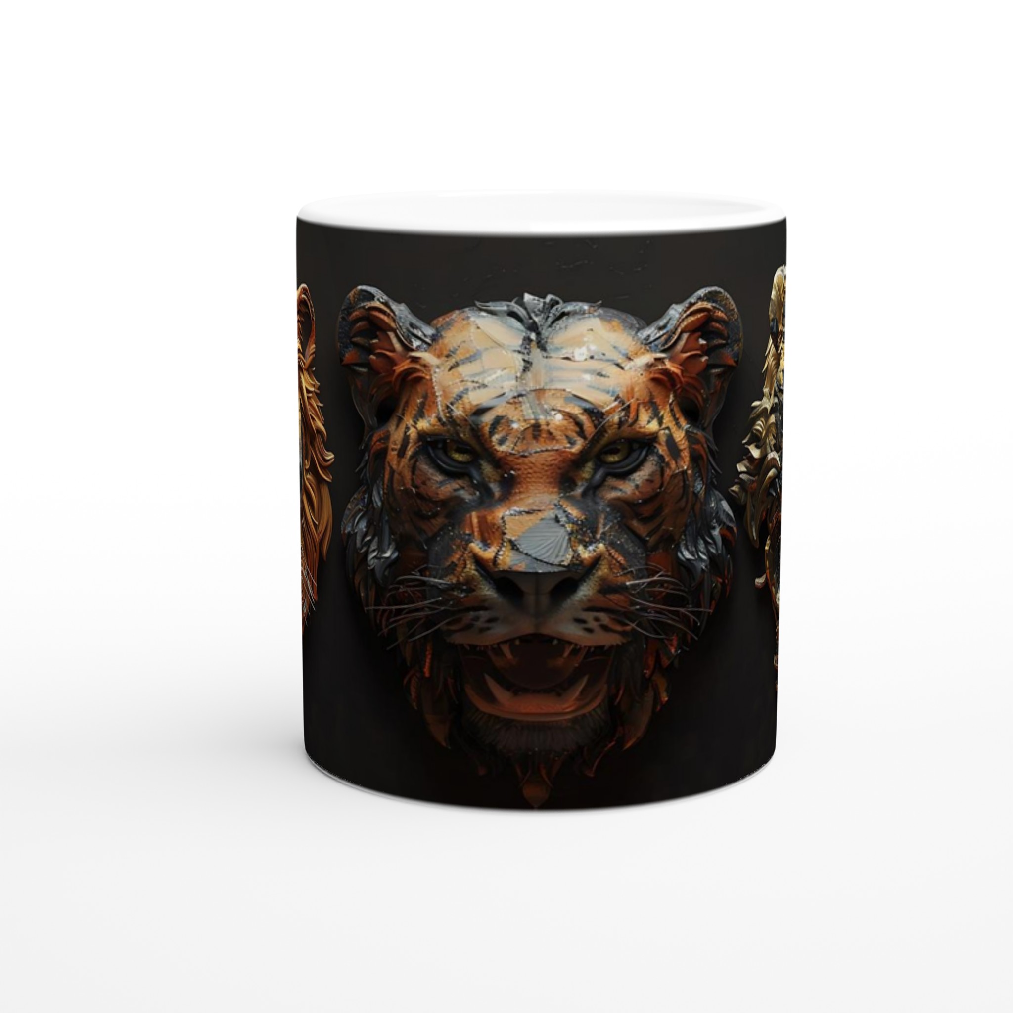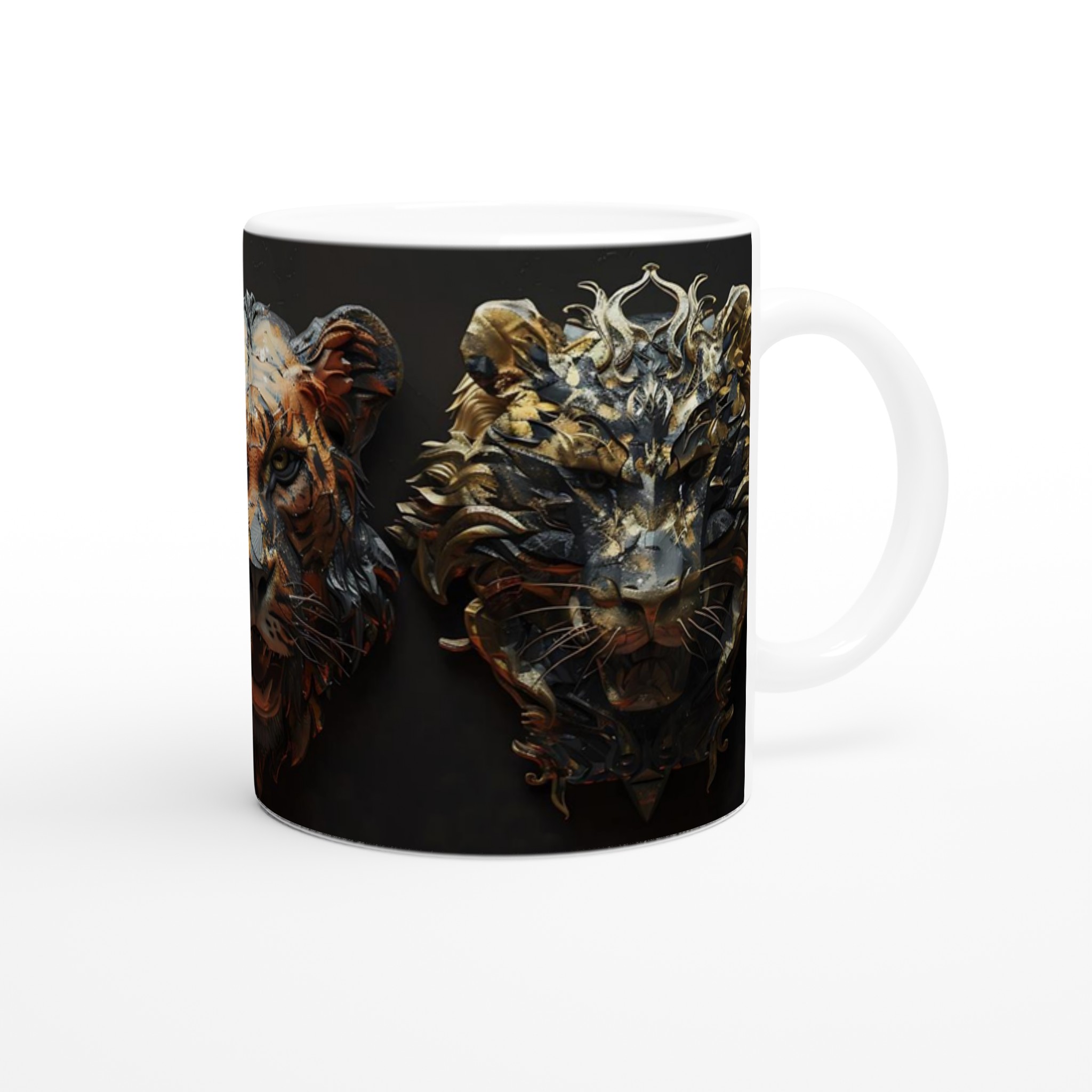 Majestic Feline Aura – White Ceramic Mug 11oz, in your choice of seven vibrant colors