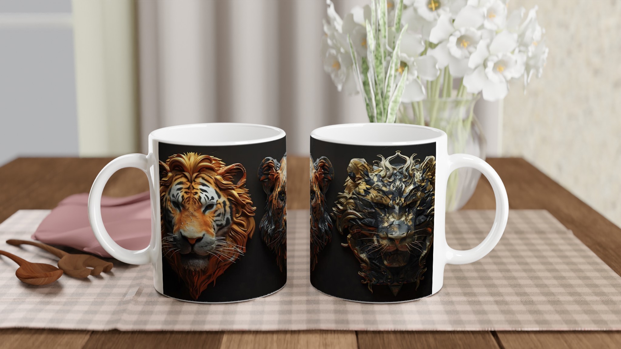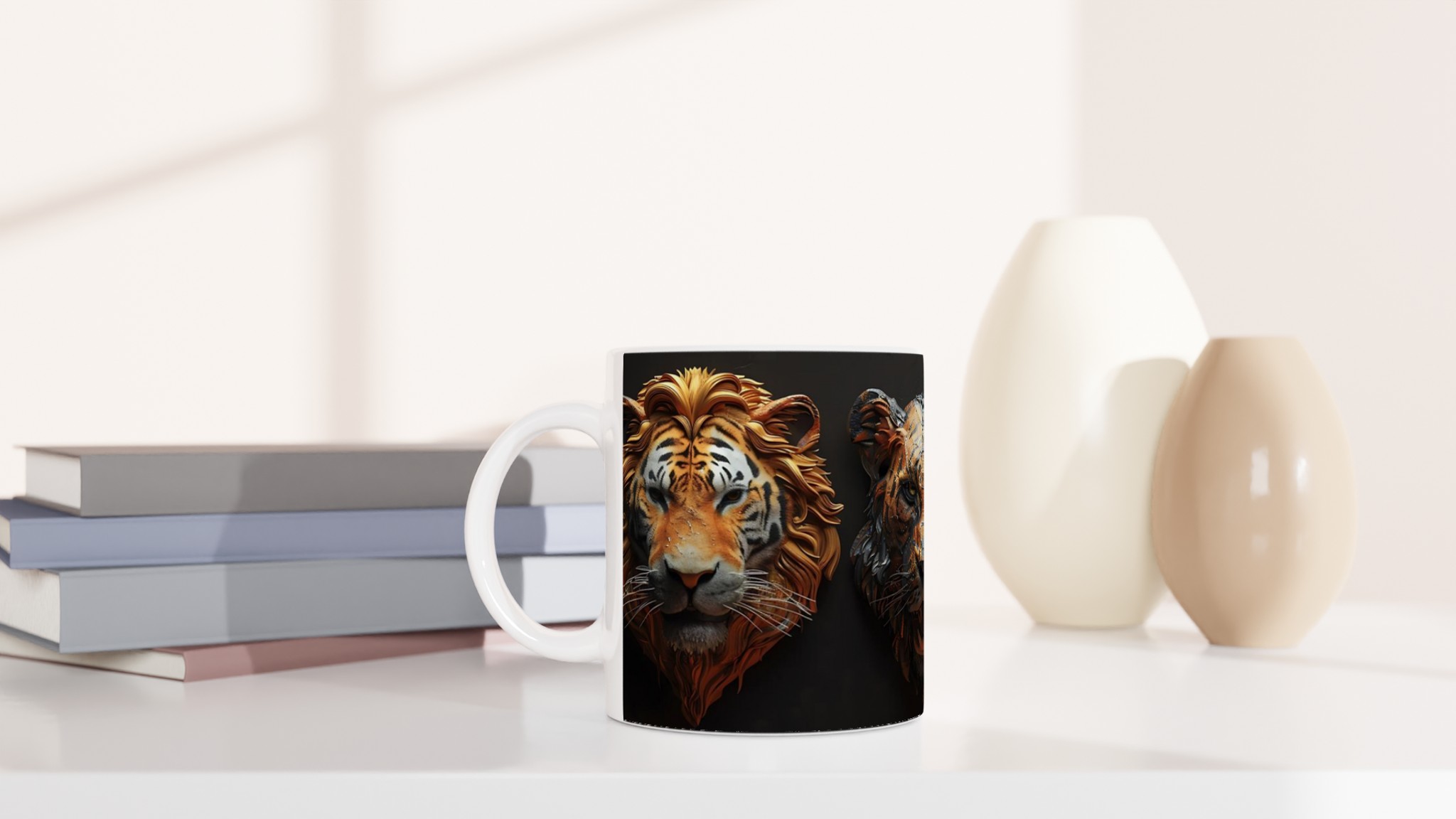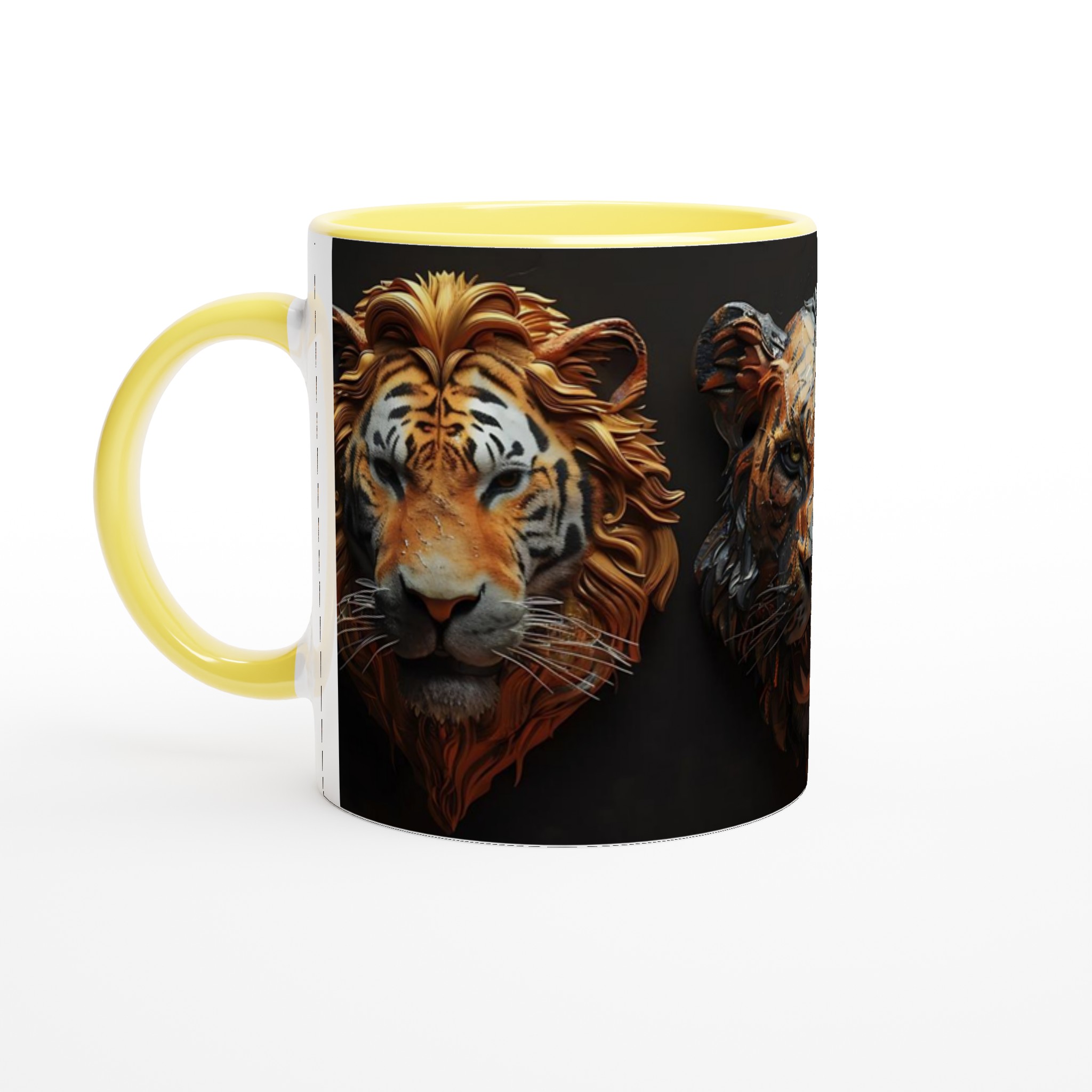 Majestic Feline Aura – White Ceramic Mug 11oz, in your choice of seven vibrant colors