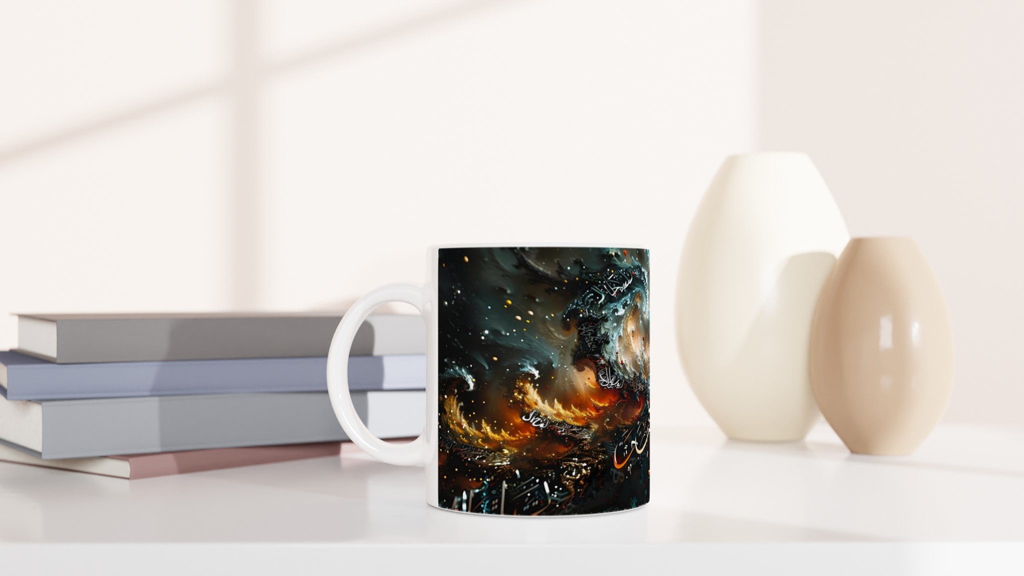 Abstract Calligraphy Art Mug – Vibrant Ceramic 11oz, in Your Choice of Seven Rich Colors