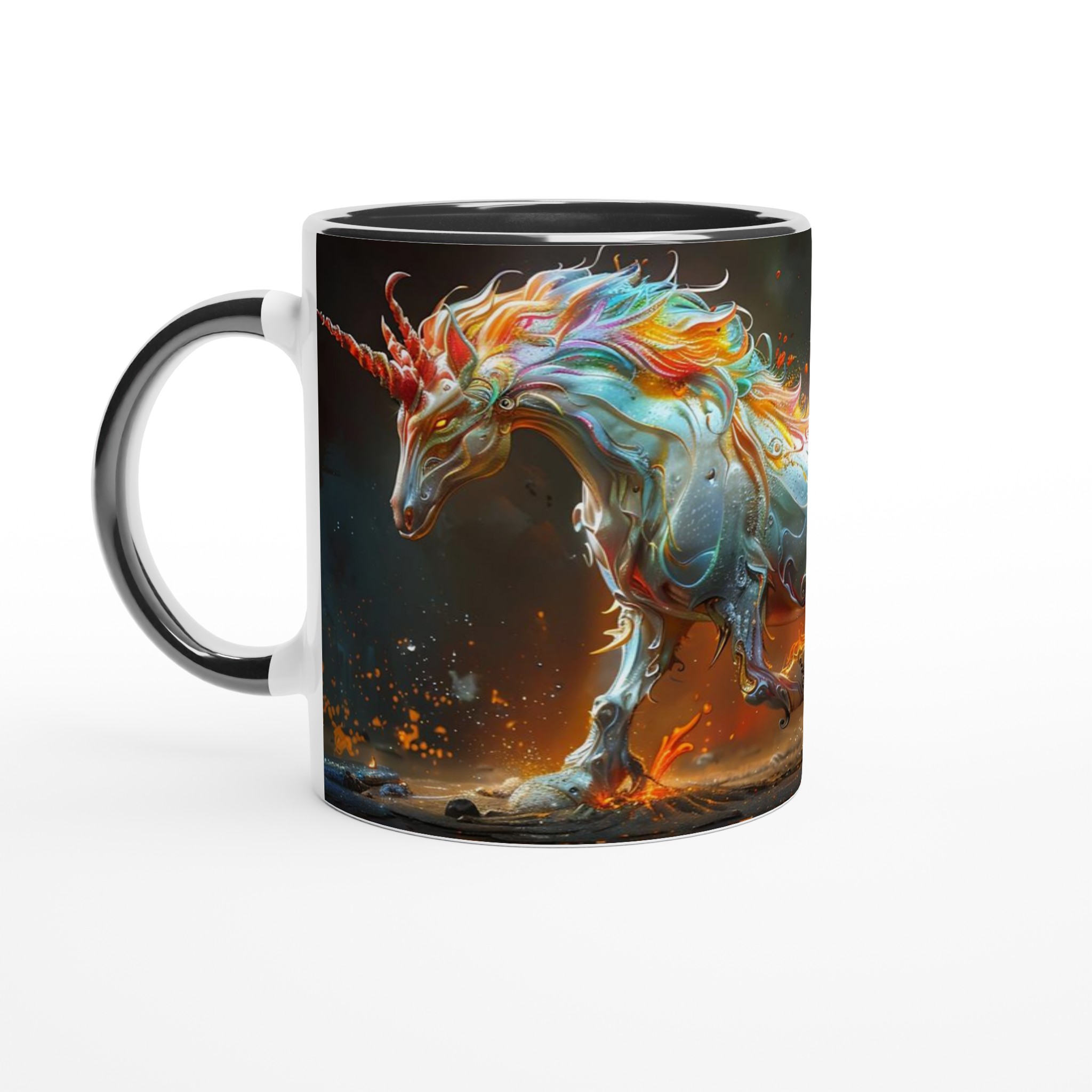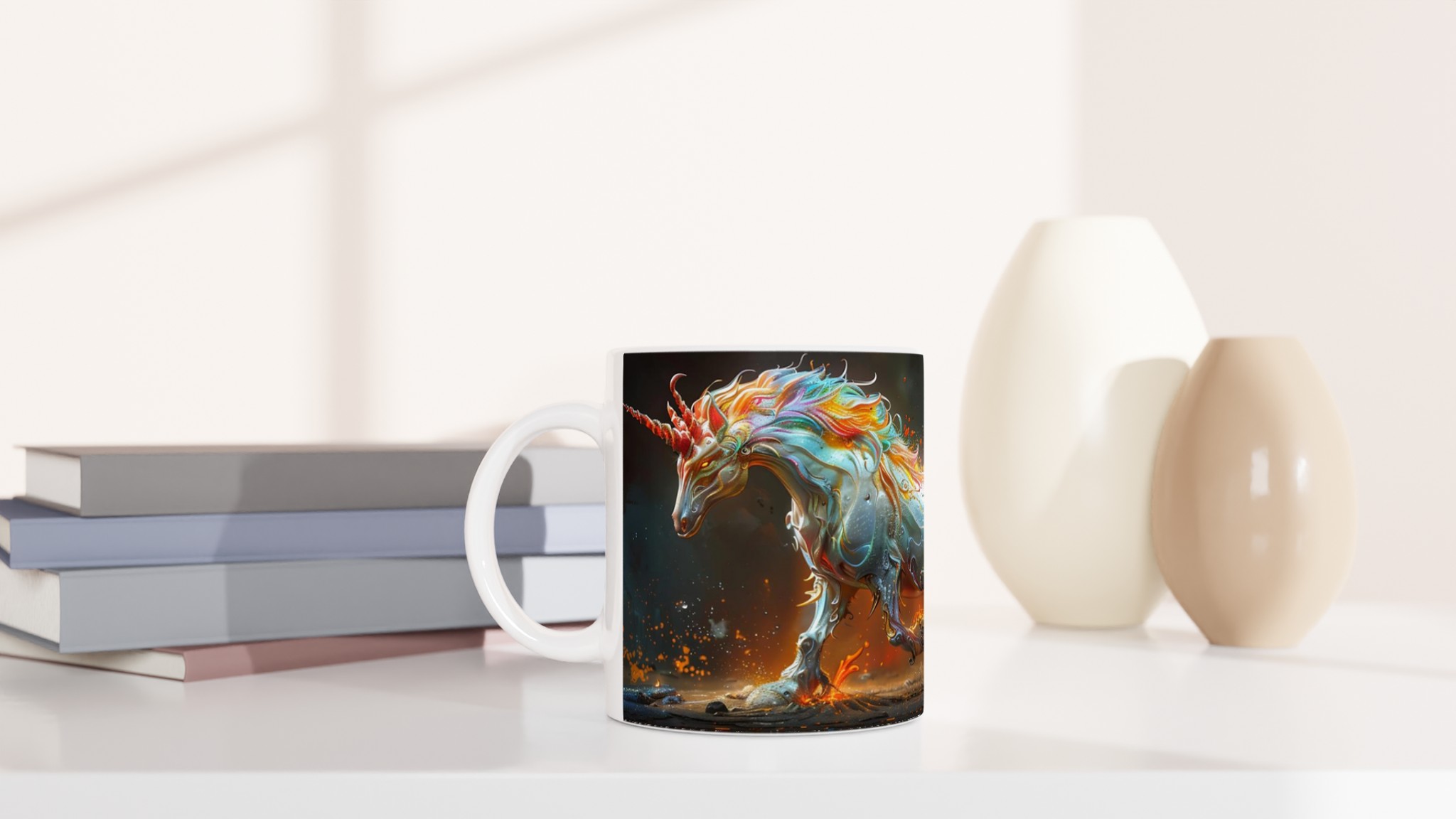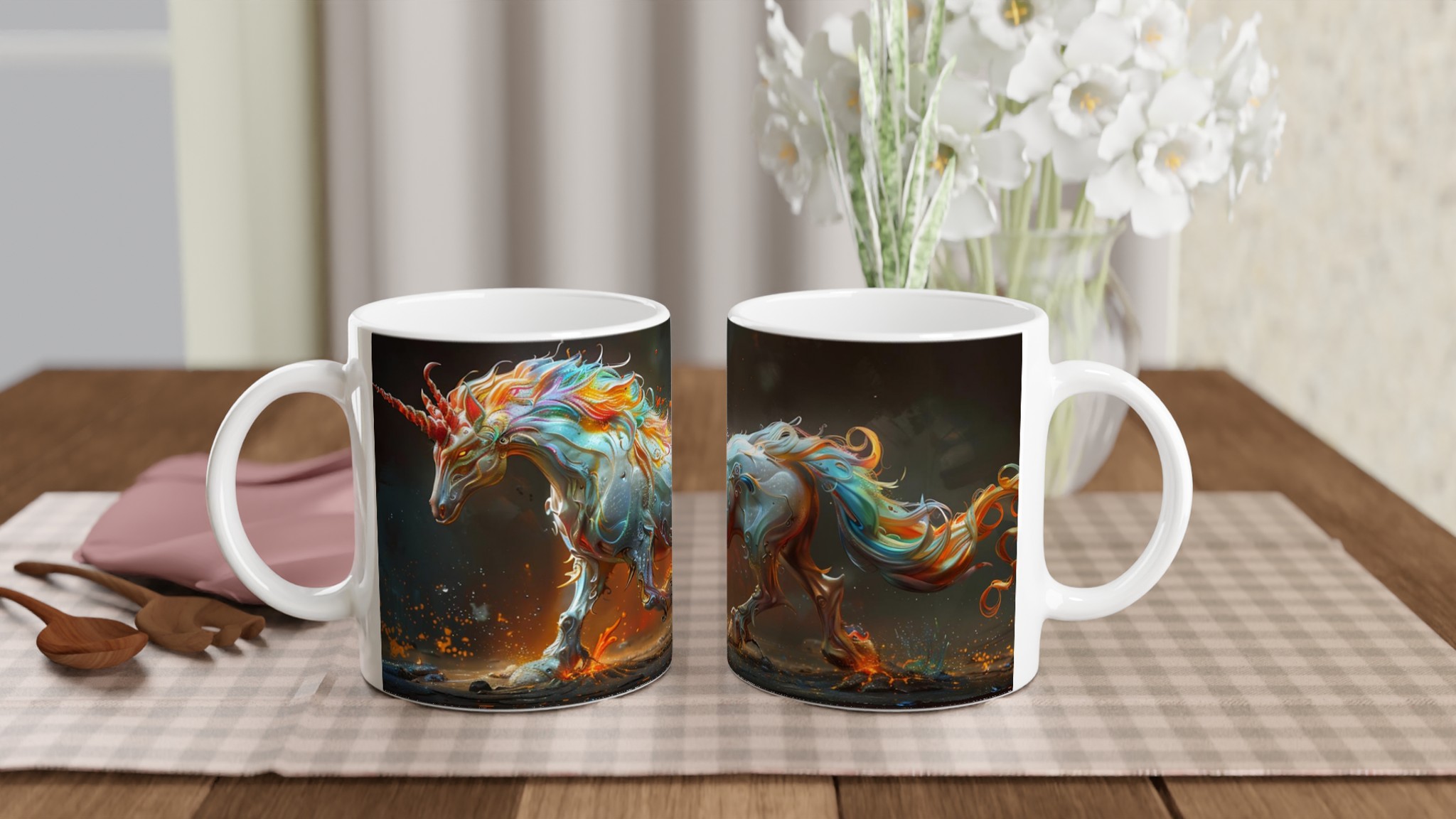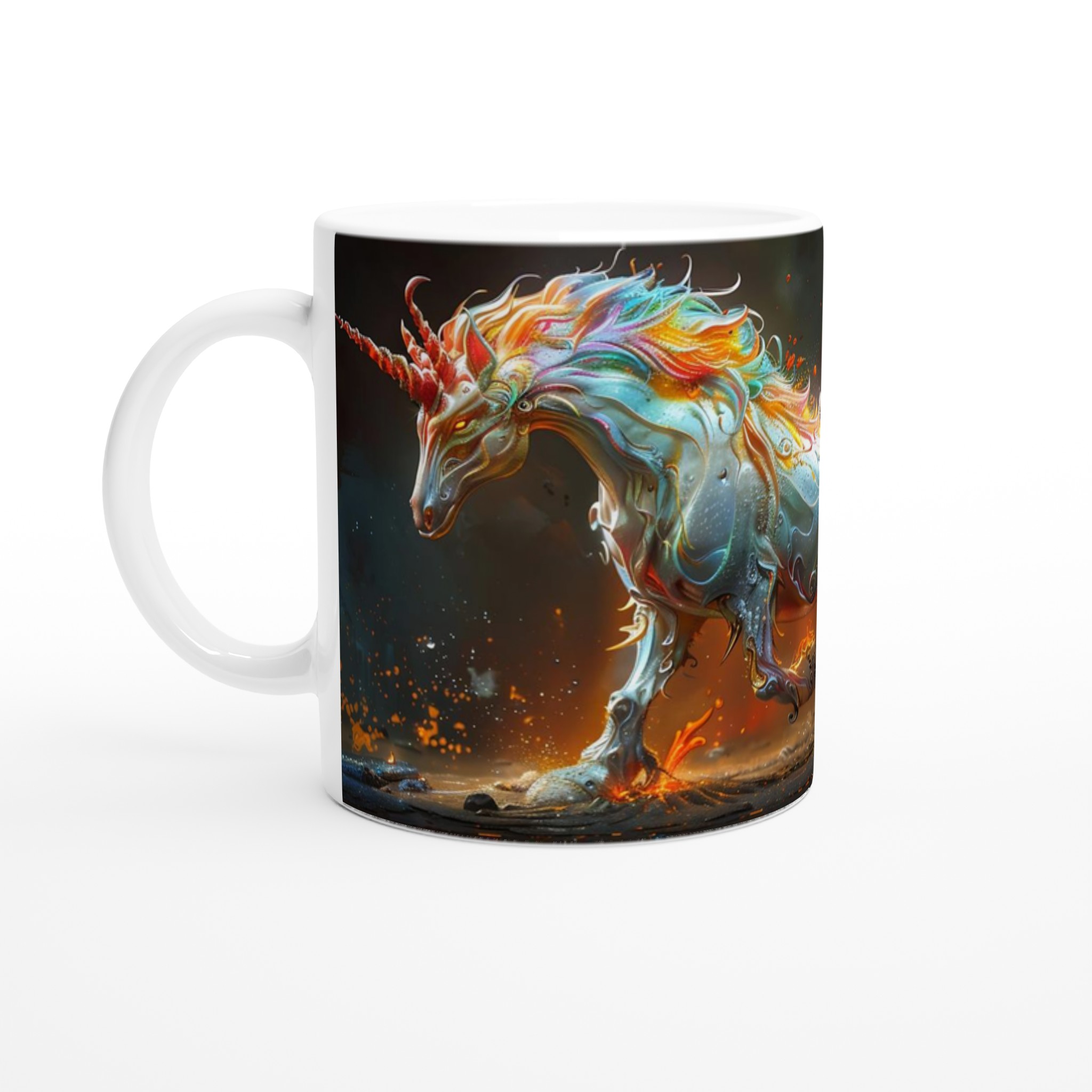 Fiery Rainbow Unicorn Dream – White Ceramic Mug 11oz: Unleash Mythical Mornings!