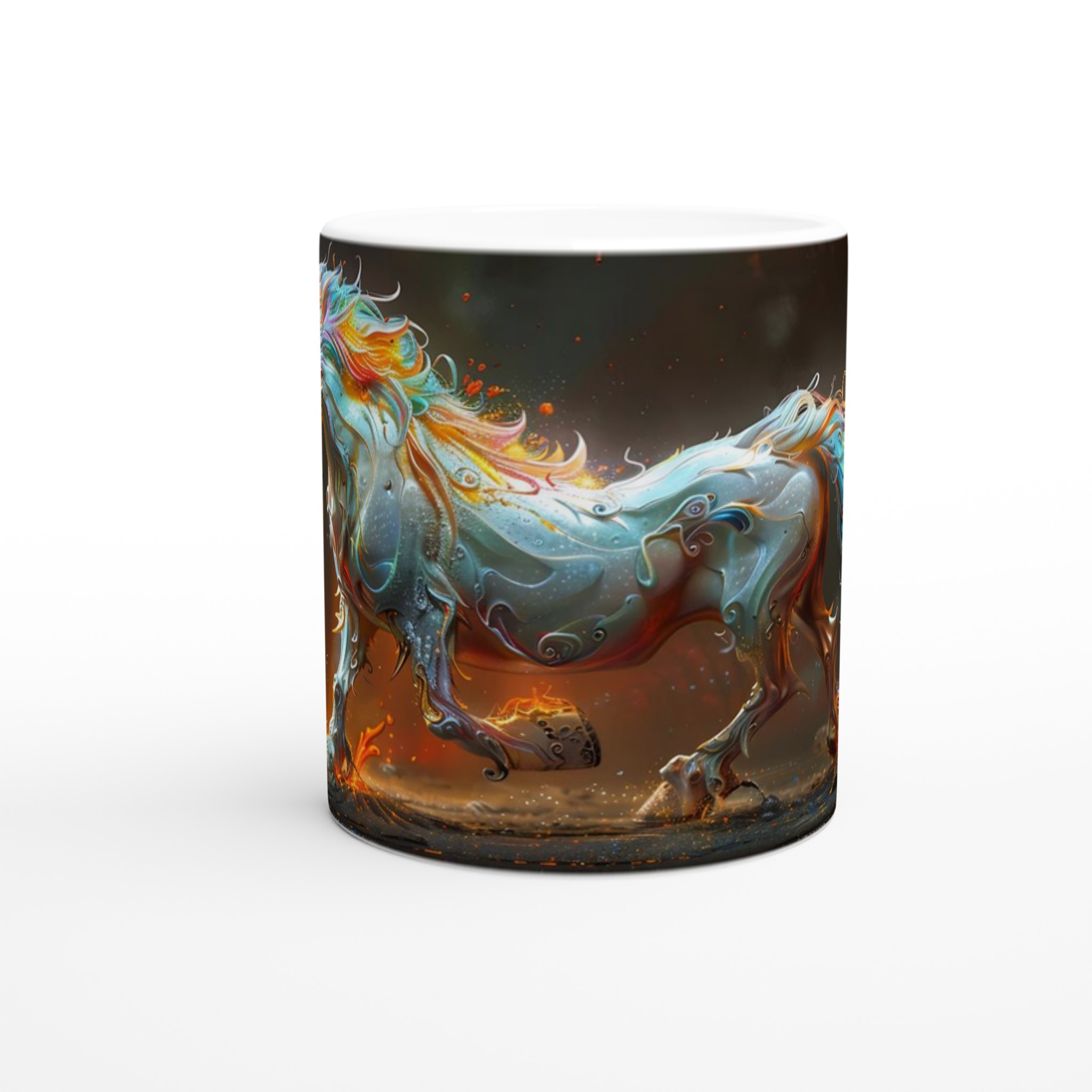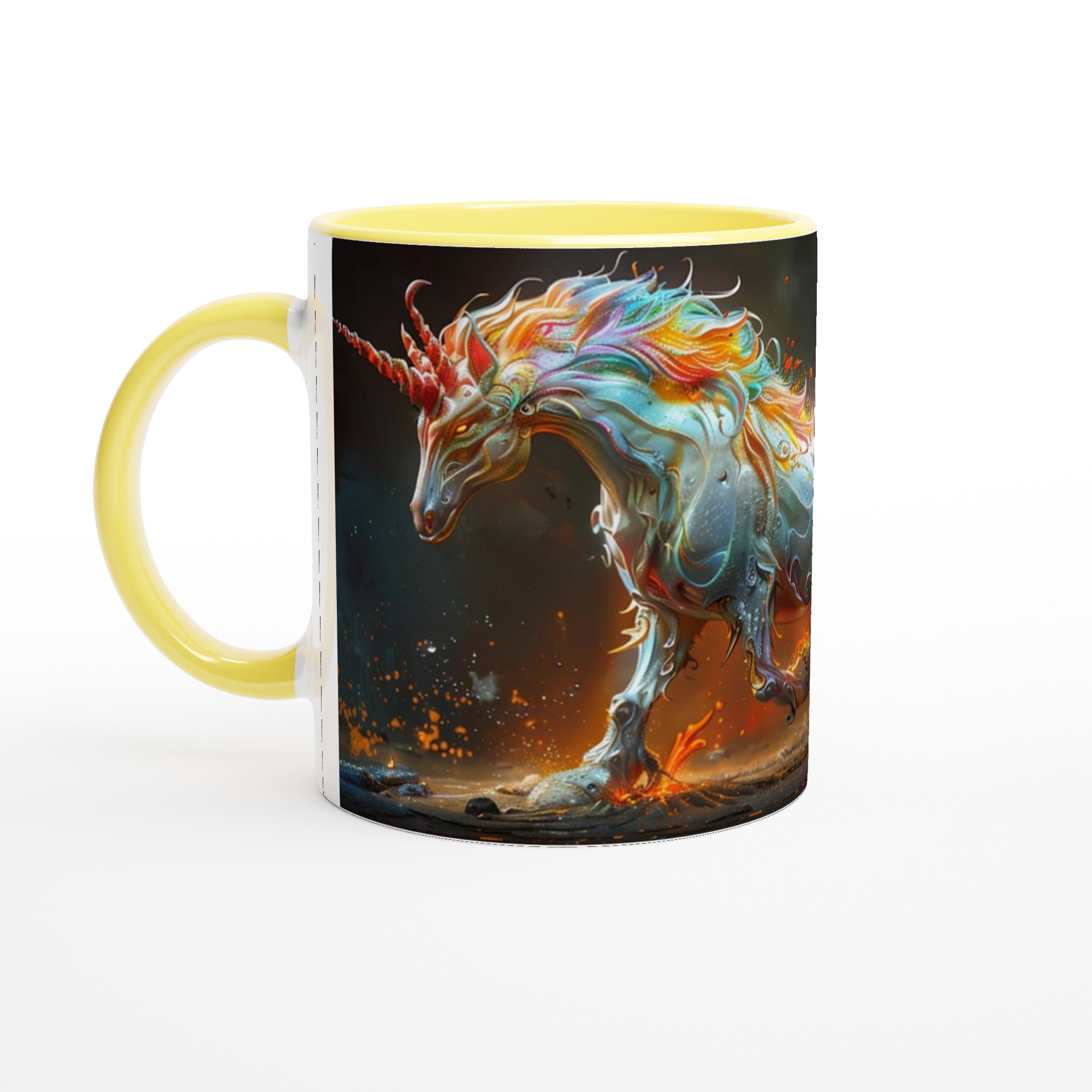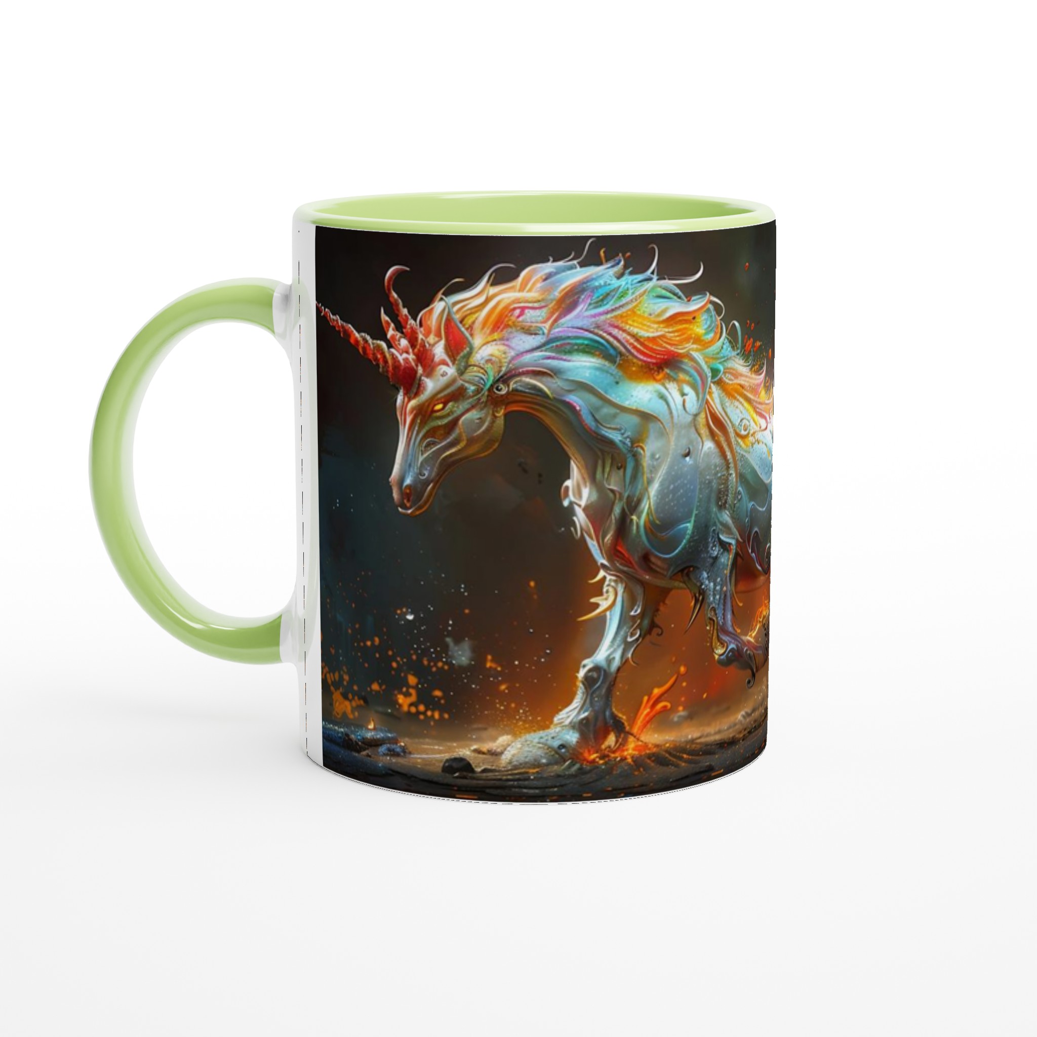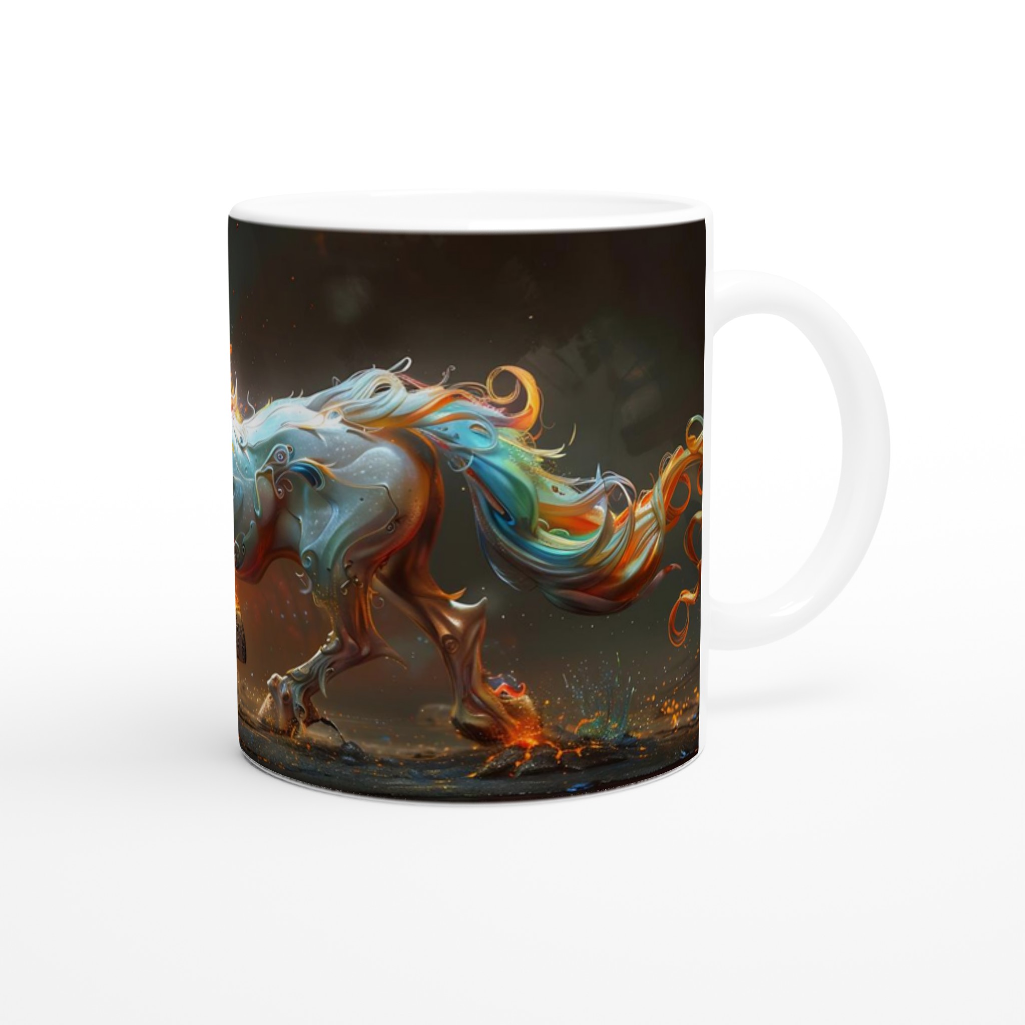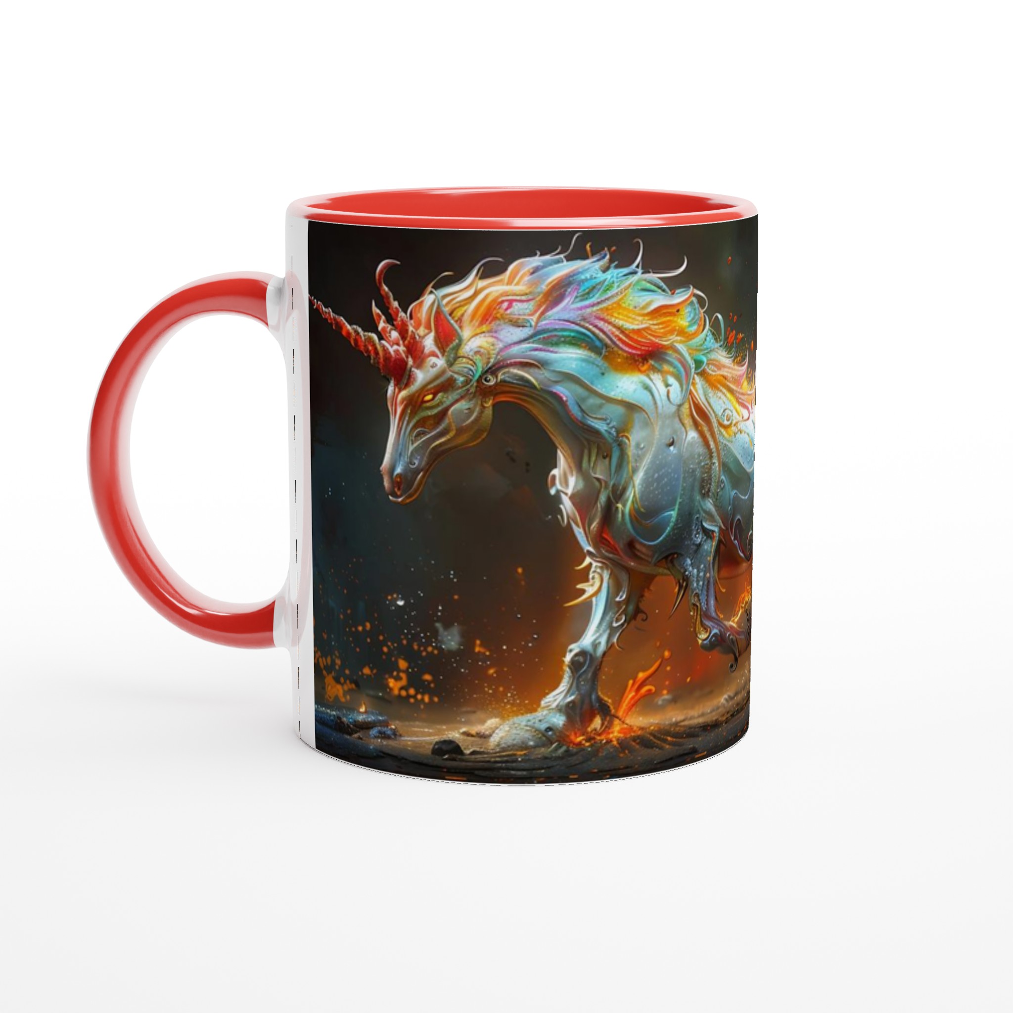 Fiery Rainbow Unicorn Dream – White Ceramic Mug 11oz: Unleash Mythical Mornings!