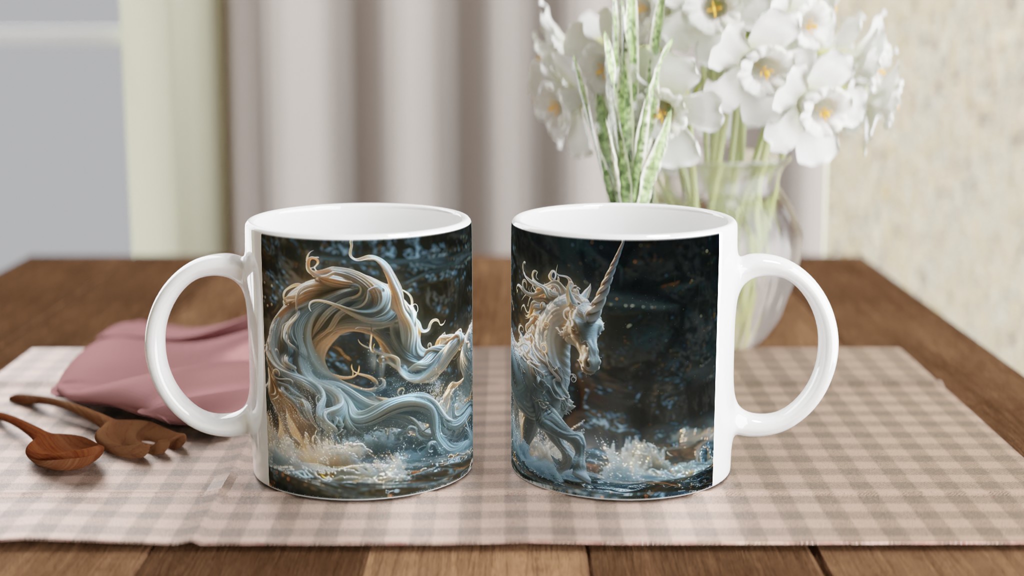 Enchanted White Unicorn – Ceramic Mug 11oz, in your choice of seven mystical hues