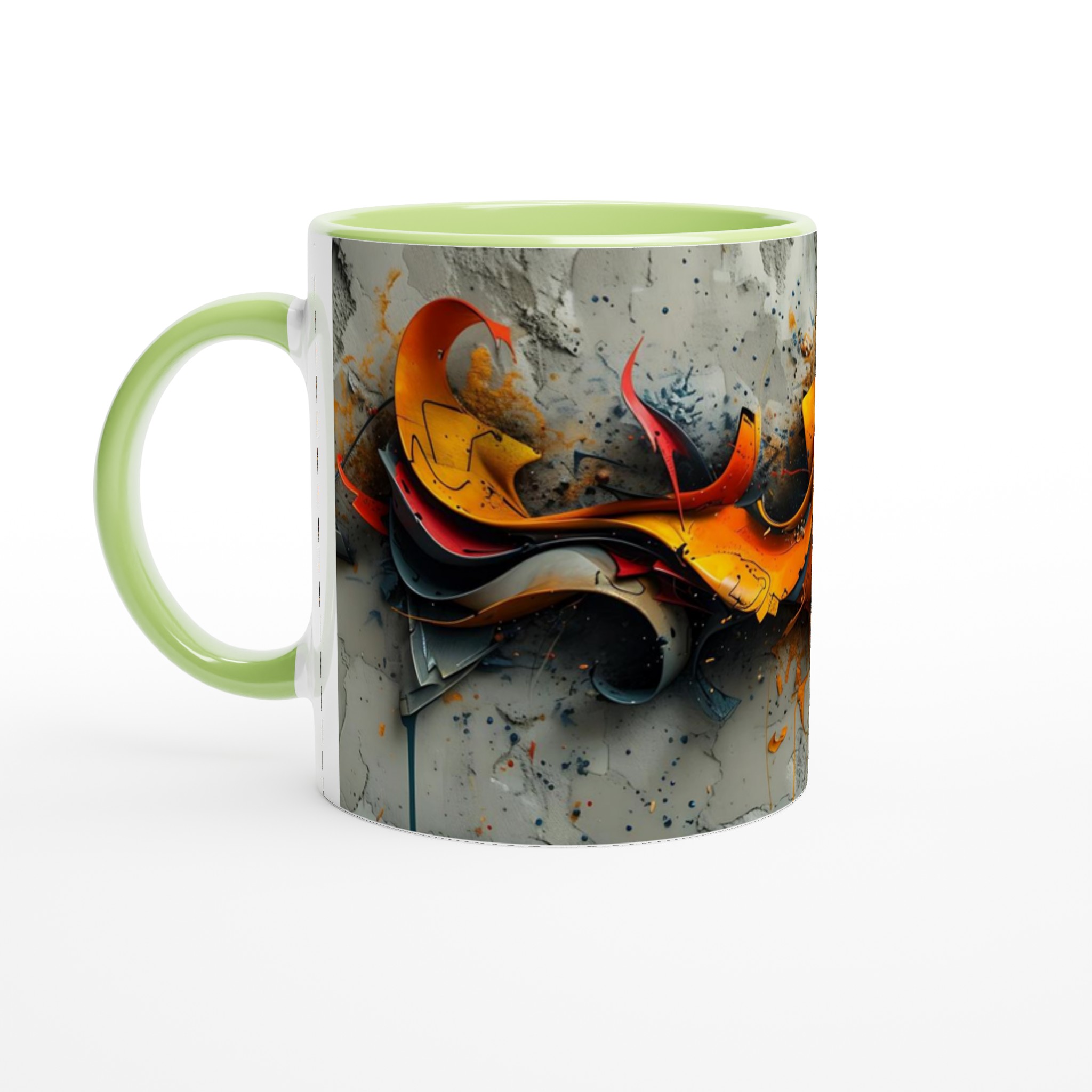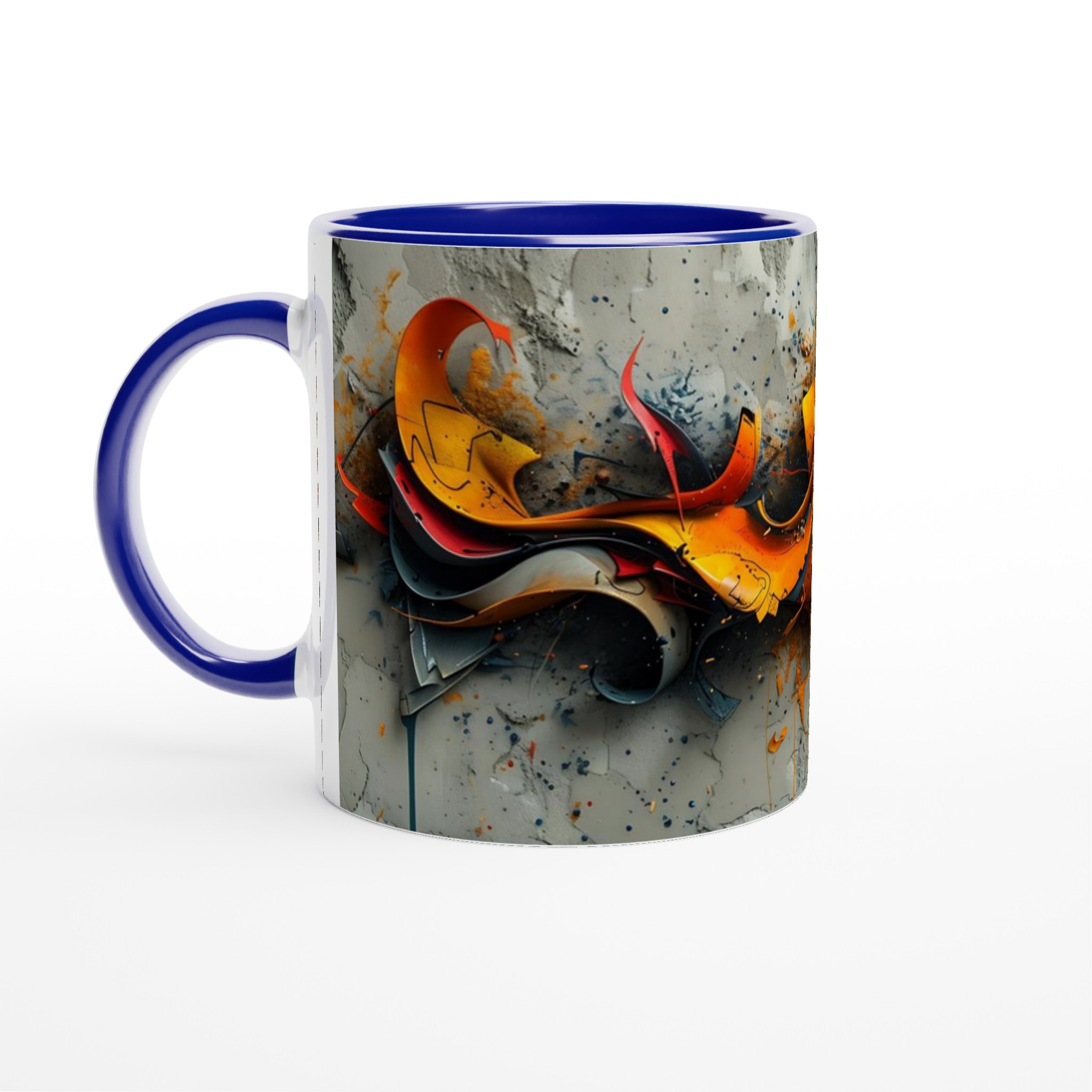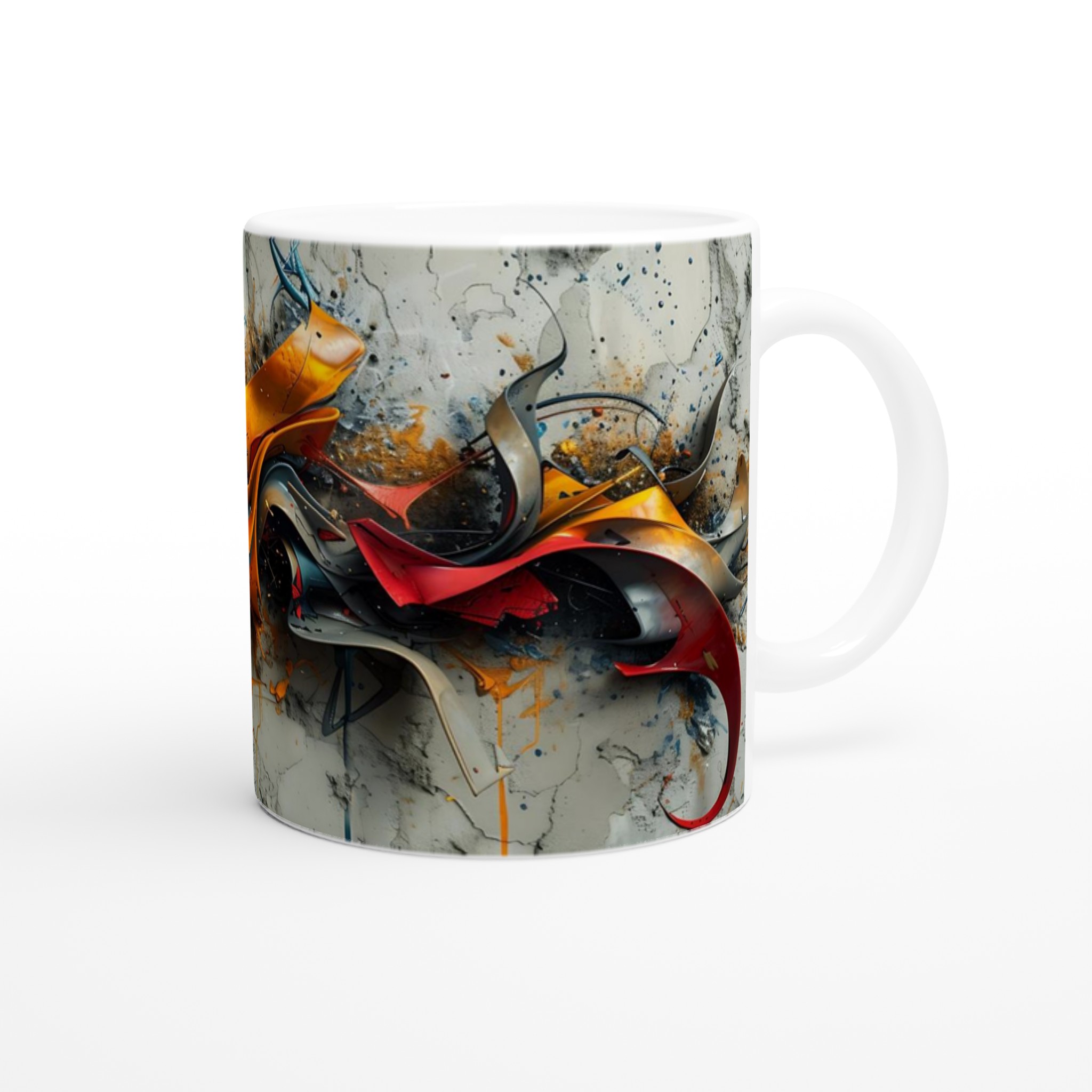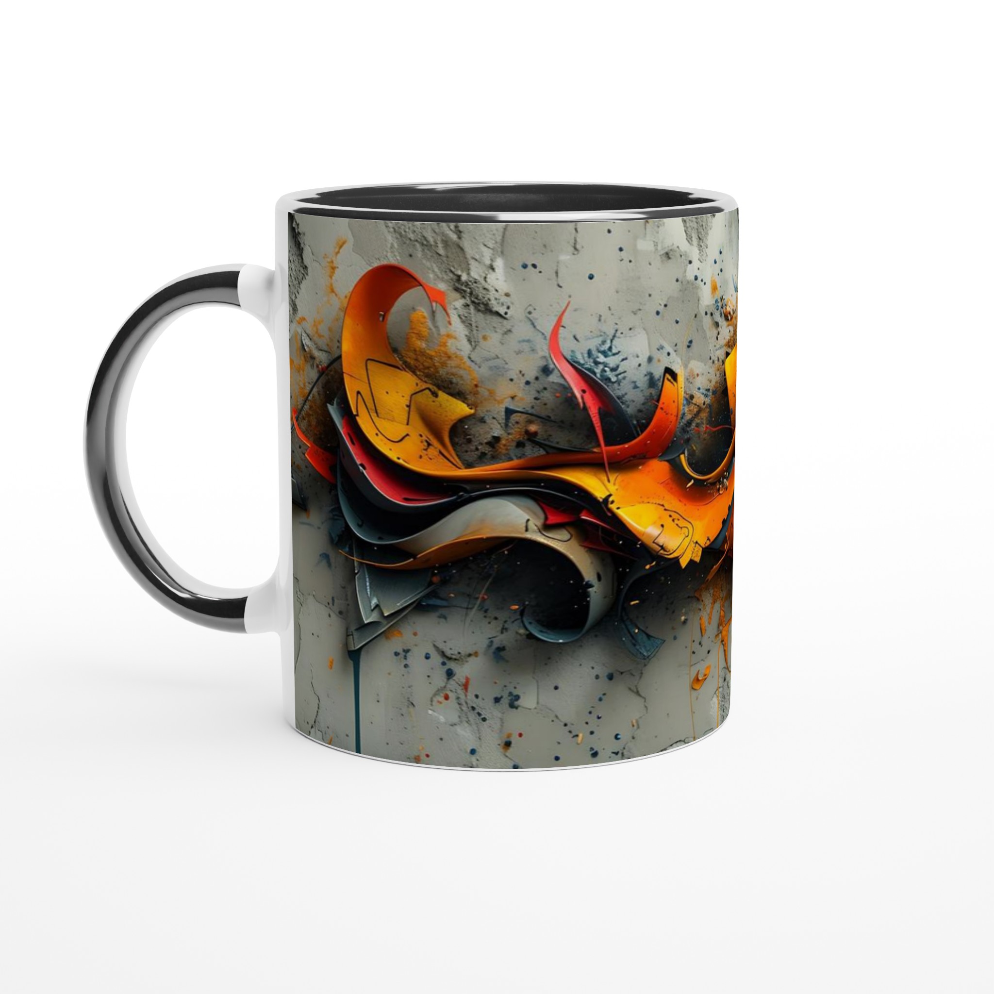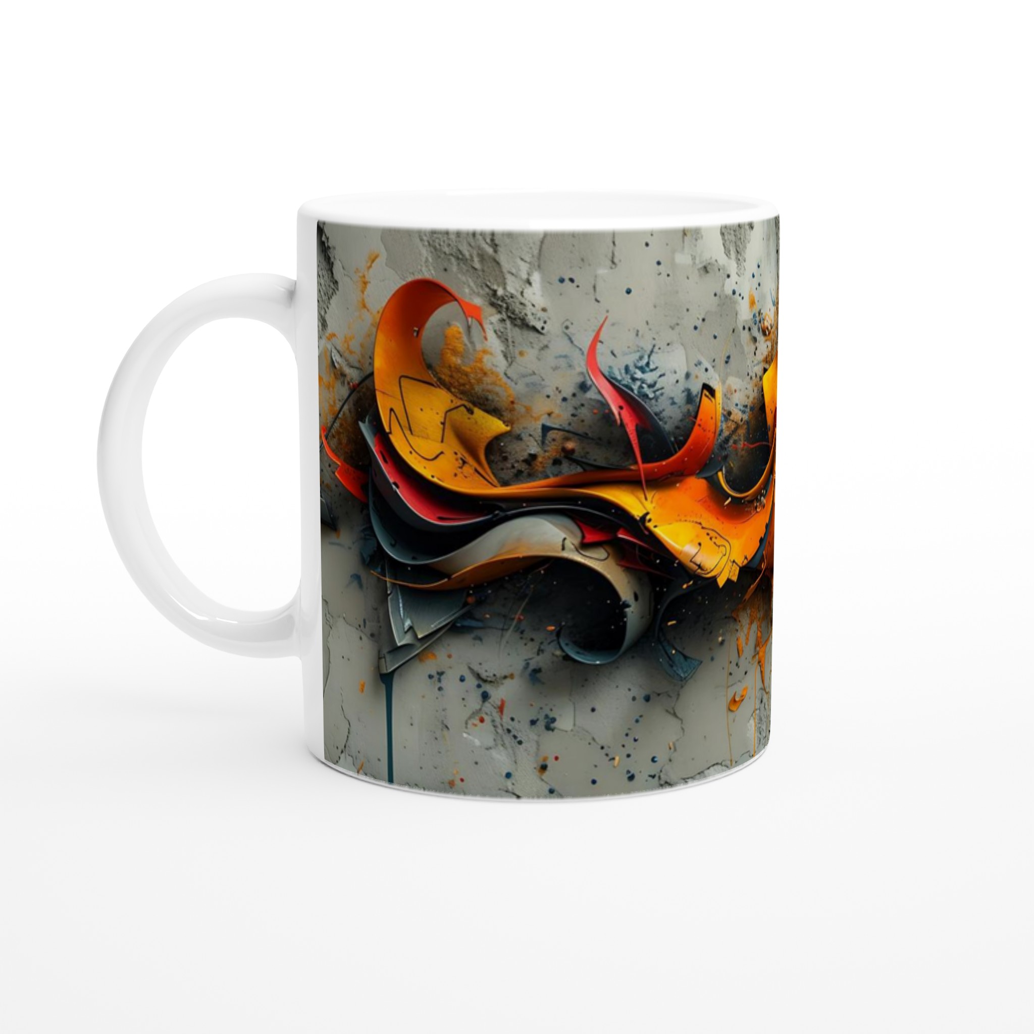 Abstract Swirl Art Ceramic Mug 11oz – Vibrant Orange, Red & Gray Design