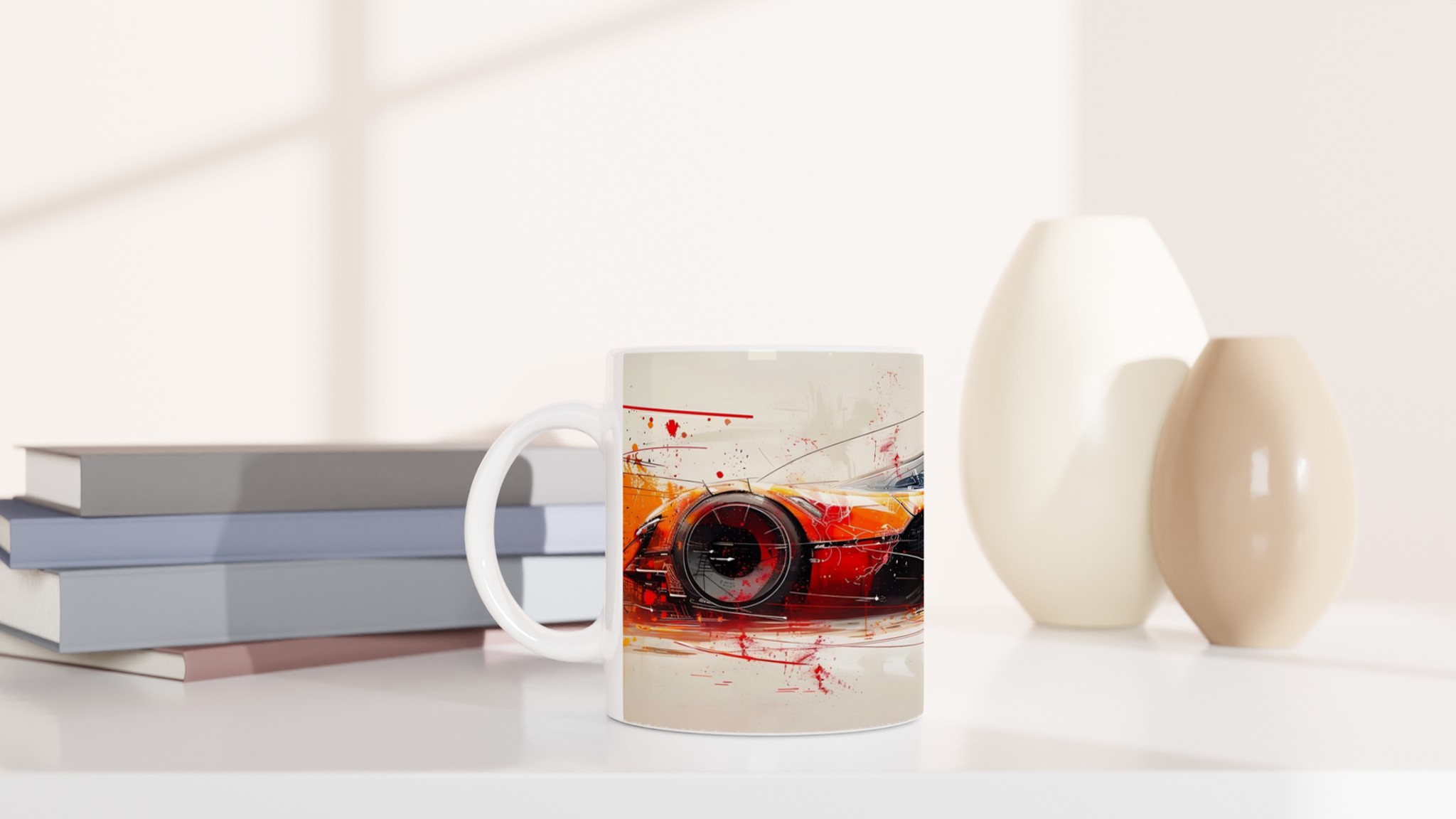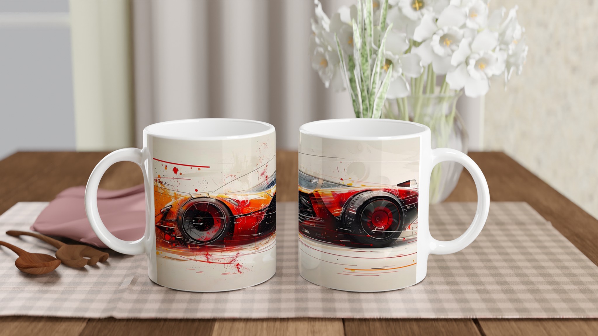 Abstract Velocity – Dynamic Sports Car Ceramic Mug 11oz, in your choice of vibrant hues