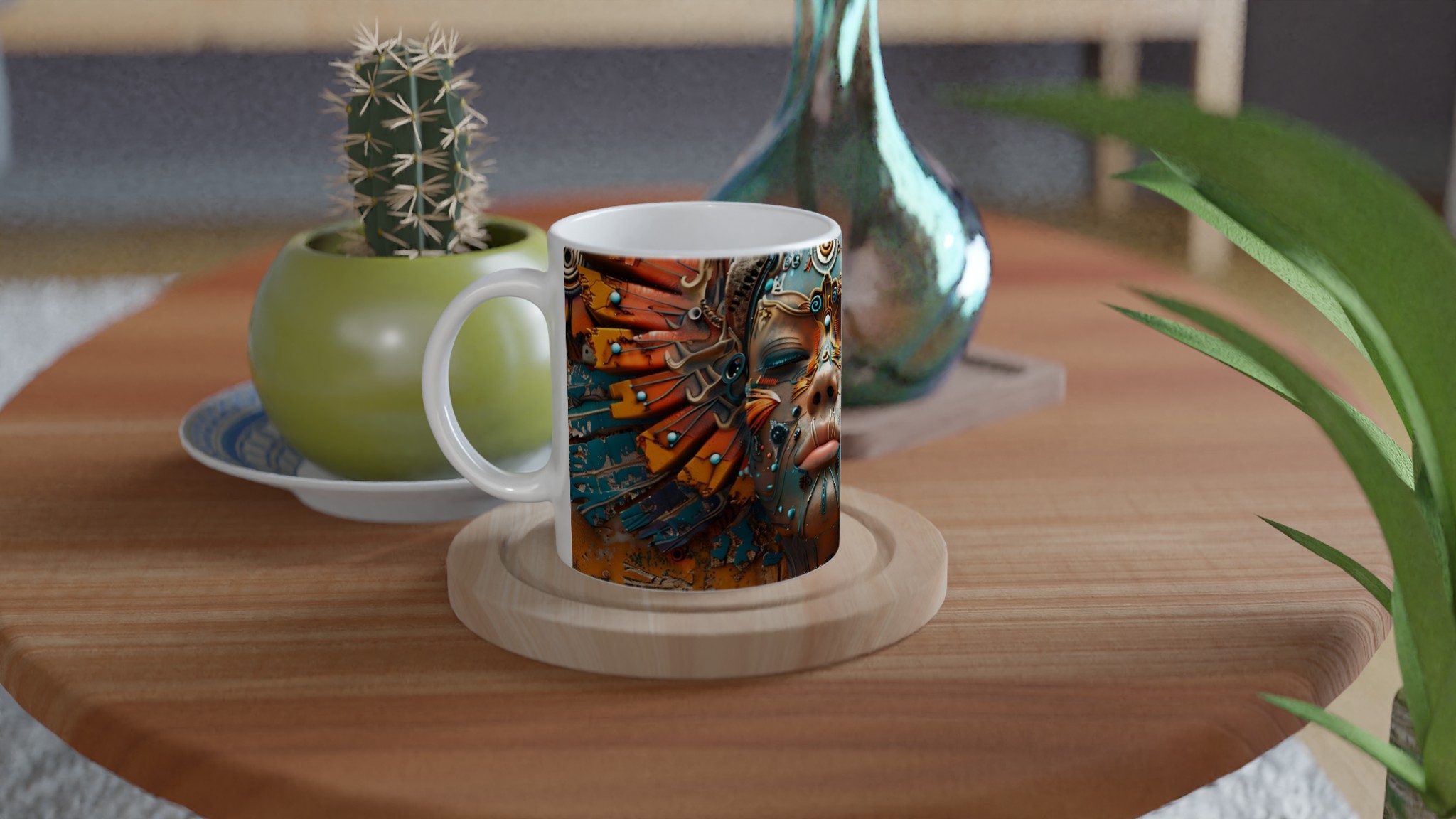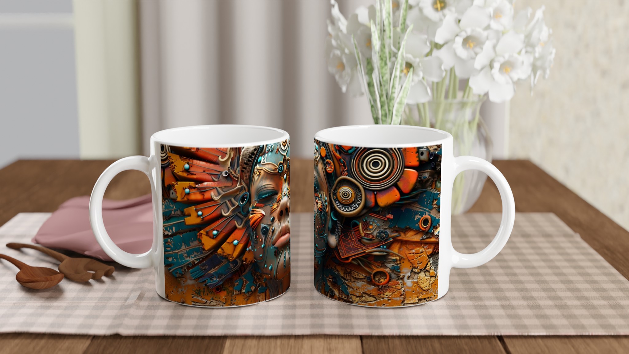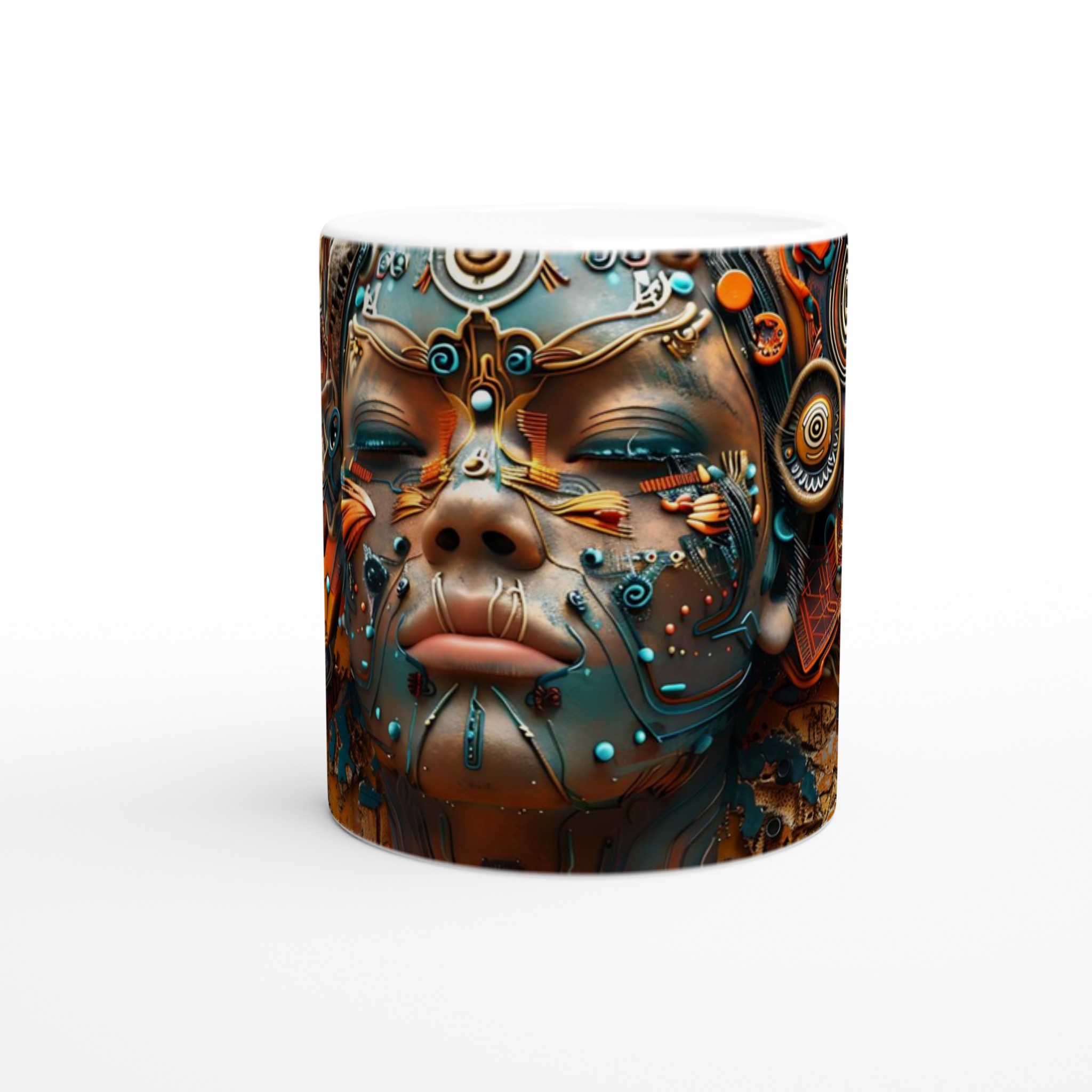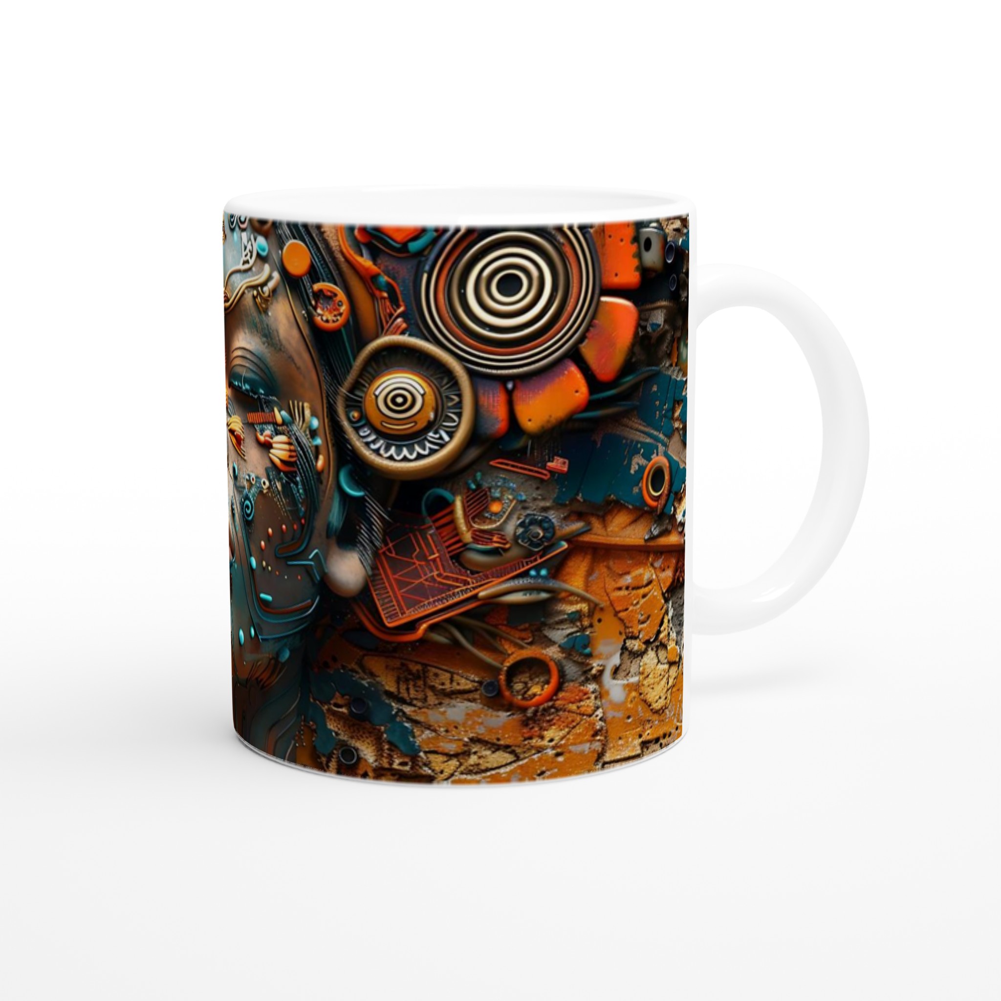 Abstract Cyber-Shamanic Art Mug – 11oz Ceramic Mug in Vibrant Hues