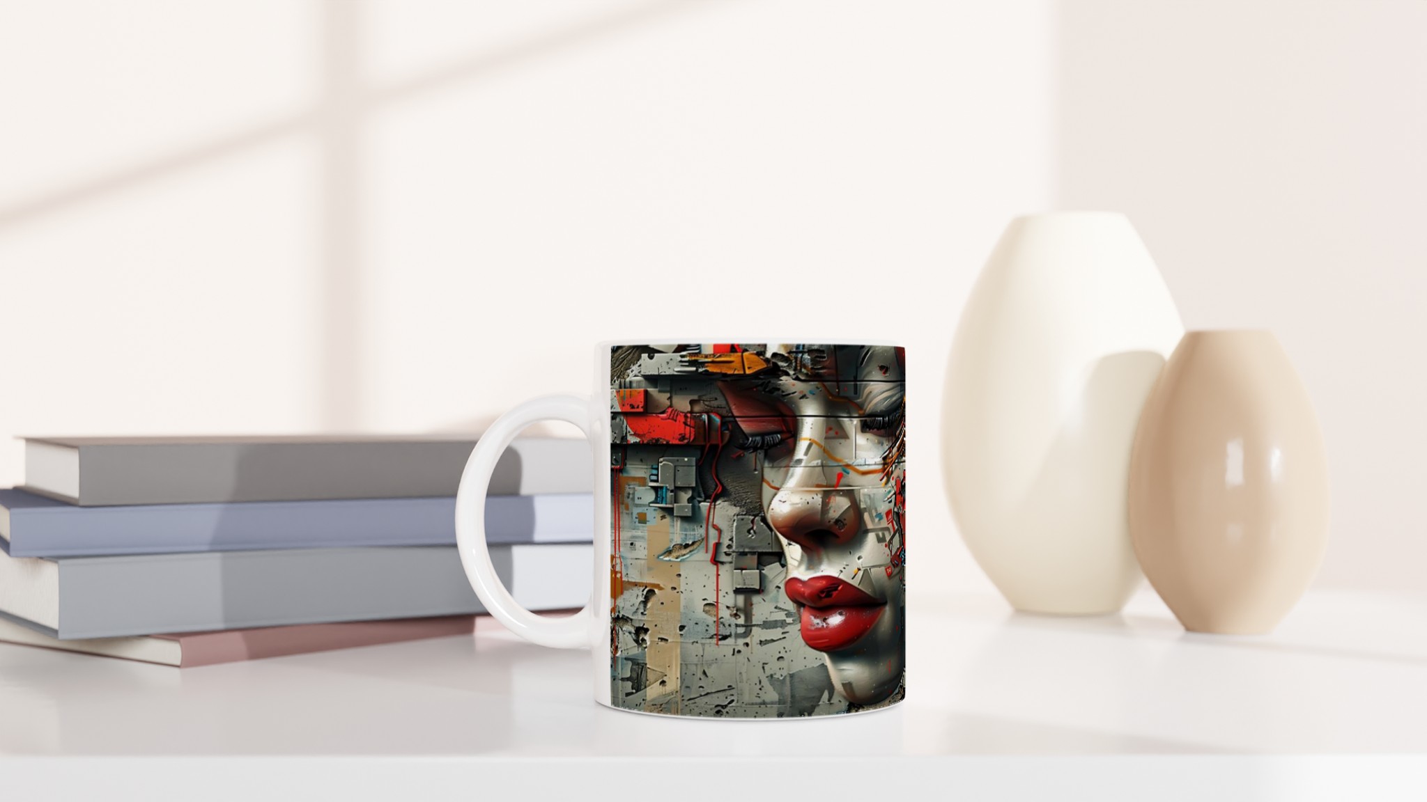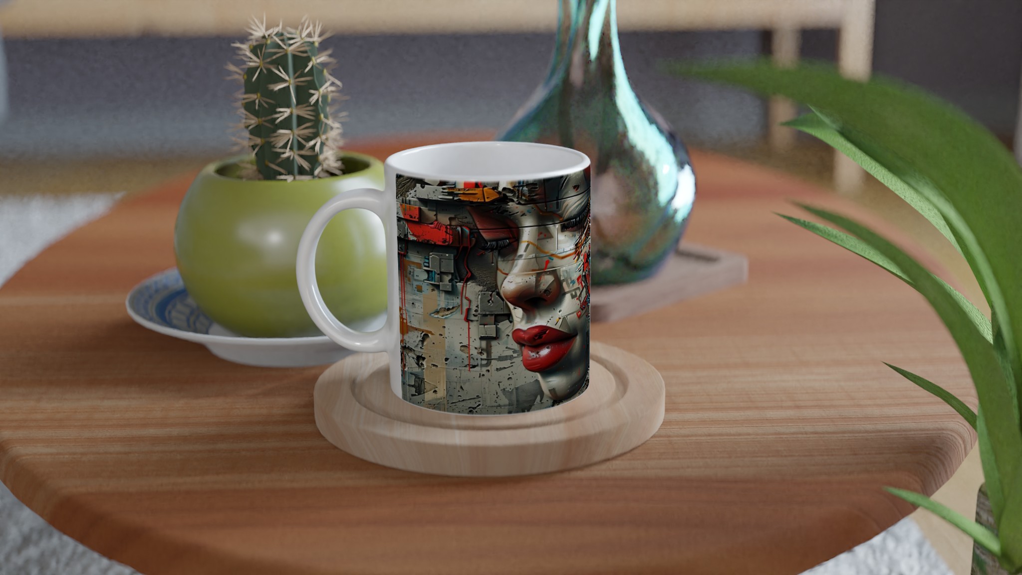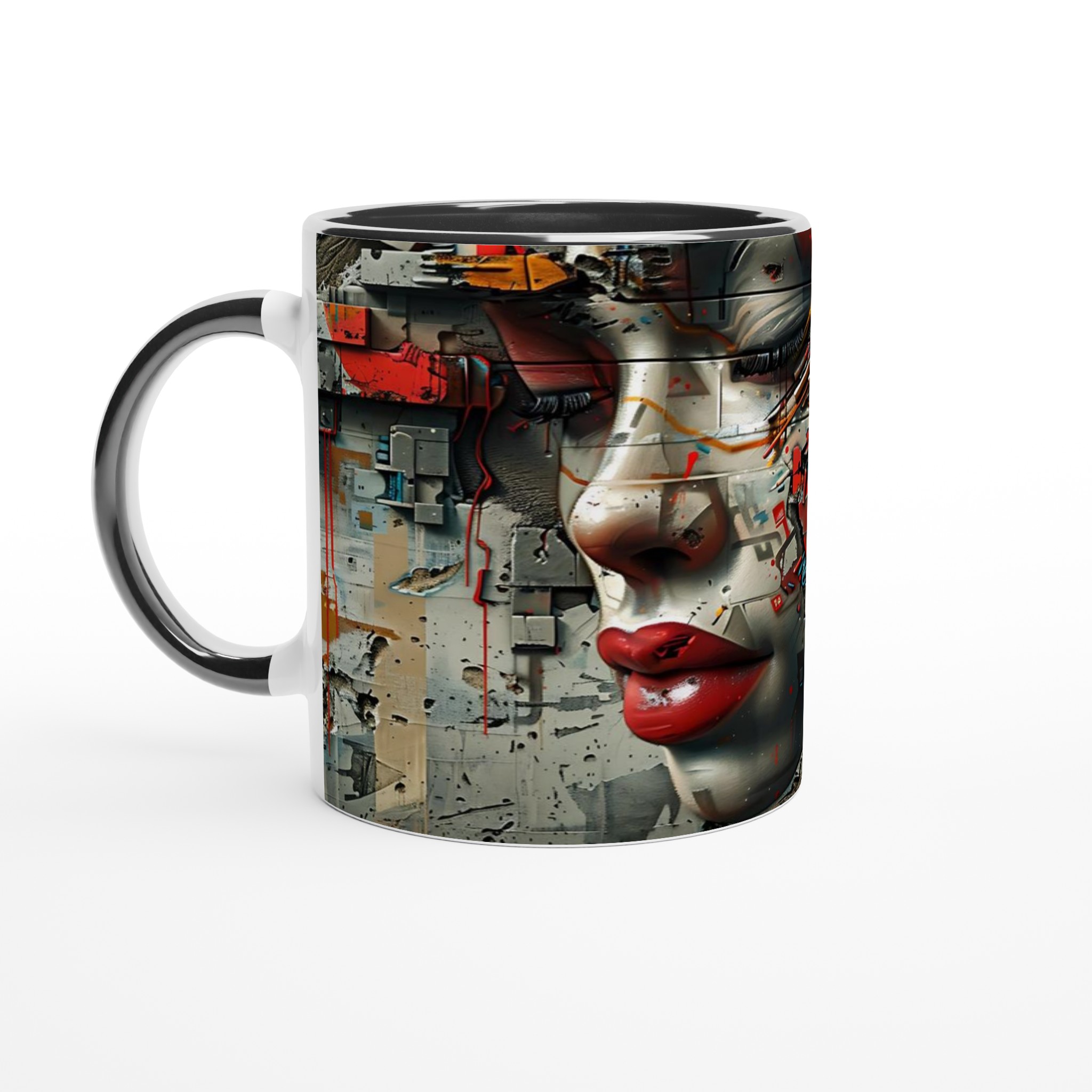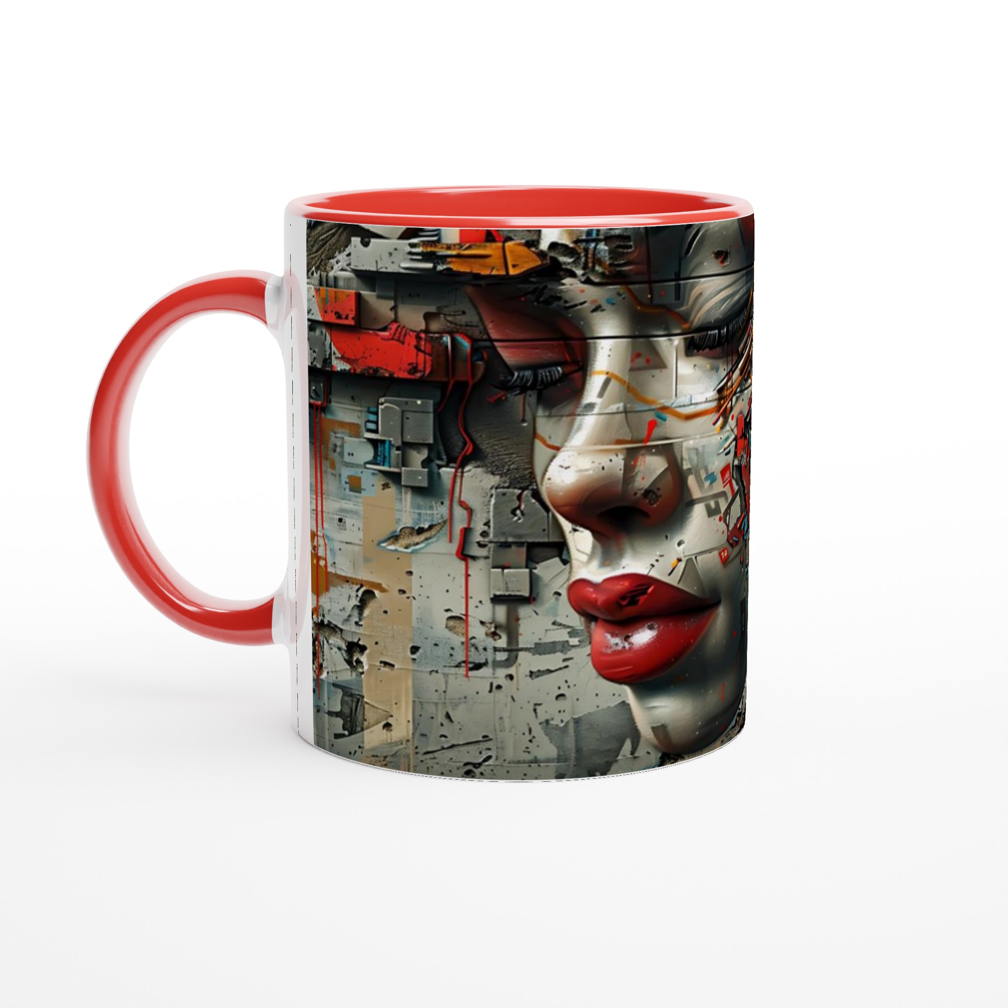 Abstract Cyberpunk Muse Ceramic Mug 11oz – Artful Tech-Inspired Design in Your Choice of Seven Vibrant Hues