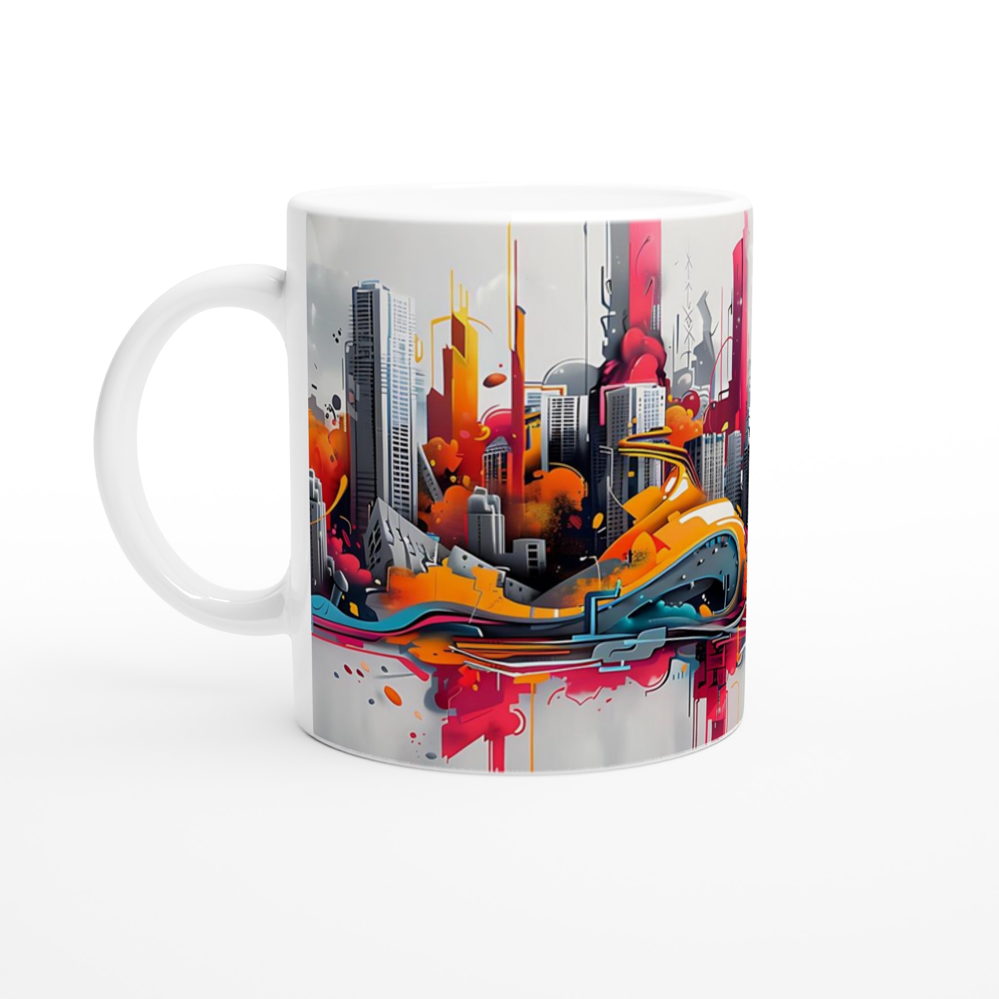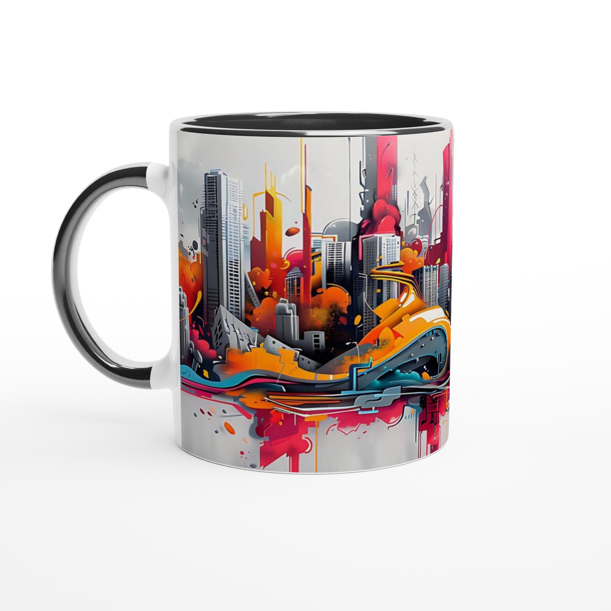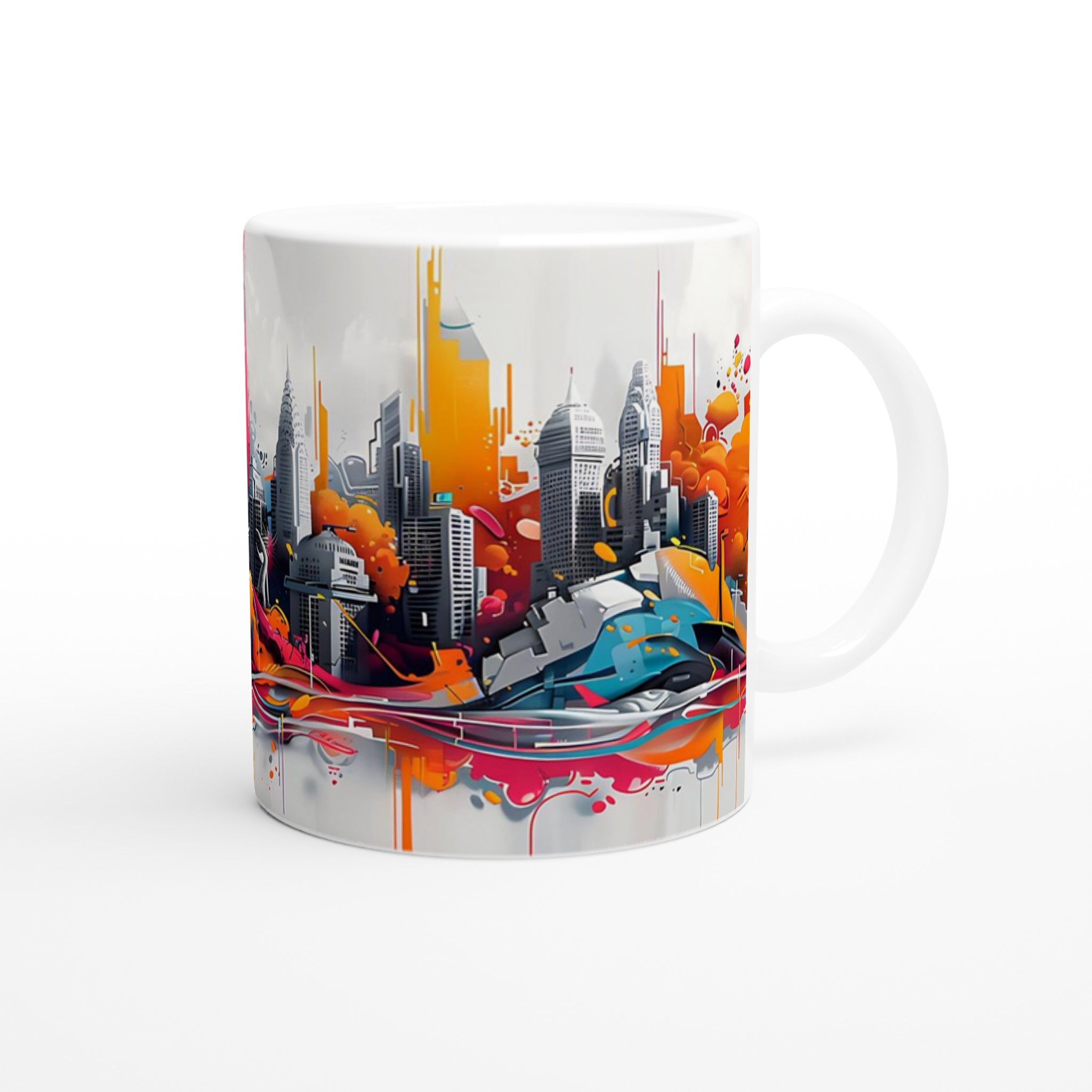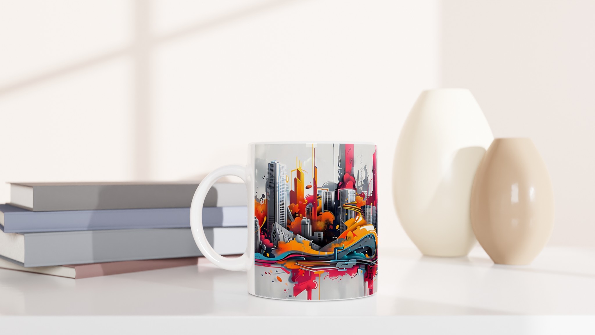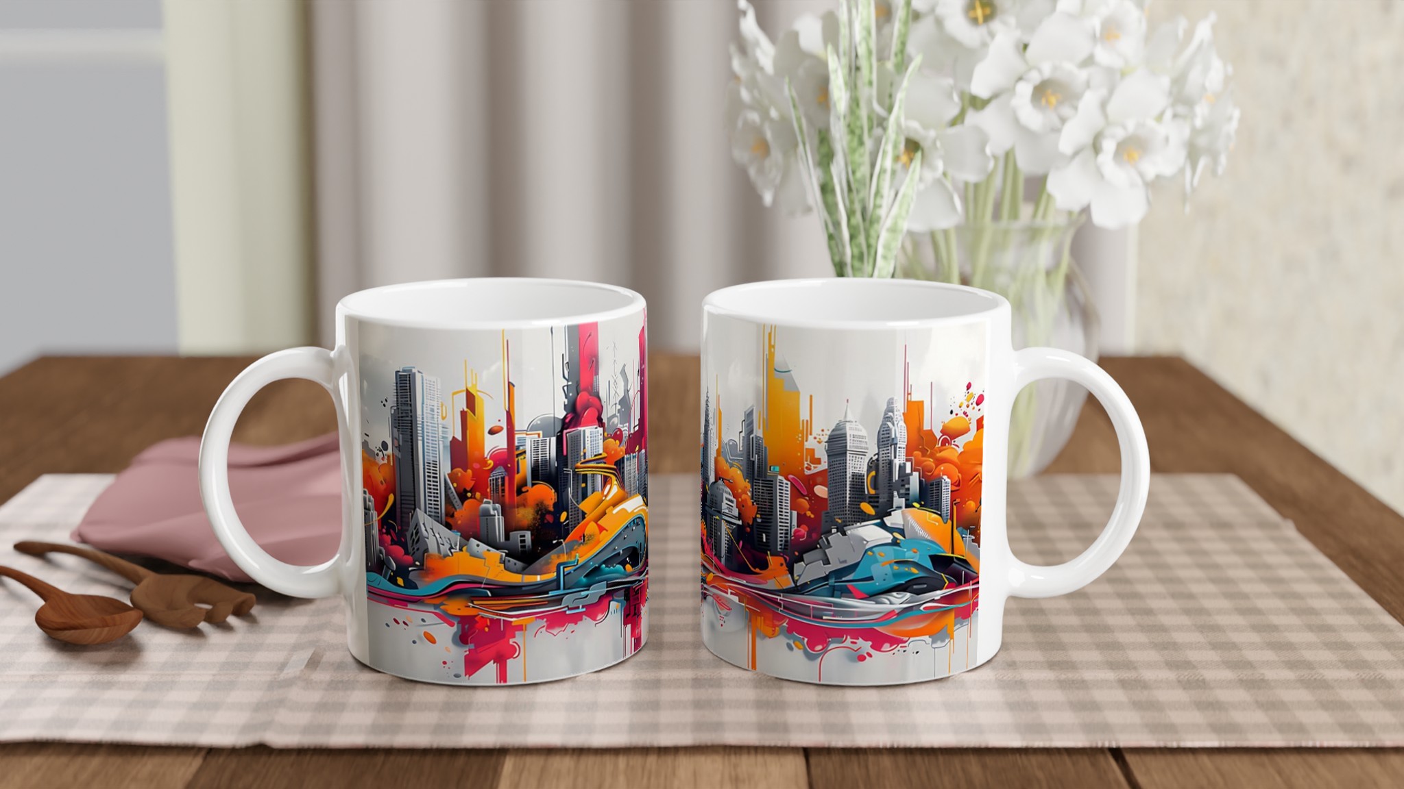 Abstract Cityscape Art Ceramic Mug 11oz – Vibrant Urban Splash in Your Favorite Hue
