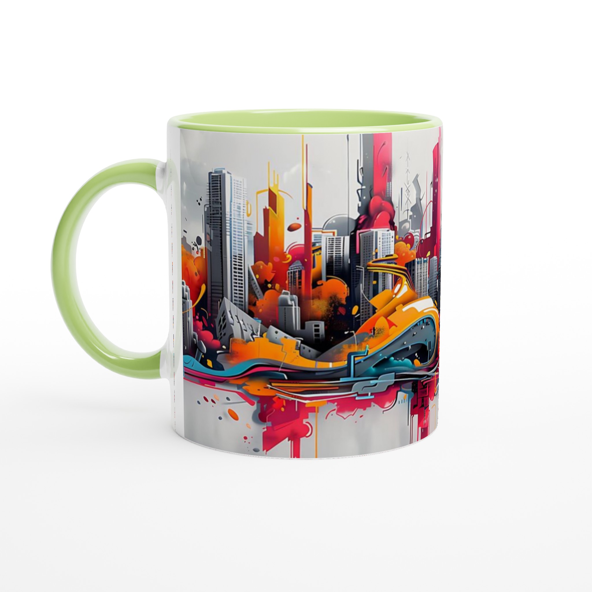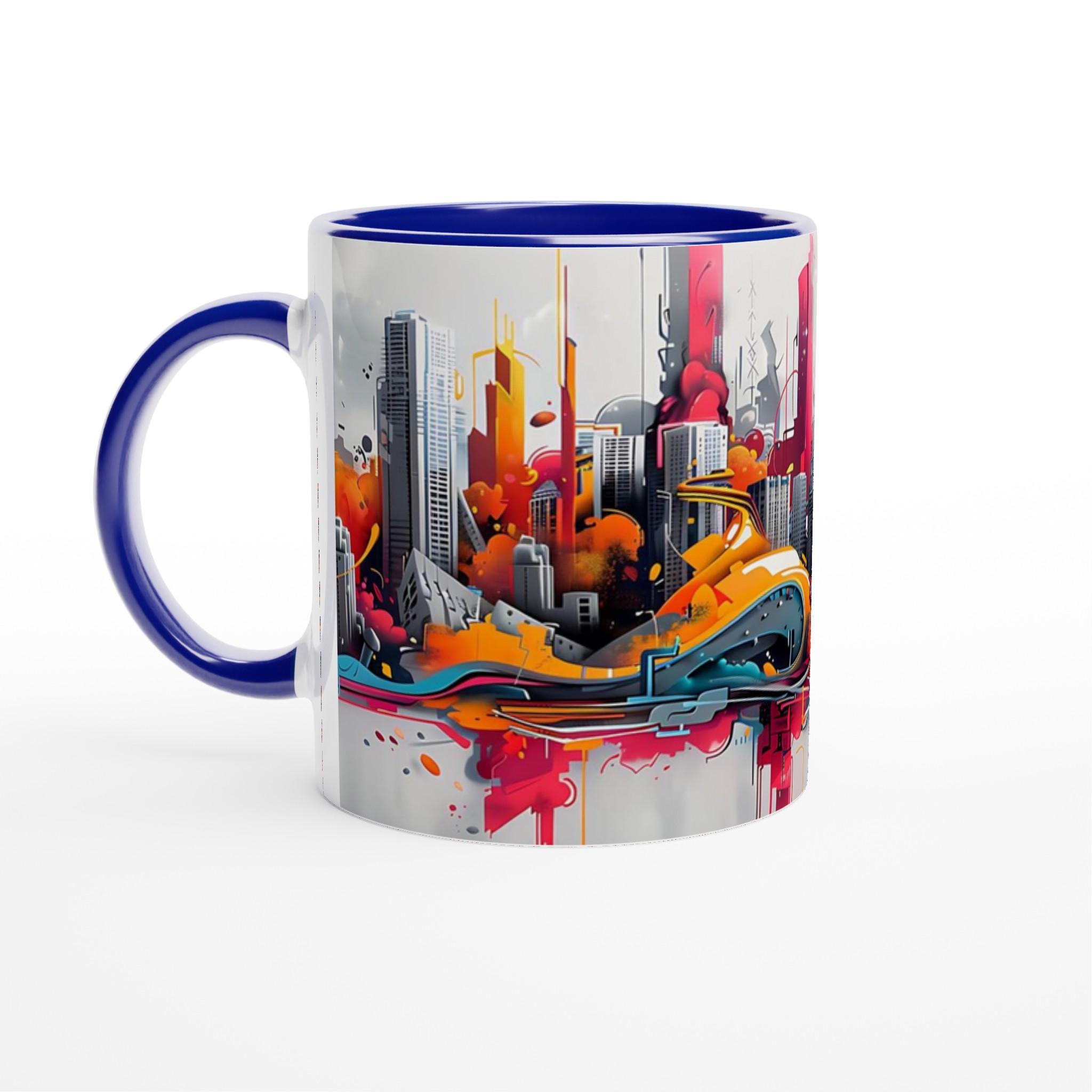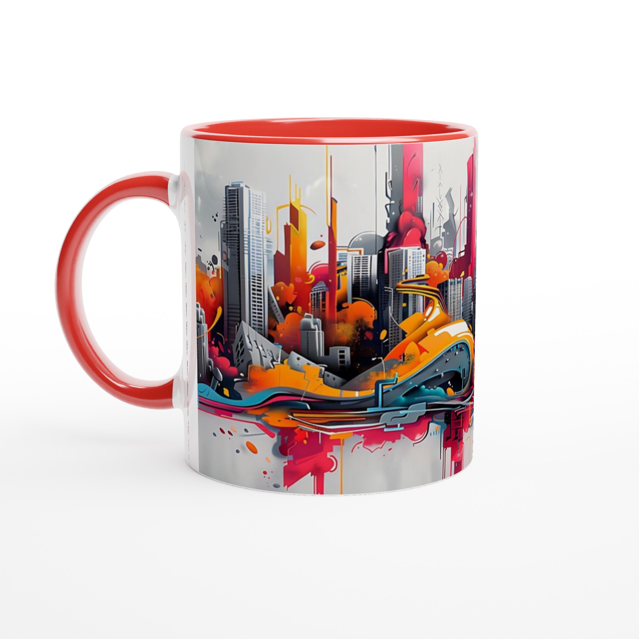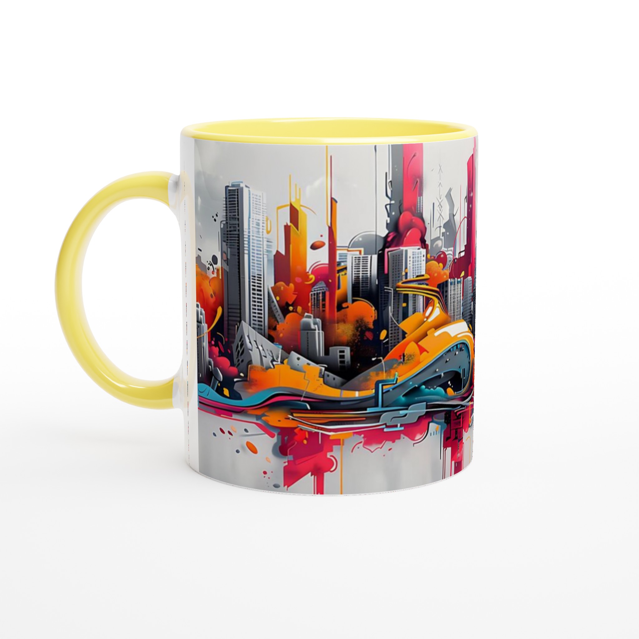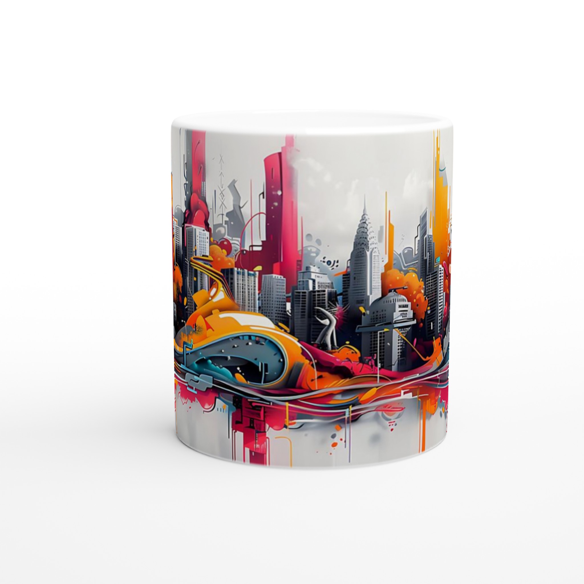 Abstract Cityscape Art Ceramic Mug 11oz – Vibrant Urban Splash in Your Favorite Hue