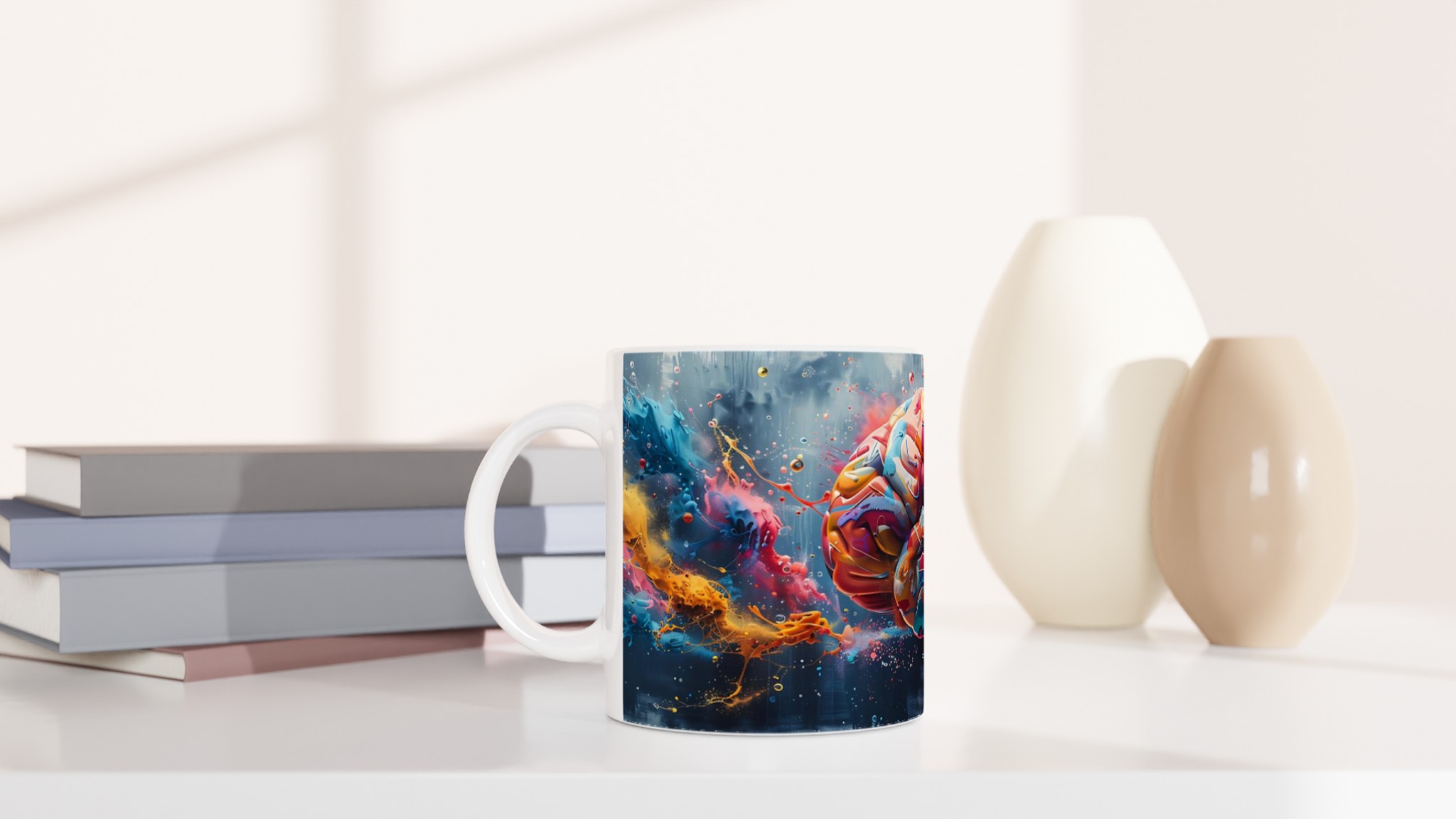 Vibrant Mind Splash – White Ceramic Mug 11oz – A Burst of Creativity for Your Daily Brew