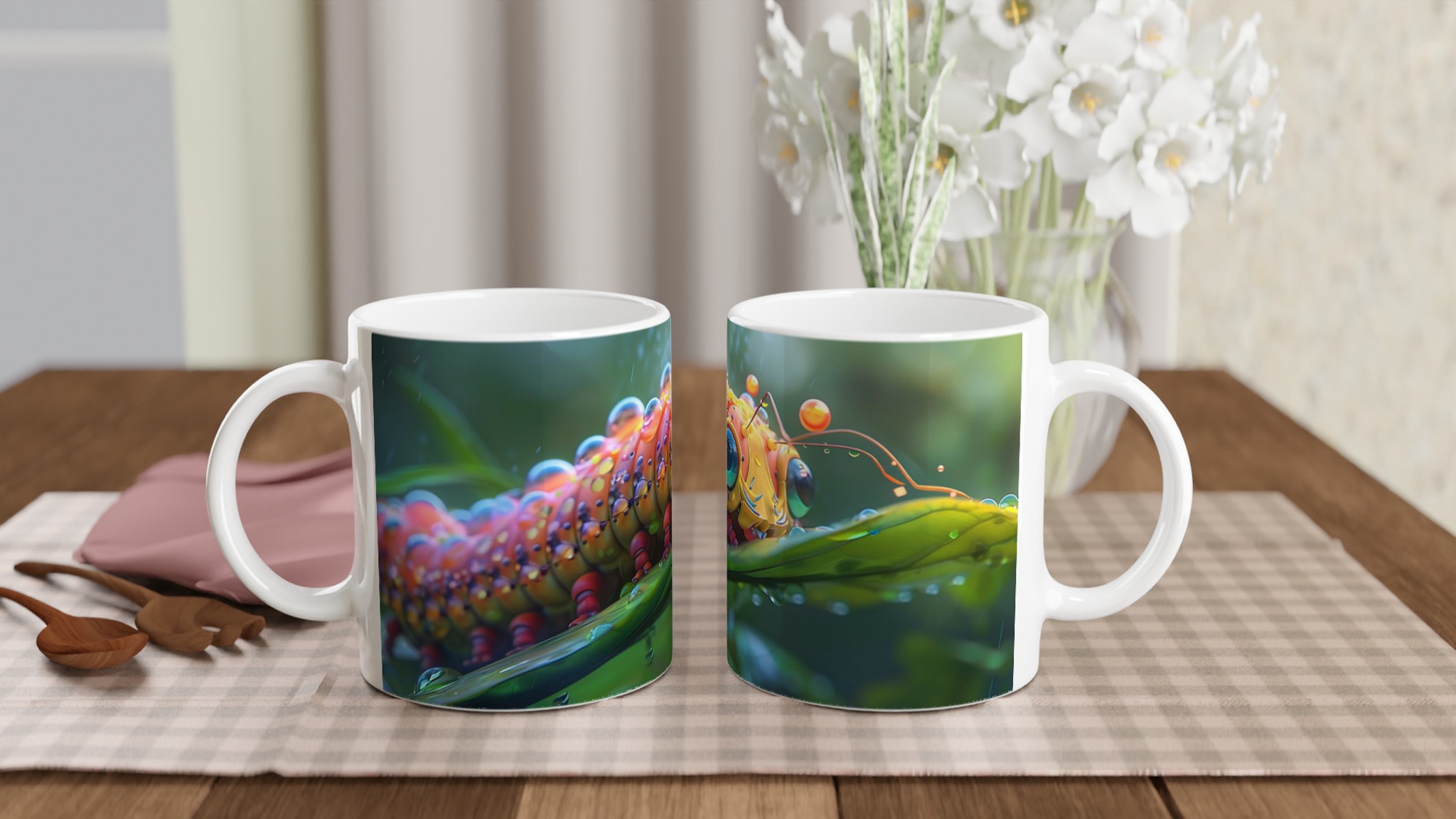 Vibrant Rainbow Caterpillar Ceramic Mug 11oz – Artful & Playful Drinkware in 7 Colors