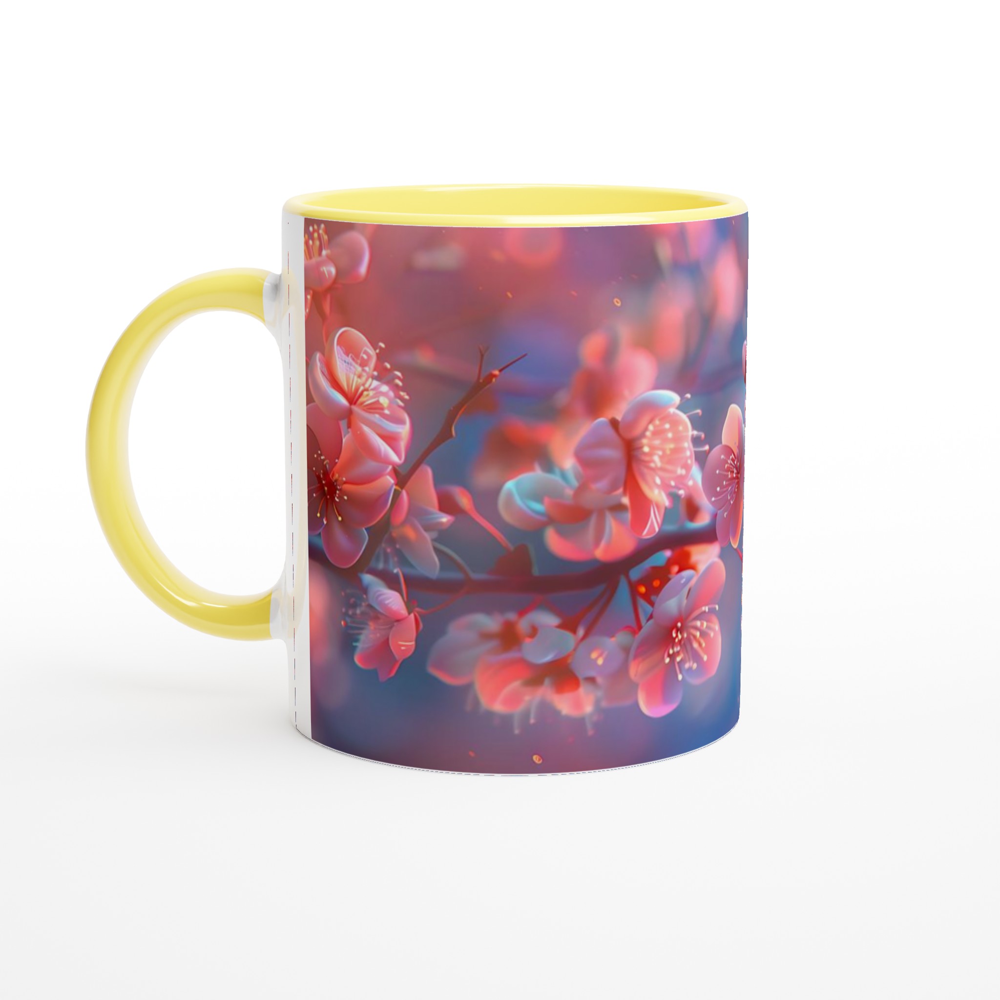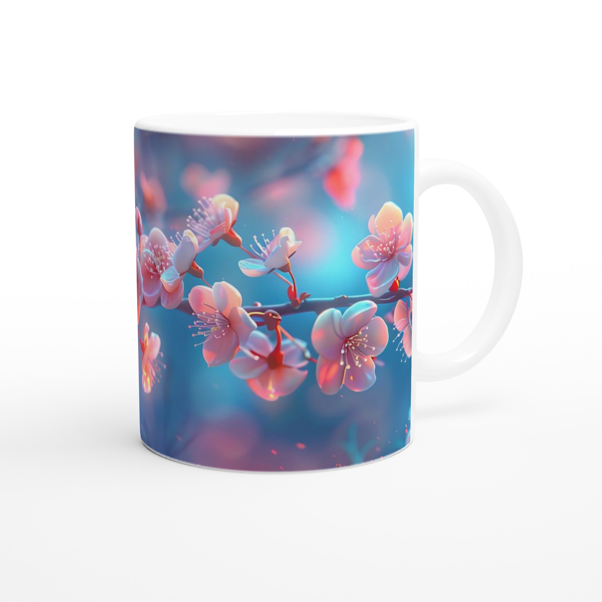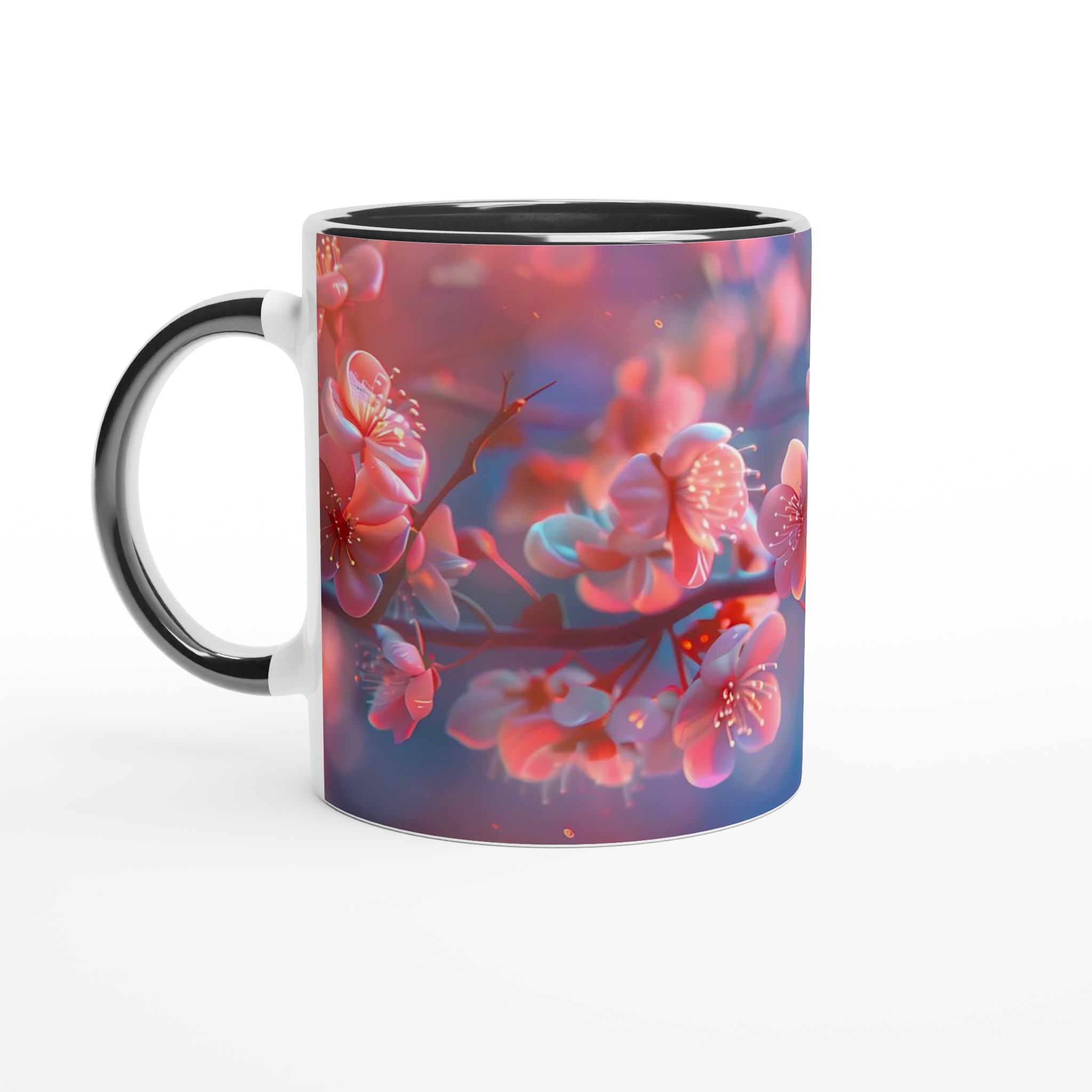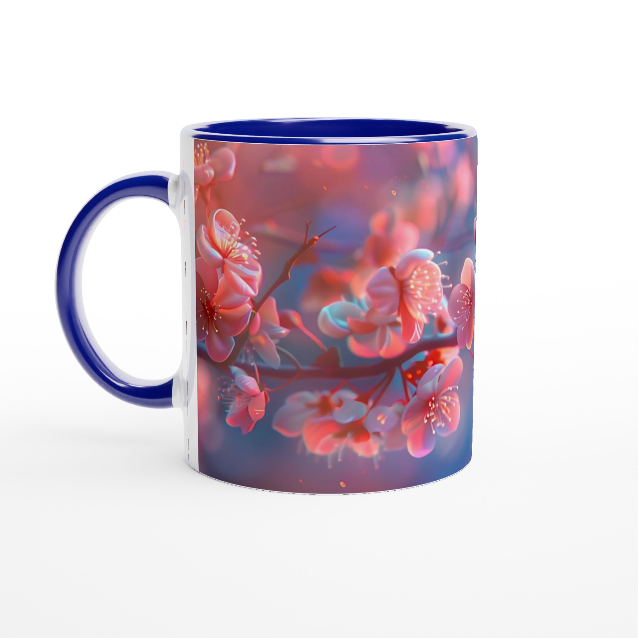 Blossom Bliss – Ceramic Mug 11oz, Vibrant Pink & Blue Hues, in your choice of seven charming shades