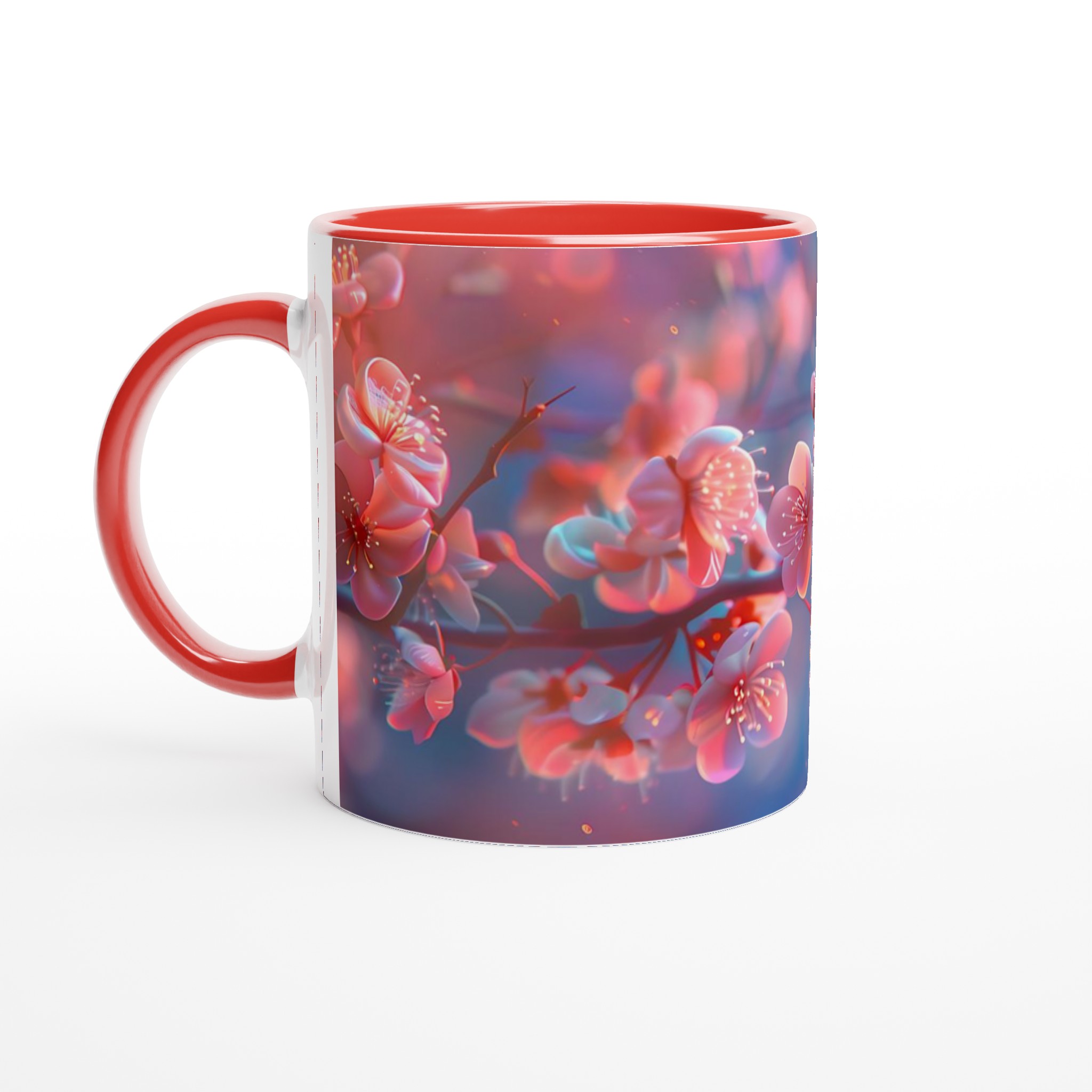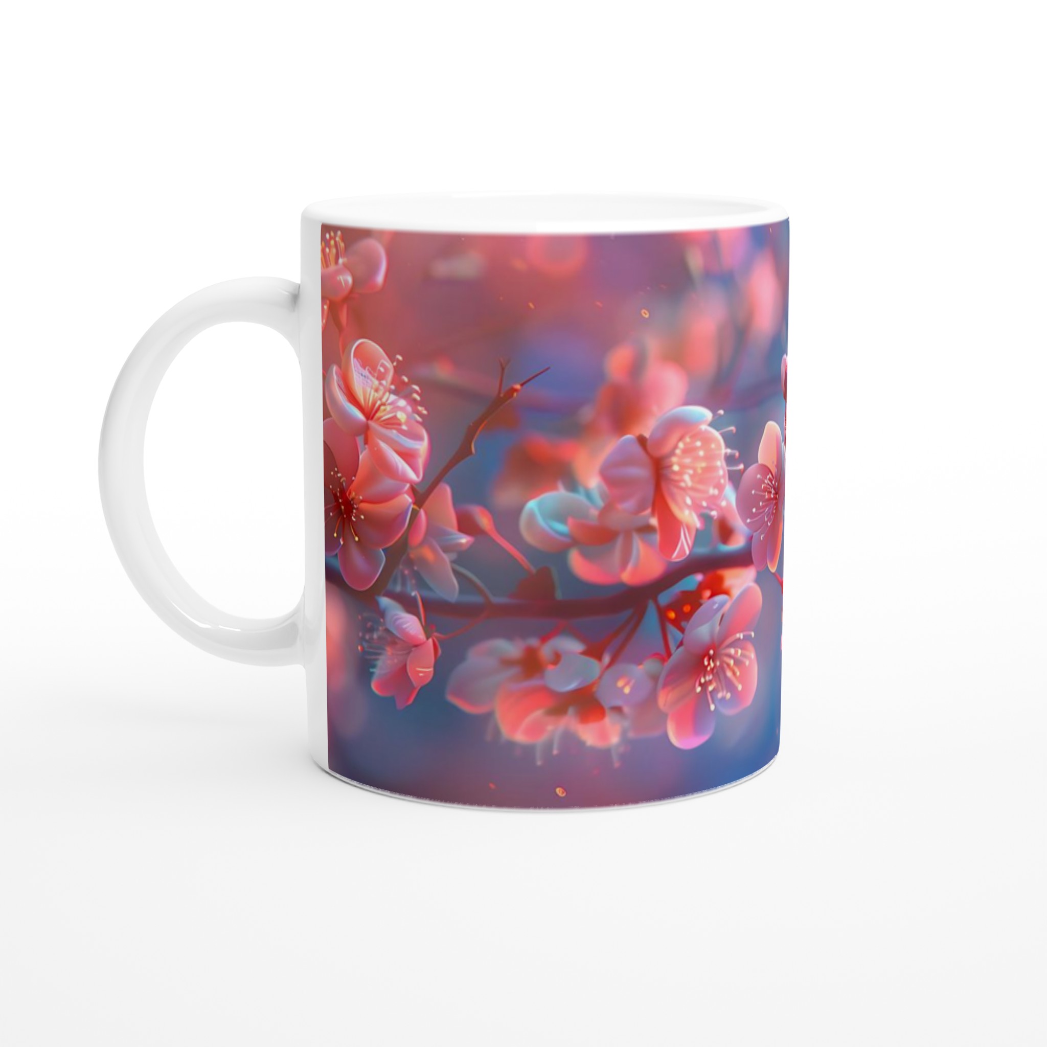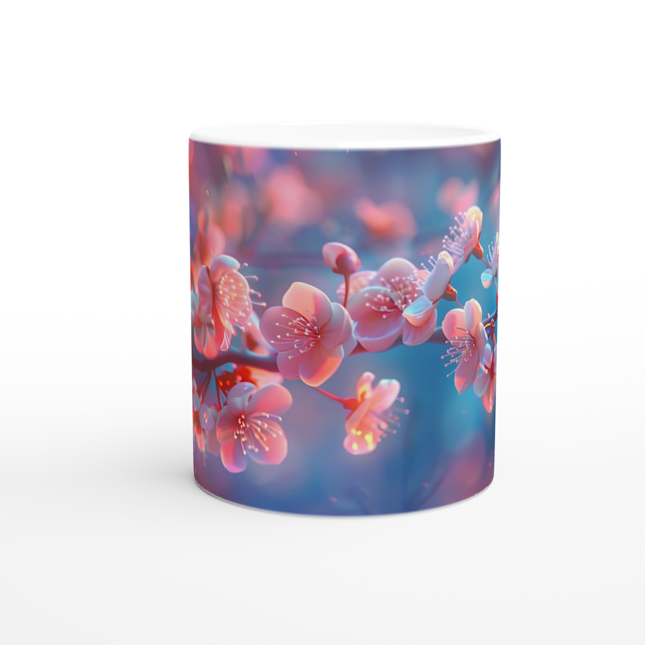 Blossom Bliss – Ceramic Mug 11oz, Vibrant Pink & Blue Hues, in your choice of seven charming shades