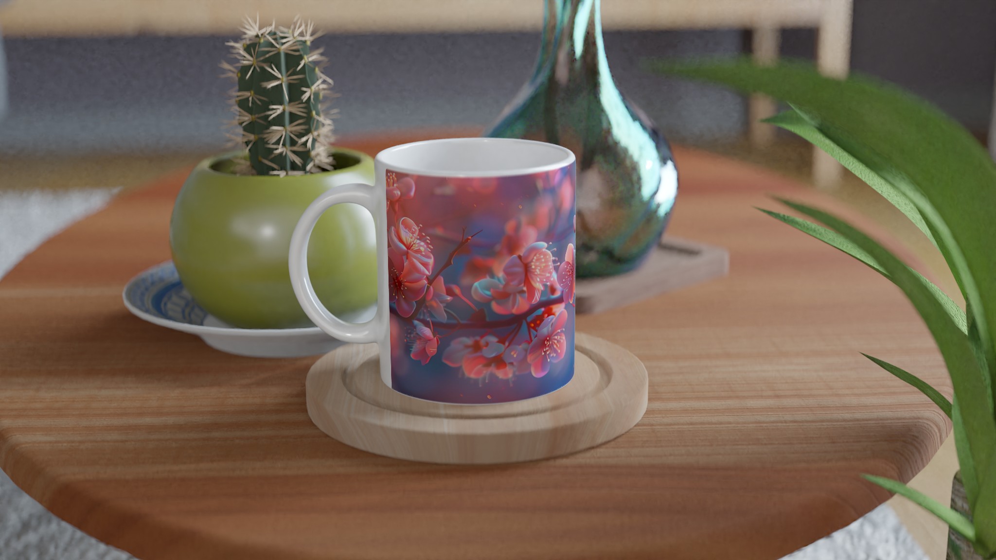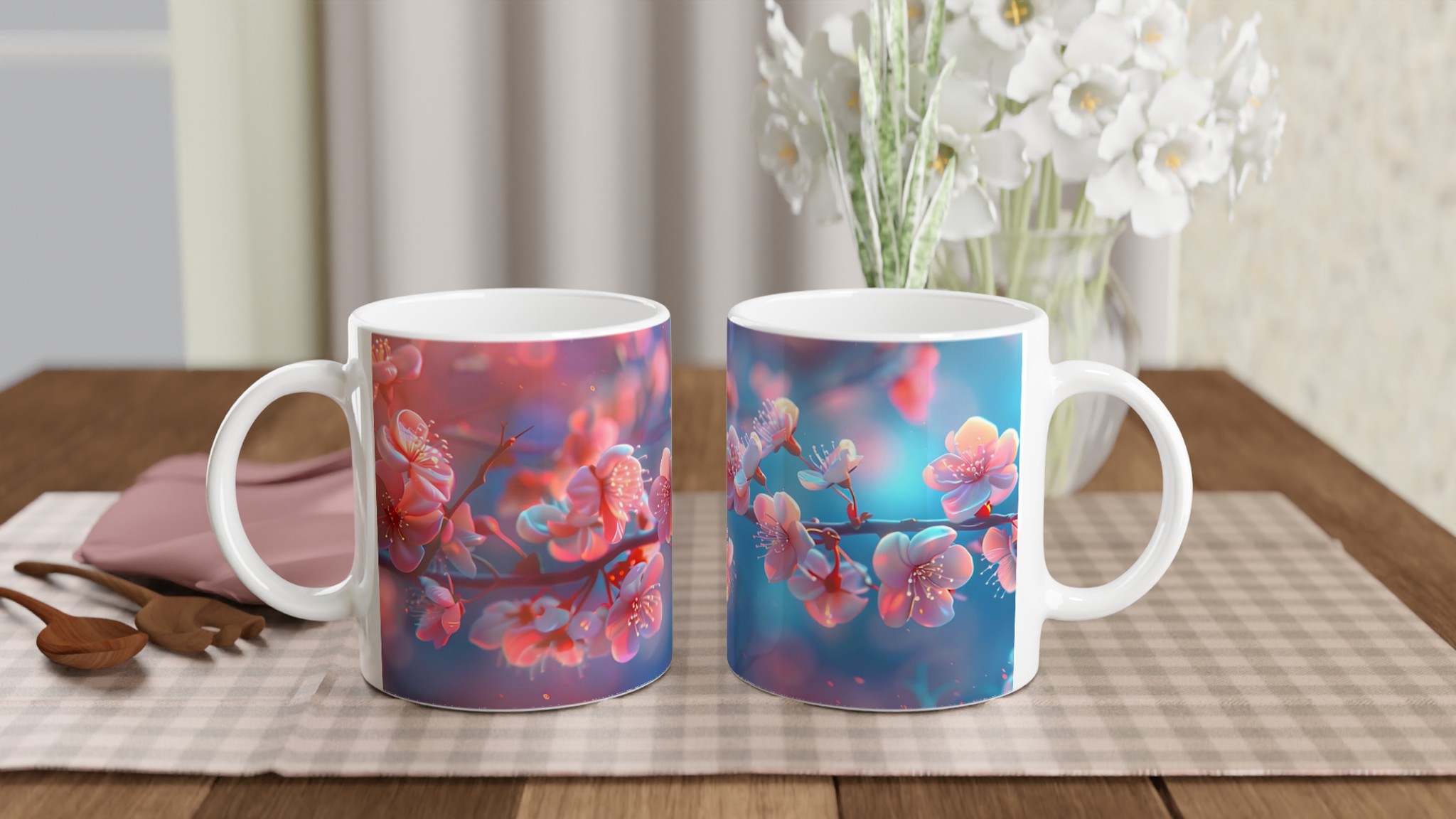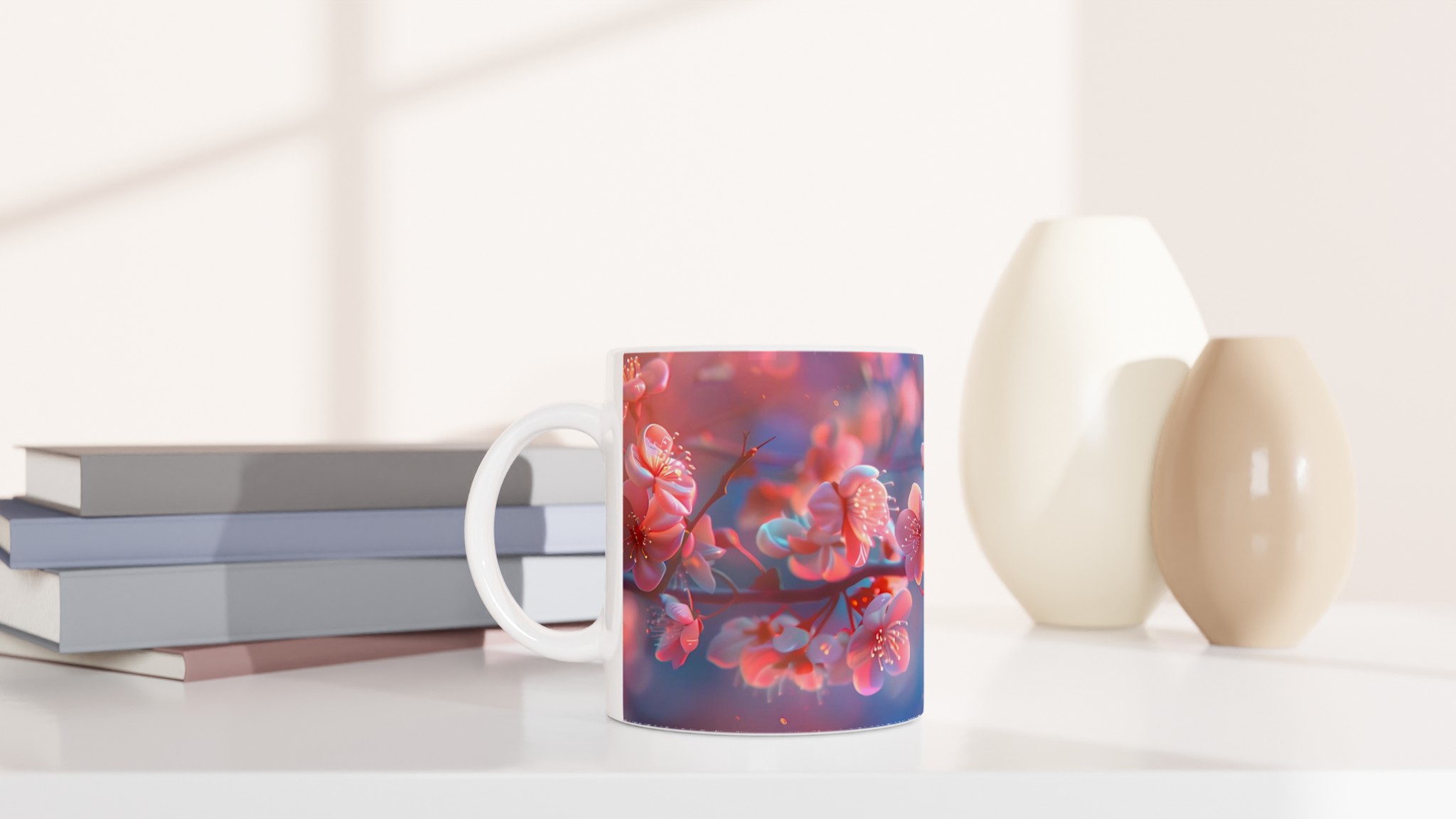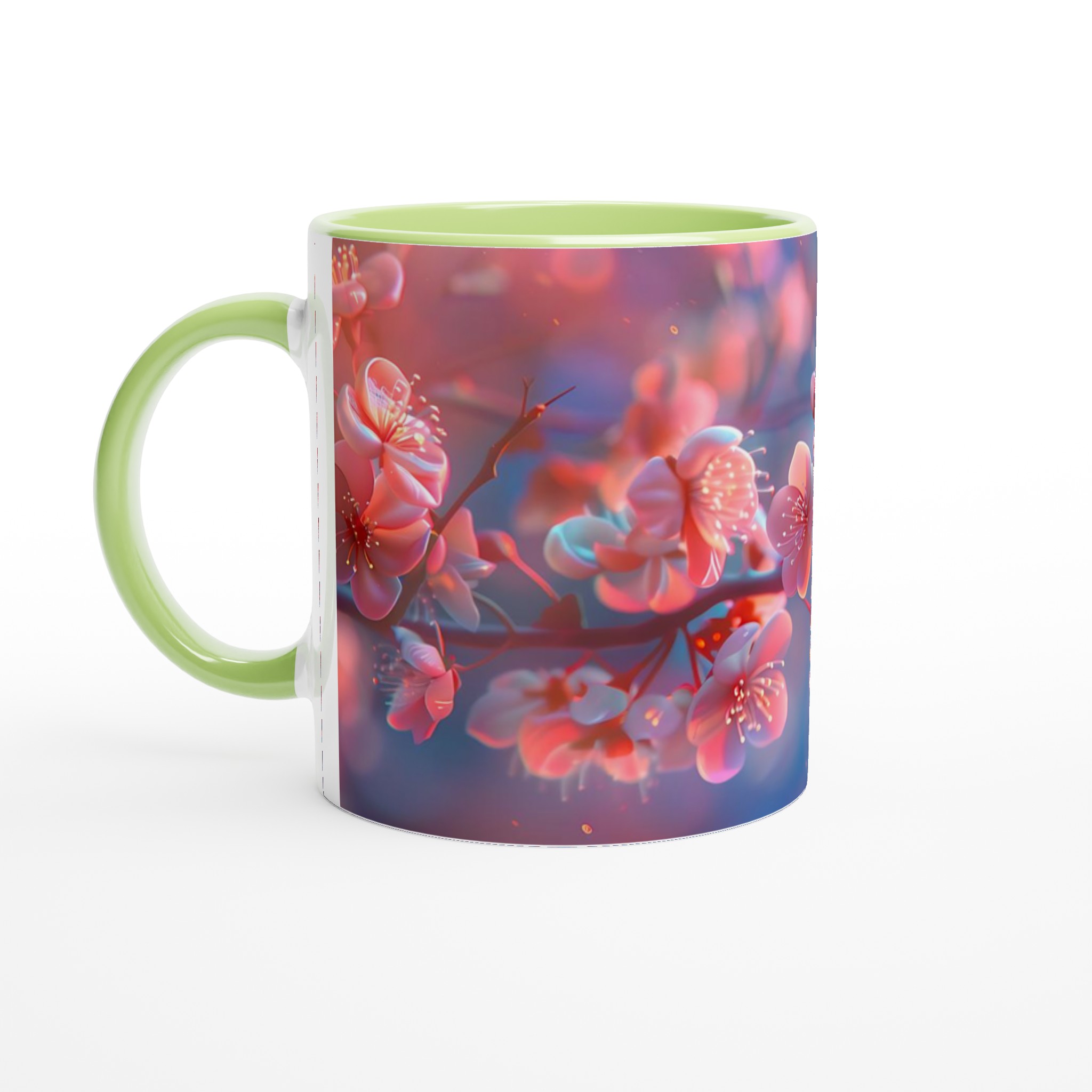 Blossom Bliss – Ceramic Mug 11oz, Vibrant Pink & Blue Hues, in your choice of seven charming shades
