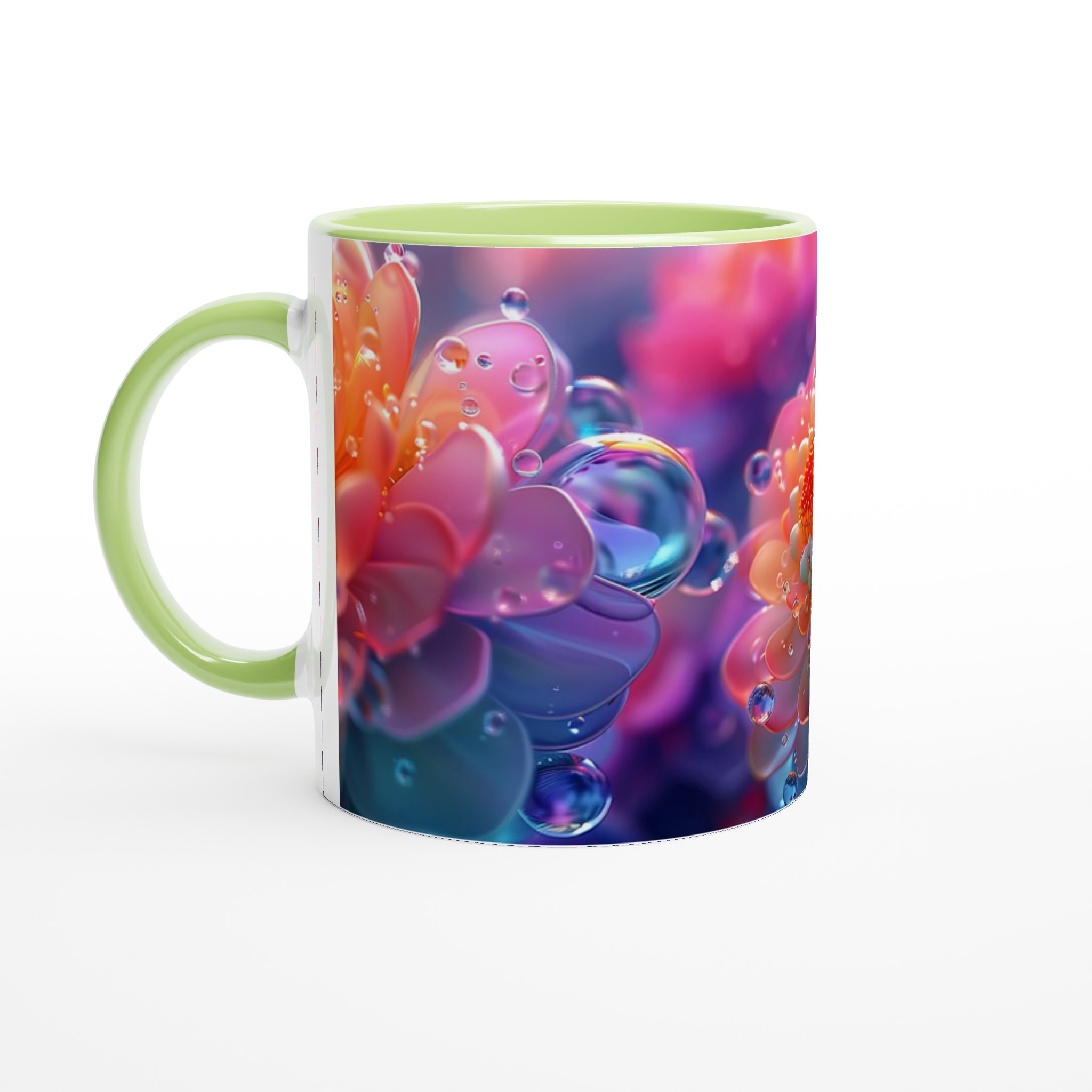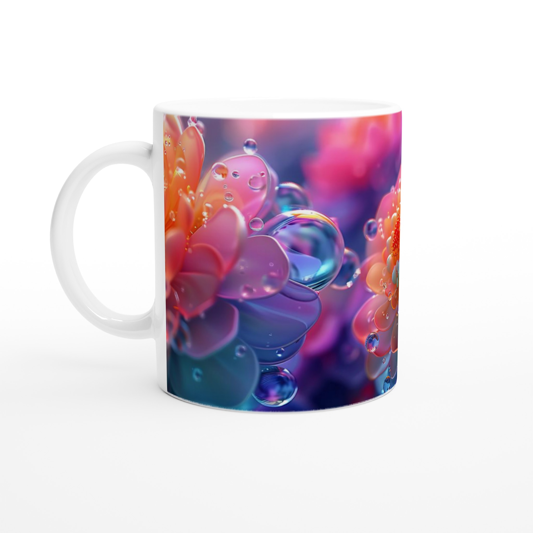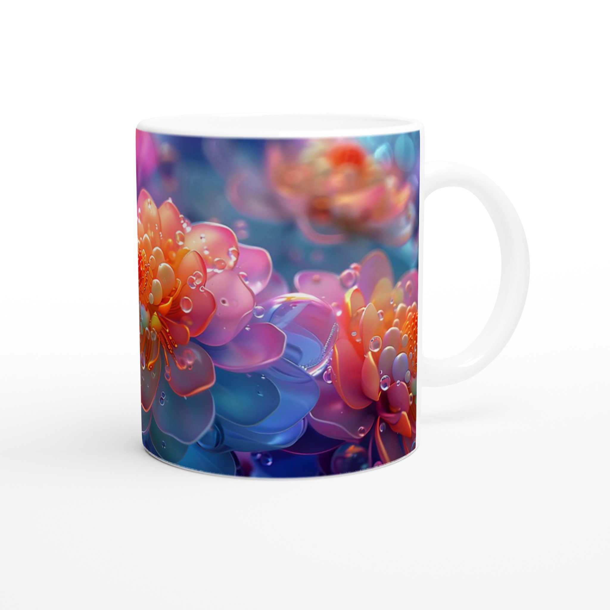 Abstract Floral Dewdrop Dream – Ceramic Mug 11oz, Available in 7 Vibrant Colors