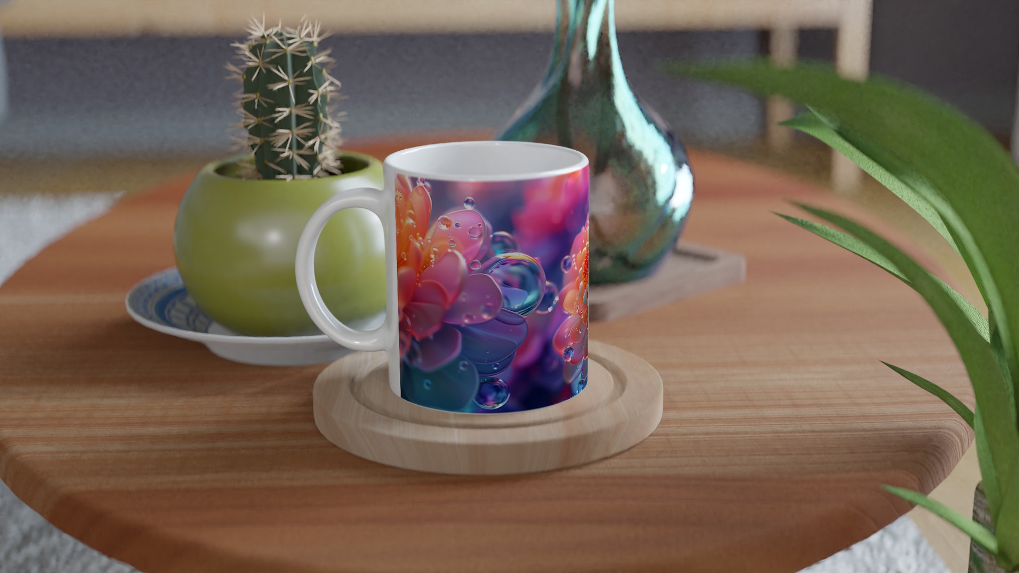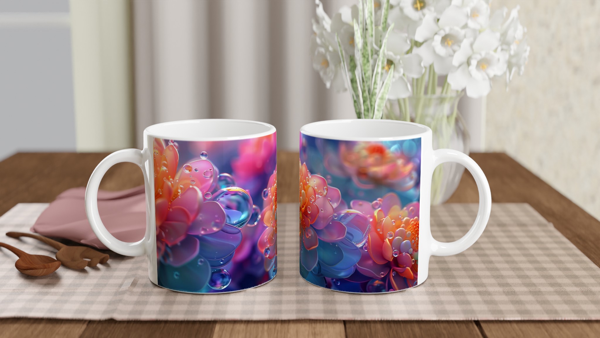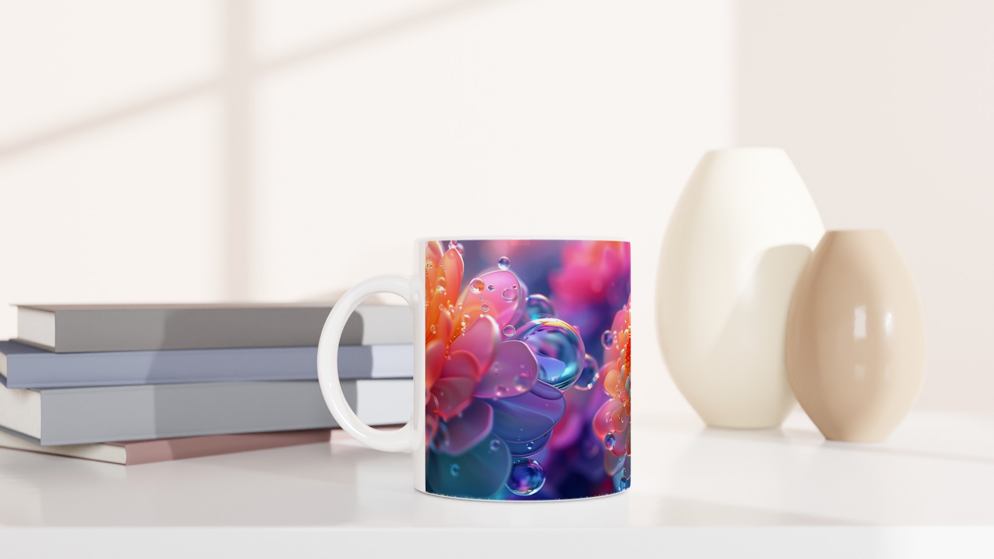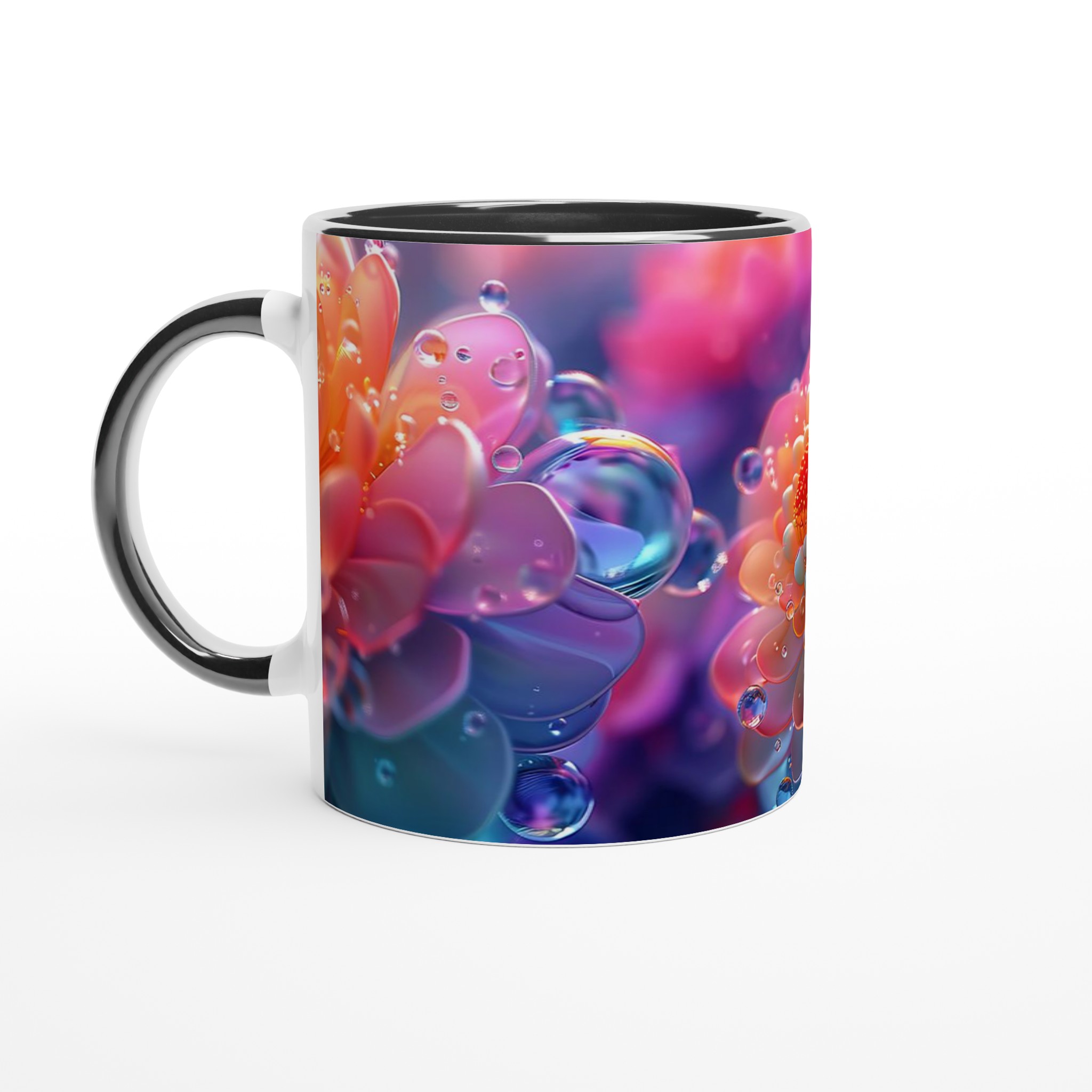 Abstract Floral Dewdrop Dream – Ceramic Mug 11oz, Available in 7 Vibrant Colors