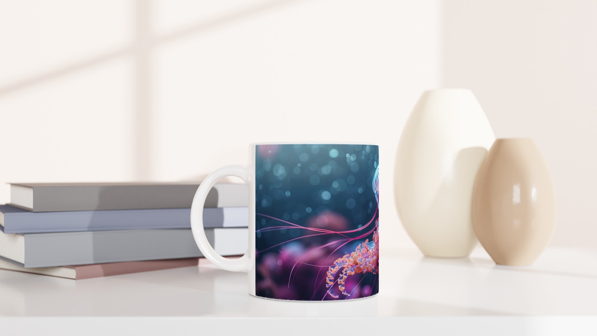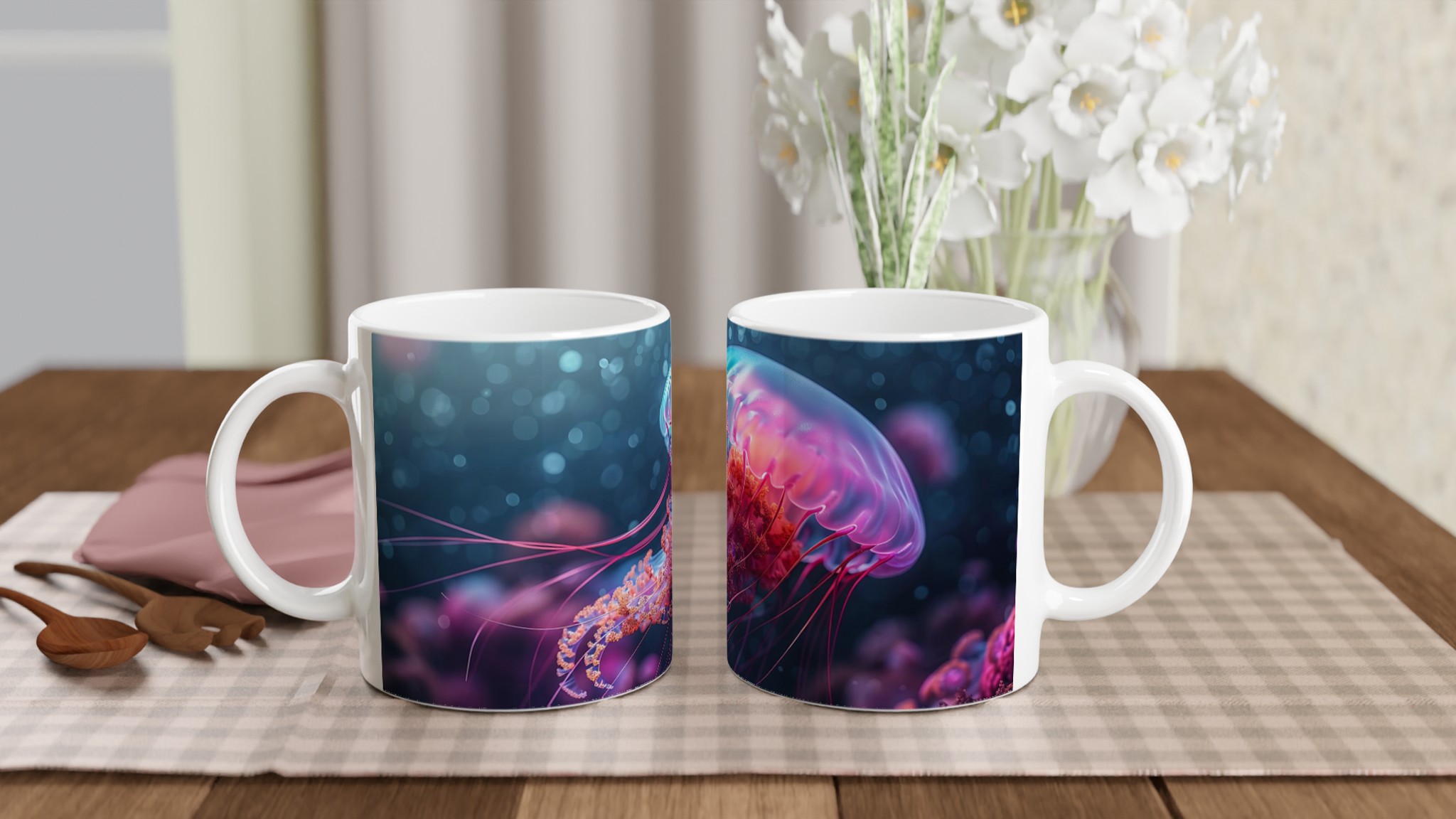 Enchanting Bioluminescent Jellyfish – Ceramic Mug 11oz in Your Choice of Seven Vibrant Hues