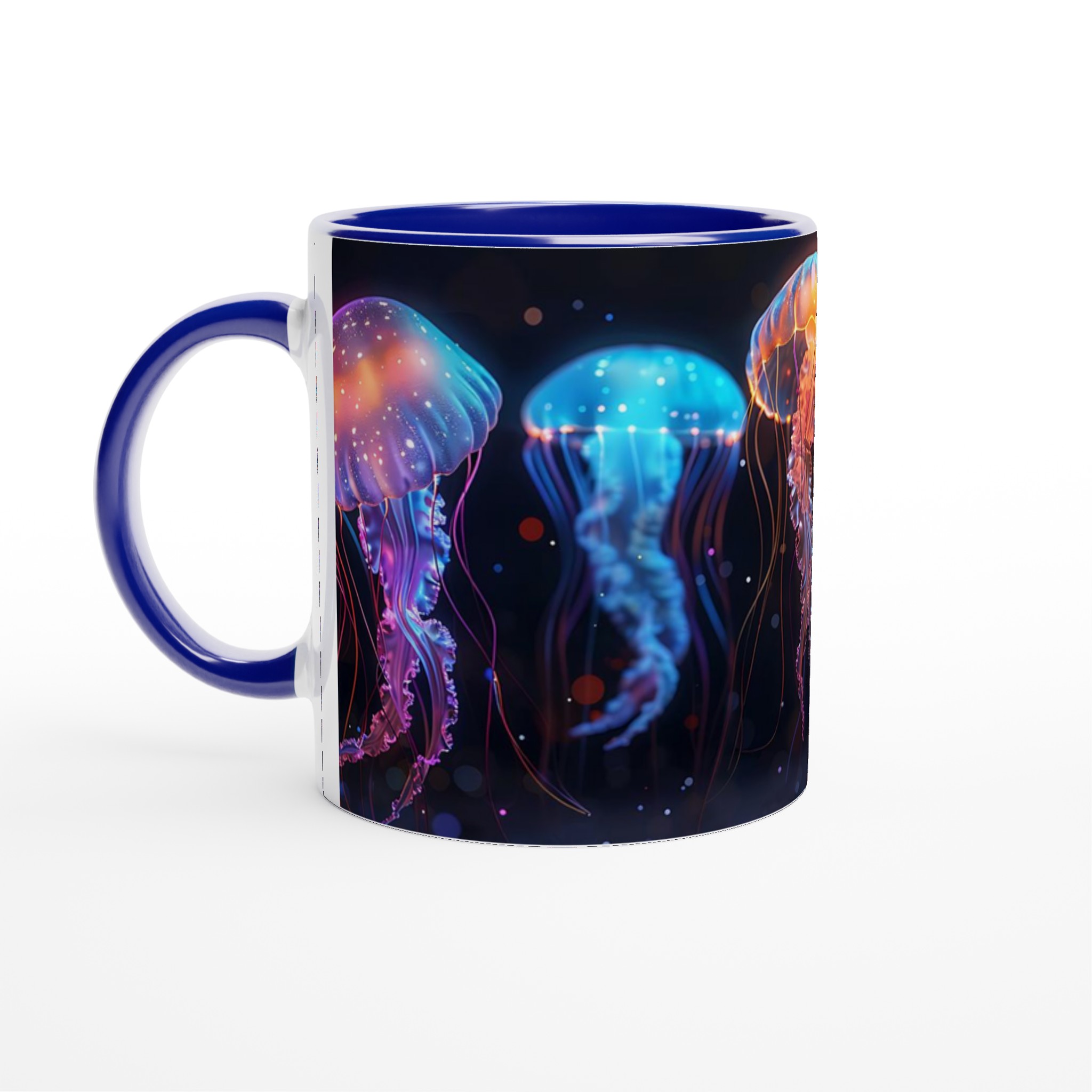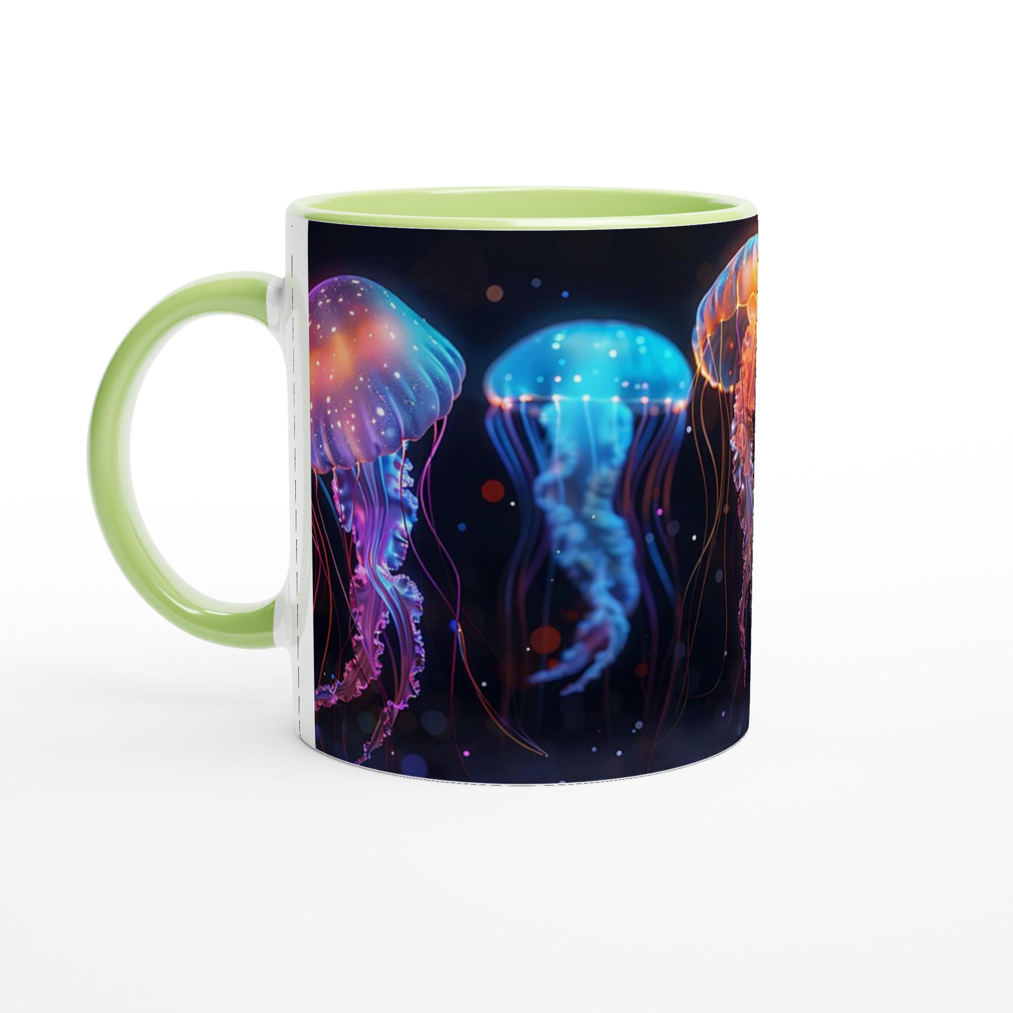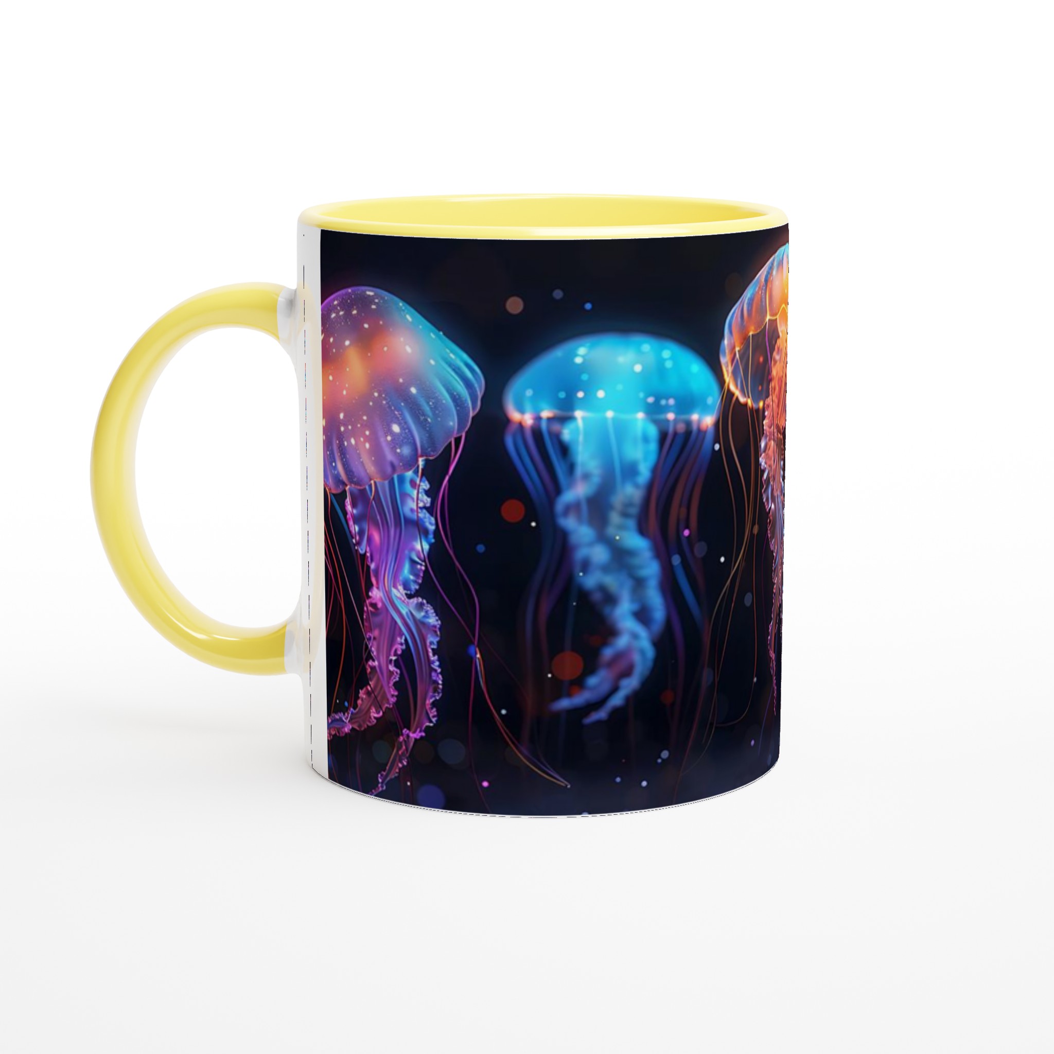 Bioluminescent Jellyfish Dream – White Ceramic Mug 11oz, in your choice of seven vibrant colors!