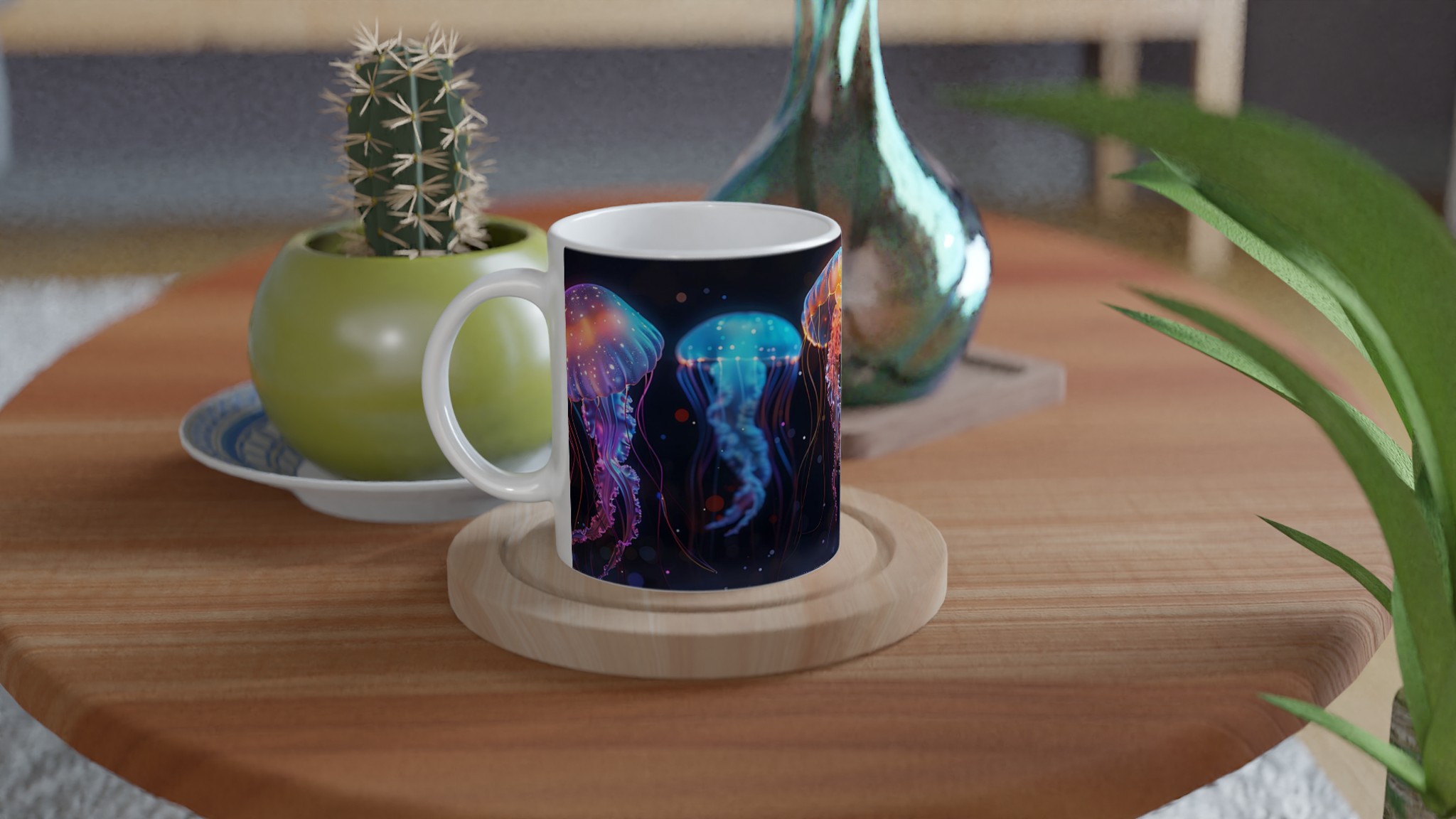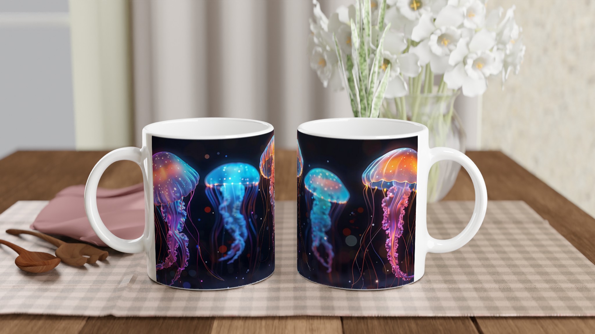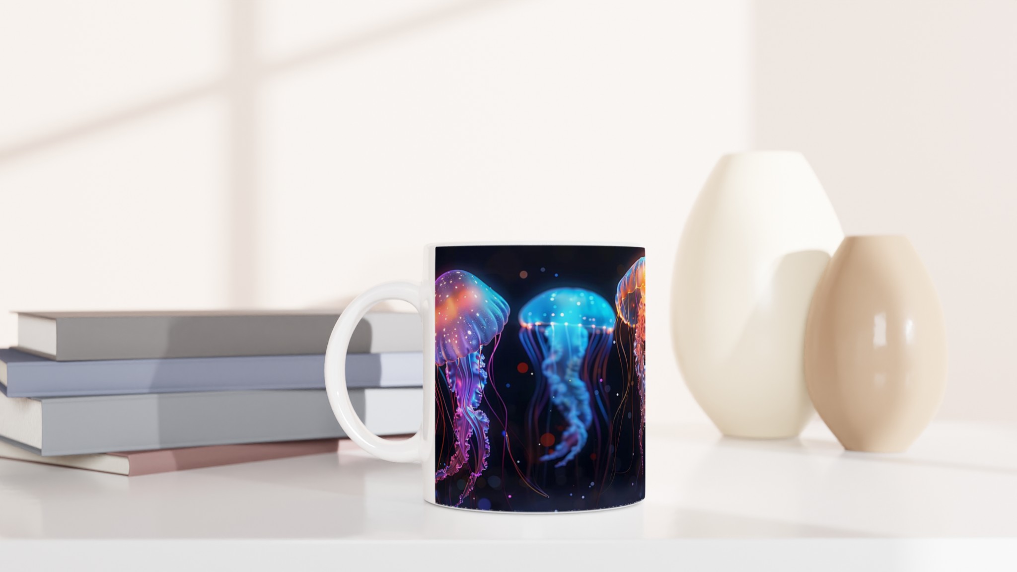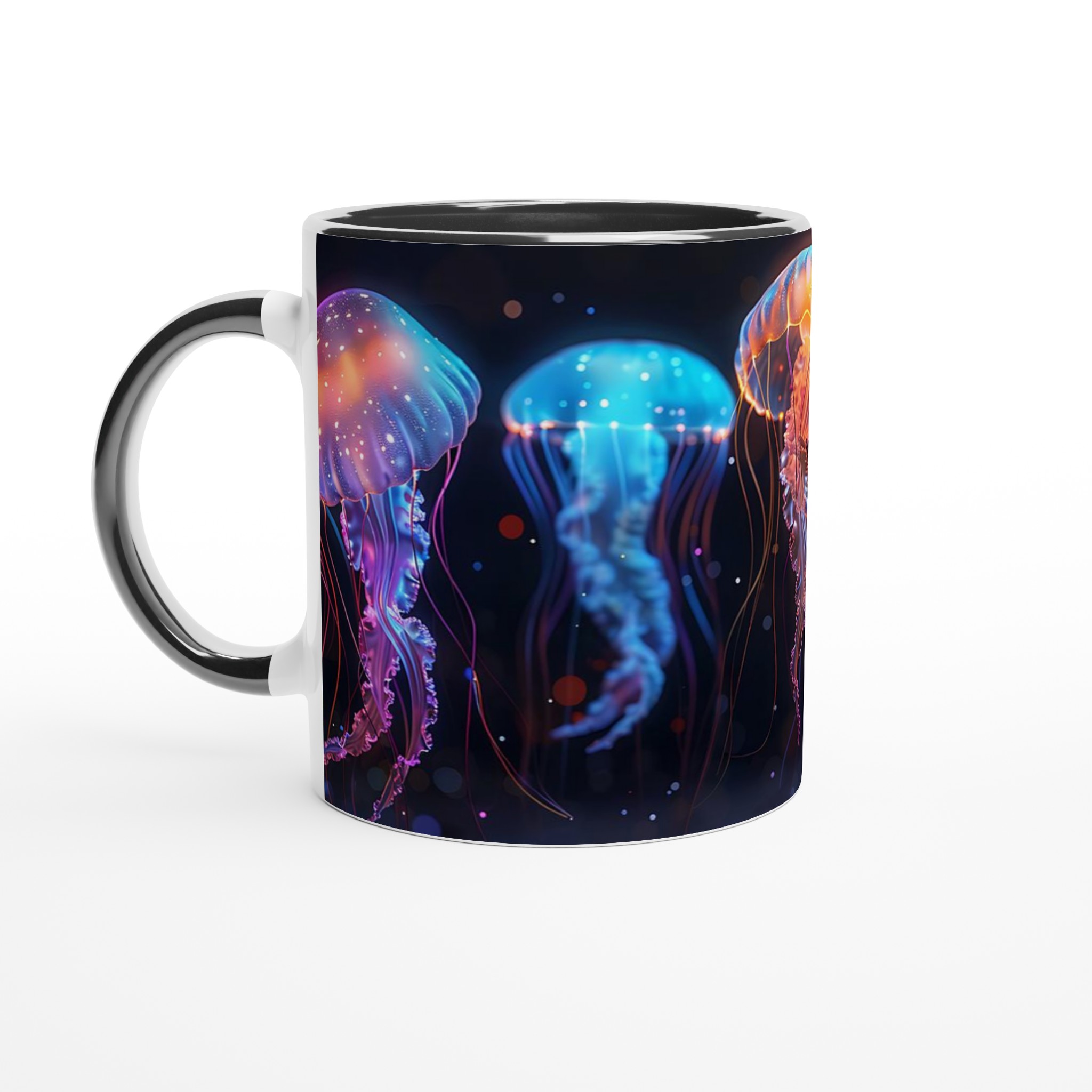 Bioluminescent Jellyfish Dream – White Ceramic Mug 11oz, in your choice of seven vibrant colors!