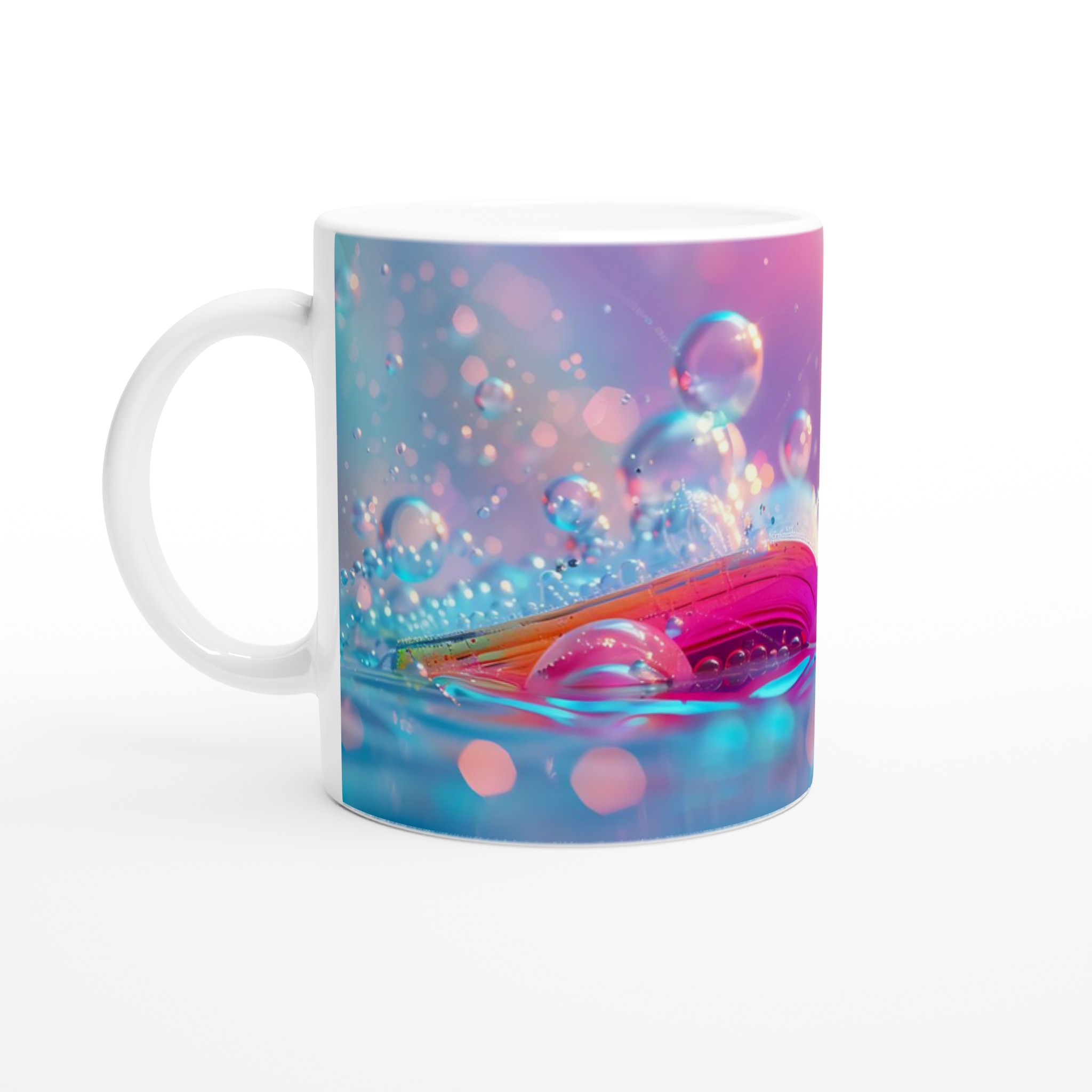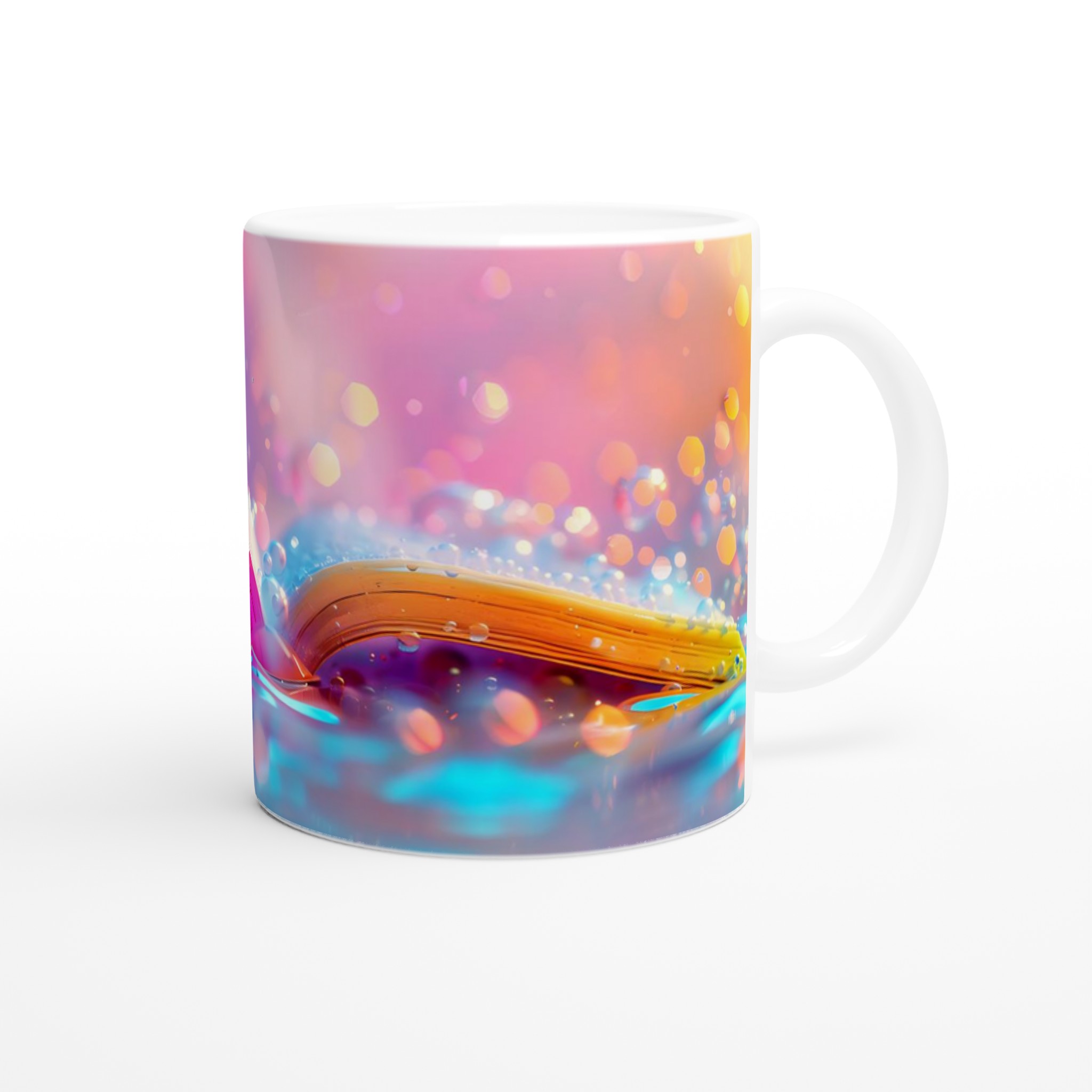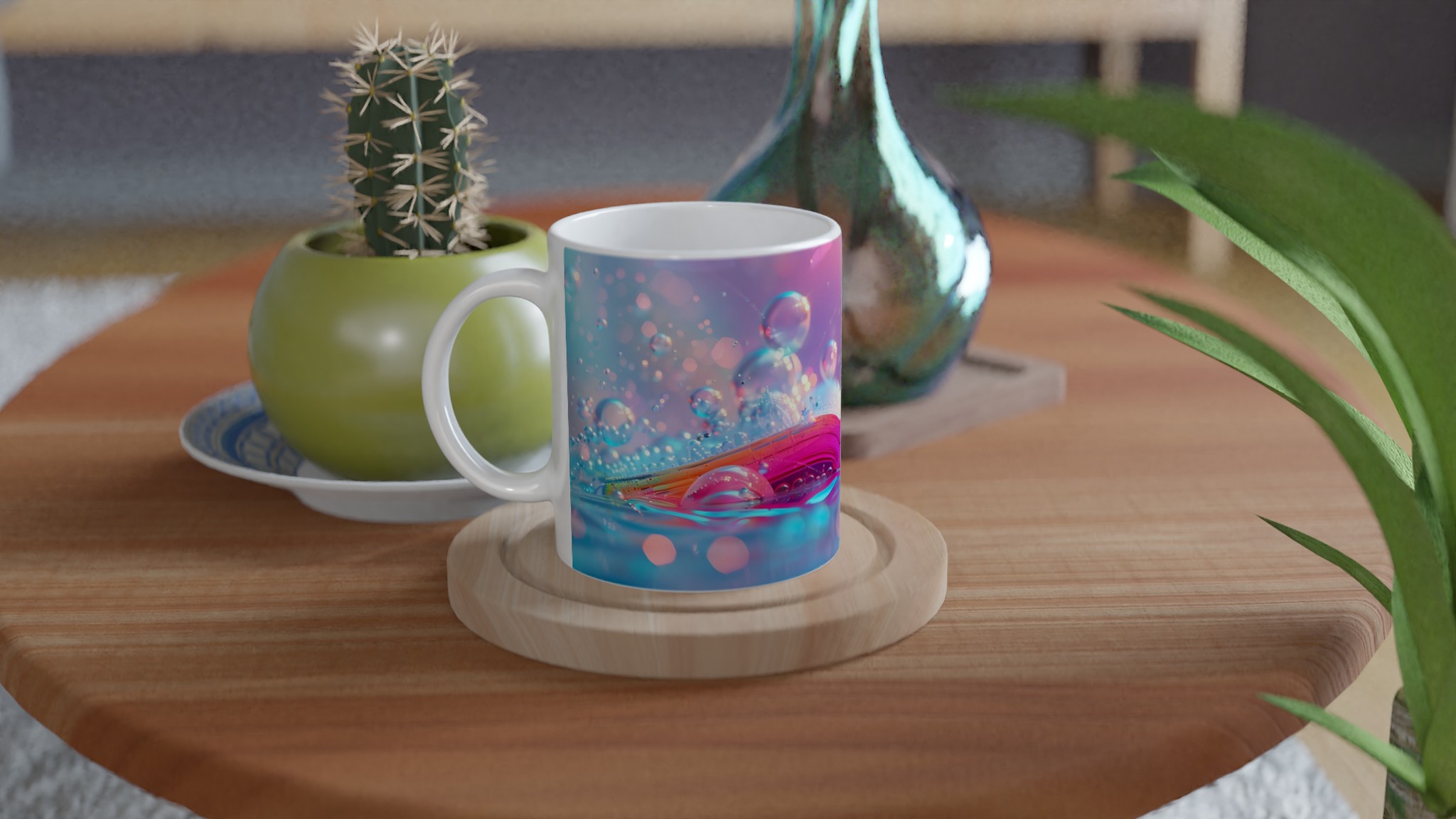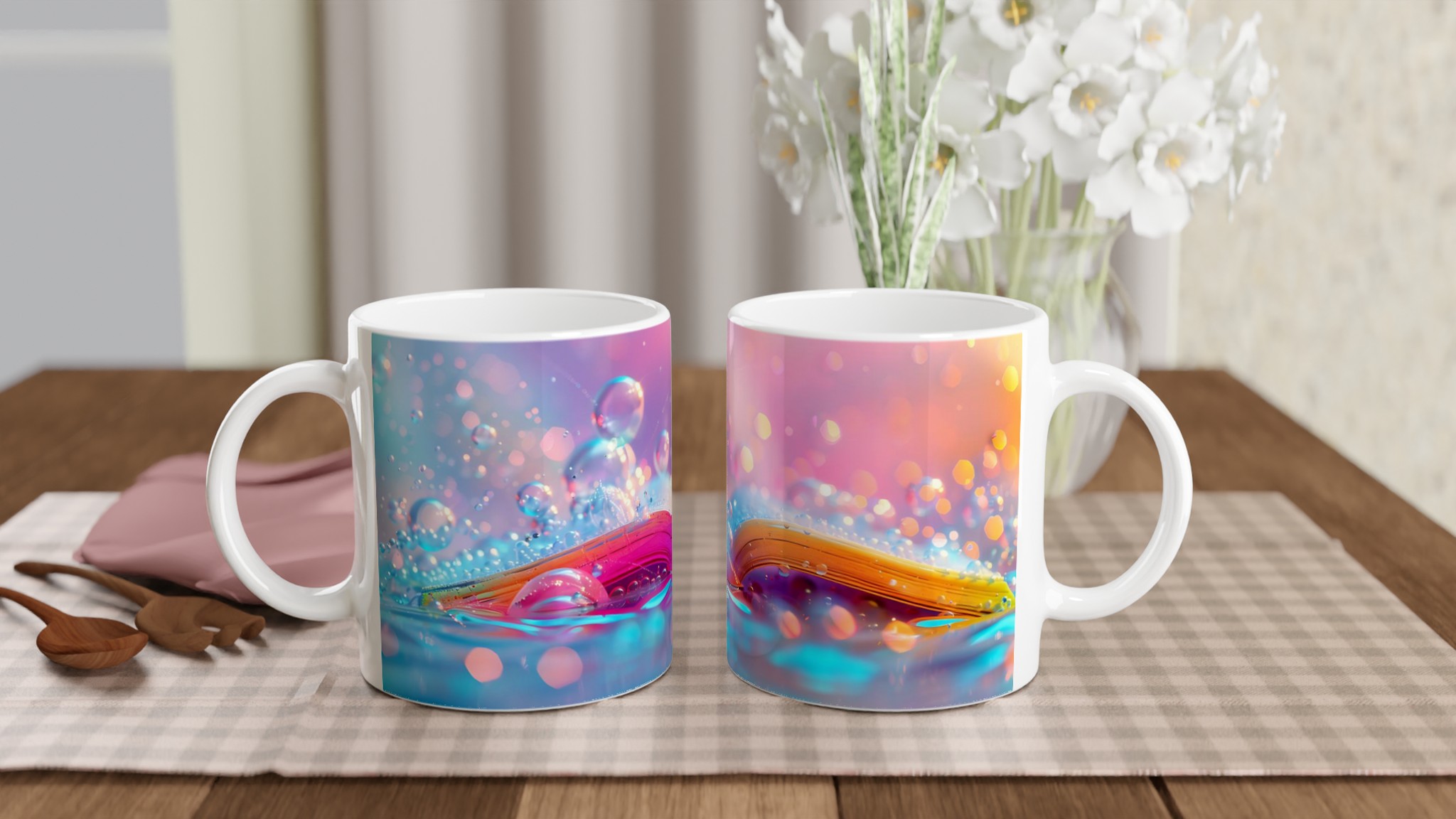 Vibrant Dreamscape – White Ceramic Mug 11oz with Dazzling Bubbles & Bokeh Bliss