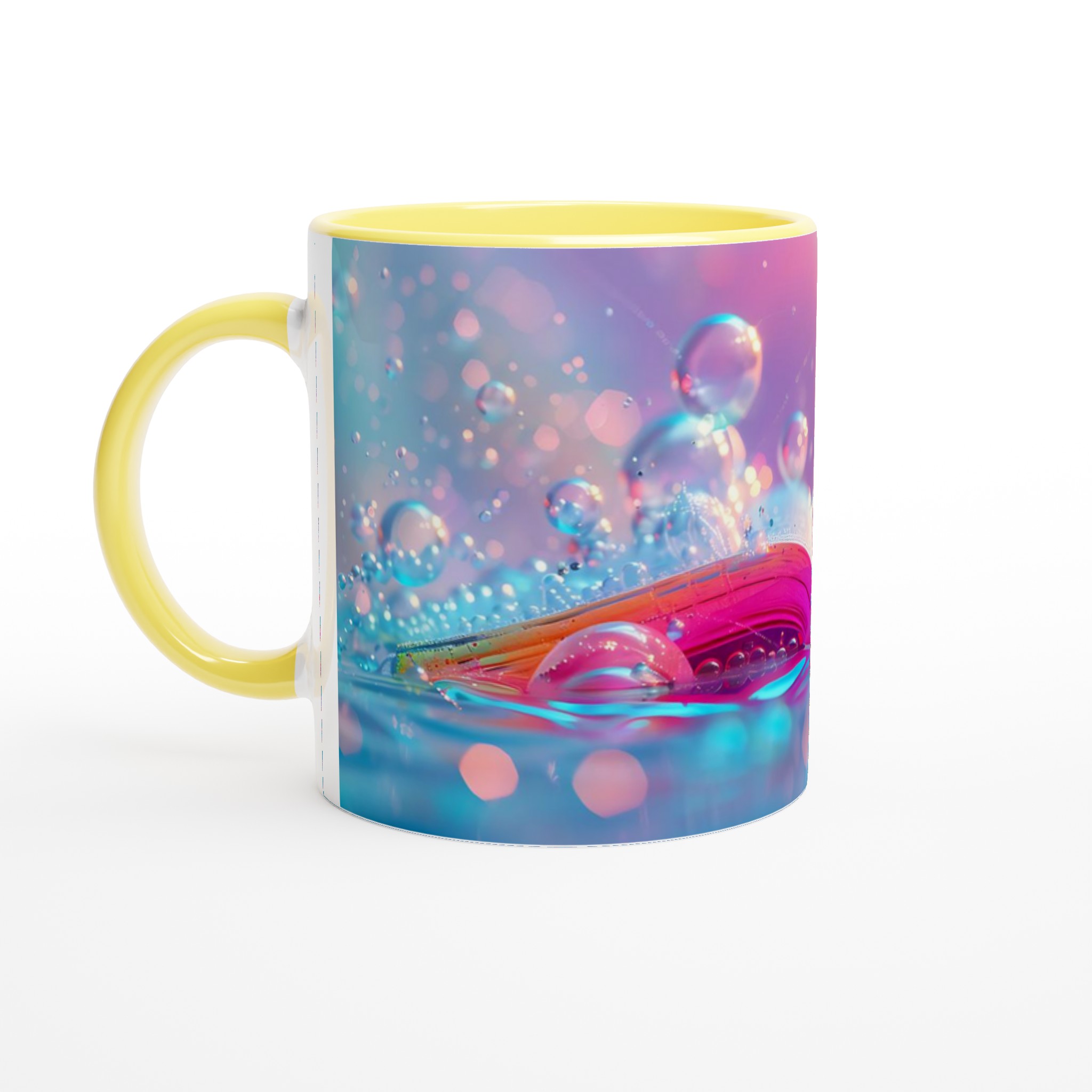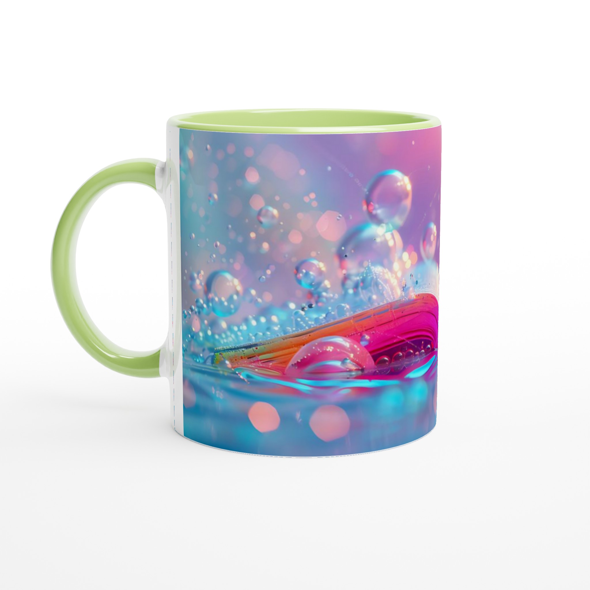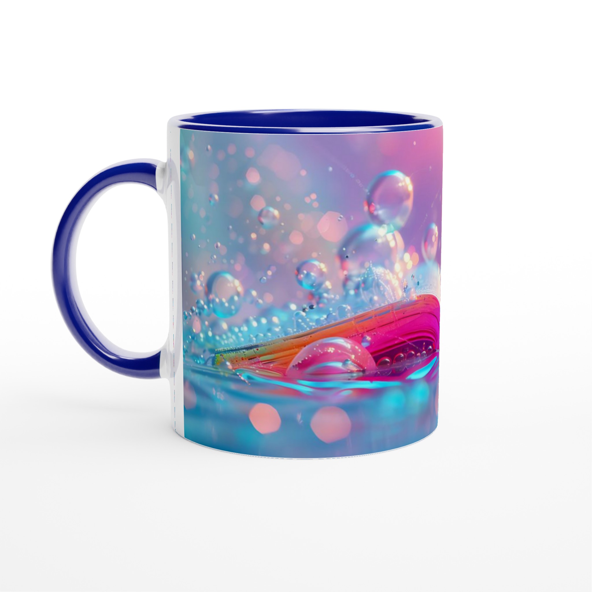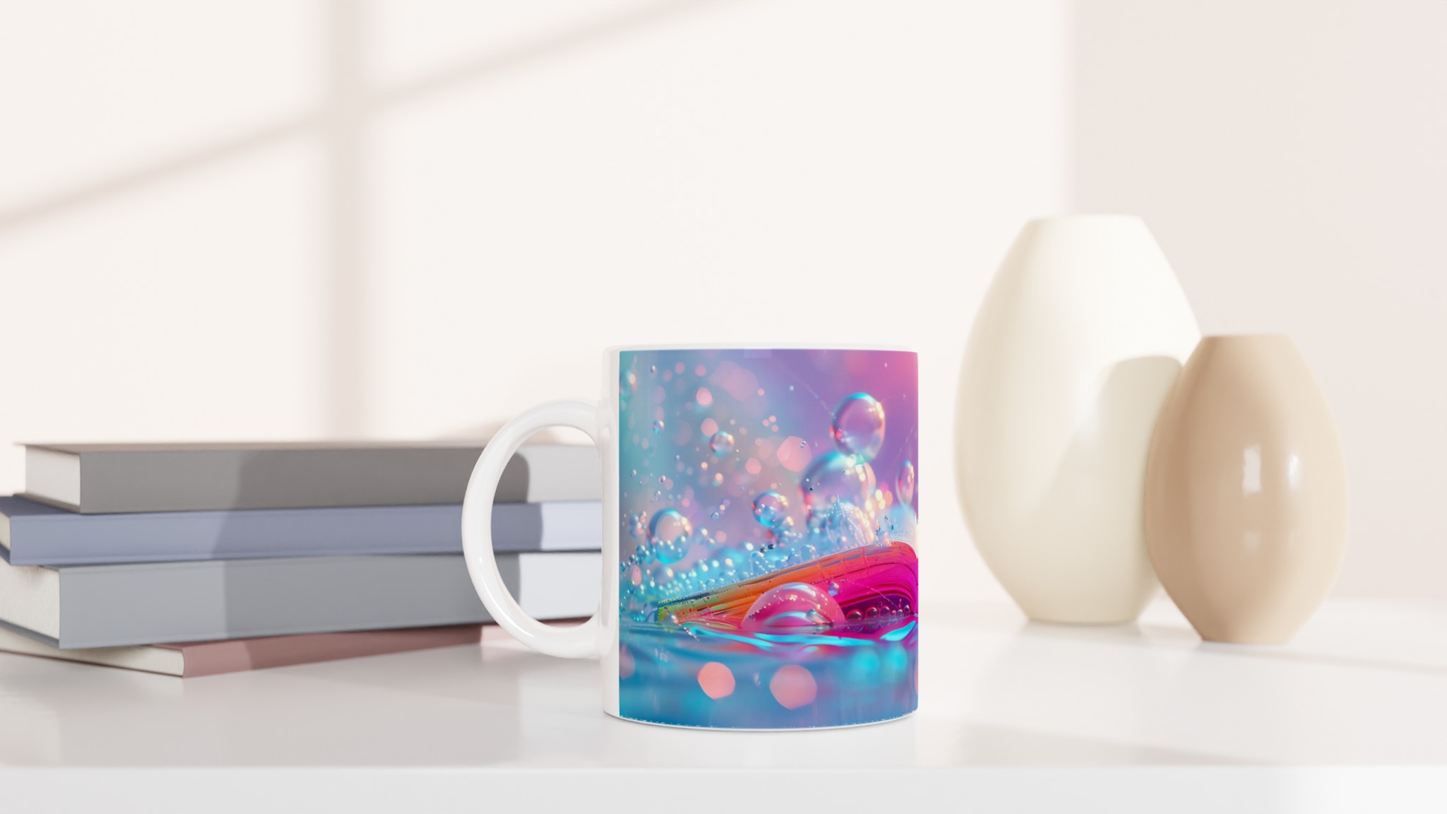 Vibrant Dreamscape – White Ceramic Mug 11oz with Dazzling Bubbles & Bokeh Bliss