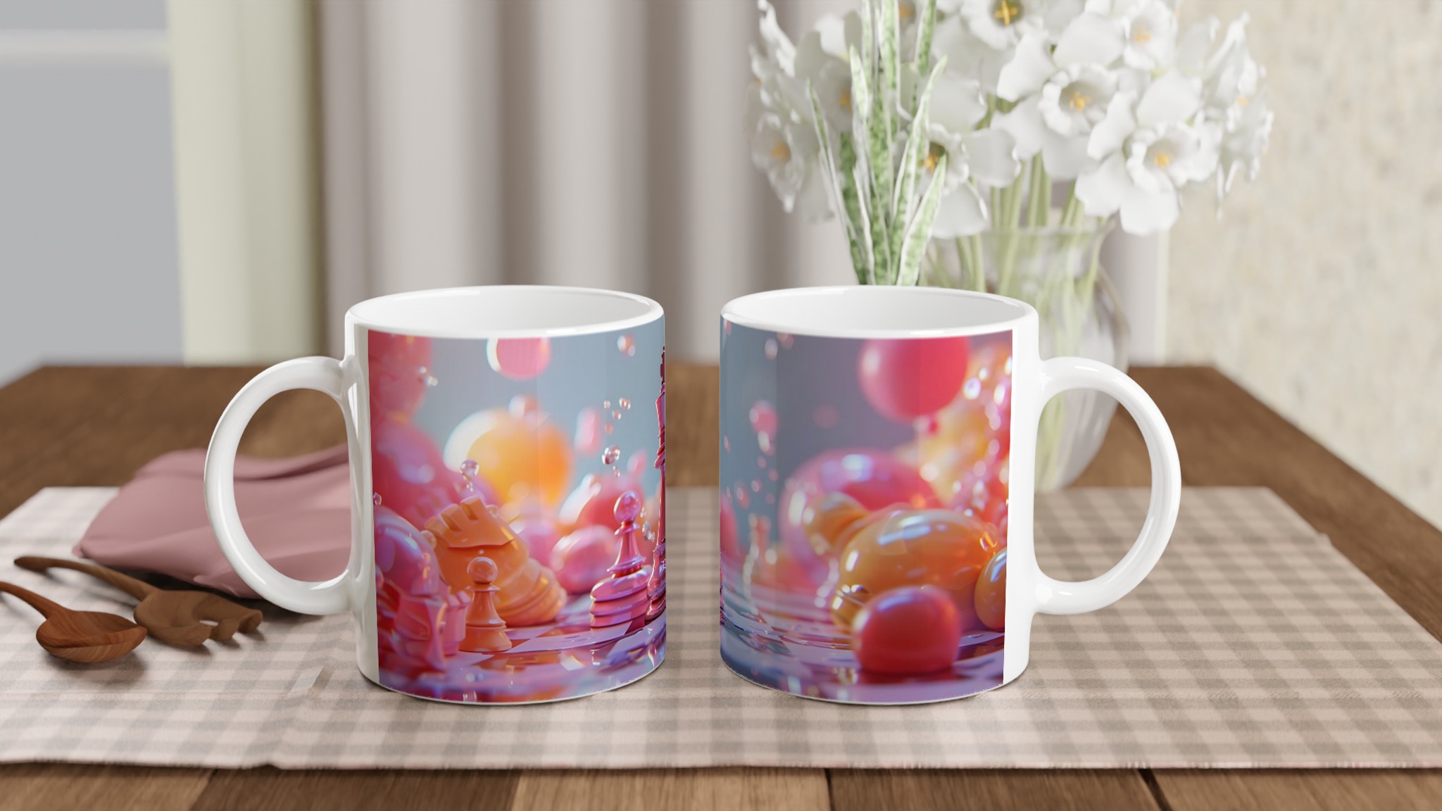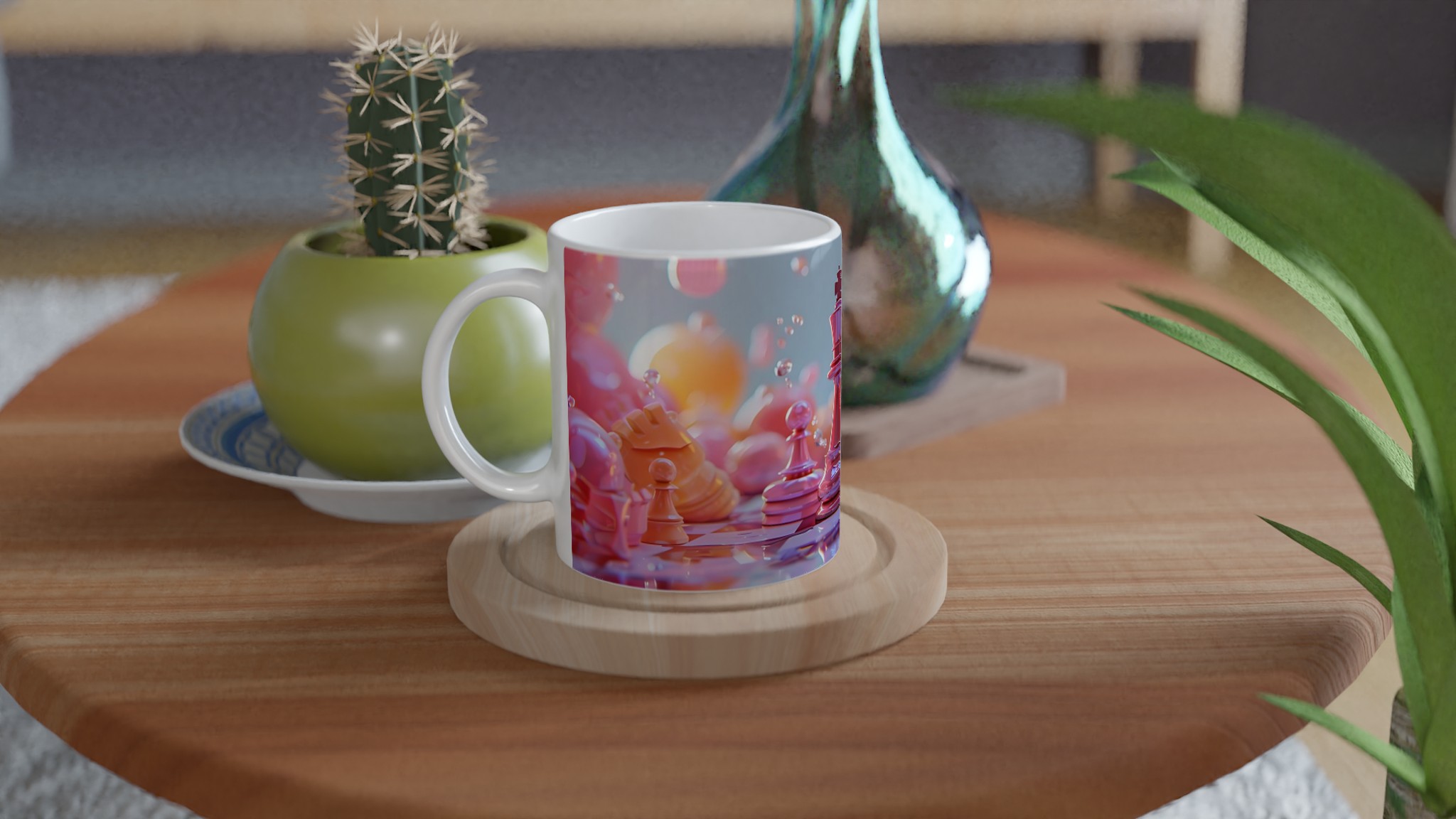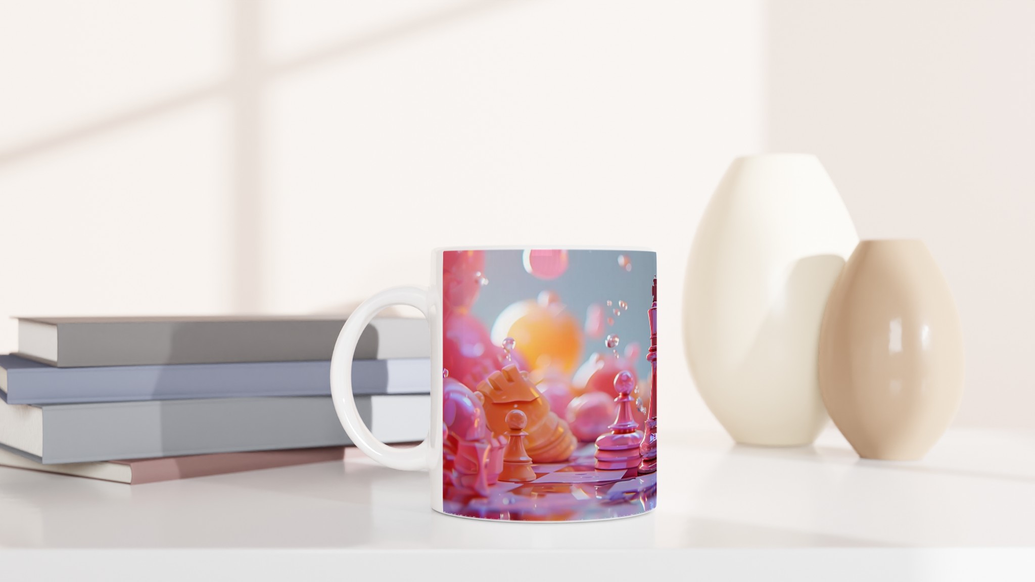 Abstract Chessboard Dreams – Premium Ceramic Mug 11oz in Seven Vibrant Hues