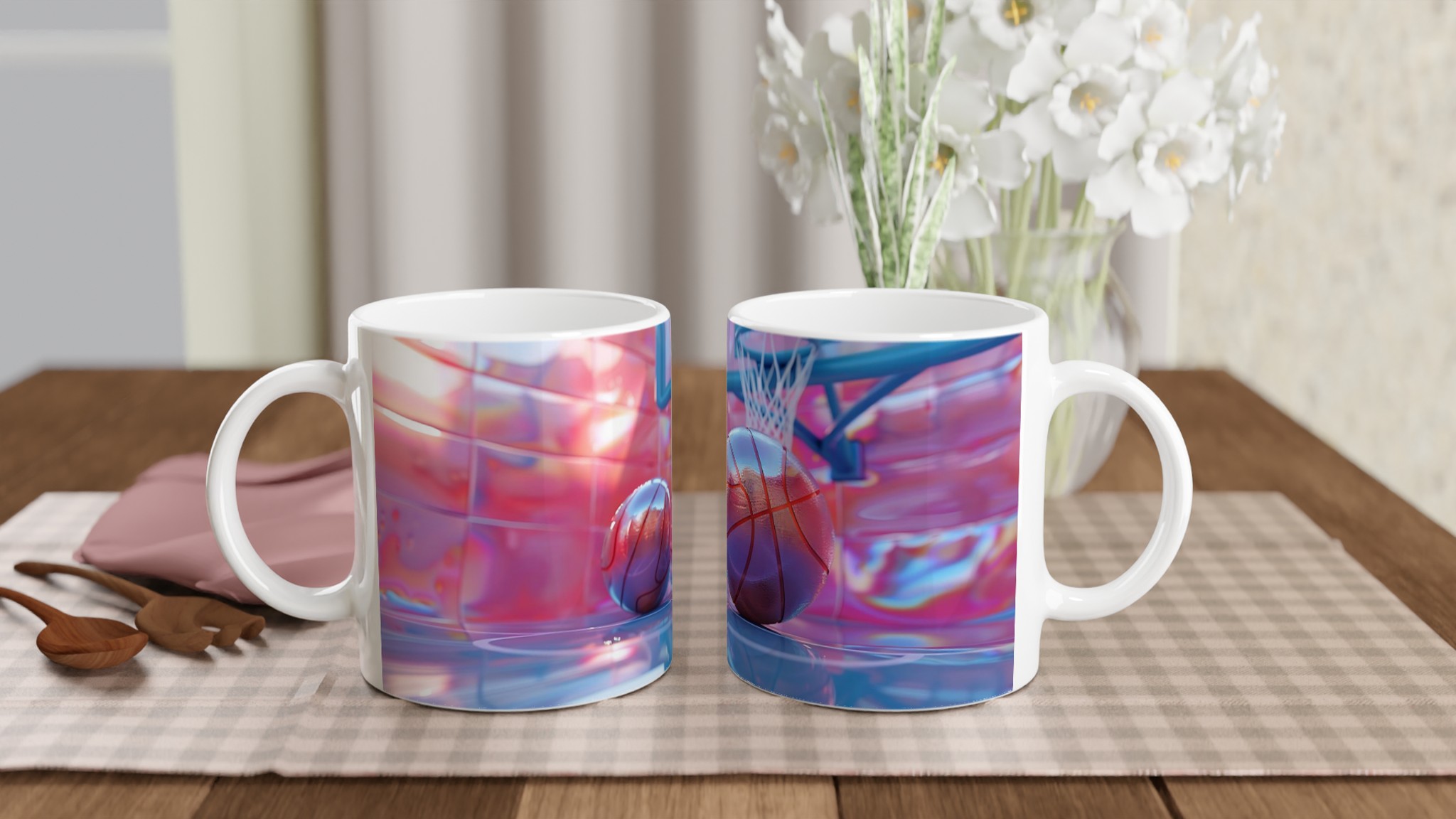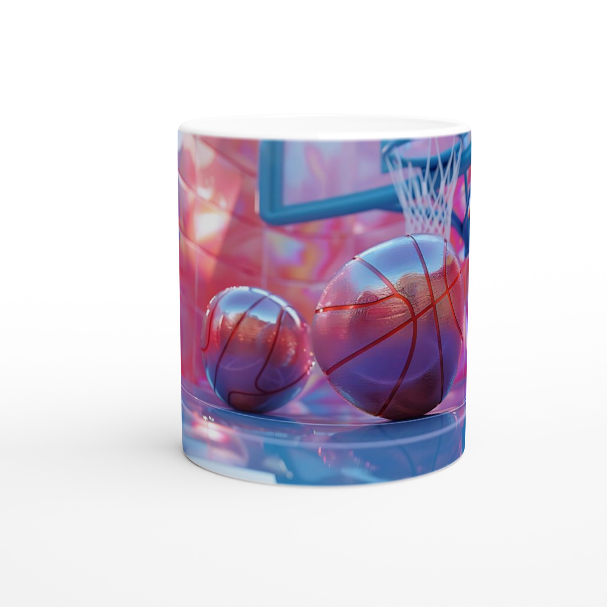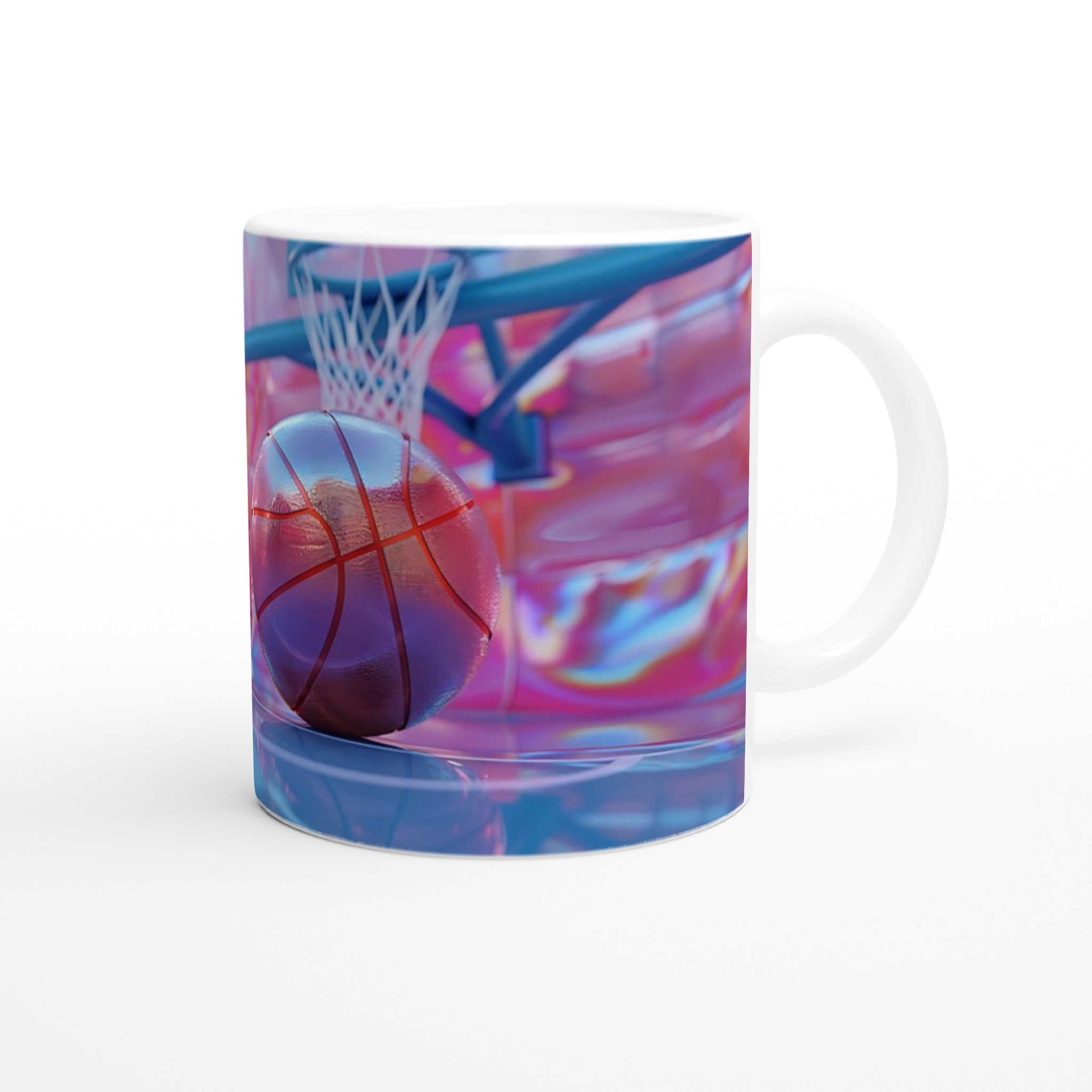 Vibrant Neon Basketball Court Mug – White Ceramic 11oz, in your choice of seven radiant hues