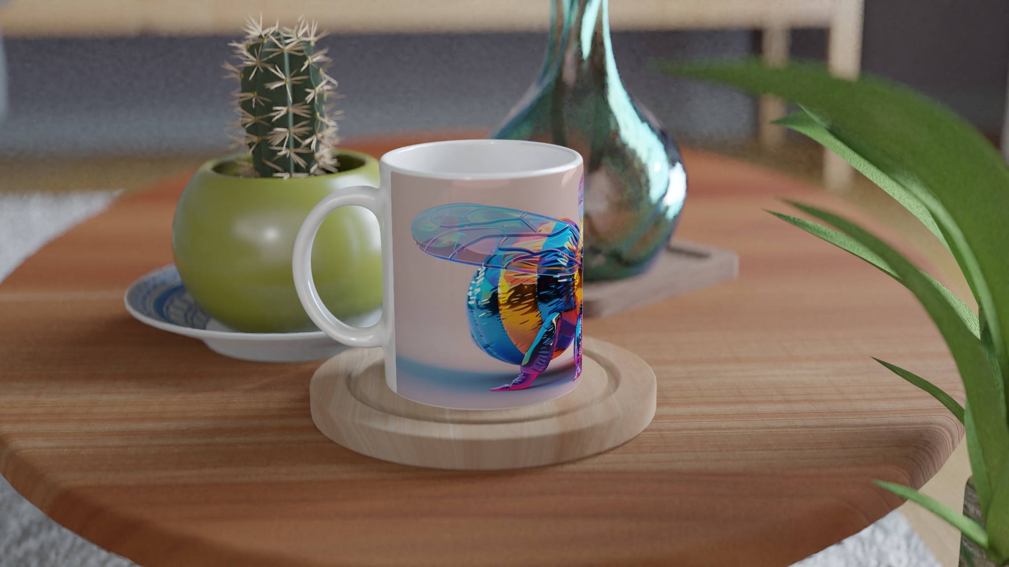 Vibrant Iridescent Bee – Ceramic Mug 11oz: A Splash of Joy in Every Sip