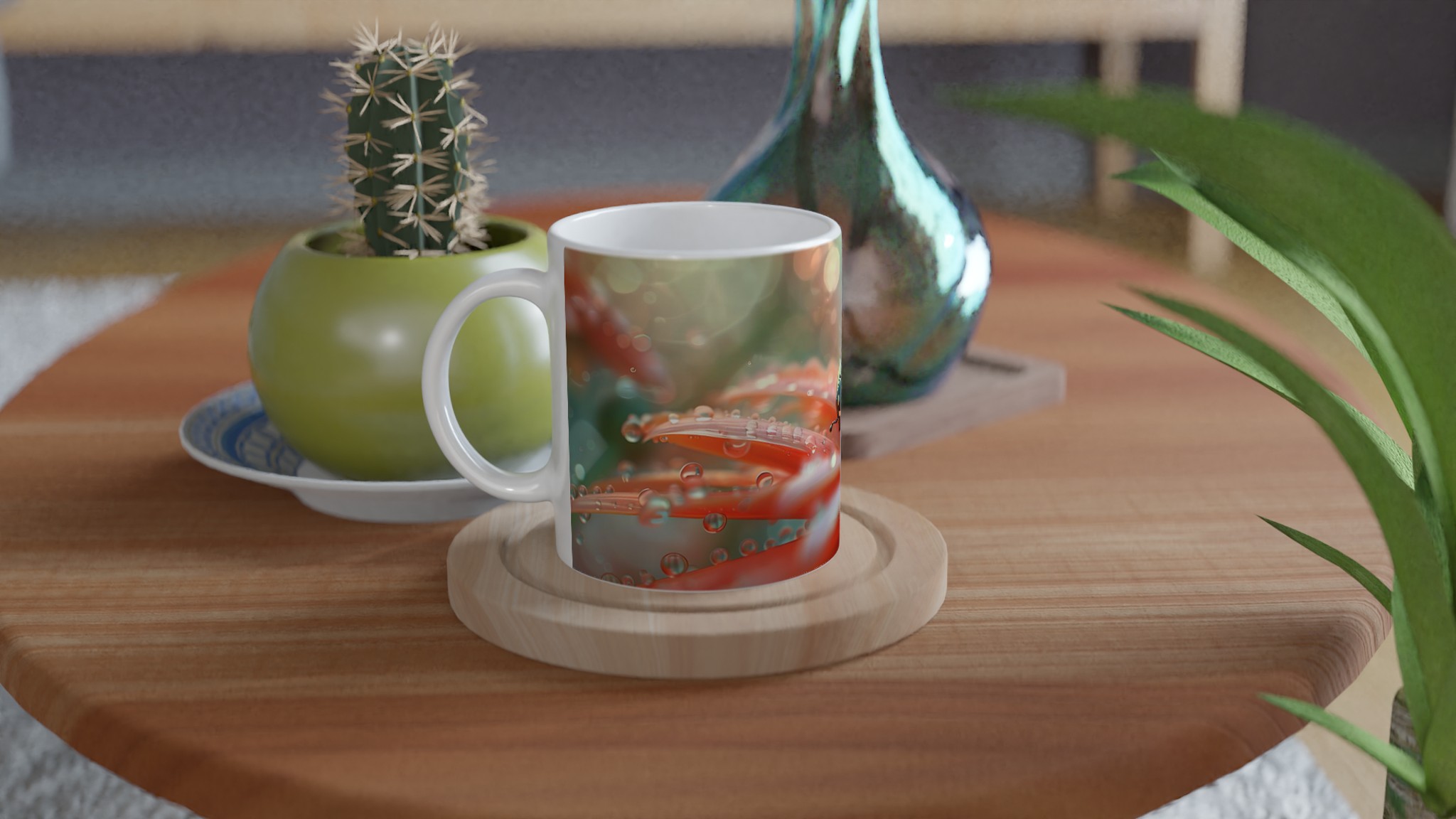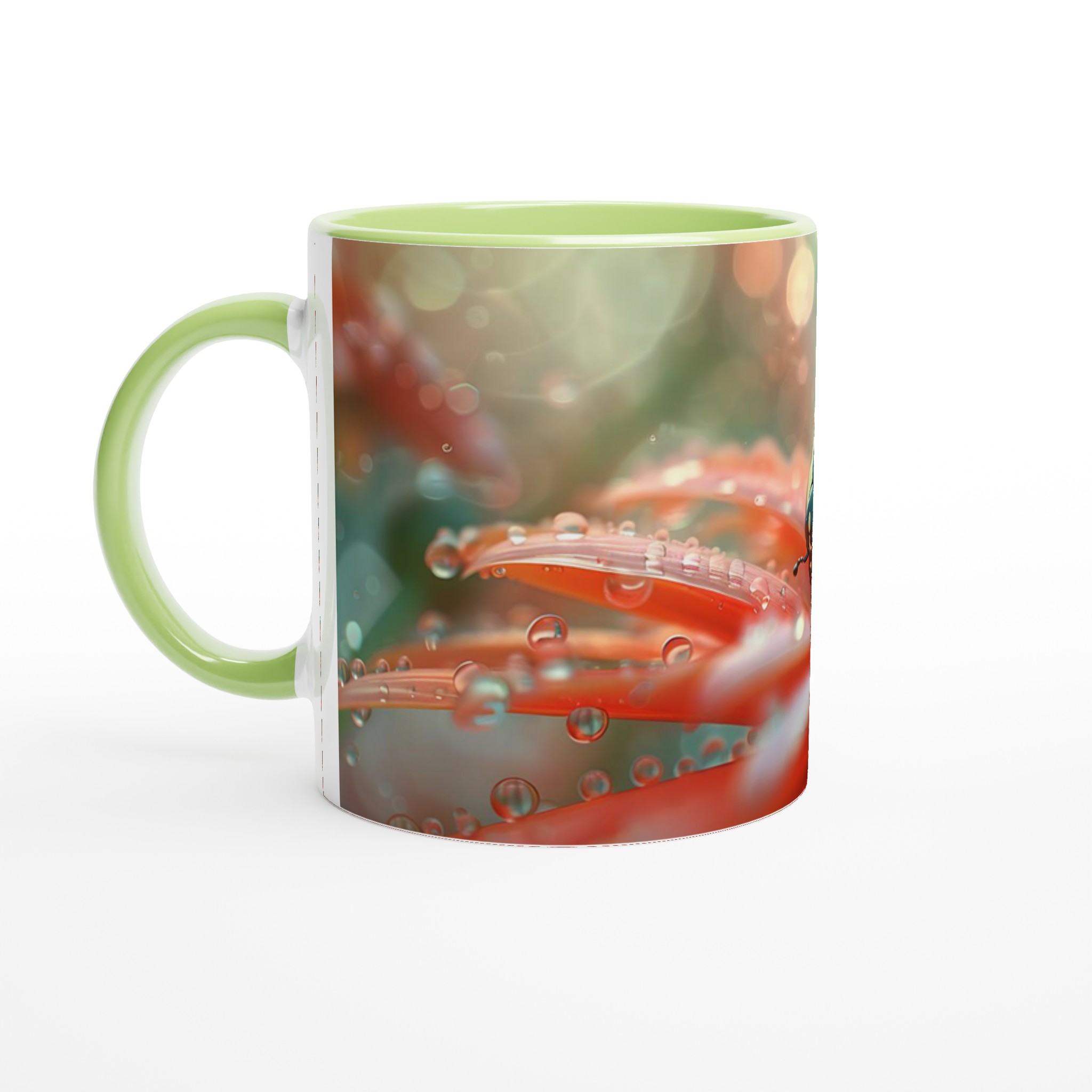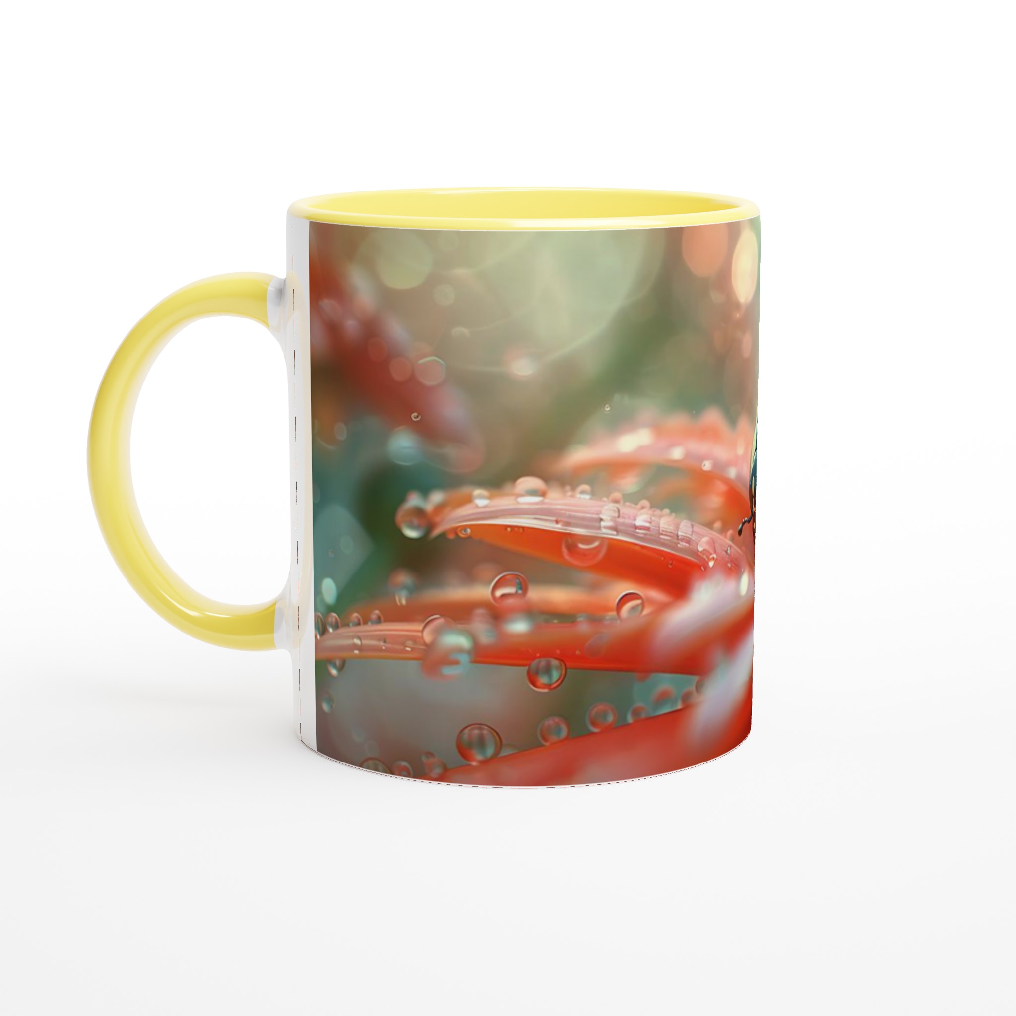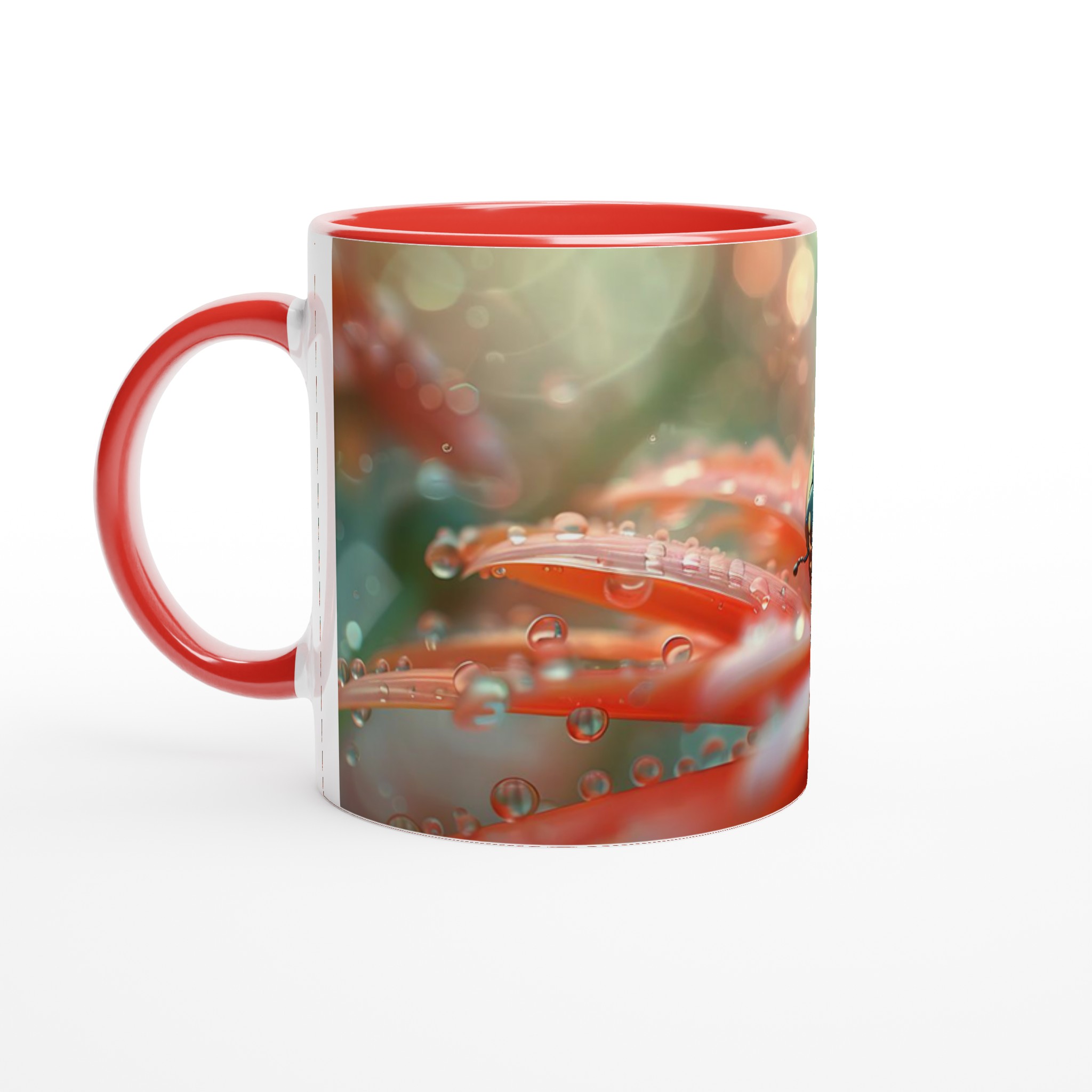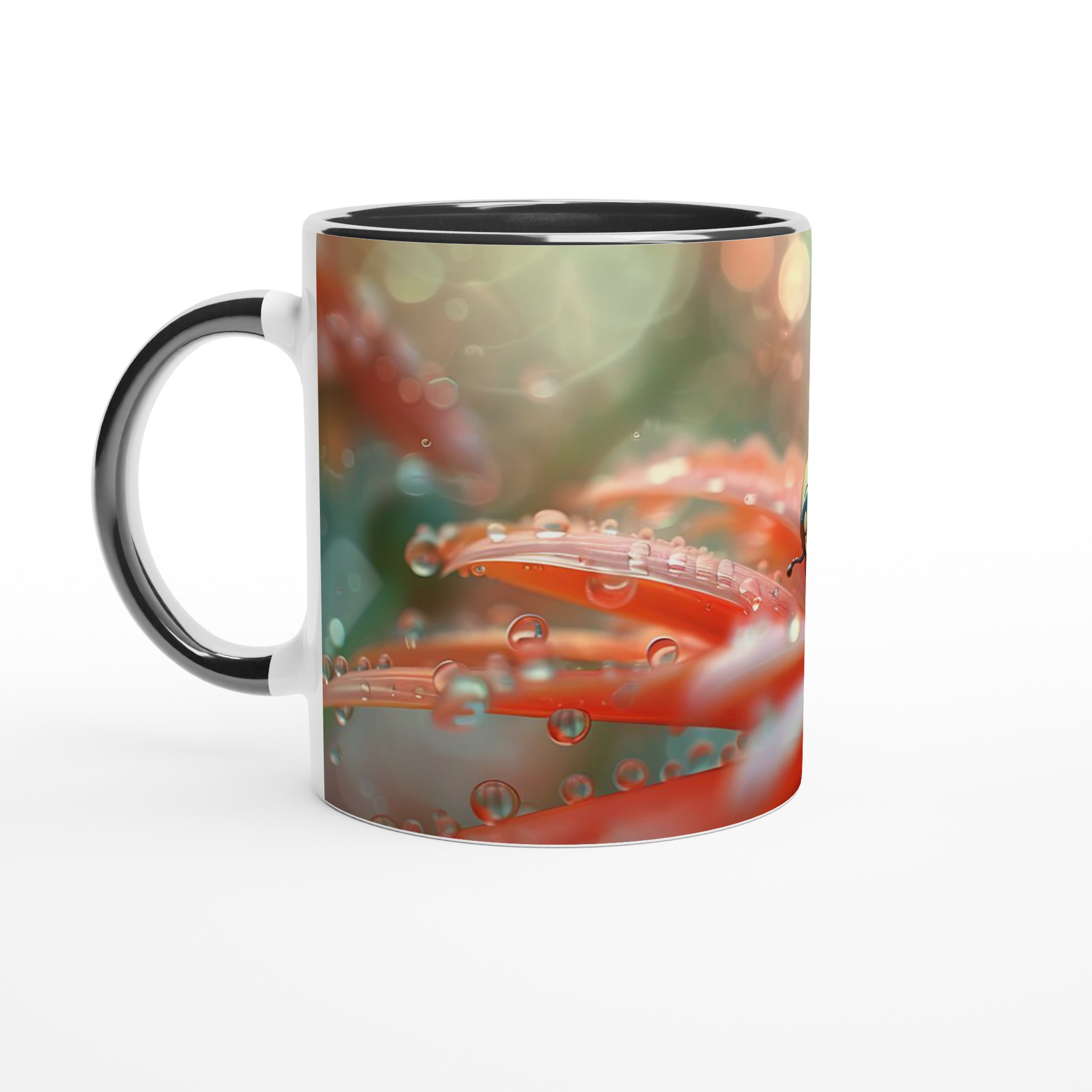 Dewdrop Ladybug Blossom – Ceramic Coffee Mug 11oz in Your Choice of Seven Vibrant Colors