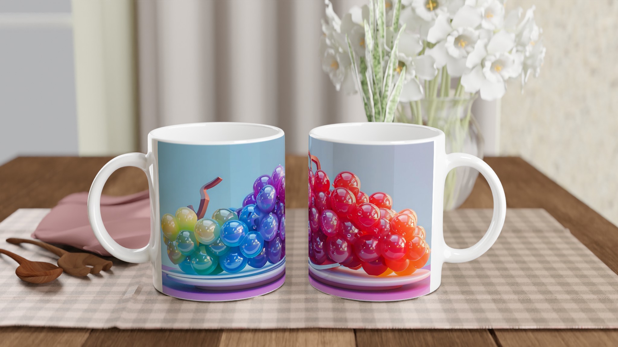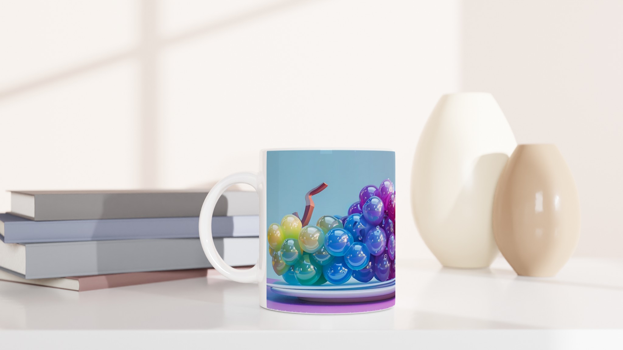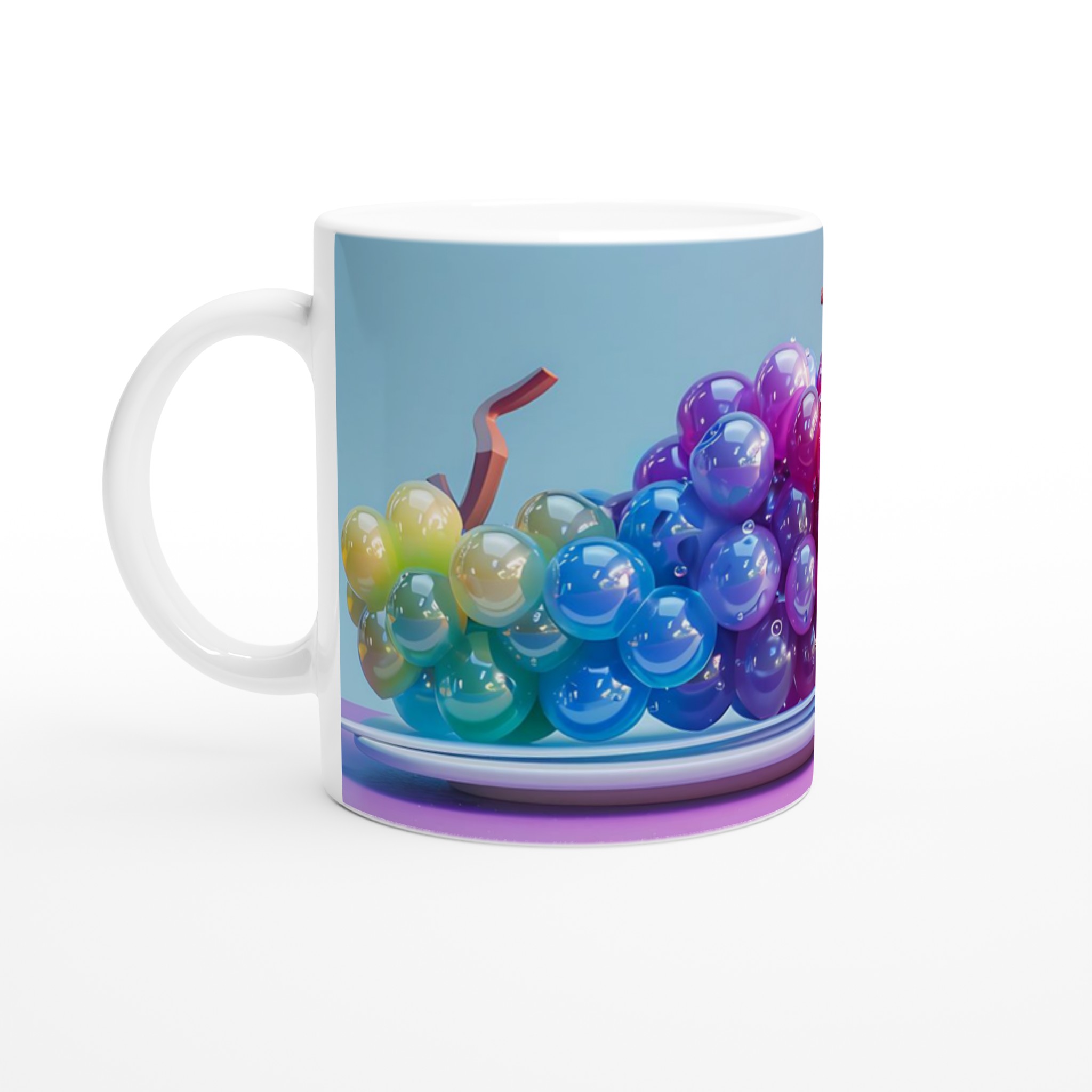 Vibrant Rainbow Grapes – Everyday Favorite Ceramic Mug 11oz, in your choice of seven joyful colors