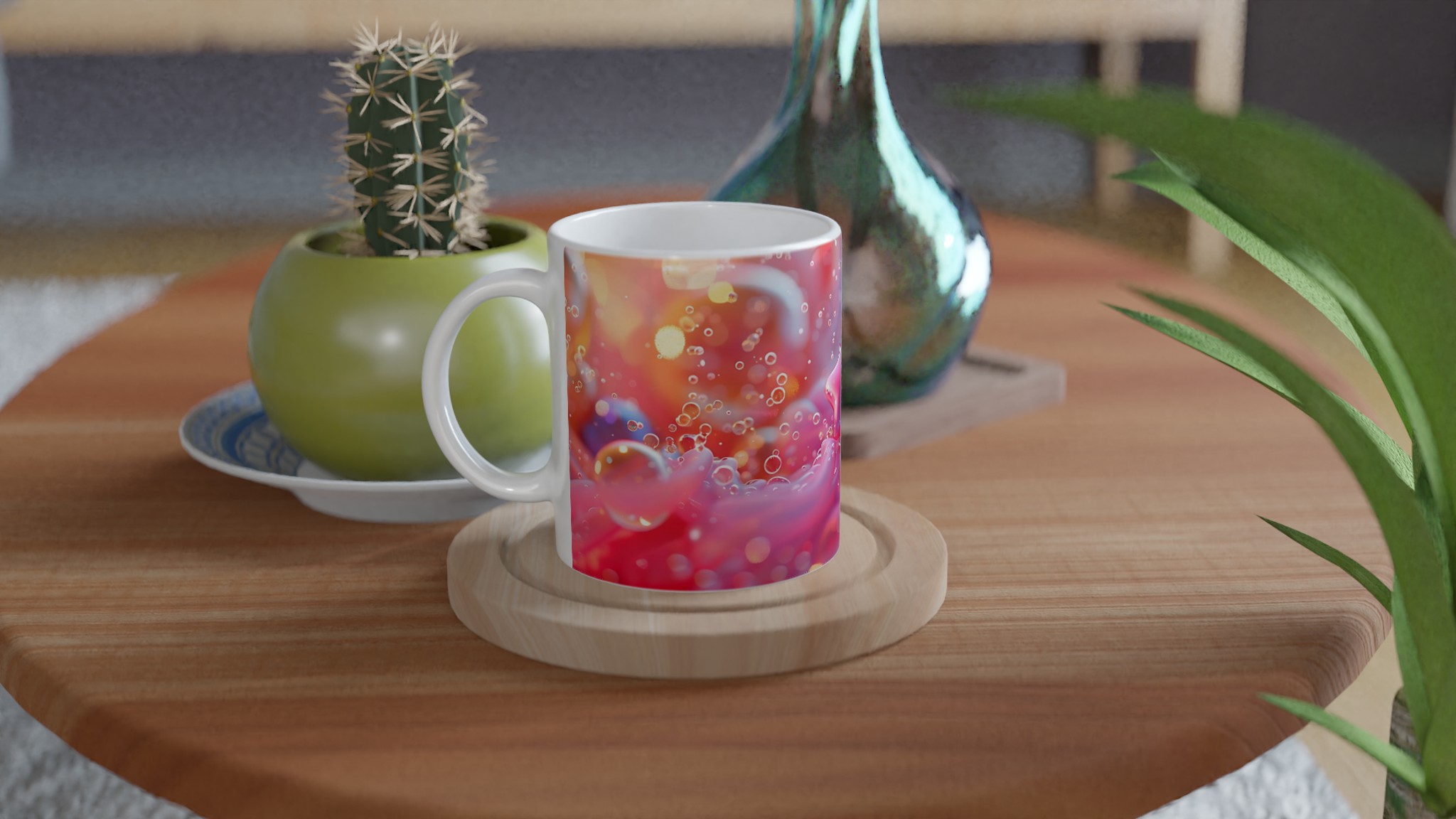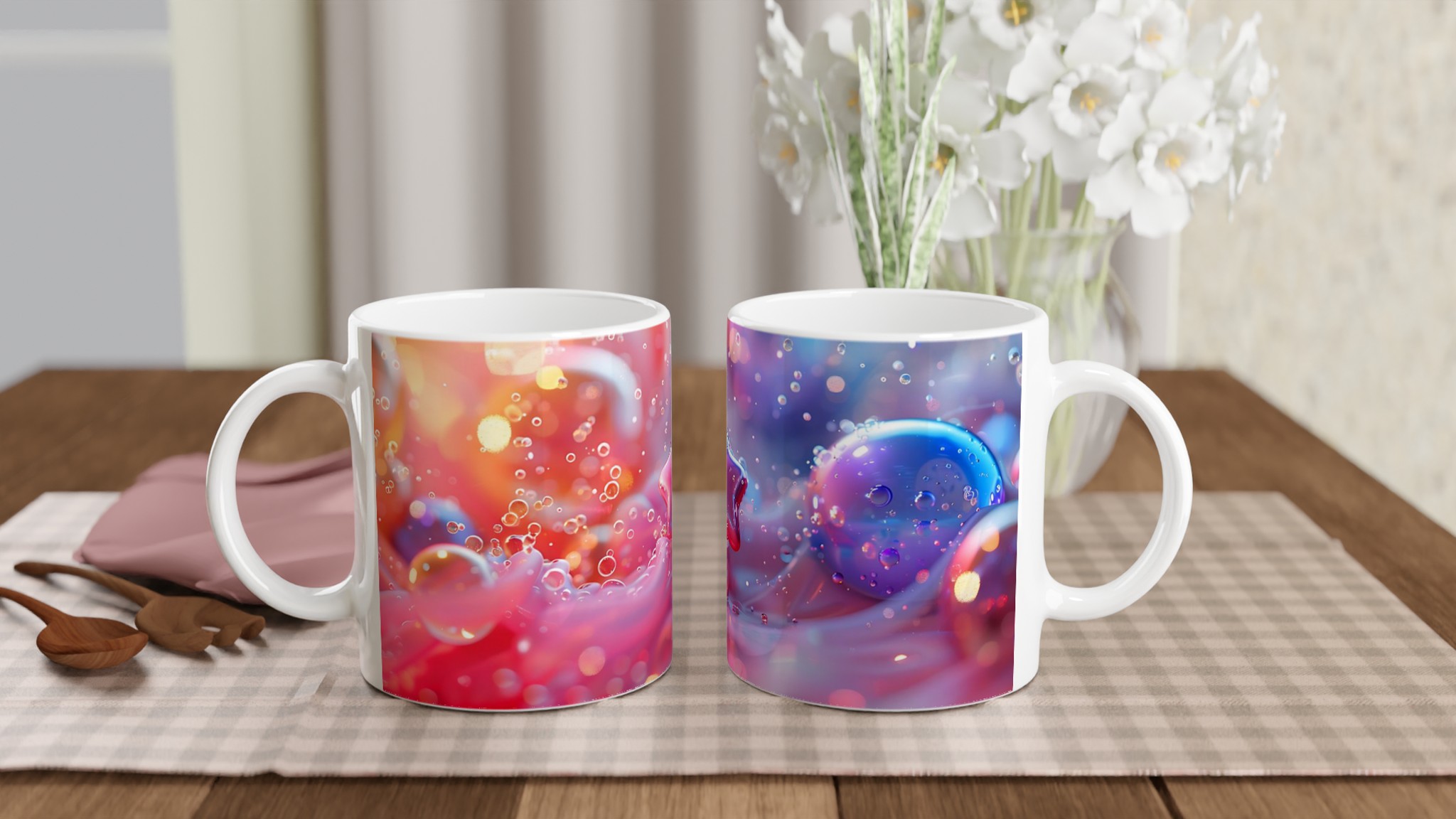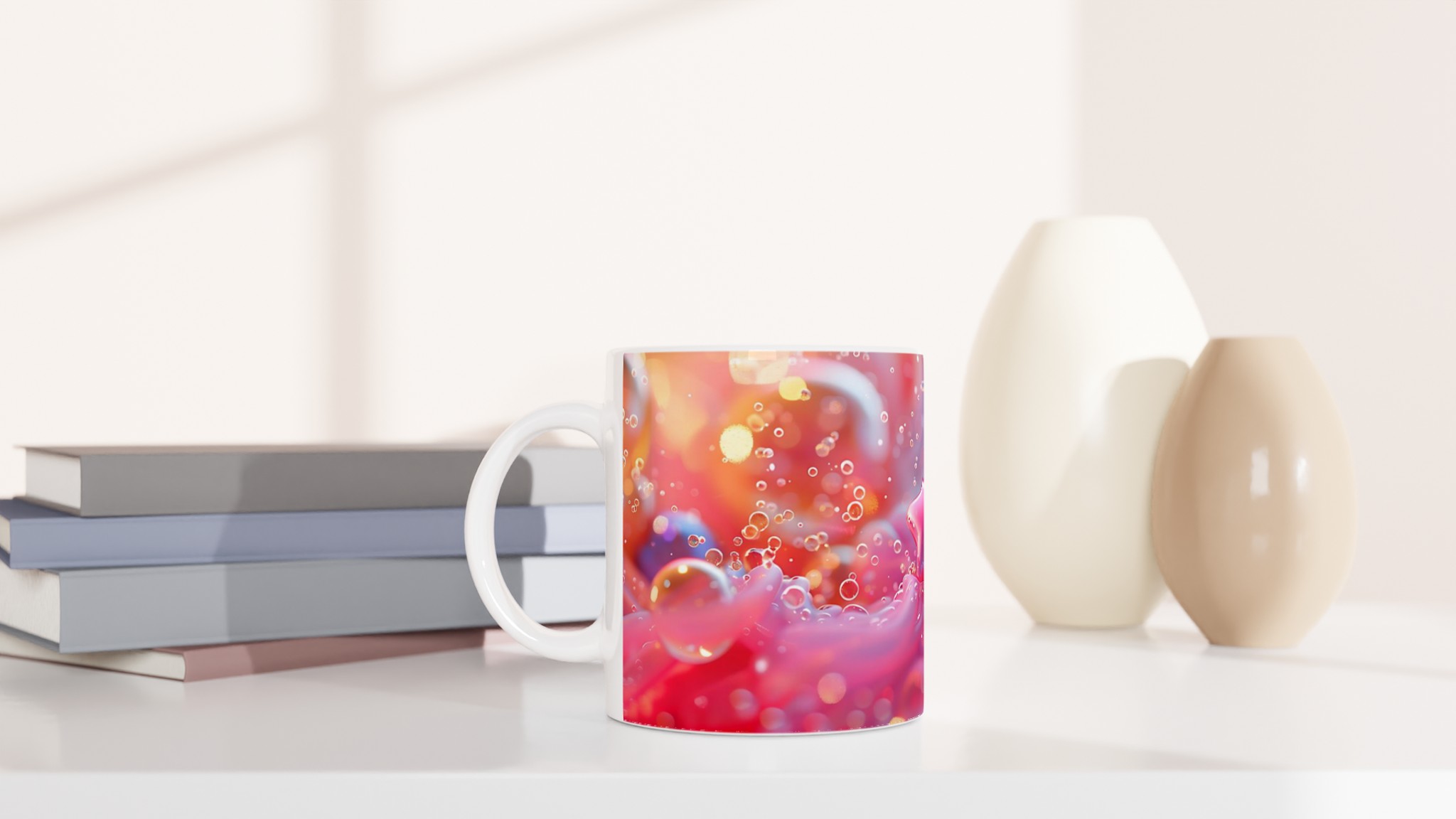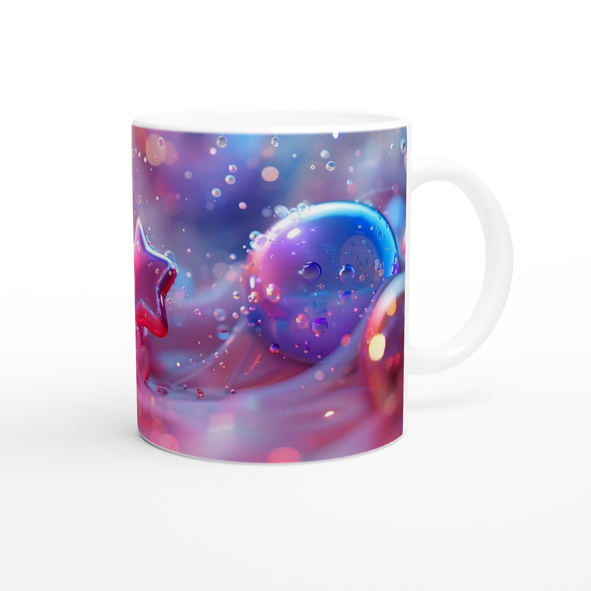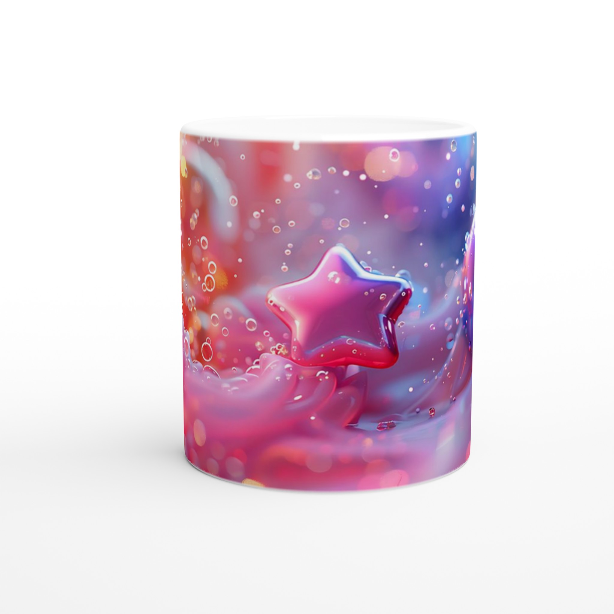 Dreamy Pastel Bubbles & Star Ceramic Mug – 11oz, in Seven Luminous Colors