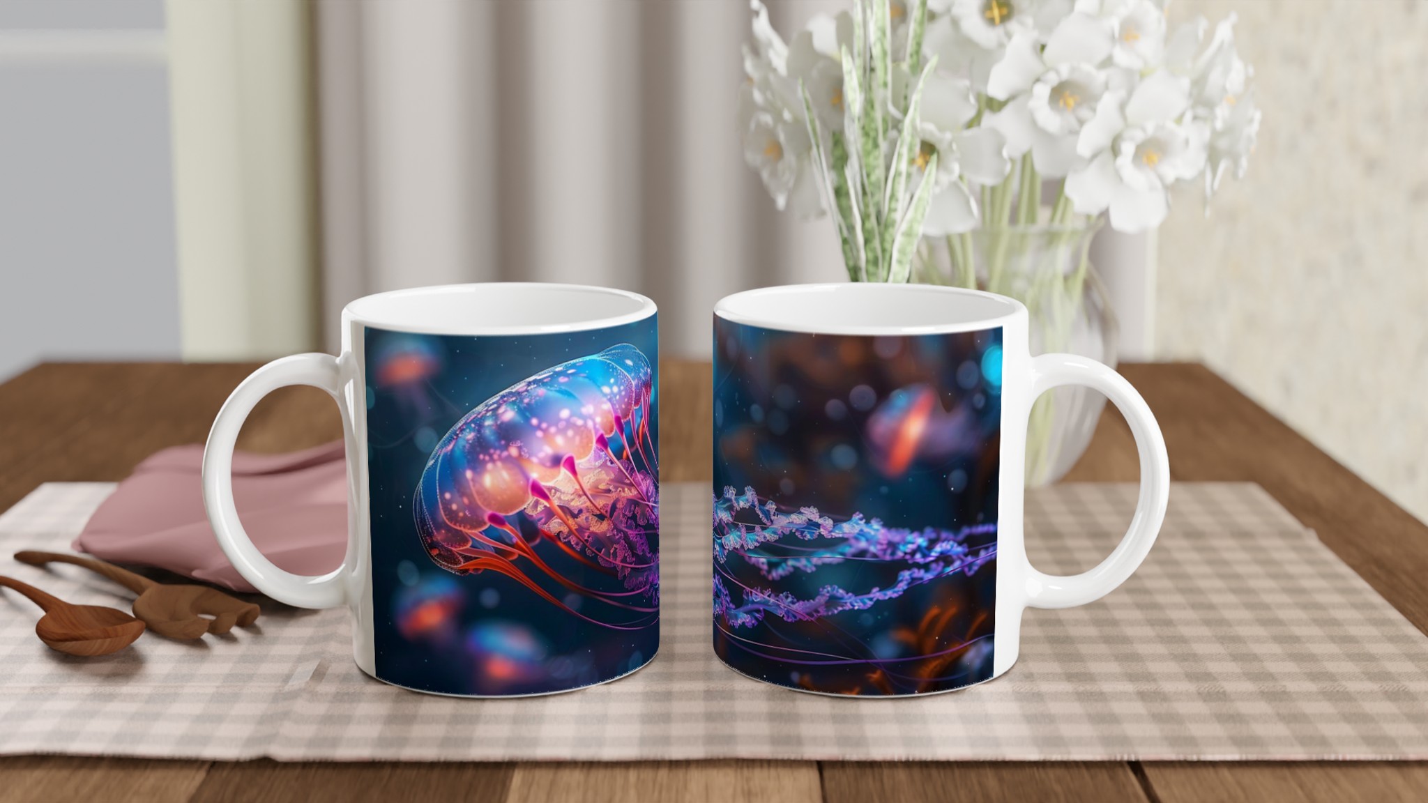 Cosmic Jellyfish Dream – Vivid Ceramic Mug 11oz in Your Choice of Seven Enchanting Hues