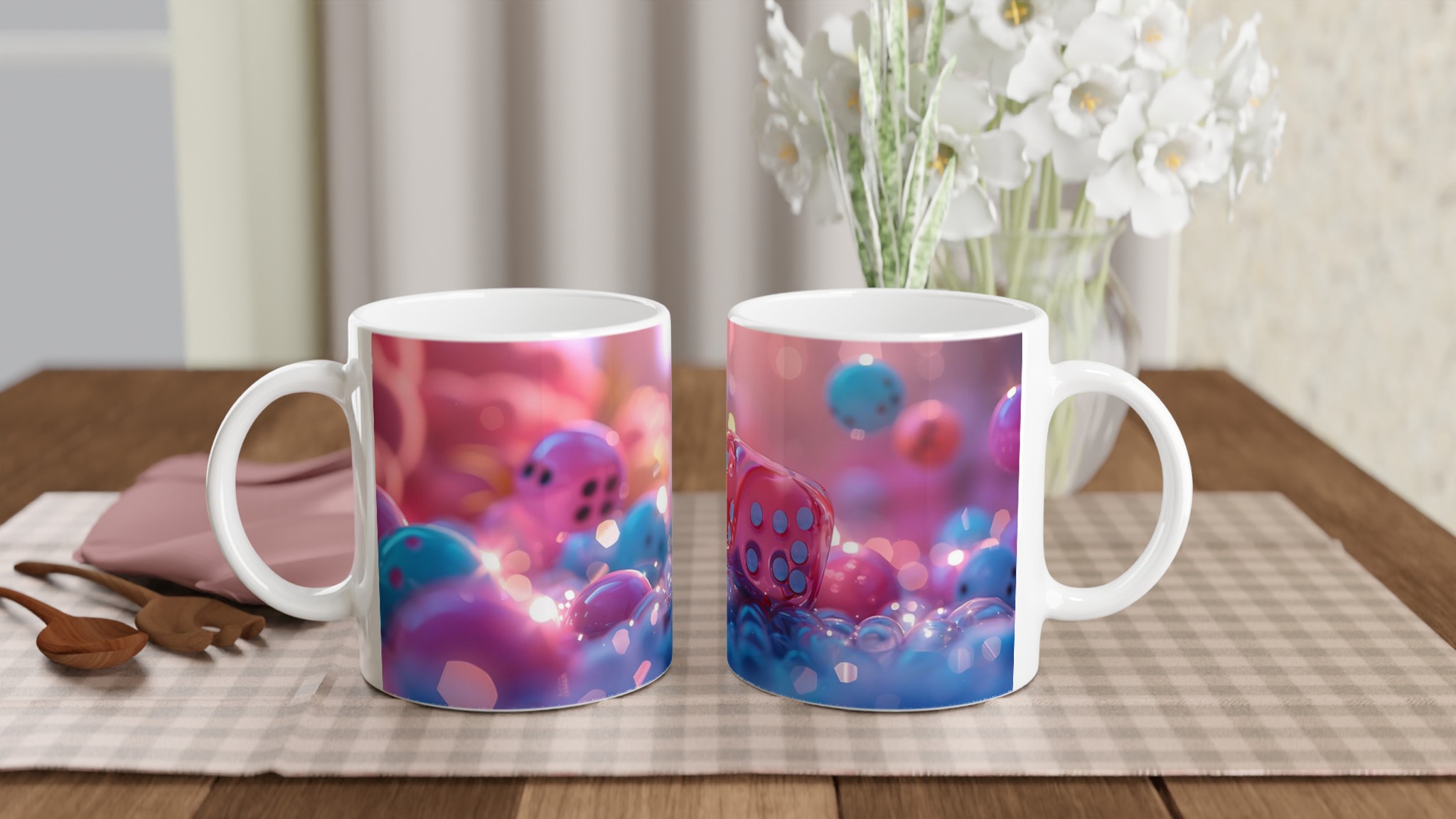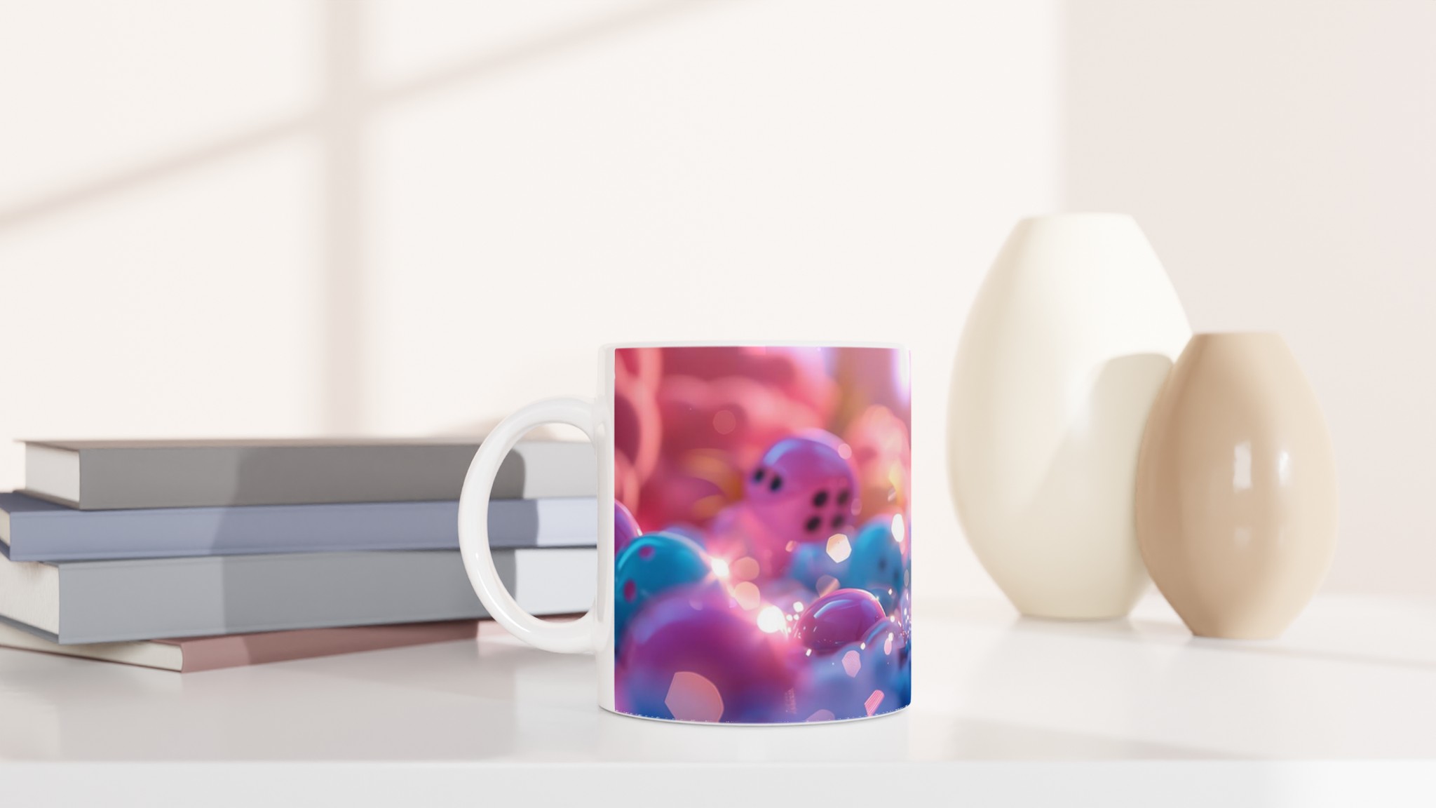 Vibrant Play Ceramic Mug – Pink & Blue Fantasy 11oz, in Your Choice of Seven Bold Hues