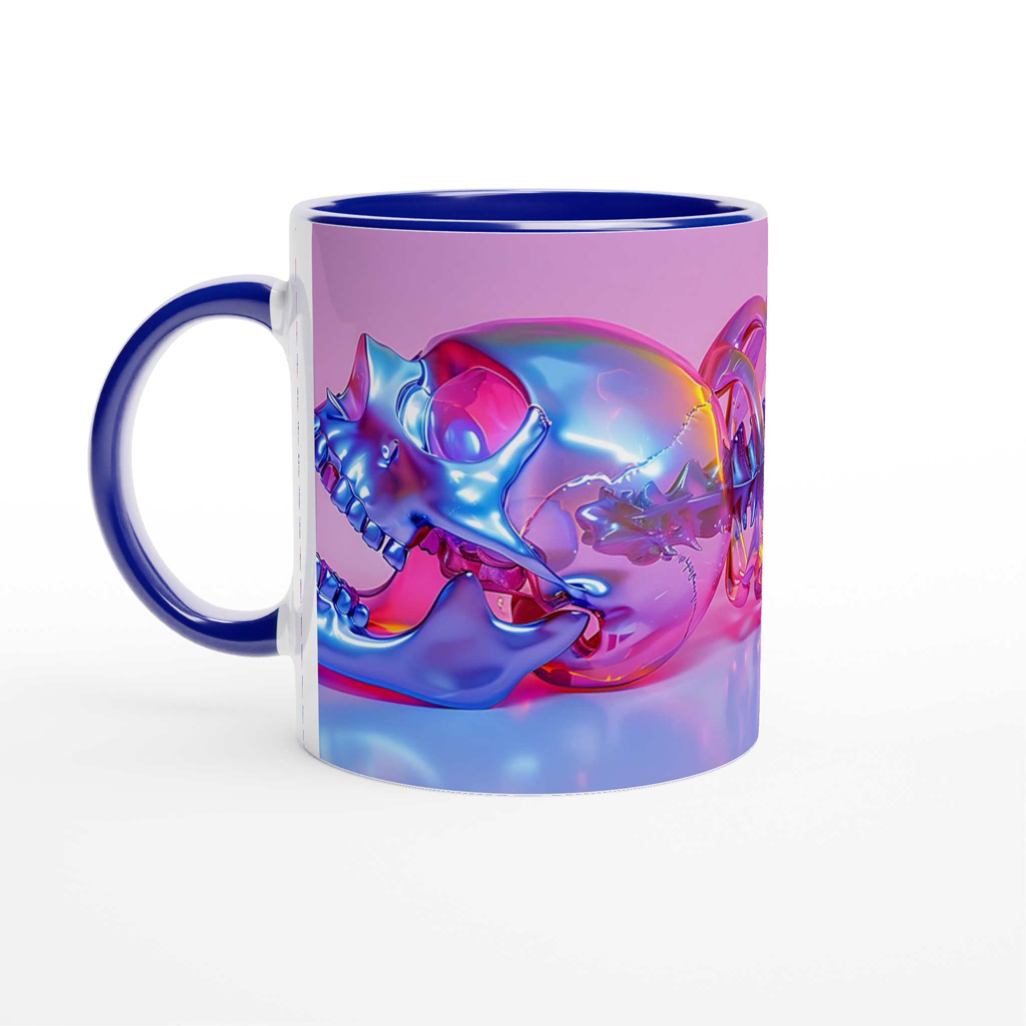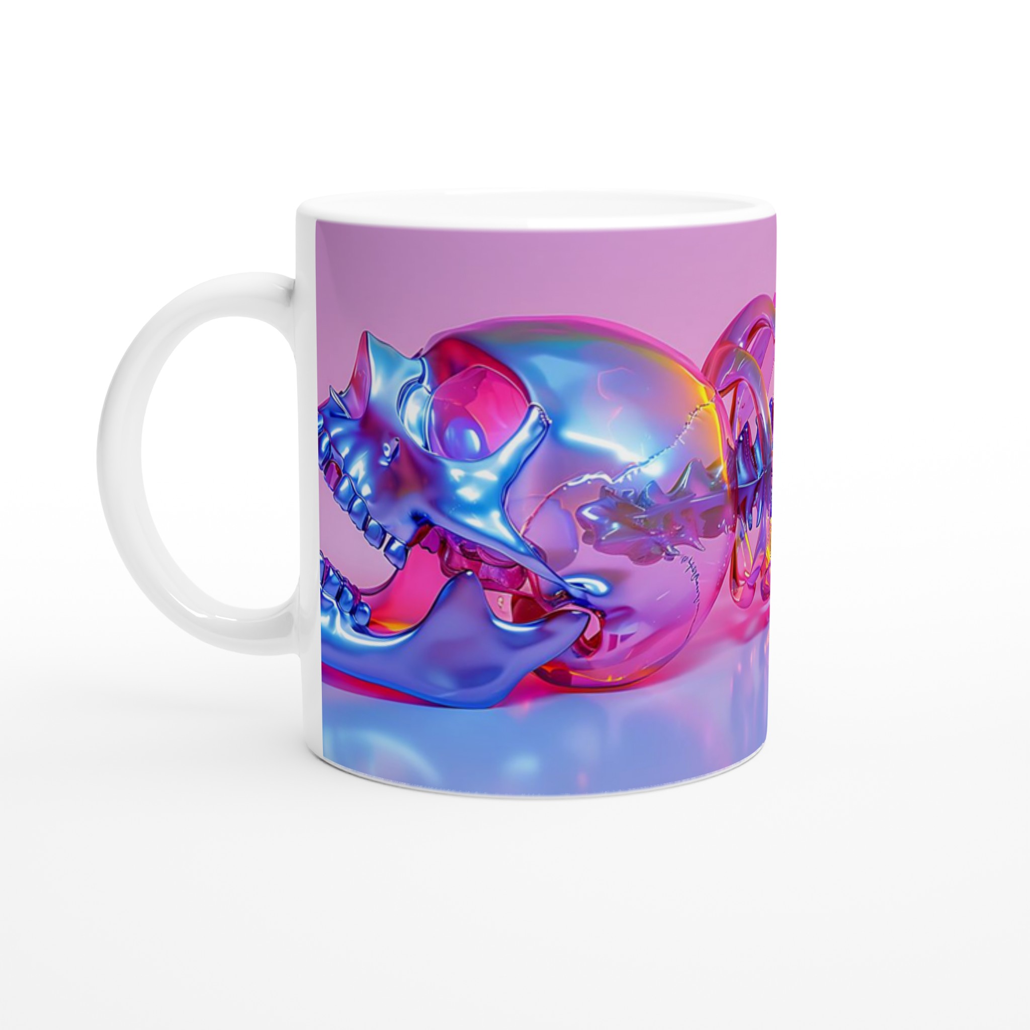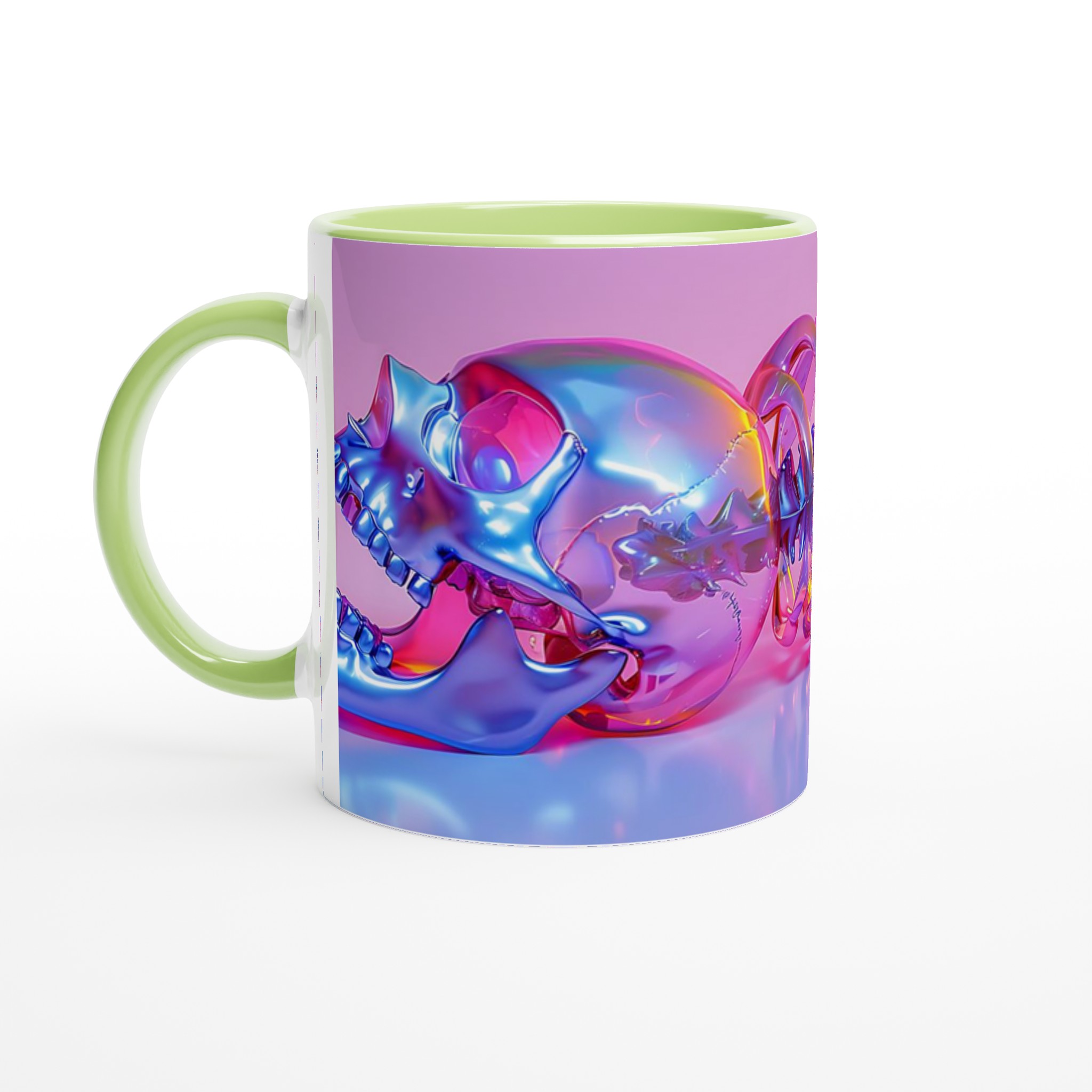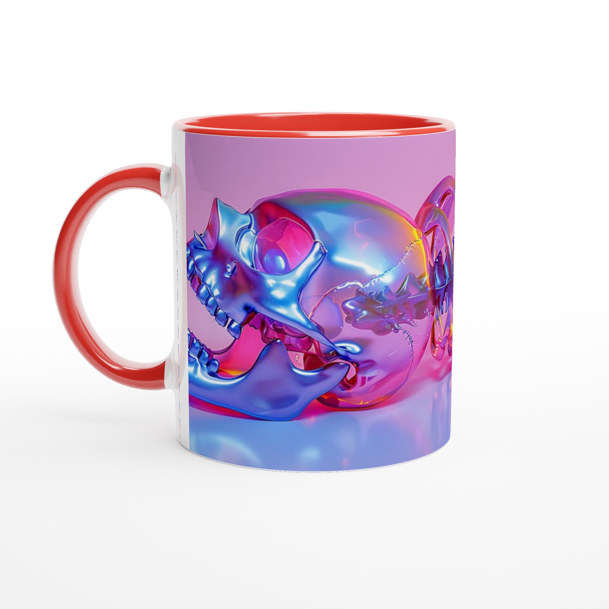 Vibrant Holographic Skull & Spine – Ceramic Mug 11oz, in your choice of seven striking colors!
