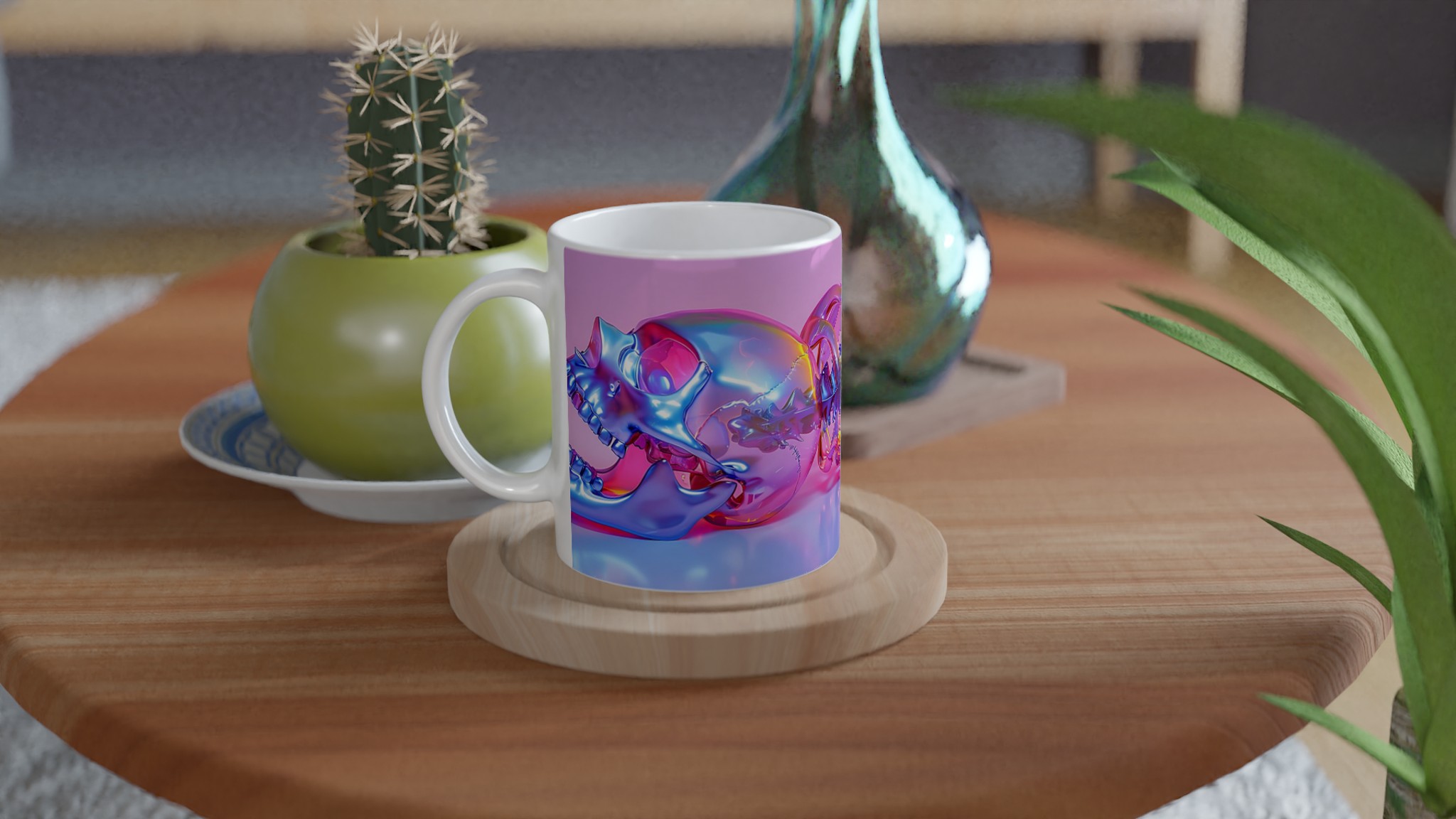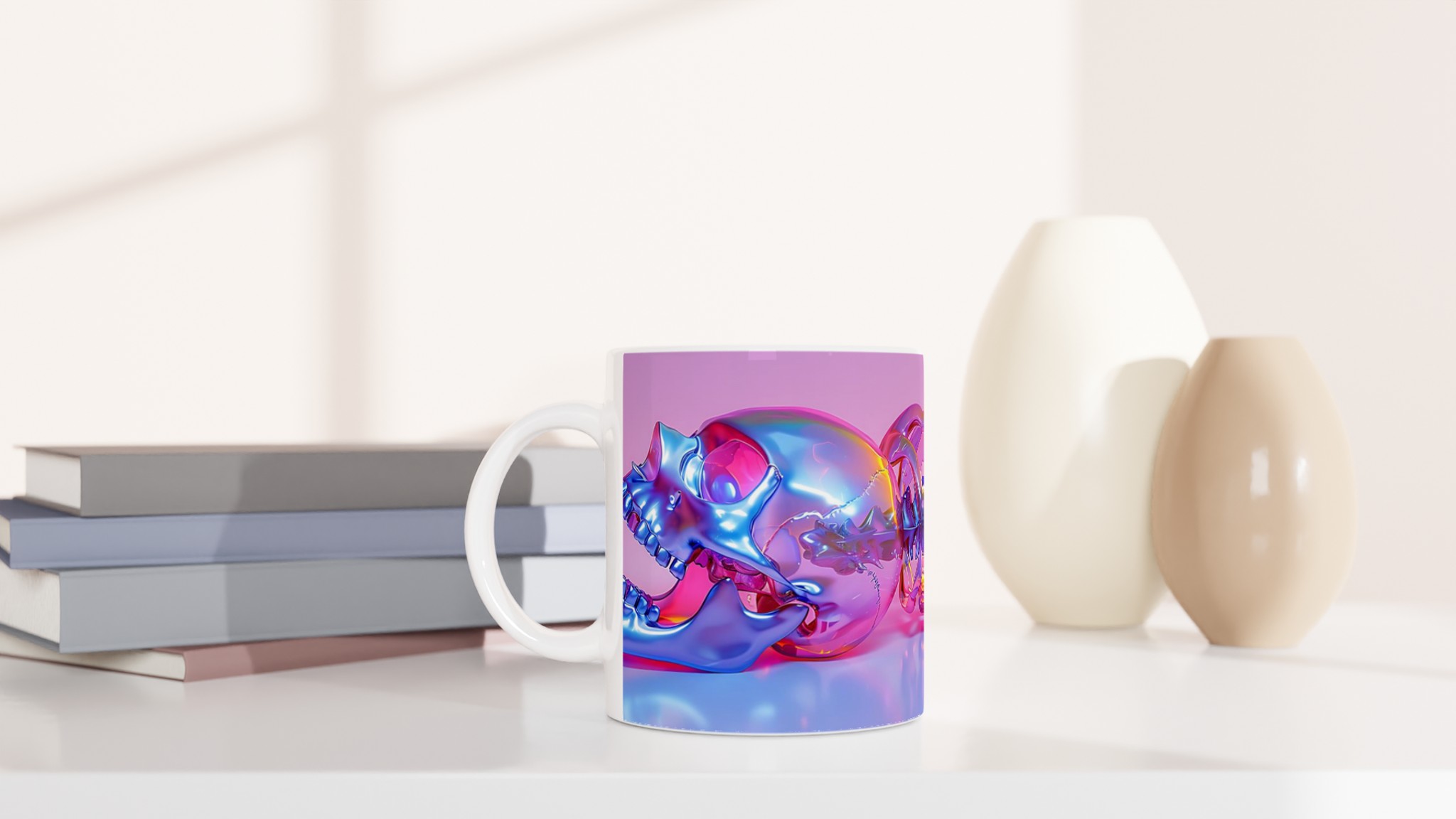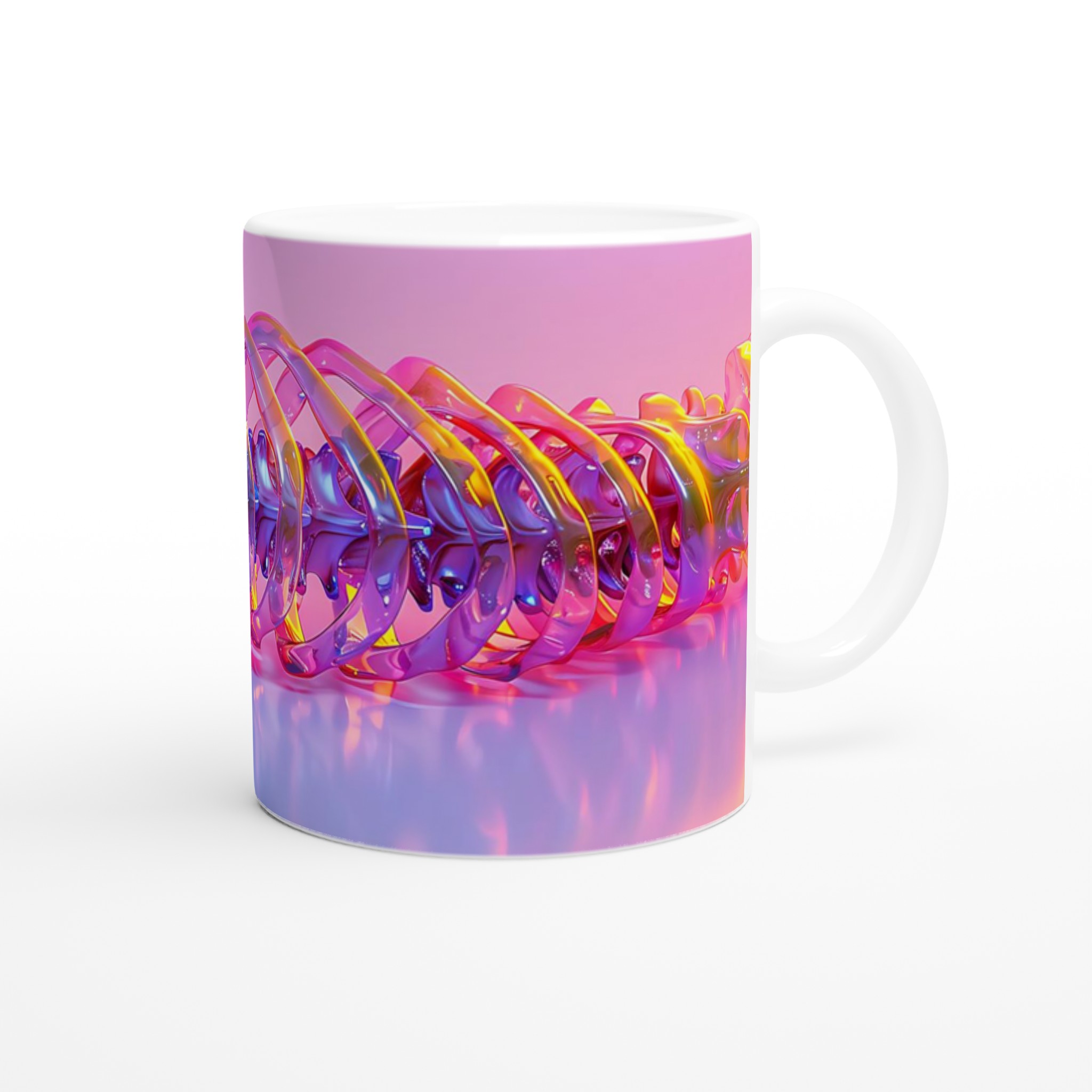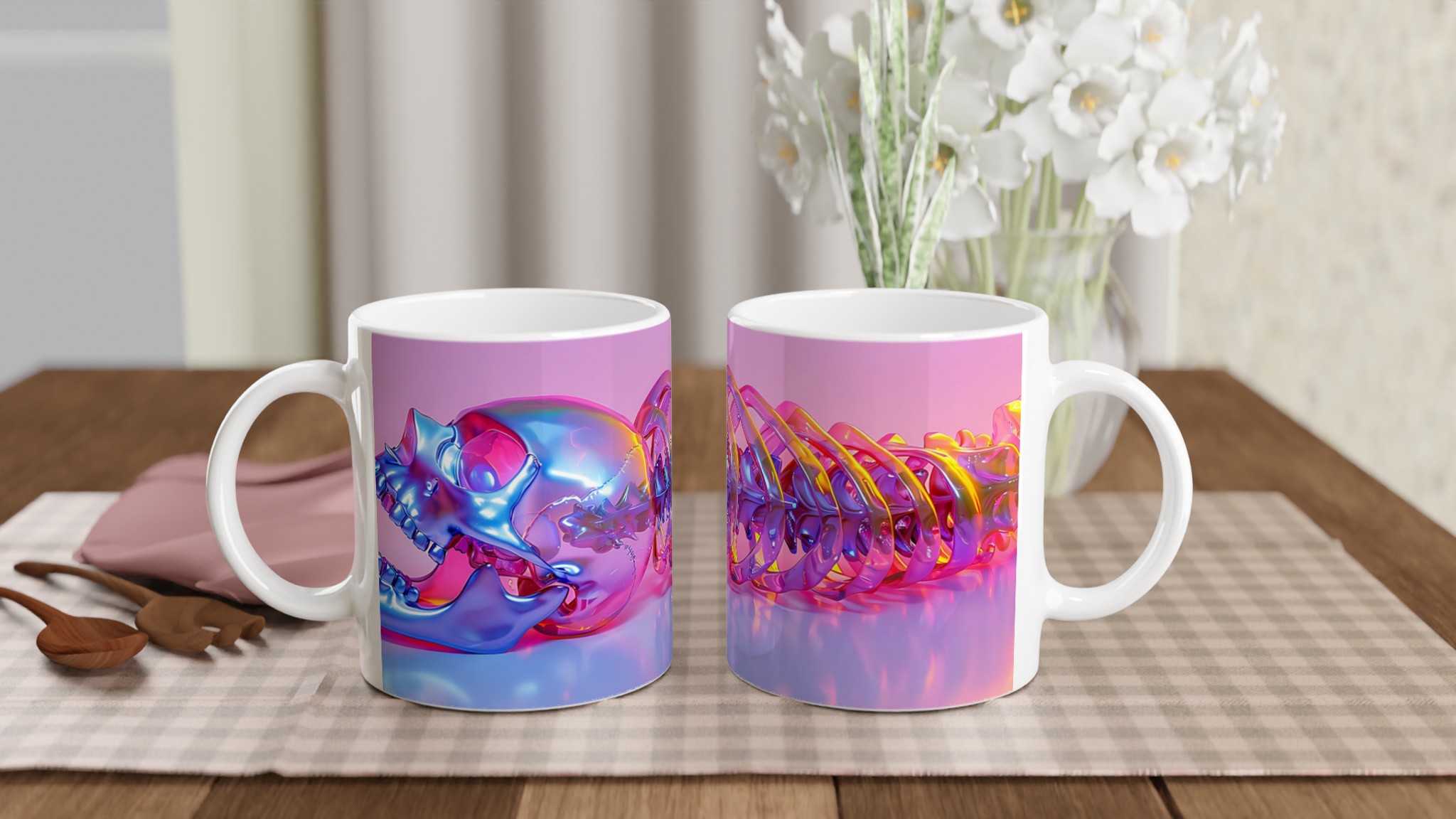 Vibrant Holographic Skull & Spine – Ceramic Mug 11oz, in your choice of seven striking colors!