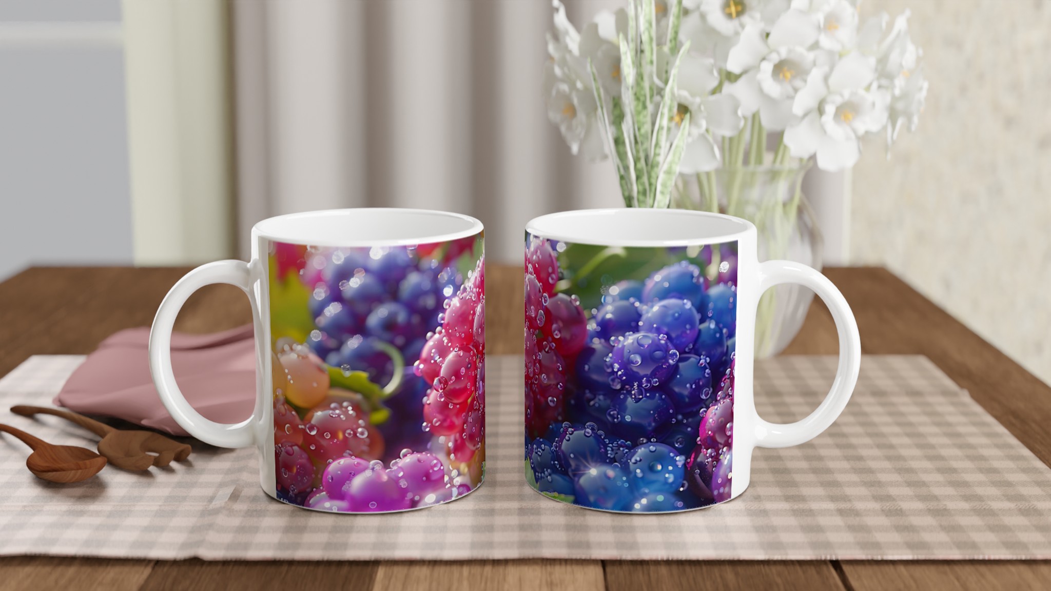 Vibrant Berry Bliss – White Ceramic Mug 11oz, bursting with color and your choice of 7 hues