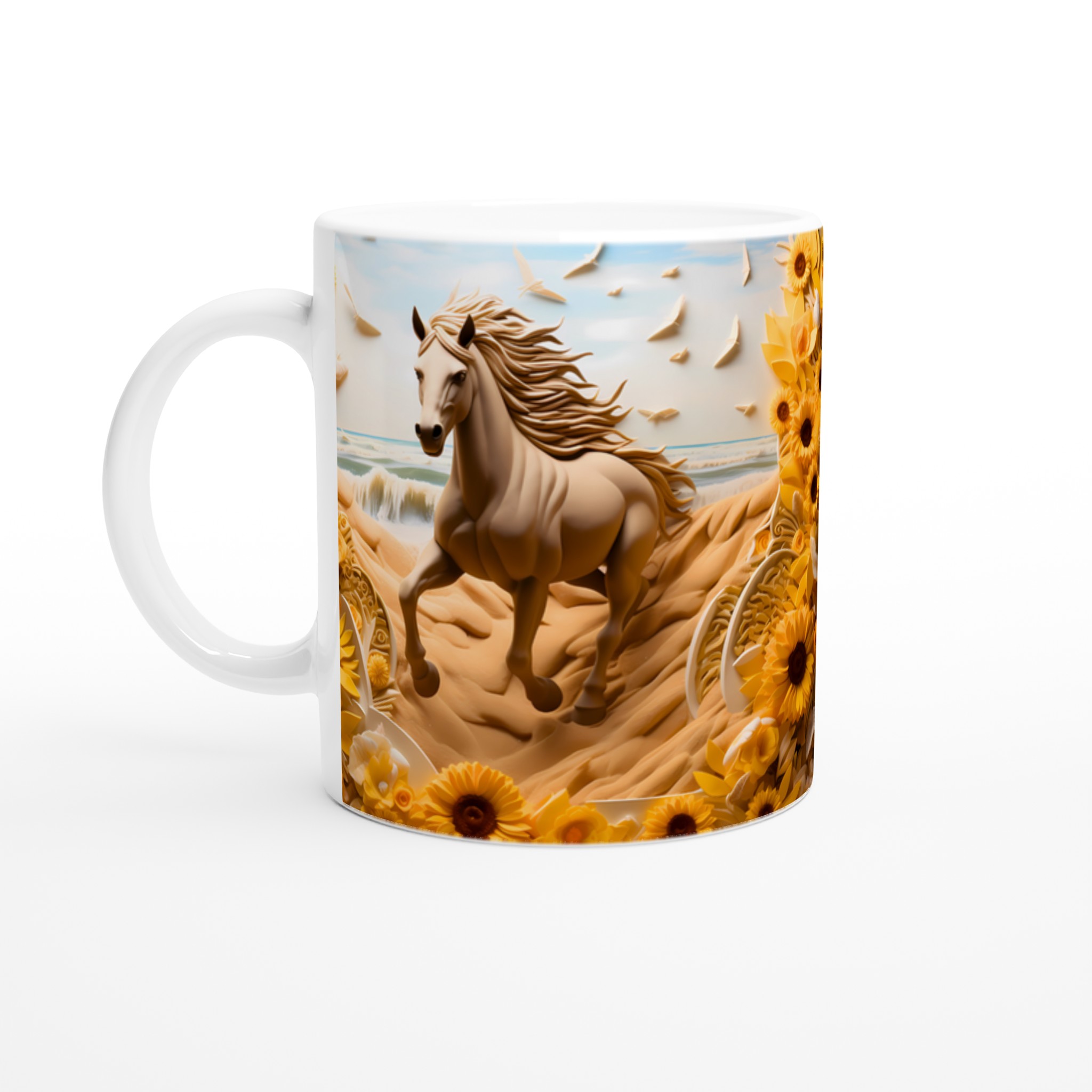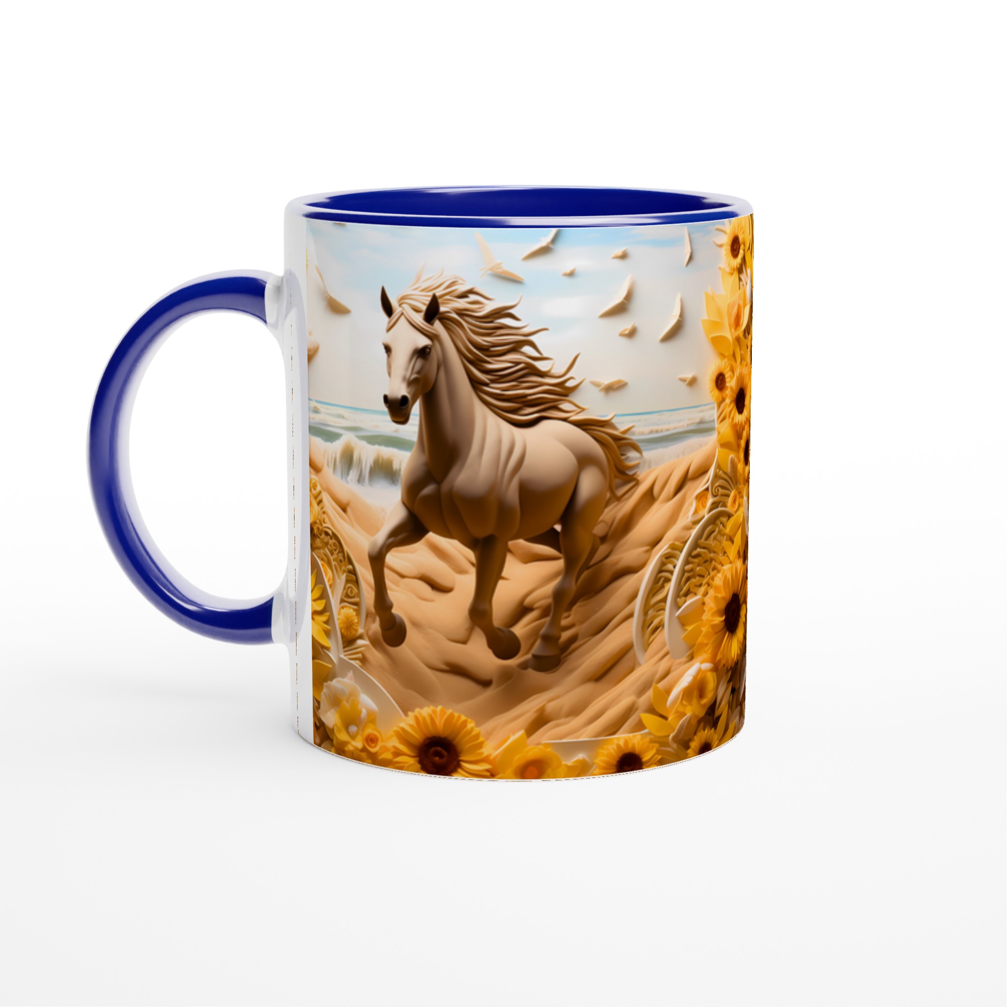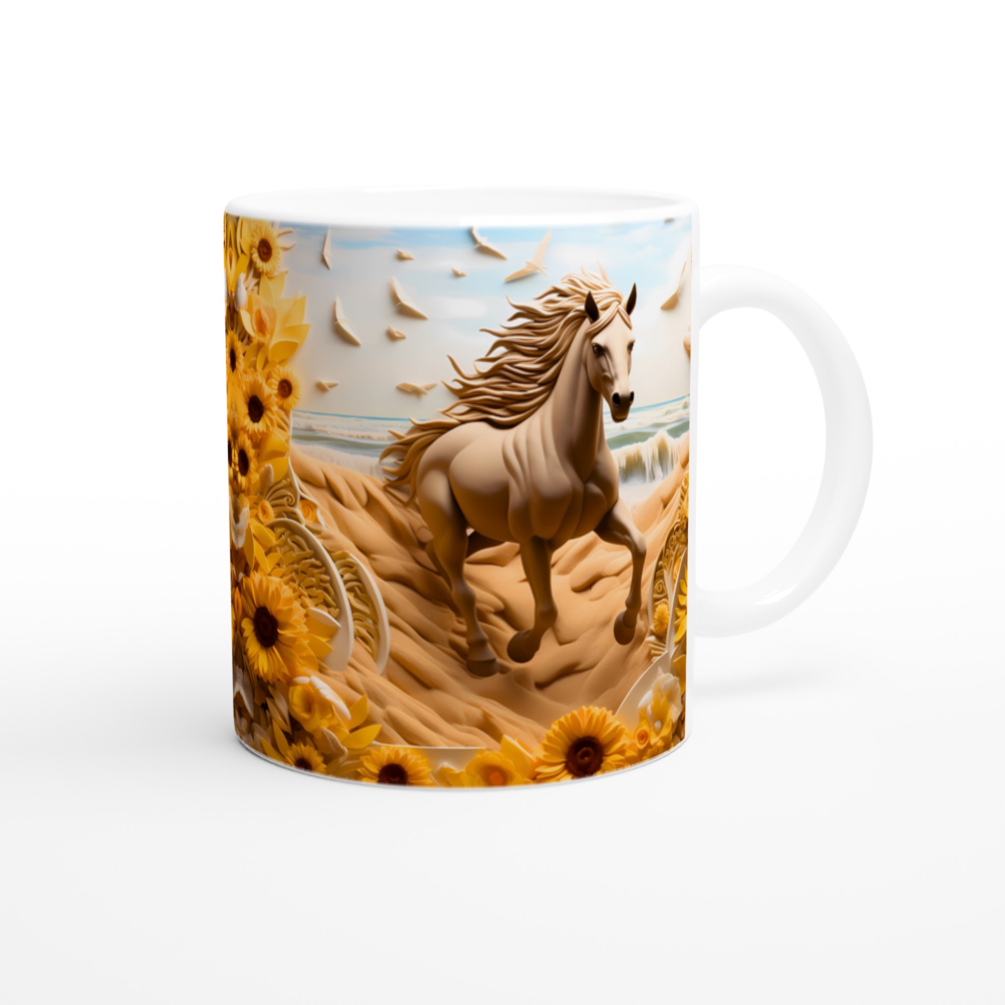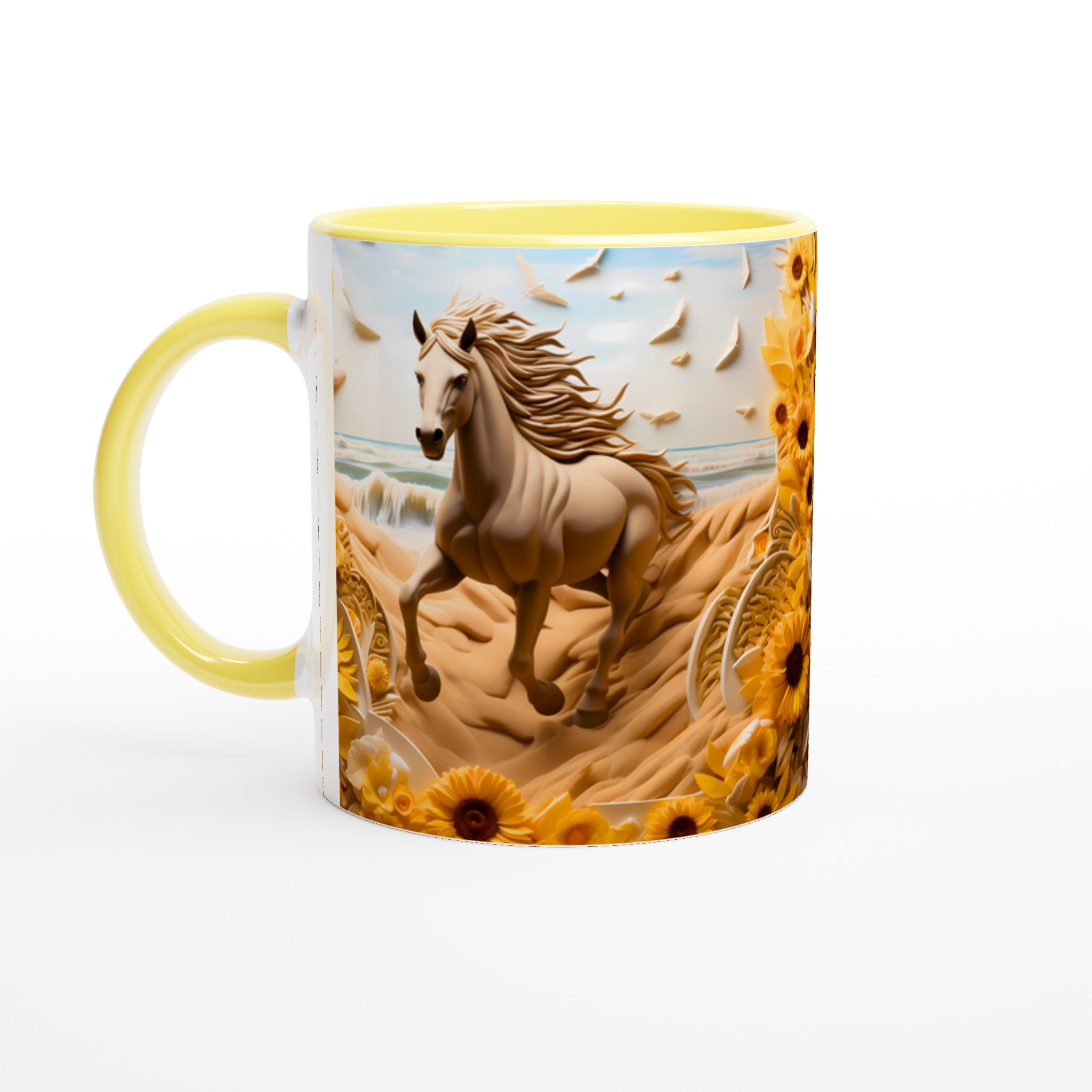 Golden Bloom Equine Mug – Ceramic 11oz, Vibrant Yellows & Ocean Hues